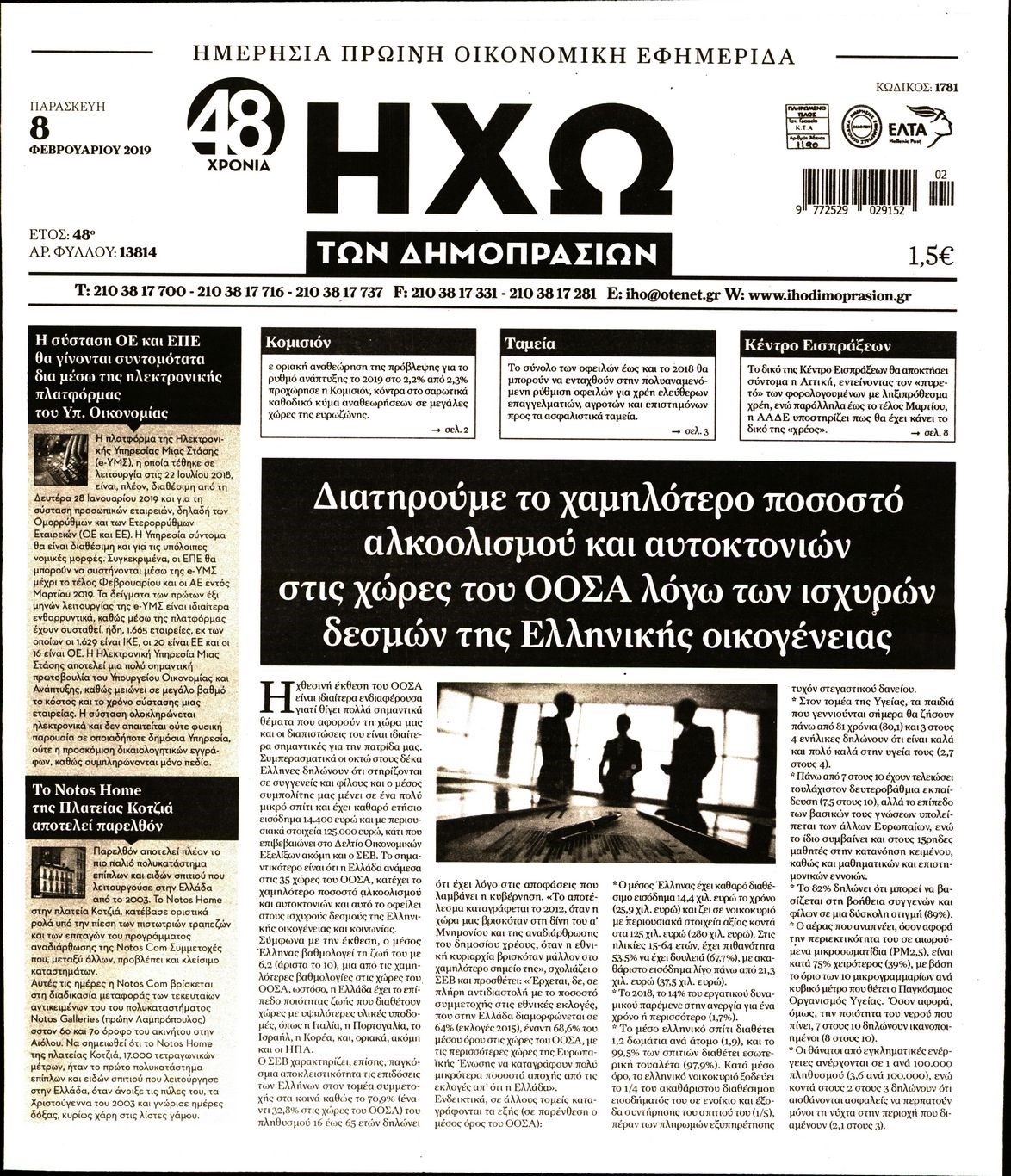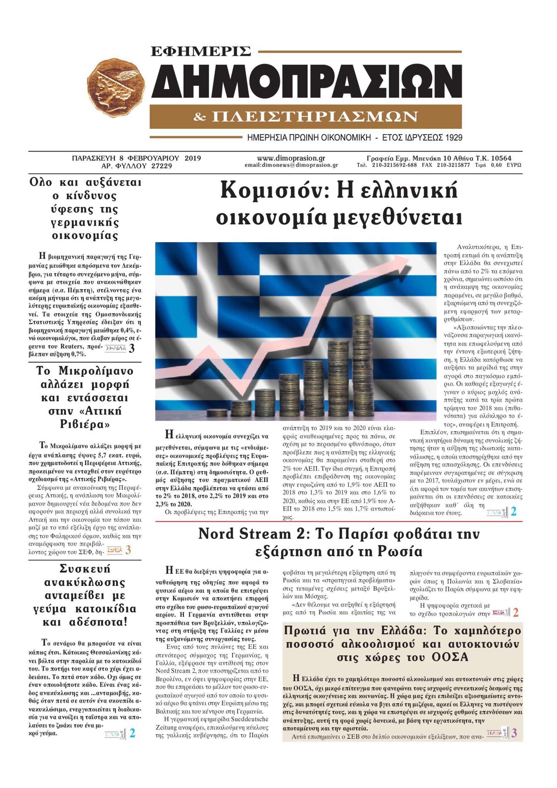 Οι οικονομικές εφημερίδες 8/2/19 Enikos Newsroom 06:47, Παρασκευή 08 Φεβρουαρίου 2019 Media Διαβάστε τα πρωτοσέλιδα των οικονομικών εφημερίδων: ΟΙΚΟΝΟΜΙΚΕΣ ΕΦΗΜΕΡΙΔΕΣ ΠΡΩΤΟΣΕΛΙΔΑ Μοιράσου το: σχολίασε κι εσύ (0 σχόλια) Ακολουθήστε το enikos.gr στο Google News και μάθετε πρώτοι όλες τις ειδήσεις Δείτε όλες τις τελευταίες ειδήσεις από την Ελλάδα και τον Κόσμο στο enikos.gr Ειδήσεις Ροή Ειδήσεων 45 λεπτά πριν Ευρωπαϊκή Ένωση: Χωρίς συμφωνία, για την μακροπρόθεσμη χρηματοδότηση της Ουκρανίας, ολοκληρώθηκε η Σύνοδος Κορυφής στις Βρυξέλλες 4 ώρες πριν ΟΠΕΚΕΠΕ: Προφυλακιστέος ο φερόμενος αρχηγός και ο λογιστής της εγκληματικής οργάνωσης 5 ώρες πριν Αυξάνουν την πίεση προς την κυβέρνηση οι αγρότες: Κλείνουν παρακαμπτήριους και ανοίγουν διόδια – Τι θα γίνει τις γιορτές 5 ώρες πριν Φοινικούντα: Το Σάββατο απολογείται ο 30χρονος γιος γνωστού επιχειρηματία της Πλάκας που παραδόθηκε – Όσα είπε στους αστυνομικούς και ο ρόλος του στο έγκλημα 4 ώρες πριν ΑΕΚ – Κραϊόβα 3-2: Επική ανατροπή και πρόκριση στους «16» του Conference League η Ένωση 5 ώρες πριν Αρχαιολόγοι ανακάλυψαν ρωμαϊκά τεχνουργήματα από μια πόλη που δεν υπήρξε ποτέ – Τα τρία εντυπωσιακά κτίρια και ο αμφορέας με τις… σαρδέλες 6 ώρες πριν Ύπνος: Η απλή βραδινή ρουτίνα για να προστατεύσετε τα μαλλιά σας από το κρύο κατά τη διάρκεια του χειμώνα 7 ώρες πριν Manifesting: Πώς να συναντήσετε τον σύντροφο της ζωής σας, ανάλογα με τον μήνα γέννησής σας 2 ημέρες πριν 20 χρόνια τα Χριστούγεννα ξεκινούν στα Public με μεγάλη ποικιλία σε δώρα! 54 δευτερόλεπτα πριν Στη Φλόριντα σήμερα οι διαβουλεύσεις σχετικά με τα επόμενα στάδια για τη Λωρίδα της Γάζας 5 λεπτά πριν Σίσσυ Τουμάση: «Είμαι ασθενοφοβική πάρα πολύ και με πιάνει μια παράνοια μ’ αυτό» 29 λεπτά πριν Ντόναλντ Τραμπ: Δεν χρειάζομαι την έγκριση του Κογκρέσου για να διατάξω στρατιωτικά πλήγματα στη Βενεζουέλα 45 λεπτά πριν Ευρωπαϊκή Ένωση: Χωρίς συμφωνία, για την μακροπρόθεσμη χρηματοδότηση της Ουκρανίας, ολοκληρώθηκε η Σύνοδος Κορυφής στις Βρυξέλλες 1 ώρα πριν GNTM: «Κλείδωσαν» οι τέσσερις φιναλίστ – Μεγάλη ανατροπή στις τελευταίες αποχωρήσεις ENIKOS NETWORK Σε περίοδο αυξημένης δραστηριότητας η γρίπη στην Ελλάδα-Μέτρα προστασίας από τον ΕΟΔΥ Σκέφτεστε συνέχεια συζητήσεις που έχετε κάνει; Τι σημαίνει αυτό, σύμφωνα με ειδικό Στεγαστικό: Τι λέει η ΠΟΜΙΔΑ για τα νέα μέτρα που ανακοίνωσε ο Κυριάκος Μητσοτάκης Λαγκάρντ: Αισιόδοξη για την ανάπτυξη της Ευρωζώνης, αβέβαιη για τον πληθωρισμό Χαρτογραφώντας το «σημείο χωρίς επιστροφή»: Για πρώτη φορά αποκαλύπτεται με λεπτομέρεια το ακανθώδες όριο της ατμόσφαιρας τ... Η Google καταργεί τη λειτουργία «dark web report» – Πώς θα μπορούν οι χρήστες να διαγράφουν τα δεδομένα τους περισσότερα 02:50 , Παρασκευή 19 Δεκεμβρίου 2025 GNTM: «Κλείδωσαν» οι τέσσερις φιναλίστ – Μεγάλη ανατροπή στις τελευταίες αποχωρήσεις Για προτελευταία φορά εμφανίστηκαν στο πλατό του GNTM οι φιναλίστ του φετινού κύκλου, το βράδυ... 17:45 , Πέμπτη 18 Δεκεμβρίου 2025 ROUK ZOUK: Εορταστικό επεισόδιο με καλεσμένους τους πρωταγωνιστές του «Γιατί ρε πατέρα» Το Σάββατο 20 Δεκεμβρίου στις 21:00, η Ζέτα Μακρυπούλια υποδέχεται εκλεκτούς ηθοποιούς που όλο... 17:20 , Πέμπτη 18 Δεκεμβρίου 2025 Άγιος έρωτας: Η Χριστίνα εξομολογείται στον πατέρα Νικόλαο, απόψε στις 21:00 στον Alpha Η Νότα αποφασίζει να εκδικηθεί τον Πέτρο και τον Στέφανο, για χάρη του Λούη, όμως τα πράγματα ... 16:50 , Πέμπτη 18 Δεκεμβρίου 2025 Να μ’ αγαπάς: Ζωή και Φωτεινή συμφιλιώνονται 