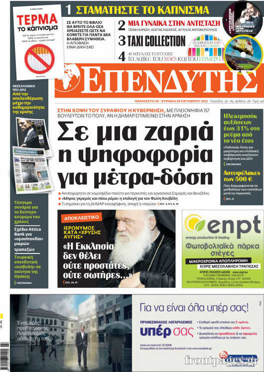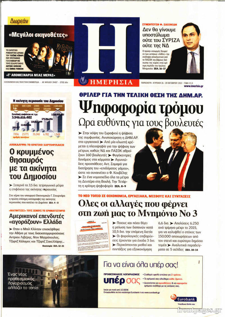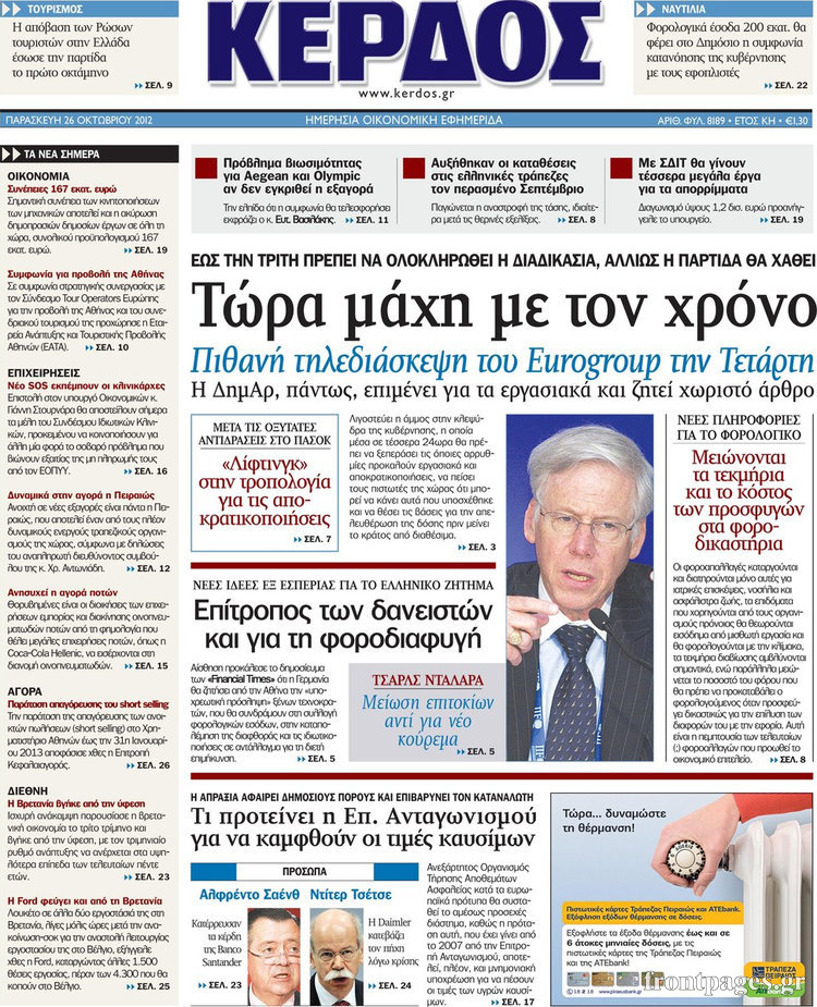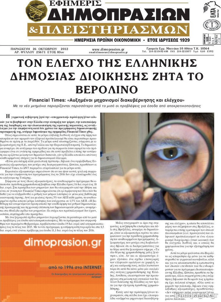 Οι οικονομικές εφημερίδες Enikos Newsroom 09:50, Παρασκευή 26 Οκτωβρίου 2012 Media Οι οικονομικές εφημερίδες ΕΦΗΜΕΡΙΔΕΣ ΟΙΚΟΝΟΜΙΚΑ ΘΕΜΑΤΑ ΟΙΚΟΝΟΜΙΚΕΣ ΕΦΗΜΕΡΙΔΕΣ ΠΡΩΤΟΣΕΛΙΔΑ Μοιράσου το: σχολίασε κι εσύ (0 σχόλια) Ακολουθήστε το enikos.gr στο Google News και μάθετε πρώτοι όλες τις ειδήσεις Δείτε όλες τις τελευταίες ειδήσεις από την Ελλάδα και τον Κόσμο στο enikos.gr Ειδήσεις Ροή Ειδήσεων 3 ώρες πριν «Βιολάντα»: Στο μικροσκόπιο όλες οι άδειες του εργοστασίου – Οι καταθέσεις του ιδιοκτήτη, του υπεύθυνου βάρδιας και του τεχνικού ασφαλείας 27 λεπτά πριν Νίκος Βλαχάκος: Η συγκινητική ομιλία στη Βουλή για τα Ίμια και τον αδελφό του – «Θα τον θυμάμαι πάντα για το ήθος, το καθαρό βλέμμα και τη βαθιά πίστη στο καθήκον» 1 ώρα πριν Προβλήματα από την έντονη βροχόπτωση στην Ήπειρο – Αποκλεισμένο το χωριό Ματσούκι στα Τζουμέρκα 3 ώρες πριν Ίμια 30 χρόνια μετά: «Ο βοσκός πήγαινε και στις δύο βραχονησίδες έως το 2004 – Μετά του έκοψαν τα λεφτά» 56 λεπτά πριν Καμμένος: Θα κάνω κακό στην Καρυστιανού αν έχω επαφή μαζί της – Φαίνεται ότι έχει ανέβει πάνω στο κύμα 1 ώρα πριν Τα 4 ζώδια που ευνοούνται από το σύμπαν – «Κάτι νέο φέρνει έμπνευση στη ζωή σας» 5 ώρες πριν Οπτική ψευδαίσθηση: Μόνο όσοι έχουν τέλεια όραση μπορούν να εντοπίσουν τη 2η γάτα μέσα σε 13 δευτερόλεπτα 3 ώρες πριν Ναός μπορεί να αναδύθηκε από το νερό όπως περιγράφει η μυθολογία – Τα στοιχεία της νέας μελέτης 2 ώρες πριν Παντρεύεται έναν άνδρα 17 χρόνια μεγαλύτερό της – «Όλοι νομίζουν ότι κοιτάω το πορτοφόλι του» 3 λεπτά πριν Γυναίκα που διαγνώστηκε με καρκίνο σε ηλικία 50 ετών αποκαλύπτει: «Στα 73 μου είμαι πιο δυνατή από ποτέ χάρη σε αυτές τις 3 συνήθειες» 8 λεπτά πριν Δένδιας για τις Navtex της Τουρκίας: «Η Ελλάδα δεν μπορεί να πάρει στα σοβαρά μία τέτοια προσέγγιση» 13 λεπτά πριν Σχολεία: Ποιες απουσίες μαθητών σβήνονται λόγω γρίπης 18 λεπτά πριν Άννα Μαρία Παπαχαραλάμπους: «Έχω αντιμετωπίσει ένα πρόβλημα υγείας, το οποίο επηρέασε την κινητικότητά μου» 23 λεπτά πριν Τόκιο: Δύο ληστείες με δακρυγόνα μέσα σε 24 ώρες στο κέντρο της πόλης – Έκλεψαν βαλίτσες με περισσότερα από 2 εκατ. ευρώ ENIKOS NETWORK Η κατανάλωση αυτής της ουσίας αυξάνει τον κίνδυνο στους εφήβους για ηπατική νόσο κατά 169% PIF: Διευρύνεται το χάσμα μεταξύ φαρμακευτικής δαπάνης και δημόσιου προϋπολογισμού Μισθοί: Ποιοι εργαζόμενοι θα δουν από σήμερα αυξήσεις -Δείτε αναλυτικά παραδείγματα Επιδόματα και παροχές από τον ΟΠΕΚΑ: Τι πληρώνεται σήμερα Google Search: Αναβαθμίζει τις δυνατότητες AI με Gemini 3 και Follow-up ερωτήσεις Κουίζ: Πόσο καλός είσαι στην ελληνική μυθολογία; Δοκίμασε τις γνώσεις σου και κάνε το 3 στα 3 περισσότερα 07:00 , Παρασκευή 30 Ιανουαρίου 2026 Την Κυριακή με τη Realnews: Ό,τι και αν αγοράσεις, σκανάρεις και κερδίζεις! Την Κυριακή με τη Realnews: Ό,τι και αν αγοράσεις, σκανάρεις και κερδίζεις! Με το PADU app, το... 05:48 , Παρασκευή 30 Ιανουαρίου 2026 Οι οικονομικές εφημερίδες 30/1/2026 Διαβάστε τα πρωτοσέλιδα από τις οικονομικές εφημερίδες, σήμερα 30/1/2026. 22:52 , Πέμπτη 29 Ιανουαρίου 2026 Ζελένσκι: Αναμένουμε από τη Ρωσία να σταματήσει τους βομβαρδισμούς για μία εβδομάδα, όπως συμφώνησε Ο Βολοντίμιρ Ζελένσκι δήλωσε απόψε ότι αναμένει την εφαρμογή της συμφωνίας, εκ μέρους της Ρωσί... 18:58 , Πέμπτη 29 Ιανουαρίου 2026 Το σόι σου: Ο Μιχάλης ένα βήμα πριν παρατήσει τον Χαμπέα, απόψε στις 21:00 Ένα ακόμη απολαυστικό επεισόδιο της σειράς “Το σόι σου” έρχεται απόψε στις 21:00 σ... ΤΕΛΕΥΤΑΙΕΣ ΕΙΔΗΣΕΙΣ 3 λεπτά πριν Γυναίκα που διαγνώ