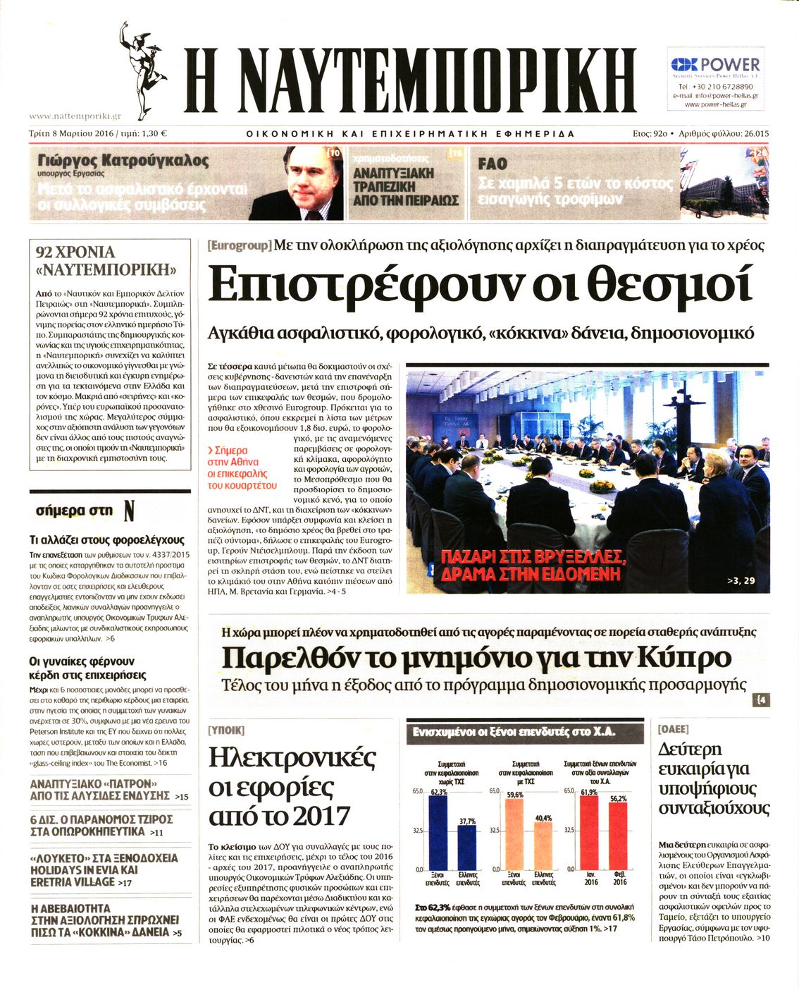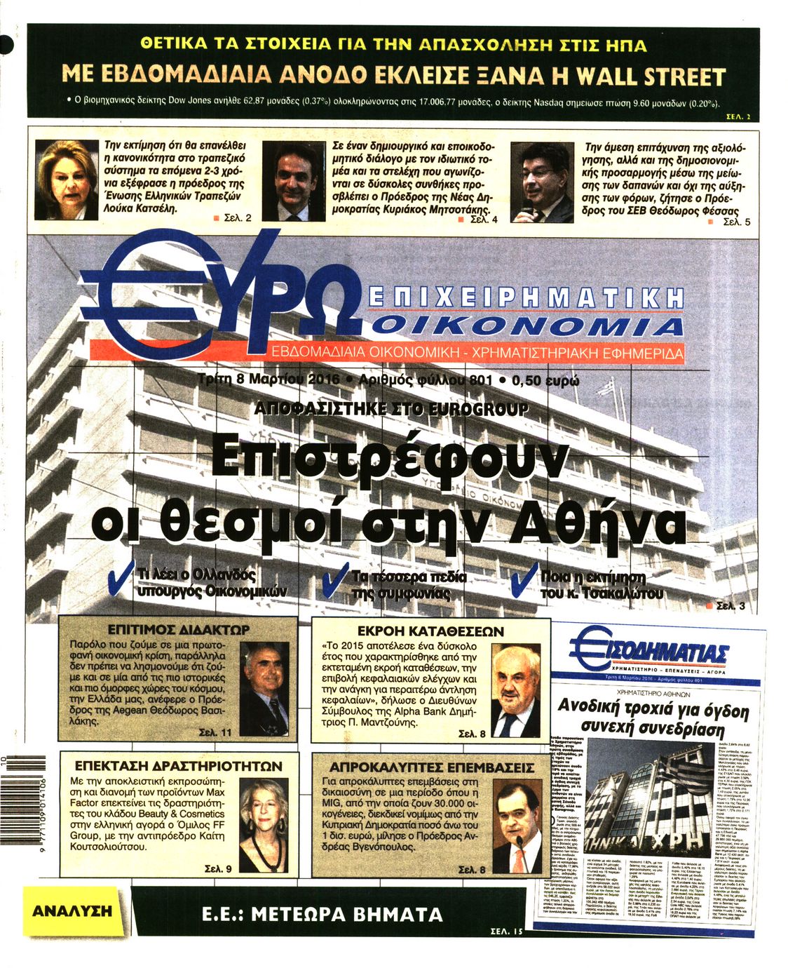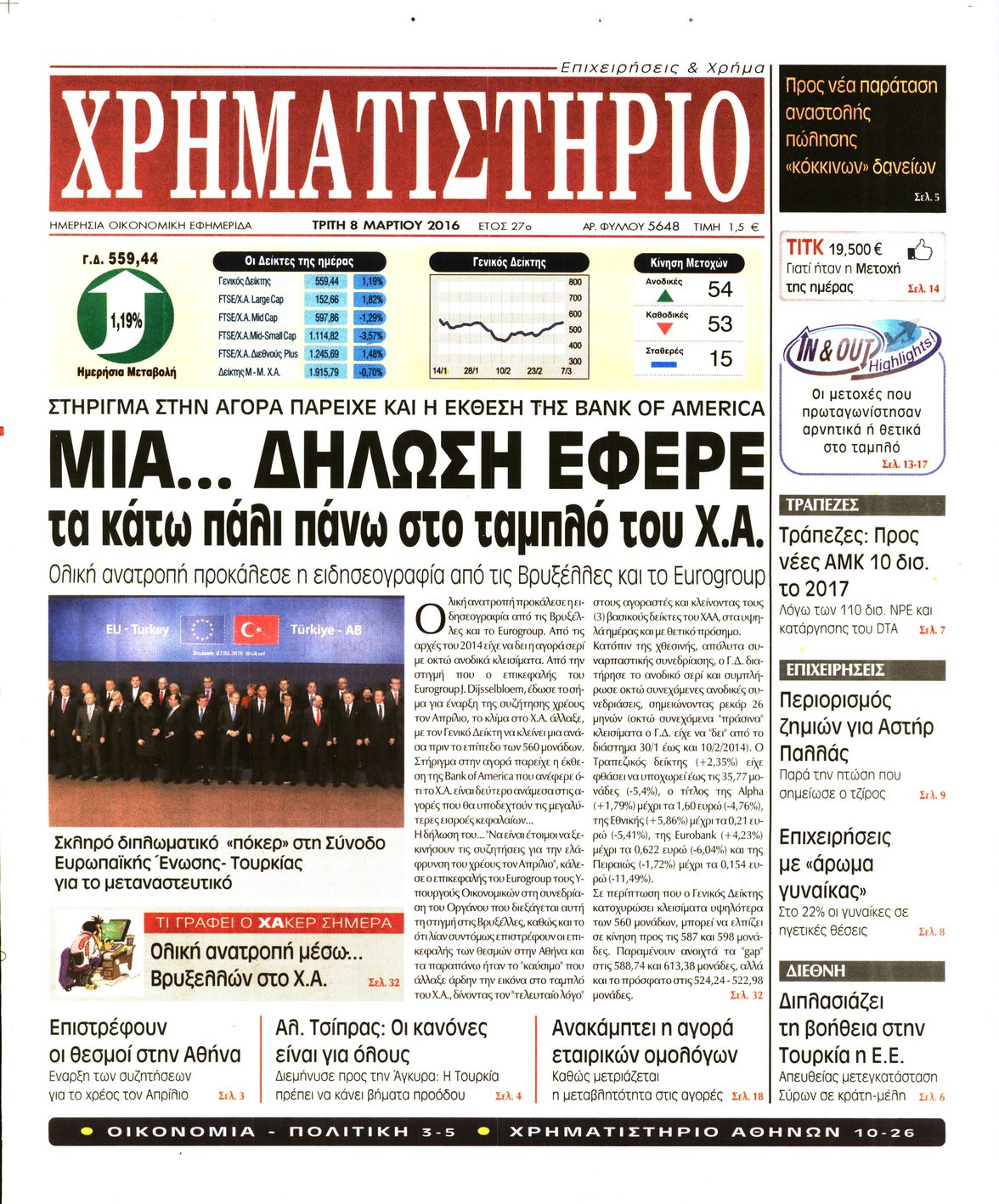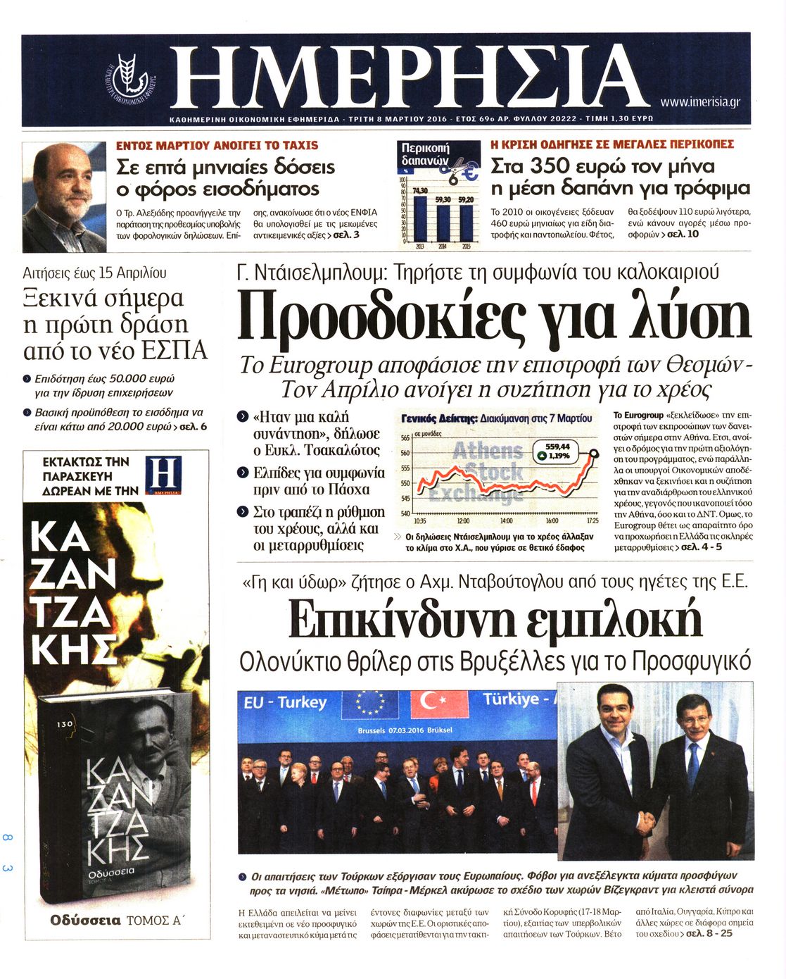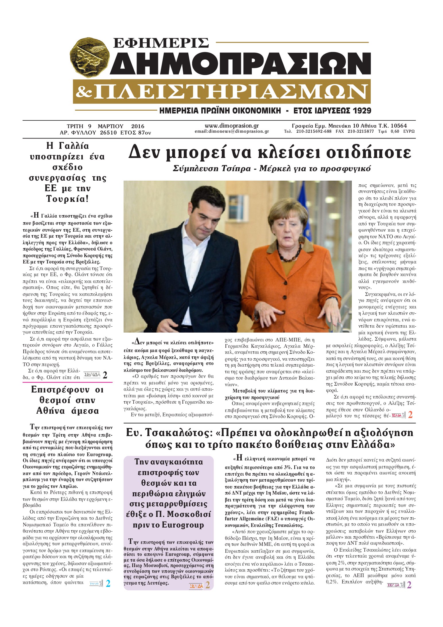 Oι οικονομικές εφημερίδες 8/3/2016 Enikos Newsroom 06:21, Τρίτη 08 Μαρτίου 2016 Media Διαβάστε τα σημερινά πρωτοσέλιδα των οικονομικών εφημερίδων: Μοιράσου το: σχολίασε κι εσύ (0 σχόλια) Ακολουθήστε το enikos.gr στο Google News και μάθετε πρώτοι όλες τις ειδήσεις Δείτε όλες τις τελευταίες ειδήσεις από την Ελλάδα και τον Κόσμο στο enikos.gr Ειδήσεις Ροή Ειδήσεων 9 ώρες πριν Χριστούγεννα στα μπλόκα: Επιμένουν στις κινητοποιήσεις τους οι αγρότες – Ανοίγουν τα διόδια το Σαββατοκύριακο 1 ώρα πριν Σαρωτικοί οι έλεγχοι στους δρόμους ενόψει εορτών – Μπλόκα της τροχαίας σε κεντρικές αρτηρίες της Αττικής 8 ώρες πριν Πούτιν: Τα μηνύματα σε Ευρώπη και ΝΑΤΟ από το μαραθώνιο «σόου» του – Η απαίτηση για «σεβασμό» και η ειρήνη «με τους όρους» της Μόσχας 7 ώρες πριν ΗΠΑ: Η κυβέρνηση του Ντόναλντ Τραμπ άρχισε να δημοσιοποιεί τα αρχεία Έπσταϊν 8 ώρες πριν Άνω Λιόσια: Πυροβολισμοί σε επιχείρηση με χαλιά – Εντοπίστηκαν 10 κάλυκες 1 ώρα πριν Αυγά: Πόσα μπορείτε να τρώτε την ημέρα με ασφάλεια για μέγιστη πρόσληψη πρωτεΐνης 2 ώρες πριν Τα ζώδια σήμερα, Σάββατο 20 Δεκεμβρίου: Παρθένοι, το σύμπαν σας δίνει το κλειδί 8 ώρες πριν Ανακαλύφθηκαν αρχαία χρυσά νομίσματα 2.200 ετών που απεικονίζουν τον θεό Απόλλωνα – Η άγνωστη σύνδεση με τον Φίλιππο Β΄ της Μακεδονίας 57 λεπτά πριν Οπτική ψευδαίσθηση: Μόνο αν είσαι ο Σέρλοκ Χολμς θα βρεις τον αριθμό «87» σε 7 δευτερόλεπτα 3 λεπτά πριν Εορτολόγιο: Ποιοι γιορτάζουν σήμερα 20 Δεκεμβρίου 10 λεπτά πριν Συρία: Μπαράζ αμερικανικών επιδρομών εναντίον του ISIS – «Πλήττουμε δυνατά οχυρά του ΙΚ» λέει ο Ντόναλντ Τραμπ 19 λεπτά πριν Αναβολή συμφωνίας ΕΕ-Mercosur: Ο χρόνος «δεν είναι απεριόριστος» προειδοποιεί η Παραγουάη 34 λεπτά πριν Κίριλ Ντμίτριεφ: Στις ΗΠΑ ο απεσταλμένος της Ρωσίας για συνομιλίες με τους ομολόγους του, Γουίτκοφ και Κούσνερ 41 λεπτά πριν ΔΕΔΔΗΕ: Διακοπές ρεύματος σήμερα (20/12) στην Αθήνα και σε άλλες 7 περιοχές της Αττικής ENIKOS NETWORK Πρέπει να αποδέχεστε ή να απορρίπτετε όλα τα cookies; Ένας ειδικός εξηγεί Η αγαπημένη λιχουδιά των πόνι που μπορεί να ενισχύσει όραση, εγκέφαλο και ανοσοποιητικό Αναστολή μέτρων αναγκαστικής εκτέλεσης για κτηνοτρόφους που πλήττονται από την ευλογιά των αιγοπροβάτων Πλήρης επάρκεια προϊόντων στις λαϊκές της Αττικής, παρά τις αγροτικές κινητοποιήσεις – Τι απαντούν οι πωλητές Χαρτογραφώντας το «σημείο χωρίς επιστροφή»: Για πρώτη φορά αποκαλύπτεται με λεπτομέρεια το ακανθώδες όριο της ατμόσφαιρας τ... Η Google καταργεί τη λειτουργία «dark web report» – Πώς θα μπορούν οι χρήστες να διαγράφουν τα δεδομένα τους περισσότερα 05:48 , Σάββατο 20 Δεκεμβρίου 2025 Οι οικονομικές εφημερίδες 20/12/2025 Διαβάστε τα πρωτοσέλιδα από τις οικονομικές εφημερίδες, σήμερα 20/12/2025. 05:43 , Σάββατο 20 Δεκεμβρίου 2025 Οι αθλητικές εφημερίδες 20/12/2025 Διαβάστε τα πρωτοσέλιδα από τις αθλητικές εφημερίδες, σήμερα 20/12/2025. 05:38 , Σάββατο 20 Δεκεμβρίου 2025 Οι πολιτικές εφημερίδες 20/12/2025 Διαβάστε τα πρωτοσέλιδα από τις πολιτικές εφημερίδες, σήμερα 20/12/2025. 04:20 , Σάββατο 20 Δεκεμβρίου 2025 Αγγελική Νικολούλη: Τα συλλυπητήρια για την απώλεια της Ειρήνης Μαρινάκη Τα συλληπητήρια στον πρόεδρο του Mega, τον Βαγγέλη Μαρινάκη, για την απώλεια της μητέρας του Ε... ΤΕΛΕΥΤΑΙΕΣ ΕΙΔΗΣΕΙΣ 3 λεπτά πριν Εορτολόγιο: Ποιοι γιορτάζουν σήμερα 19 Δεκεμβρίου 10 λεπτά πριν Συρία: Μπαράζ αμερικανικών επιδρομών εναντίον του ISIS... 19 λεπτά πριν Αναβολή συμφωνίας ΕΕ-Mercosur: Ο χρόνος «δεν είναι... 34 λεπτά πριν Κίριλ Ντμίτριεφ: Στις ΗΠΑ ο απεσταλ