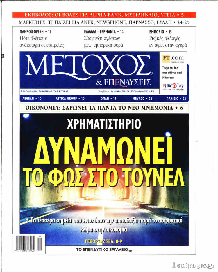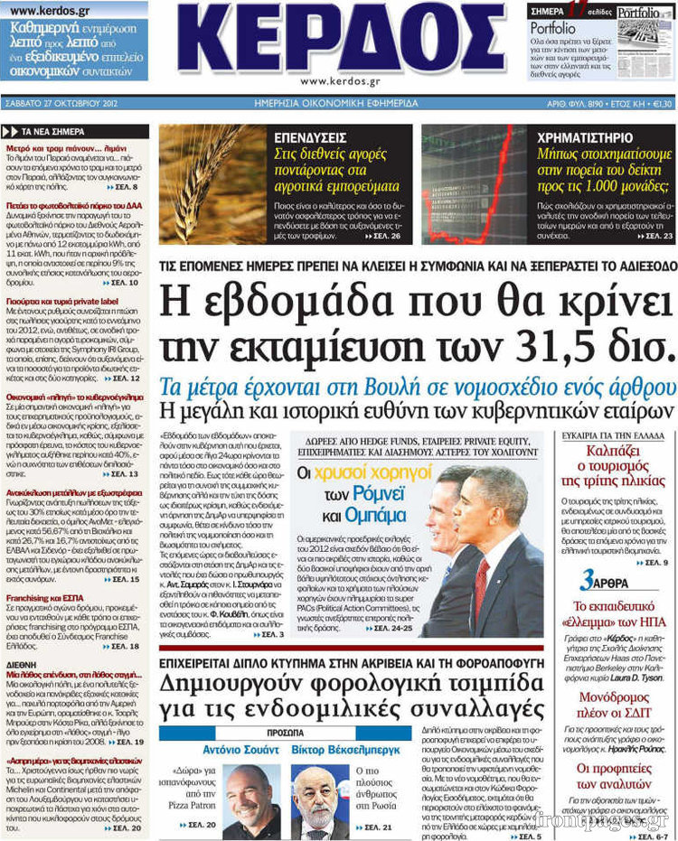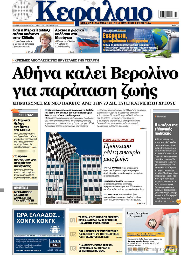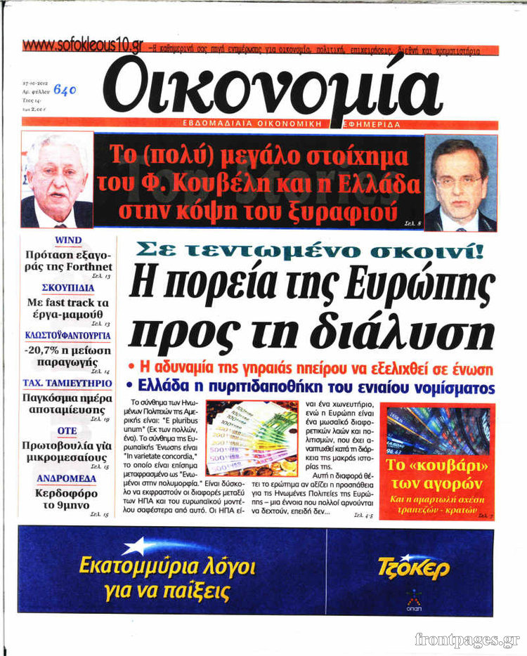 Οι οικονομικές εφημερίδες Enikos Newsroom 10:04, Σάββατο 27 Οκτωβρίου 2012 Media Δείτε τα πρωτοσέλιδα των οικονομικών εφημερίδων: ΟΙΚΟΝΟΜΙΚΕΣ ΕΦΗΜΕΡΙΔΕΣ Μοιράσου το: σχολίασε κι εσύ (0 σχόλια) Ακολουθήστε το enikos.gr στο Google News και μάθετε πρώτοι όλες τις ειδήσεις Δείτε όλες τις τελευταίες ειδήσεις από την Ελλάδα και τον Κόσμο στο enikos.gr Ειδήσεις Ροή Ειδήσεων 8 ώρες πριν Μακελειό στο Σίδνεϊ: Πατέρας και γιος οι δράστες της τρομοκρατικής επίθεσης – Γιατί η Αυστραλία βάζει στο στόχαστρο το Ιράν 9 ώρες πριν Μακελειό στην Αυστραλία: «Πέρασαν οι σφαίρες πάνω από το αυτοκίνητο» – Συγκλονίζει η μαρτυρία Έλληνα που ζει στο Σίδνεϊ 7 ώρες πριν Τρομοκρατική επίθεση στο Σίδνεϊ: «Το αναπόφευκτο συνέβη πλέον» – Πώς οι δράστες είχαν χάσει τον ανθρωπισμό τους πριν πατήσουν την σκανδάλη 7 ώρες πριν Όλα τα αιτήματα αγροτών, κτηνοτρόφων και μελισσοκόμων προς την κυβέρνηση – Παραμένουν στα μπλόκα και προαναγγέλλουν κλιμάκωση 11 ώρες πριν Λακωνία: Βίντεο ντοκουμέντο από την επιχείρηση διάσωσης της 13χρονης που έπεσε σε πηγάδι – Ποια ήταν τα πρώτα λόγια της 56 λεπτά πριν Οπτική ψευδαίσθηση: Μόνο το 1% των ανθρώπων θα βρει το ψάρι σε 12 δευτερόλεπτα 1 ώρα πριν Διατροφή: Γιατρός προειδοποιεί για 2 απλά λάθη που αυξάνουν τον κίνδυνο χρόνιων παθήσεων 2 ώρες πριν Τα ζώδια σήμερα, Δευτέρα 15 Δεκεμβρίου: Ιχθύες, ξεκινήστε από εκεί που η παρουσία σας έχει σημασία 9 ώρες πριν Ύπνος: 5 λόγοι για τους οποίους ξυπνάτε κουρασμένοι το πρωί κατά τη διάρκεια του χειμώνα 6 λεπτά πριν Εορτολόγιο: Ποιοι γιορτάζουν σήμερα 15 Δεκεμβρίου 12 λεπτά πριν ΔΕΔΔΗΕ: Διακοπές ρεύματος σήμερα (15/12) στην Αθήνα και σε άλλες 9 περιοχές της Αττικής 18 λεπτά πριν Λος Άντζελες: Νεκροί στο σπίτι τους εντοπίστηκαν ο σκηνοθέτης, Ρομπ Ράινερ και η σύζυγός του 24 λεπτά πριν ΦΠΑ: Αυξάνεται κατά 57% ο αριθμός των ελέγχων για παράνομες επιστροφές και απάτες – Πού θα δοθεί προτεραιότητα 33 λεπτά πριν Γουατεμάλα: Βίαιες συγκρούσεις με νεκρούς στην περιοχή των αυτόχθονων ENIKOS NETWORK Την Κυριακή με τη Realnews: Δωροεπιταγή 10€ Μόνο το 5% με όραση 20/20 μπορεί να βρει το σκουλήκι ανάμεσα στα πουλιά μέσα σε 7 δευτερόλεπτα Τέλος οι διώξεις για χρέη σε Εφορία και ΕΦΚΑ – Τι προβλέπει νέα διάταξη μετά την πτώχευση Υπουργείο Αγροτικής Ανάπτυξης: Ενισχύσεις de minimis ύψους 2,1 εκατ. ευρώ – Οι δικαιούχοι Σύγχρονος Νοστράδαμος: Προειδοποιεί για «μεγάλο γεγονός» τους επόμενους μήνες που θα συγκλονίσει τη Βρετανία και τον κόσμο Τεστ παρατηρητικότητας: Μπορείτε να βρείτε τις 3 διαφορές στις εικόνες με έναν πιγκουίνο σε 14 δευτερόλεπτα περισσότερα 05:49 , Δευτέρα 15 Δεκεμβρίου 2025 Οι οικονομικές εφημερίδες 15/12/2025 Διαβάστε τα πρωτοσέλιδα από τις οικονομικές εφημερίδες, σήμερα 15/12/2025. 05:43 , Δευτέρα 15 Δεκεμβρίου 2025 Οι αθλητικές εφημερίδες 15/12/2025 Διαβάστε τα πρωτοσέλιδα από τις αθλητικές εφημερίδες, σήμερα 15/12/2025. 05:38 , Δευτέρα 15 Δεκεμβρίου 2025 Οι πολιτικές εφημερίδες 15/12/2025 Διαβάστε τα πρωτοσέλιδα από τις πολιτικές εφημερίδες, σήμερα 15/12/2025. 21:34 , Κυριακή 14 Δεκεμβρίου 2025 Ο Δικαστής: Η Λέττα είναι αποφασισμένη να αποκαλύψει την αλήθεια για το τροχαίο, απόψε στις 21:45 στον ΑΝΤ1 Ραγδαίες οι εξελίξεις στο νέο επεισόδιο της σειράς “Ο Δικαστής” απόψε στις 21:45 σ... ΤΕΛΕΥΤΑΙΕΣ ΕΙΔΗΣΕΙΣ 6 λεπτά πριν Εορτολόγιο: Ποιοι γιορτάζουν σήμερα 15 Δεκεμβρίου 12 λεπτά πριν ΔΕΔΔΗΕ: Διακοπές ρεύματος σήμερα (15/12) στην Αθήνα και... 18 λεπτά πριν Λος Άντζελες: Νεκροί στο σπίτι τους εντοπίστηκαν ο... 24 λεπτά πριν ΦΠΑ: 