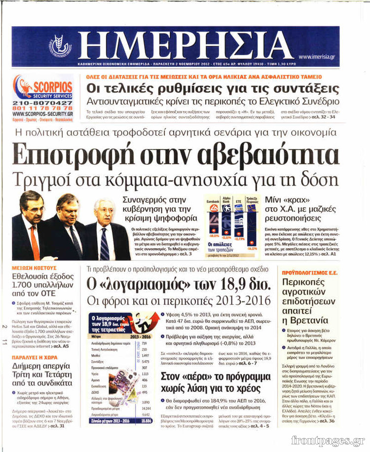 Οι οικονομικές εφημερίδες Enikos Newsroom 09:03, Παρασκευή 02 Νοεμβρίου 2012 Media Οι οικονομικές εφημερίδες Τα σημερινά πρωτοσέλιδα των οικονομικών εφημερίδων. ΕΦΗΜΕΡΙΔΕΣ ΕΦΗΜΕΡΙΔΕΣ ΠΡΩΤΟΣΕΛΙΔΑ ΟΙΚΟΝΟΜΙΚΑ ΟΙΚΟΝΟΜΙΚΕΣ ΕΦΗΜΕΡΙΔΕΣ ΠΡΩΤΟΣΕΛΙΔΑ Μοιράσου το: σχολίασε κι εσύ (0 σχόλια) Ακολουθήστε το enikos.gr στο Google News και μάθετε πρώτοι όλες τις ειδήσεις Δείτε όλες τις τελευταίες ειδήσεις από την Ελλάδα και τον Κόσμο στο enikos.gr Ειδήσεις Ροή Ειδήσεων 2 ώρες πριν Τρομοκρατική επίθεση στο Σίδνεϊ: Νεκροί 11 πολίτες και ένας δράστης – Εντοπίστηκε αυτοσχέδιος εκρηκτικός μηχανισμός 1 ώρα πριν ΟΠΕΚΕΠΕ-Κρήτη: Προθεσμία να απολογηθούν από την Τρίτη έως την Πέμπτη έλαβαν οι 16 συλληφθέντες 5 ώρες πριν Σκληραίνουν τη στάση τους οι αγρότες: Αποφασίζουν τις δράσεις της εβδομάδας – Αύριο το συλλαλητήριο στα δικαστήρια της Λάρισας 7 ώρες πριν Κυριάκος Μητσοτάκης μετά το «όχι» των αγροτών: Διάλογος δεν γίνεται με τελεσίγραφα και οι λύσεις προκύπτουν μόνο από συζήτηση 2 ώρες πριν Πανεπιστήμιο Μπράουν: Υπό κράτηση ένα «άτομο ενδιαφέροντος» για το μακελειό με τους 2 νεκρούς και τους 9 τραυματίες 59 λεπτά πριν Τα 5 ζώδια που ευνοούνται στα ερωτικά τους έως τις 21 Δεκεμβρίου – «Η επόμενη σχέση σας θα είναι καθοριστική» 2 ώρες πριν Γεωλογική αποκάλυψη: Επιστήμονες εξηγούν πώς η Ιβηρική Χερσόνησος περιστρέφεται σαν… ρολόι 5 ώρες πριν Προπονήτρια ευεξίας που έχασε 24 κιλά αποκαλύπτει: «Αυτά είναι τα 6 ανησυχητικά σημάδια της υψηλής κορτιζόλης» 6 ώρες πριν Τα 8 πράγματα που τα ευτυχισμένα ζευγάρια δεν κάνουν ποτέ μπροστά στα παιδιά τους 11 λεπτά πριν Κικίλιας: Επενδύσεις σε ναυτιλία και λιμενικές υποδομές – Η μεγάλη ευκαιρία της ελληνικής οικονομίας για ανάπτυξη 19 λεπτά πριν Χατζηδάκης για αγρότες: «Τα προβλήματα απαιτούν διάλογο, δεν αντιμετωπίζεται η κατάσταση με τελεσίγραφα» 27 λεπτά πριν Τηλεθέαση (13/12): Πώς κινήθηκαν οι εκπομπές στην πρωινή ζώνη το Σάββατο 35 λεπτά πριν Κρήτη: Χαμός σε ποδοσφαιρικό αγώνα – Προπονητής χτύπησε με κουτουλιά παίκτη της αντίπαλης ομάδας 43 λεπτά πριν Νετανιάχου για την επίθεση στο Σίδνεϊ: «Τους είχα προειδοποιήσει – Ρίχνουν λάδι στην φωτιά του αντισημιτισμού» ENIKOS NETWORK Πρωτοβουλία της Ελλάδας για ενιαίο ευρωπαϊκό πλαίσιο στη δωρεά σπέρματος και ωαρίων Η ορθολογική χρήση των αντιβιοτικών στο επίκεντρο σεμιναρίου του ΙΣΑ ΔΥΠΑ: Οι καταβολές που θα γίνουν την ερχόμενη Τετάρτη ΕΚΤ: Τα οφέλη για νοικοκυριά και επιχειρήσεις από τα σταθερά επιτόκια για ολόκληρο το 2026 Σύγχρονος Νοστράδαμος: Προειδοποιεί για «μεγάλο γεγονός» τους επόμενους μήνες που θα συγκλονίσει τη Βρετανία και τον κόσμο Τεστ παρατηρητικότητας: Μπορείτε να βρείτε τις 3 διαφορές στις εικόνες με έναν πιγκουίνο σε 14 δευτερόλεπτα περισσότερα 16:32 , Κυριακή 14 Δεκεμβρίου 2025 Τηλεθέαση (13/12): Πώς κινήθηκαν οι εκπομπές στην πρωινή ζώνη το Σάββατο Με αμείωτη ένταση συνεχίστηκε η μάχη για την τηλεθέαση στην πρωινή ζώνη των τηλεοπτικών καναλι... 15:07 , Κυριακή 14 Δεκεμβρίου 2025 IQ160: Η Μαρίνα στέλνει το φούτερ του Τηλέμαχου για το τεστ πατρότητας Η Πηνελόπη αποφασίζει να κάνει αμνιοπαρακέντηση, για να βεβαιωθεί για την υγεία του μωρού της ... 12:46 , Κυριακή 14 Δεκεμβρίου 2025 Η Realnews στο www.pressreader.com Διαβάστε την ψηφιακή έκδοση της εφημερίδας στην οθόνη του κινητού, του tablet και του υπολογισ... 10:07 , Κυριακή 14 Δεκεμβρίου 2025 Η γη της ελιάς: Η αρχή του τέλους του Δημοσθένη πλησιάζει Η δραματική σειρά του MEGA «Η γη της ελιάς» 