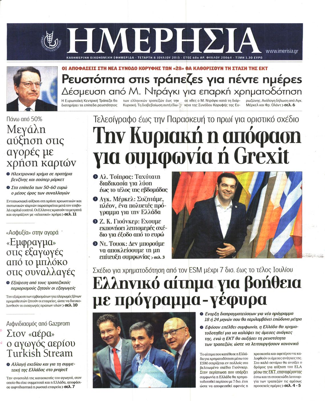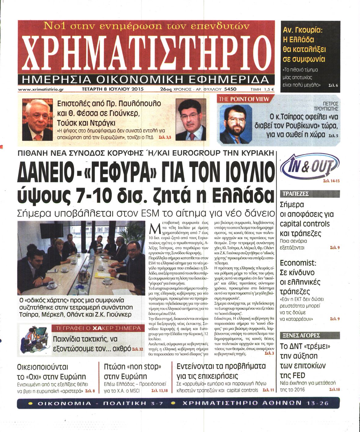 Οι οικονομικές εφημερίδες 8/7/2015 Enikos Newsroom 06:17, Τετάρτη 08 Ιουλίου 2015 Media Διαβάστε τα σημερινά πρωτοσέλιδα των οικονομικών εφημερίδων: ΟΙΚΟΝΟΜΙΚΕΣ ΕΦΗΜΕΡΙΔΕΣ ΠΡΩΤΟΣΕΛΙΔΑ Μοιράσου το: σχολίασε κι εσύ (0 σχόλια) Ακολουθήστε το enikos.gr στο Google News και μάθετε πρώτοι όλες τις ειδήσεις Δείτε όλες τις τελευταίες ειδήσεις από την Ελλάδα και τον Κόσμο στο enikos.gr Ειδήσεις Ροή Ειδήσεων 3 ώρες πριν Μητσοτάκης για αγρότες: Ελπίζω πως θα απομακρυνθούν σύντομα από τα μπλόκα 4 ώρες πριν Έρευνα MRB: Η πρόθεση ψήφου και τα σημαντικότερα προβλήματα – Οι «λέξεις» που εκφράζουν τους πολίτες 42 λεπτά πριν Κυψέλη: Στον ανακριτή η 16χρονη που μαχαίρωσε την 14χρονη – «Είχα το μαχαίρι για προστασία – Έχω θέμα με τα νεύρα μου» 1 ώρα πριν Αμοργός: «Θα προσπαθήσω να το κάνω κάθε μέρα» – Ποιος είναι ο αγρότης που έστησε μόνος του το πρώτο μπλόκο στο νησί 2 ώρες πριν Μισέλ Ομπάμα: Εμφανώς αδυνατισμένη στην εκπομπή του Τζίμι Κίμελ – Οι φήμες για τη χρήση Ozempic και η «φιλία» της με τον Ρομπ Ράινερ 4 ώρες πριν Τα 4 ζώδια που ξαναβρίσκουν τον εαυτό τους – «Μπαίνετε επιτέλους στην ουσία των πραγμάτων» 5 ώρες πριν 20 χρόνια τα Χριστούγεννα ξεκινούν στα Public με μεγάλη ποικιλία σε δώρα! 4 ώρες πριν «Δεν είχα κλάψει από τότε που διαγνώστηκα με καρκίνο, ώσπου ένα τηλεφώνημα με έκανε να λυγίσω» – Η συγκλονιστική εξομολόγηση ενός άνδρα 3 ώρες πριν Τα 7 σπάνια χαρακτηριστικά που κάνουν κάποιους ανθρώπους ακαταμάχητους 2 λεπτά πριν Live – Οι ανακοινώσεις της ΕΛΑΣ για το κύκλωμα κοκαΐνης και τον «Έλληνα Εσκομπάρ» 3 λεπτά πριν Τροχαίο έξω από το Μέγαρο Μαξίμου: Αυτοκίνητο παρέσυρε ηλικιωμένο 8 λεπτά πριν Συνάντηση Μητσοτάκη με την Κ.Ο. της ΝΔ: Οι αφίξεις των βουλευτών, τα γλυκά και τα «πηγαδάκια» 18 λεπτά πριν Πούτιν: «Ανοησίες» και «υστερίες» οι ισχυρισμοί της Ευρώπης για πιθανή σύγκρουση με τη Ρωσία – «Κάνουν πλύση εγκεφάλου» 25 λεπτά πριν ΟΠΕΚΕΠΕ – Παράνομες επιδοτήσεις: Ελεύθεροι αφέθηκαν οι δύο πρώτοι από τους κατηγορούμενους που απολογούνται σήμερα ENIKOS NETWORK 5 πράγματα που αποφεύγει γαστρεντερολόγος για να μειώσει τον κίνδυνο καρκίνου του εντέρου Ανησυχητική αύξηση της υπέρτασης στα παιδιά – Πώς θα τα προστατέψουμε; Αδειοδωρόσημο Χριστουγέννων 2025: Πότε γίνεται η καταβολή του και σε ποιους Τριπλή αύξηση στους μισθωτούς – Τι αλλάζει μετά την Πρωτοχρονιά Σύγχρονος Νοστράδαμος: Προειδοποιεί για «μεγάλο γεγονός» τους επόμενους μήνες που θα συγκλονίσει τη Βρετανία και τον κόσμο Τεστ παρατηρητικότητας: Μπορείτε να βρείτε τις 3 διαφορές στις εικόνες με έναν πιγκουίνο σε 14 δευτερόλεπτα περισσότερα 12:35 , Τετάρτη 17 Δεκεμβρίου 2025 Μίρκα Παπακωνσταντίνου: «Δεν ήμουν αισιόδοξη για τα νούμερα – Είμαι ρεαλίστρια» Στα γυρίσματα του εορταστικού επεισοδίου της αγαπημένης σειράς “Το Σόι Σου”, βρέθηκε η κάμερα ... 12:12 , Τετάρτη 17 Δεκεμβρίου 2025 Ακούστε την εκπομπή του Νίκου Χατζηνικολάου 17/12/2025 Ακούστε την εκπομπή του Νίκου Χατζηνικολάου στον ραδιοφωνικό σταθμό RealFm 97,8, την Τετάρτη 1... 11:35 , Τετάρτη 17 Δεκεμβρίου 2025 Home Alone: Το σπίτι της ταινίας θα ανακαινιστεί – Επιστροφή στην αισθητική της δεκαετίας του ’90 Οι νέοι ιδιοκτήτες του πραγματικού σπιτιού που παρουσιάζεται στην κλασική ταινία του 1990 «Hom... 11:25 , Τετάρτη 17 Δεκεμβρίου 2025 Grand Hotel: Απόψε το τελευταίο επεισόδιο της χρονιάς – Όλα τα μυστικά μένουν εδώ Το τελευταίο επεισόδιο της χρονιάς της σειράς «Grand Hotel» θα προβληθεί απόψε στις 21:00. Ο Ά... ΤΕΛΕΥΤΑΙΕΣ ΕΙΔΗΣΕΙΣ 2 λεπτά π