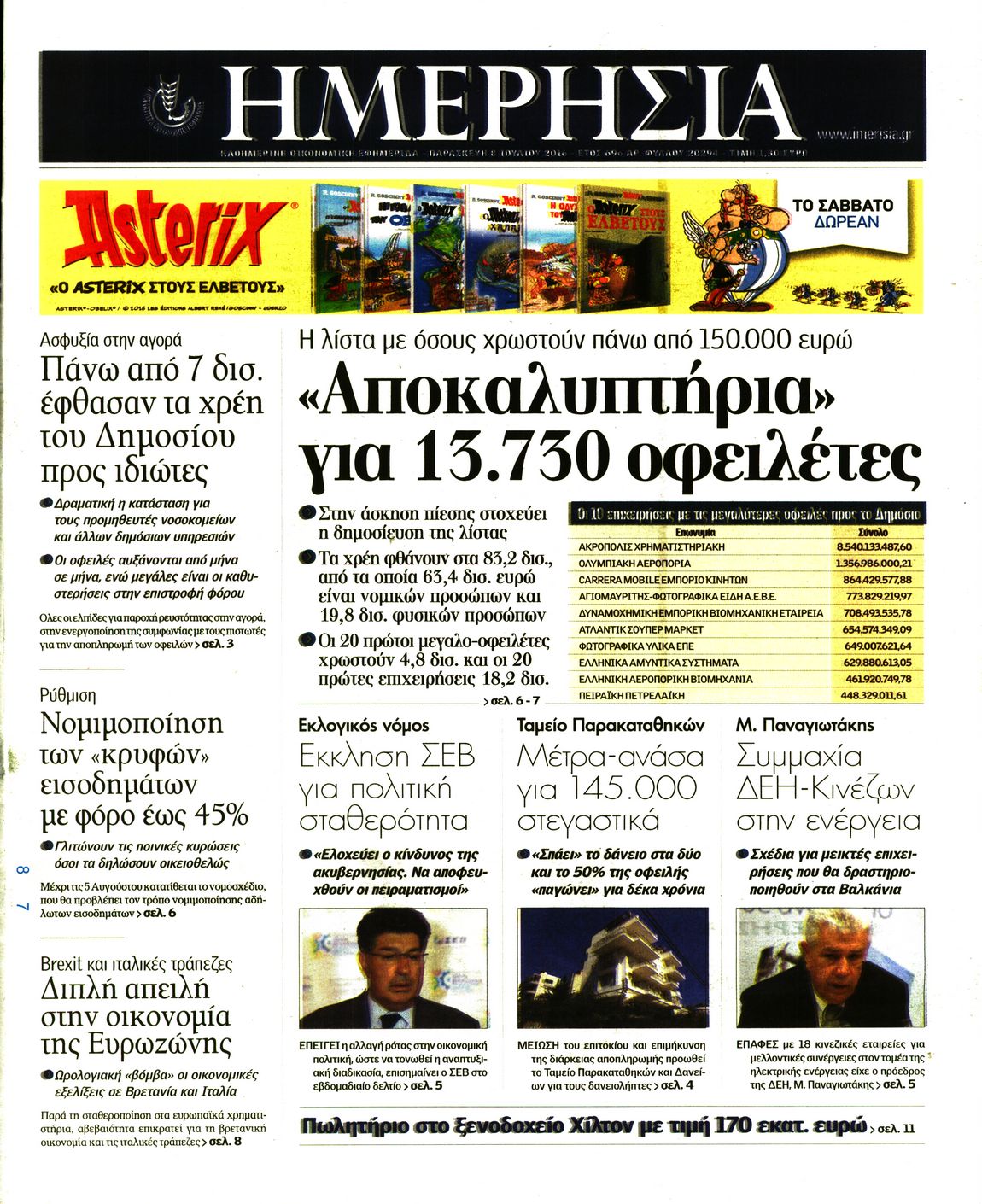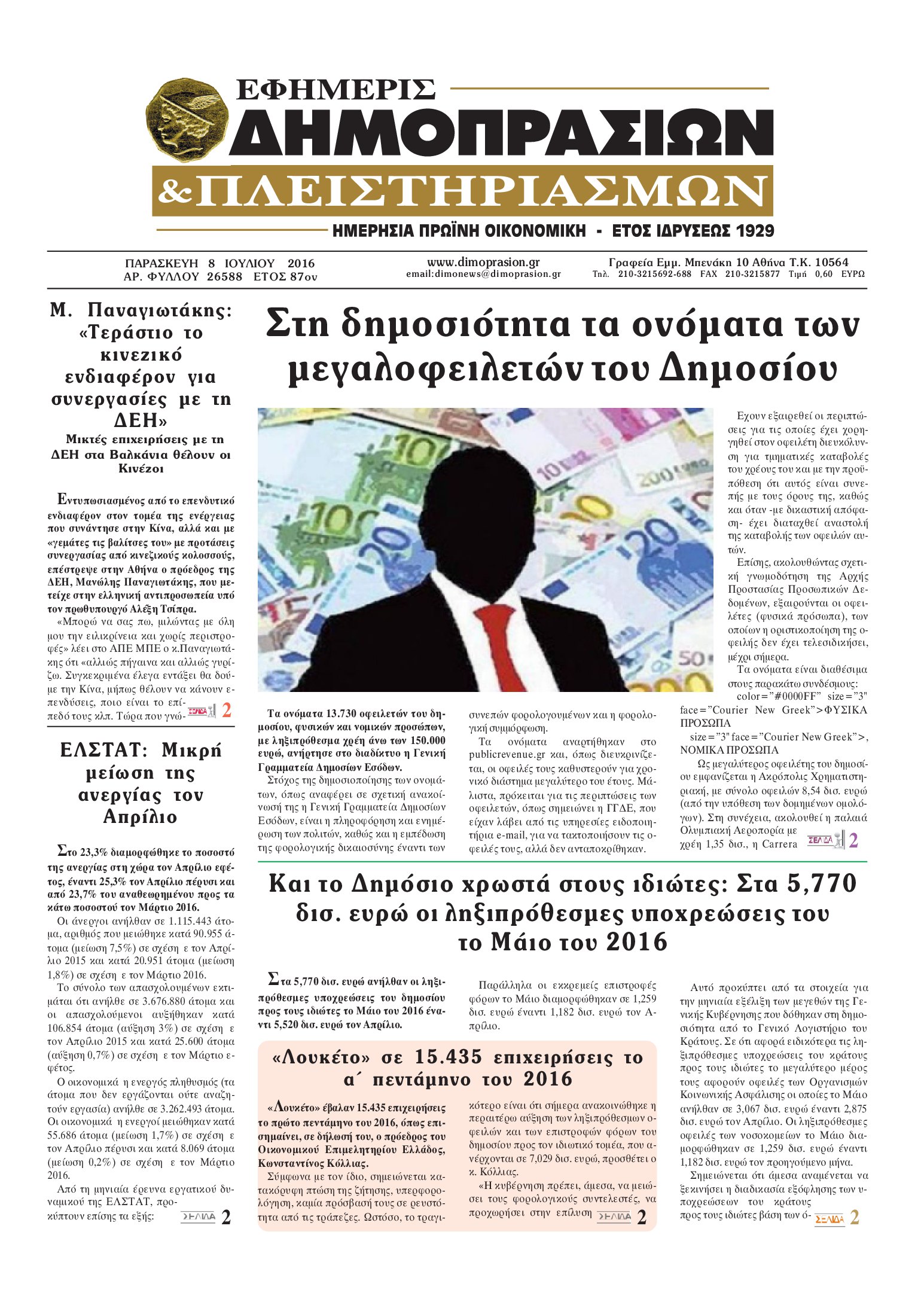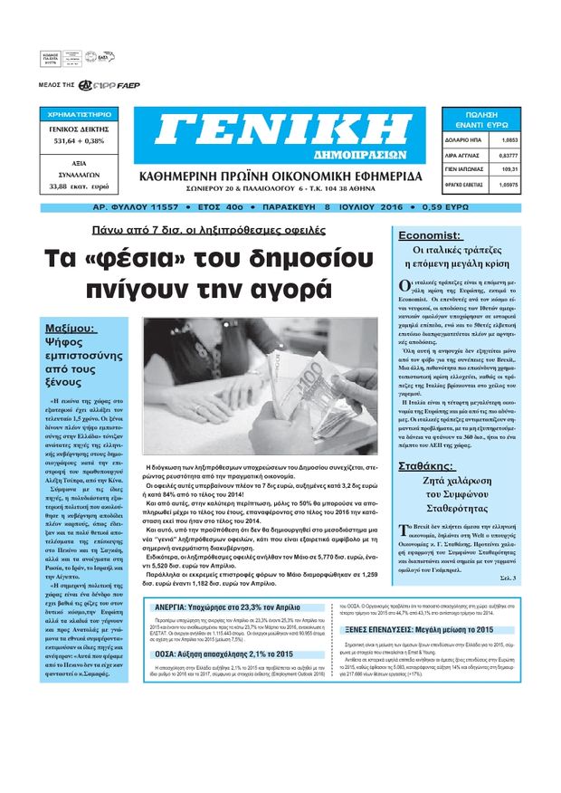 Οι οικονομικές εφημερίδες 8/7/2016 Enikos Newsroom 04:47, Παρασκευή 08 Ιουλίου 2016 Media Διαβάστε τα σημερινά πρωτοσέλιδα των οικονομικών εφημερίδων: ΟΙΚΟΝΟΜΙΚΕΣ ΕΦΗΜΕΡΙΔΕΣ ΠΡΩΤΟΣΕΛΙΔΑ Μοιράσου το: σχολίασε κι εσύ (0 σχόλια) Ακολουθήστε το enikos.gr στο Google News και μάθετε πρώτοι όλες τις ειδήσεις Δείτε όλες τις τελευταίες ειδήσεις από την Ελλάδα και τον Κόσμο στο enikos.gr Ειδήσεις Ροή Ειδήσεων 1 ώρα πριν Σύνοδος Κορυφής: Συνεχίζεται το θρίλερ στις Βρυξέλλες για την χρηματοδότηση της Ουκρανίας 4 ώρες πριν ΟΠΕΚΕΠΕ: Προφυλακιστέος ο φερόμενος αρχηγός και ο λογιστής της εγκληματικής οργάνωσης 6 ώρες πριν Αυξάνουν την πίεση προς την κυβέρνηση οι αγρότες: Κλείνουν παρακαμπτήριους και ανοίγουν διόδια – Τι θα γίνει τις γιορτές 5 ώρες πριν Φοινικούντα: Το Σάββατο απολογείται ο 30χρονος γιος γνωστού επιχειρηματία της Πλάκας που παραδόθηκε – Όσα είπε στους αστυνομικούς και ο ρόλος του στο έγκλημα 4 ώρες πριν ΑΕΚ – Κραϊόβα 3-2: Επική ανατροπή και πρόκριση στους «16» του Conference League η Ένωση 5 ώρες πριν Αρχαιολόγοι ανακάλυψαν ρωμαϊκά τεχνουργήματα από μια πόλη που δεν υπήρξε ποτέ – Τα τρία εντυπωσιακά κτίρια και ο αμφορέας με τις… σαρδέλες 6 ώρες πριν Ύπνος: Η απλή βραδινή ρουτίνα για να προστατεύσετε τα μαλλιά σας από το κρύο κατά τη διάρκεια του χειμώνα 7 ώρες πριν Manifesting: Πώς να συναντήσετε τον σύντροφο της ζωής σας, ανάλογα με τον μήνα γέννησής σας 2 ημέρες πριν 20 χρόνια τα Χριστούγεννα ξεκινούν στα Public με μεγάλη ποικιλία σε δώρα! 21 λεπτά πριν Αιματηρή βομβιστική επίθεση στην Υεμένη: Τουλάχιστον τρεις νεκροί και 13 τραυματίες 24 λεπτά πριν Στη Φλόριντα σήμερα οι διαβουλεύσεις σχετικά με τα επόμενα στάδια για τη Λωρίδα της Γάζας 28 λεπτά πριν Σίσσυ Τουμάση: «Είμαι ασθενοφοβική πάρα πολύ και με πιάνει μια παράνοια μ’ αυτό» 52 λεπτά πριν Ντόναλντ Τραμπ: Δεν χρειάζομαι την έγκριση του Κογκρέσου για να διατάξω στρατιωτικά πλήγματα στη Βενεζουέλα 1 ώρα πριν Σύνοδος Κορυφής: Συνεχίζεται το θρίλερ στις Βρυξέλλες για την χρηματοδότηση της Ουκρανίας ENIKOS NETWORK Σε περίοδο αυξημένης δραστηριότητας η γρίπη στην Ελλάδα-Μέτρα προστασίας από τον ΕΟΔΥ Σκέφτεστε συνέχεια συζητήσεις που έχετε κάνει; Τι σημαίνει αυτό, σύμφωνα με ειδικό Στεγαστικό: Τι λέει η ΠΟΜΙΔΑ για τα νέα μέτρα που ανακοίνωσε ο Κυριάκος Μητσοτάκης Λαγκάρντ: Αισιόδοξη για την ανάπτυξη της Ευρωζώνης, αβέβαιη για τον πληθωρισμό Χαρτογραφώντας το «σημείο χωρίς επιστροφή»: Για πρώτη φορά αποκαλύπτεται με λεπτομέρεια το ακανθώδες όριο της ατμόσφαιρας τ... Η Google καταργεί τη λειτουργία «dark web report» – Πώς θα μπορούν οι χρήστες να διαγράφουν τα δεδομένα τους περισσότερα 02:50 , Παρασκευή 19 Δεκεμβρίου 2025 GNTM: «Κλείδωσαν» οι τέσσερις φιναλίστ – Μεγάλη ανατροπή στις τελευταίες αποχωρήσεις Για προτελευταία φορά εμφανίστηκαν στο πλατό του GNTM οι φιναλίστ του φετινού κύκλου, το βράδυ... 17:45 , Πέμπτη 18 Δεκεμβρίου 2025 ROUK ZOUK: Εορταστικό επεισόδιο με καλεσμένους τους πρωταγωνιστές του «Γιατί ρε πατέρα» Το Σάββατο 20 Δεκεμβρίου στις 21:00, η Ζέτα Μακρυπούλια υποδέχεται εκλεκτούς ηθοποιούς που όλο... 17:20 , Πέμπτη 18 Δεκεμβρίου 2025 Άγιος έρωτας: Η Χριστίνα εξομολογείται στον πατέρα Νικόλαο, απόψε στις 21:00 στον Alpha Η Νότα αποφασίζει να εκδικηθεί τον Πέτρο και τον Στέφανο, για χάρη του Λούη, όμως τα πράγματα ... 16:50 , Πέμπτη 18 Δεκεμβρίου 2025 Να μ’ αγαπάς: Ζωή και Φωτεινή συμφιλιώνονται ως μάνα με κόρη, απόψε στις 20:00 Η ταυτότητα του Άγγελου αποκαλύπτεται στο νέο επεισόδι