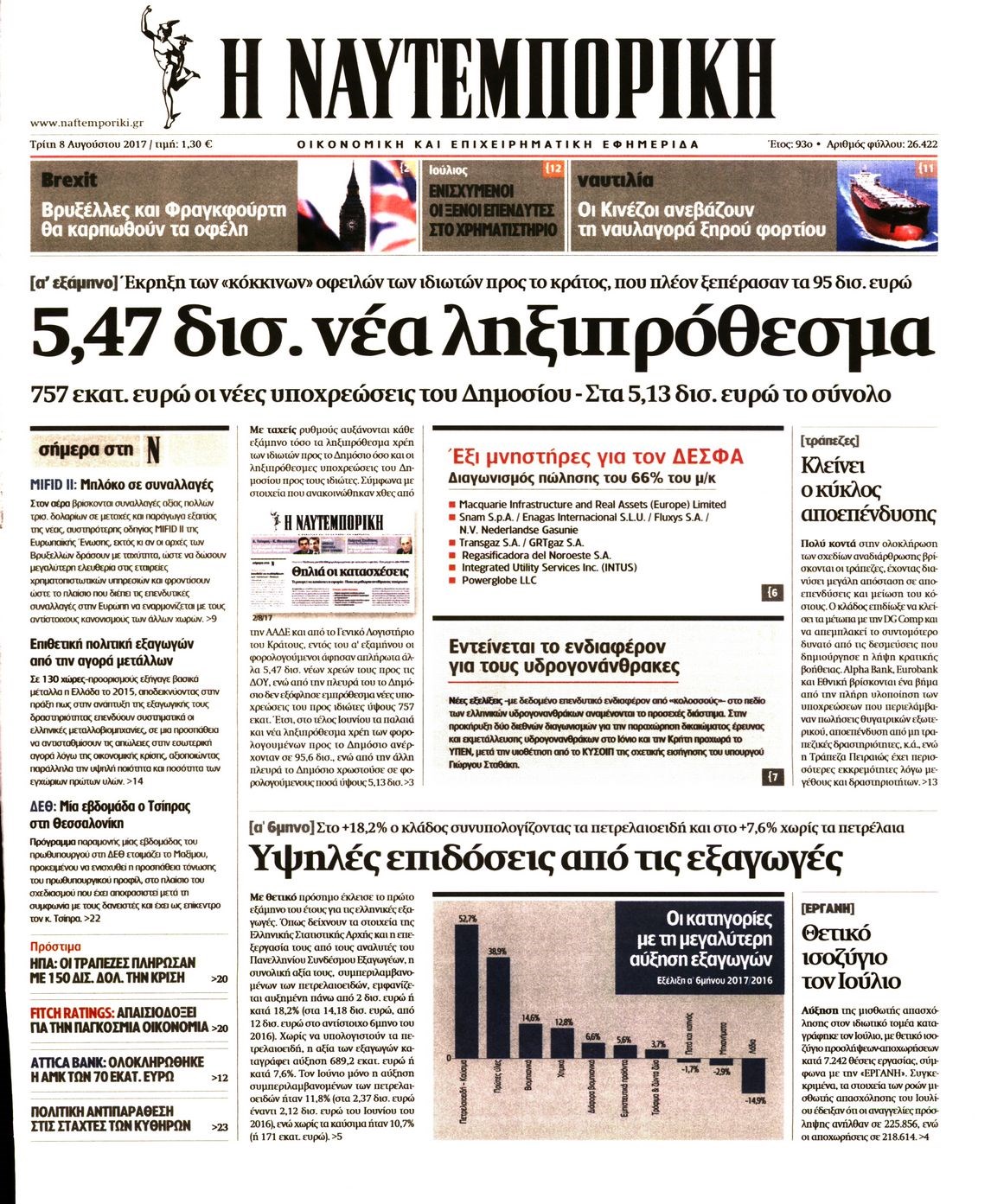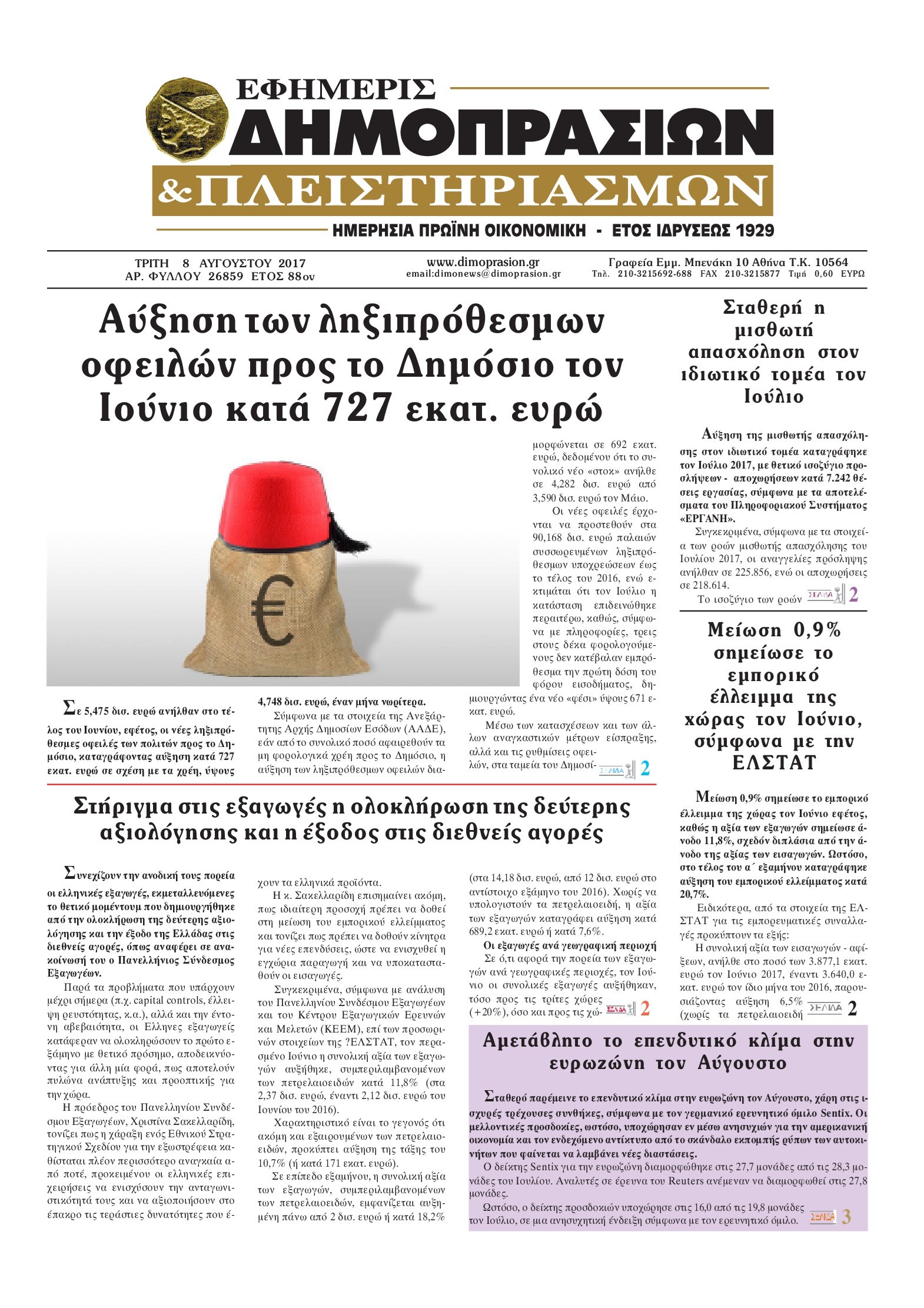 Οι οικονομικές εφημερίδες 8/8/2017 Κώστας Τεό 07:16, Τρίτη 08 Αυγούστου 2017 Media Διαβάστε τα σημερινά πρωτοσέλιδα των οικονομικών εφημερίδων: ΟΙΚΟΝΟΜΙΚΕΣ ΕΦΗΜΕΡΙΔΕΣ ΠΡΩΤΟΣΕΛΙΔΑ Μοιράσου το: σχολίασε κι εσύ (0 σχόλια) Ακολουθήστε το enikos.gr στο Google News και μάθετε πρώτοι όλες τις ειδήσεις Δείτε όλες τις τελευταίες ειδήσεις από την Ελλάδα και τον Κόσμο στο enikos.gr Ειδήσεις Ροή Ειδήσεων 1 ώρα πριν Δημοσκόπηση Metron Analysis: Στις 10 μονάδες η διαφορά ΝΔ-ΠΑΣΟΚ, στην 3η θέση η Πλεύση Ελευθερίας – 8 στους 10 στηρίζουν τον αγώνα των αγροτών 6 ώρες πριν Αγρότες: «Όχι στον διάλογο, μας εμπαίζει η κυβέρνηση» – Αποφάσισαν κλιμάκωση των κινητοποιήσεων, τι θα γίνει τα Χριστούγεννα 1 ώρα πριν Νίκος Παππάς στον ΑΝΤ1: «Δεν κρύβομαι – Μετά το συμβάν ακολούθησα κανονικά το πρόγραμμά μου» – ΒΙΝΤΕΟ 3 ώρες πριν Αθήνα: Εξαρθρώθηκε εγκληματική οργάνωση που διακινούσε ναρκωτικά σε μορφή σοκολάτας – Δύο τράπερ ανάμεσα στους 4 συλληφθέντες – ΒΙΝΤΕΟ 1 ώρα πριν Διαμαντής Καραναστάσης: Οδηγούσε υπό την επήρεια αλκοόλ – Του αφαιρέθηκε το δίπλωμα και του επιβλήθηκε πρόστιμο 350 ευρώ 2 ώρες πριν Manifesting: Πώς να συναντήσετε τον σύντροφο της ζωής σας, ανάλογα με τον μήνα γέννησής σας 4 ώρες πριν Γάμος: 11 ψυχρές αλλά ευγενικές φράσεις, που λέει ένας άνδρας όταν σκέφτεται τον χωρισμό 3 ώρες πριν Σφουγγάρισμα: Η συνήθεια που θα σας βοηθήσει να διατηρήσετε το σπίτι σας καθαρό και τακτοποιημένο 2 ημέρες πριν 20 χρόνια τα Χριστούγεννα ξεκινούν στα Public με μεγάλη ποικιλία σε δώρα! 4 λεπτά πριν Ελισάβετ Κωνσταντινίδου για τον Γεράσιμο Μιχελή και την Πόπη Χριστοδούλου: «Ξέρω ότι έχουν πάει απλώς κάπου αλλού, ότι δεν είναι ο θάνατος έτσι όπως τον έχουμε στο μυαλό μας» 8 λεπτά πριν Κρήτη: Νέες αποκαλύψεις για τον 54χρονο που κατηγορείται ότι εξαπάτησε τους γονείς του 33χρονου – Ζητούσε τρίχες αγνοουμένων 15 λεπτά πριν Τσιάρας: Δεν θα κινδυνέψουν οι πληρωμές των αγροτών – Χρειαζόμαστε μια νέα πολιτική, ένα restart 22 λεπτά πριν Δέσποινα Βανδή: Το βίντεο που δημοσίευσε με τον Γιώργο Νικολαΐδη – «Έχουμε καταστραφεί από τα μελομακάρονά σου» 27 λεπτά πριν Κλήρωση ΤΖΟΚΕΡ 18/12/2025: Αυτοί είναι οι τυχεροί αριθμοί ENIKOS NETWORK Σε περίοδο αυξημένης δραστηριότητας η γρίπη στην Ελλάδα-Μέτρα προστασίας από τον ΕΟΔΥ Σκέφτεστε συνέχεια συζητήσεις που έχετε κάνει; Τι σημαίνει αυτό, σύμφωνα με ειδικό ΑΣΕΠ 2ΓΒ/2025: Σήμερα αρχίζει η υποβολή ενστάσεων – Πότε θα βγουν τα οριστικά αποτελέσματα ΕΛΤΑ: Αυτό είναι το νέο σχέδιο μετασχηματισμού του Οργανισμού- Τι δήλωσαν Πιερρακάκης και Παπαστεργίου Χαρτογραφώντας το «σημείο χωρίς επιστροφή»: Για πρώτη φορά αποκαλύπτεται με λεπτομέρεια το ακανθώδες όριο της ατμόσφαιρας τ... Η Google καταργεί τη λειτουργία «dark web report» – Πώς θα μπορούν οι χρήστες να διαγράφουν τα δεδομένα τους περισσότερα 17:45 , Πέμπτη 18 Δεκεμβρίου 2025 ROUK ZOUK: Εορταστικό επεισόδιο με καλεσμένους τους πρωταγωνιστές του «Γιατί ρε πατέρα» Το Σάββατο 20 Δεκεμβρίου στις 21:00, η Ζέτα Μακρυπούλια υποδέχεται εκλεκτούς ηθοποιούς που όλο... 17:20 , Πέμπτη 18 Δεκεμβρίου 2025 Άγιος έρωτας: Η Χριστίνα εξομολογείται στον πατέρα Νικόλαο, απόψε στις 21:00 στον Alpha Η Νότα αποφασίζει να εκδικηθεί τον Πέτρο και τον Στέφανο, για χάρη του Λούη, όμως τα πράγματα ... 16:50 , Πέμπτη 18 Δεκεμβρίου 2025 Να μ’ αγαπάς: Ζωή και Φωτεινή συμφιλιώνονται ως μάνα με κόρη, απόψε στις 20:00 Η ταυτότητα του Άγγελου αποκαλύπτεται στο νέο επεισόδιο της σειράς “Να μ’ αγαπάς... 15:52 , Πέμπτη 18 Δεκεμβρίου 2025 
