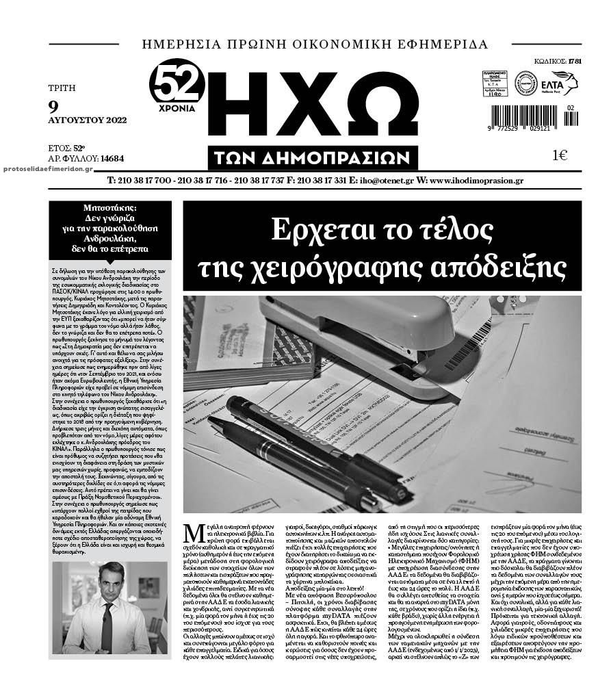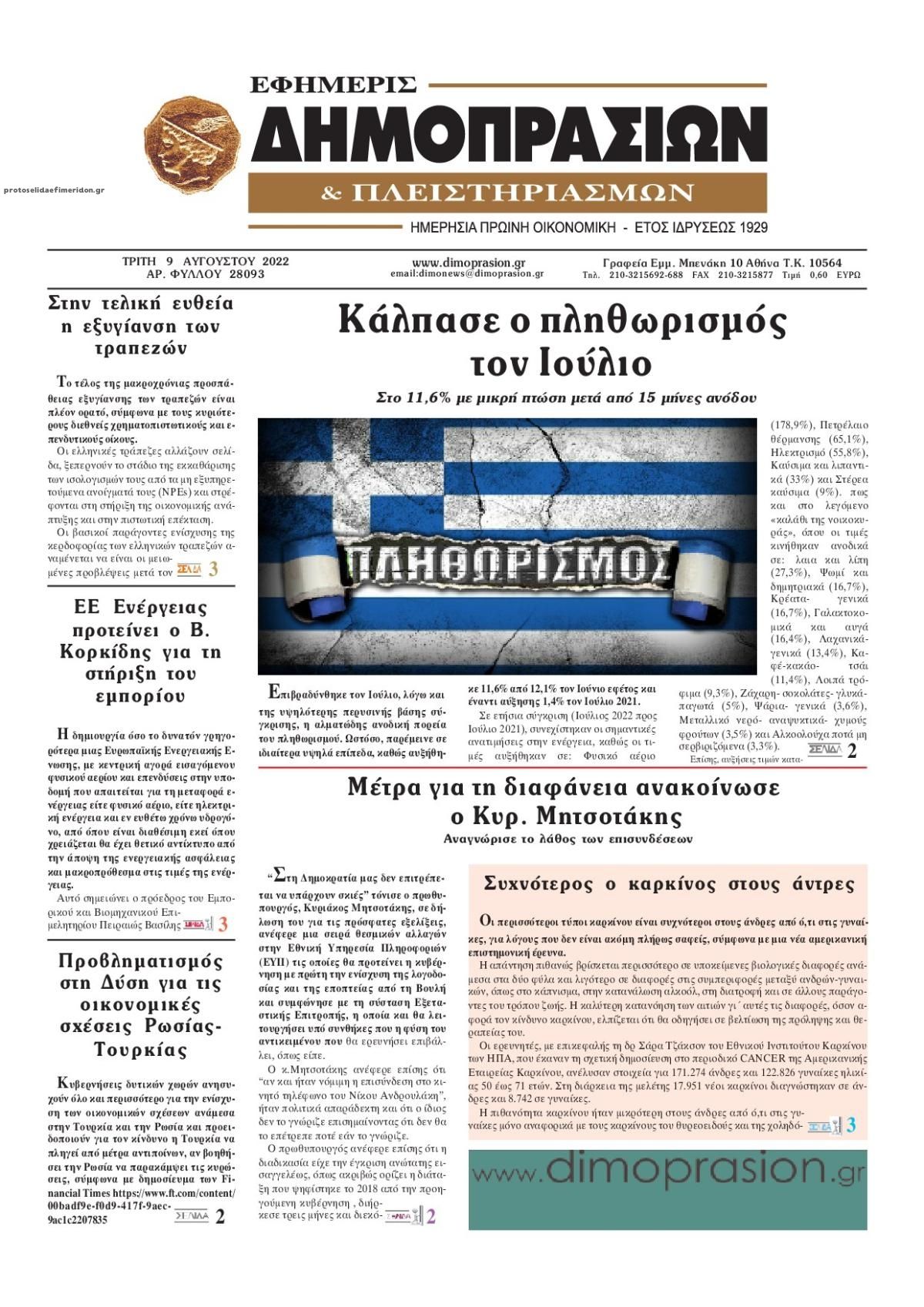 Οι οικονομικές εφημερίδες 9/8/2022 Σήφης Γαρυφαλάκης 06:20, Τρίτη 09 Αυγούστου 2022 Media Διαβάστε τα πρωτοσέλιδα από τις οικονομικές εφημερίδες, σήμερα 09/08/2022. ΕΦΗΜΕΡΙΔΕΣ ΟΙΚΟΝΟΜΙΚΕΣ ΕΦΗΜΕΡΙΔΕΣ ΠΡΩΤΟΣΕΛΙΔΑ Μοιράσου το: Οι οικονομικές εφημερίδες 8/8/2022 Οι οικονομικές εφημερίδες 7/8/2022 Οι οικονομικές εφημερίδες 6/8/2022 σχολίασε κι εσύ (0 σχόλια) Ακολουθήστε το enikos.gr στο Google News και μάθετε πρώτοι όλες τις ειδήσεις Δείτε όλες τις τελευταίες ειδήσεις από την Ελλάδα και τον Κόσμο στο enikos.gr Ειδήσεις Ροή Ειδήσεων 8 ώρες πριν Μητσοτάκης: Αναγκαία η μεταρρύθμιση του πρωτογενούς τομέα – Τα 6 νέα μέτρα για το στεγαστικό και οι αναφορές σε «Ιθάκη» και «πολιτικούς του καναπέ» 7 ώρες πριν Δάνεια σε ελβετικό φράγκο: Τα βασικά σημεία της ρύθμισης – ανάσας για 40.000 δανειολήπτες – Αναλυτικός οδηγός με ερωτήσεις και απαντήσεις 7 ώρες πριν Κυψέλη: Εξιτήριο πήρε η 14χρονη μαθήτρια που μαχαιρώθηκε από την 16χρονη σε σχολείο – «Θέλω να βοηθήσω το παιδί, έχει μπλέξει με κακές παρέες» 7 ώρες πριν Τραμπ: Γιατί κατέθεσε τώρα την αγωγή κατά του BBC – Πώς η κίνησή του εξυπηρετεί το νέο δόγμα του για «αντίσταση» στην Ευρώπη, υπέρ των συντηρητικών 8 ώρες πριν ΟΠΕΚΕΠΕ – Παράνομες επιδοτήσεις: Ελεύθεροι με περιοριστικούς όρους και οι 7 κατηγορούμενοι που απολογήθηκαν σήμερα 7 ώρες πριν Ανακαλύφθηκε βυθισμένη πέτρινη κατασκευή ανοιχτά της Κριμαίας – Αποτελεί μέρος αρχαίας ελληνικής αποικίας 8 ώρες πριν Ύπνος: Αυτό μπορεί να είναι το χειρότερο λάθος για το βιολογικό ρολόι σας, σύμφωνα με ειδικό 9 ώρες πριν Αριθμολογία: Οι άνθρωποι που έχουν γεννηθεί αυτές τις 3 ημερομηνίες, προσελκύουν μεγάλη τύχη πριν από το τέλος του 2025 11 ώρες πριν Οι 7 συμπεριφορές που μαρτυρούν ότι ένας άνδρας επενδύει μακροπρόθεσμα σε μια σχέση 28 δευτερόλεπτα πριν Σαν σήμερα 17 Δεκεμβρίου: Τα σημαντικότερα γεγονότα της ημέρας 5 λεπτά πριν Οι οικονομικές εφημερίδες 17/12/2025 10 λεπτά πριν Οι αθλητικές εφημερίδες 17/12/2025 15 λεπτά πριν Οι πολιτικές εφημερίδες 17/12/2025 23 λεπτά πριν Τα ζώδια σήμερα, Τετάρτη 17 Δεκεμβρίου: Κριοί, η αυτοπεποίθησή σας ενισχύεται ENIKOS NETWORK Αίτημα ΙΣΑ για την εξαίρεση των προσωπικών γιατρών από τις κατ’ οίκον επισκέψεις Η σκανδιναβική μέθοδος στον ύπνο που μπορεί να σώσει έναν γάμο Πιερρακάκης: Ο προϋπολογισμός συμβάλλει ουσιαστικά στην ενίσχυση της αγοραστικής δύναμης της πλειονότητας των εργαζομένων e-ΕΦΚΑ: Παρατείνεται η προθεσμία για την υποβολή ΑΠΔ – Ποιους αφορά Σύγχρονος Νοστράδαμος: Προειδοποιεί για «μεγάλο γεγονός» τους επόμενους μήνες που θα συγκλονίσει τη Βρετανία και τον κόσμο Τεστ παρατηρητικότητας: Μπορείτε να βρείτε τις 3 διαφορές στις εικόνες με έναν πιγκουίνο σε 14 δευτερόλεπτα περισσότερα 05:48 , Τετάρτη 17 Δεκεμβρίου 2025 Οι οικονομικές εφημερίδες 17/12/2025 Διαβάστε τα πρωτοσέλιδα από τις οικονομικές εφημερίδες, σήμερα 17/12/2025. 05:43 , Τετάρτη 17 Δεκεμβρίου 2025 Οι αθλητικές εφημερίδες 17/12/2025 Διαβάστε τα πρωτοσέλιδα από τις αθλητικές εφημερίδες, σήμερα 17/12/2025. 05:38 , Τετάρτη 17 Δεκεμβρίου 2025 Οι πολιτικές εφημερίδες 17/12/2025 Διαβάστε τα πρωτοσέλιδα από τις πολιτικές εφημερίδες, σήμερα 17/12/2025. 20:06 , Τρίτη 16 Δεκεμβρίου 2025 Ο ΣΚΑΙ καταγγέλλει τον ΕΚΚΟΜΕΔ Επιστολή με την οποία καταγράφει την έντονη διαμαρτυρία του προς τον διευθύνοντα σύμβουλο του... ΤΕΛΕΥΤΑΙΕΣ ΕΙΔΗΣΕΙΣ 5 λεπτά πριν Οι οικονομικές εφημερίδες 17/12/2025 10 λεπτά πριν Οι αθλητικές εφημερίδες 17/12/2025 15 λεπτά πριν Οι πολιτικές εφημερίδες 17/12/2025 23 λεπτά πριν 