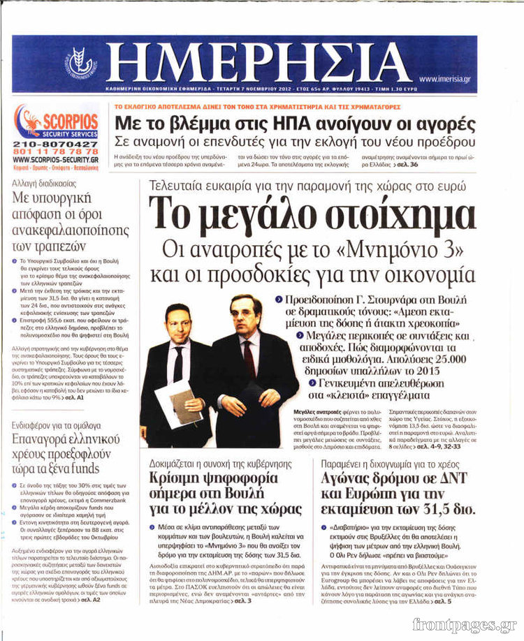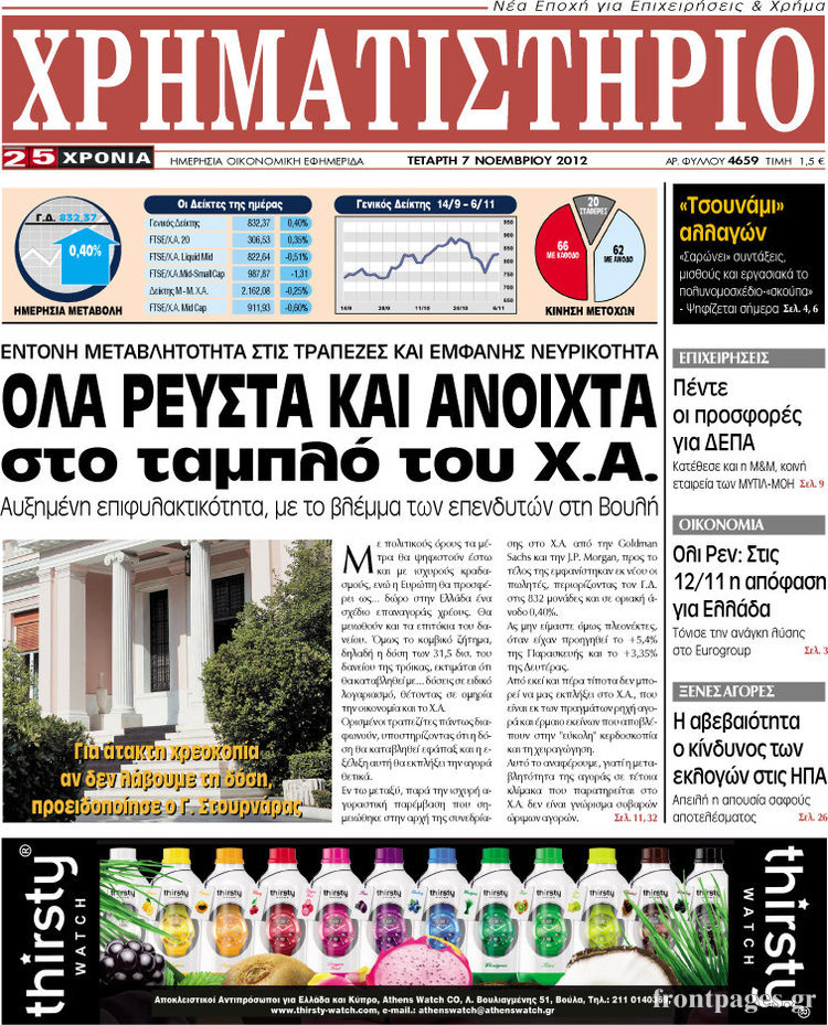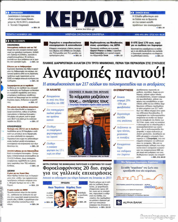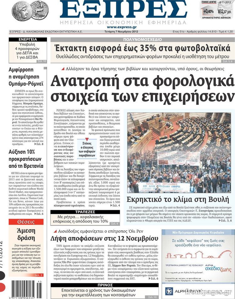 Οι οικονομικές εφημερίδες Enikos Newsroom 09:11, Τετάρτη 07 Νοεμβρίου 2012 Media Τα σημερινά πρωτοσέλιδα των οικονομικών εφημερίδων. ΟΙΚΟΝΟΜΙΚΑ ΟΙΚΟΝΟΜΙΚΑ ΘΕΜΑΤΑ ΟΙΚΟΝΟΜΙΚΕΣ ΕΦΗΜΕΡΙΔΕΣ ΠΡΩΤΟΣΕΛΙΔΑ Μοιράσου το: σχολίασε κι εσύ (0 σχόλια) Ακολουθήστε το enikos.gr στο Google News και μάθετε πρώτοι όλες τις ειδήσεις Δείτε όλες τις τελευταίες ειδήσεις από την Ελλάδα και τον Κόσμο στο enikos.gr Ειδήσεις Ροή Ειδήσεων 8 ώρες πριν Μακελειό στο Σίδνεϊ: Πατέρας και γιος οι δράστες της τρομοκρατικής επίθεσης – Γιατί η Αυστραλία βάζει στο στόχαστρο το Ιράν 8 ώρες πριν Μακελειό στην Αυστραλία: «Πέρασαν οι σφαίρες πάνω από το αυτοκίνητο» – Συγκλονίζει η μαρτυρία Έλληνα που ζει στο Σίδνεϊ 7 ώρες πριν Τρομοκρατική επίθεση στο Σίδνεϊ: «Το αναπόφευκτο συνέβη πλέον» – Πώς οι δράστες είχαν χάσει τον ανθρωπισμό τους πριν πατήσουν την σκανδάλη 7 ώρες πριν Όλα τα αιτήματα αγροτών, κτηνοτρόφων και μελισσοκόμων προς την κυβέρνηση – Παραμένουν στα μπλόκα και προαναγγέλλουν κλιμάκωση 10 ώρες πριν Λακωνία: Βίντεο ντοκουμέντο από την επιχείρηση διάσωσης της 13χρονης που έπεσε σε πηγάδι – Ποια ήταν τα πρώτα λόγια της 20 λεπτά πριν Οπτική ψευδαίσθηση: Μόνο το 1% των ανθρώπων θα βρει το ψάρι σε 12 δευτερόλεπτα 35 λεπτά πριν Διατροφή: Γιατρός προειδοποιεί για 2 απλά λάθη που αυξάνουν τον κίνδυνο χρόνιων παθήσεων 1 ώρα πριν Τα ζώδια σήμερα, Δευτέρα 15 Δεκεμβρίου: Ιχθύες, ξεκινήστε από εκεί που η παρουσία σας έχει σημασία 9 ώρες πριν Ύπνος: 5 λόγοι για τους οποίους ξυπνάτε κουρασμένοι το πρωί κατά τη διάρκεια του χειμώνα 4 λεπτά πριν Δημόσιο χρέος: Η Ελλάδα αποπληρώνει σήμερα πρόωρα 5,287 δισ. ευρώ από το πρώτο μνημόνιο – Στα 1,6 δισ. ευρώ η ελάφρυνση 12 λεπτά πριν Τραγωδία στην Κολομβία: Δεκαεπτά νεκροί, ανάμεσά τους 16 μαθητές λυκείου, από πτώση λεωφορείου σε χαράδρα 20 λεπτά πριν Οπτική ψευδαίσθηση: Μόνο το 1% των ανθρώπων θα βρει το ψάρι σε 12 δευτερόλεπτα 27 λεπτά πριν Δώρο Χριστουγέννων 2025: Πότε ξεκινά η πληρωμή του και πως να το υπολογίσετε – Ποιοι θα πάρουν περισσότερα φέτος 35 λεπτά πριν Διατροφή: Γιατρός προειδοποιεί για 2 απλά λάθη που αυξάνουν τον κίνδυνο χρόνιων παθήσεων ENIKOS NETWORK 8 κορυφαίες συμβουλές για άνδρες που θέλουν φλογερή σεξουαλική ζωή, σύμφωνα με ειδικό Baby botox: Ποια τα οφέλη και οι κίνδυνοι του να ξεκινήσει κάποιος τις ενέσεις πριν εμφανιστούν ρυτίδες Τέλος οι διώξεις για χρέη σε Εφορία και ΕΦΚΑ – Τι προβλέπει νέα διάταξη μετά την πτώχευση Υπουργείο Αγροτικής Ανάπτυξης: Ενισχύσεις de minimis ύψους 2,1 εκατ. ευρώ – Οι δικαιούχοι Σύγχρονος Νοστράδαμος: Προειδοποιεί για «μεγάλο γεγονός» τους επόμενους μήνες που θα συγκλονίσει τη Βρετανία και τον κόσμο Τεστ παρατηρητικότητας: Μπορείτε να βρείτε τις 3 διαφορές στις εικόνες με έναν πιγκουίνο σε 14 δευτερόλεπτα περισσότερα 05:49 , Δευτέρα 15 Δεκεμβρίου 2025 Οι οικονομικές εφημερίδες 15/12/2025 Διαβάστε τα πρωτοσέλιδα από τις οικονομικές εφημερίδες, σήμερα 15/12/2025. 05:43 , Δευτέρα 15 Δεκεμβρίου 2025 Οι αθλητικές εφημερίδες 15/12/2025 Διαβάστε τα πρωτοσέλιδα από τις αθλητικές εφημερίδες, σήμερα 15/12/2025. 05:38 , Δευτέρα 15 Δεκεμβρίου 2025 Οι πολιτικές εφημερίδες 15/12/2025 Διαβάστε τα πρωτοσέλιδα από τις πολιτικές εφημερίδες, σήμερα 15/12/2025. 21:34 , Κυριακή 14 Δεκεμβρίου 2025 Ο Δικαστής: Η Λέττα είναι αποφασισμένη να αποκαλύψει την αλήθεια για το τροχαίο, απόψε στις 21:45 στον ΑΝΤ1 Ραγδαίες οι εξελίξεις στο νέο επεισόδιο της σειράς “Ο Δικαστής” απόψε στις 21:45 σ... ΤΕΛΕΥΤΑΙΕΣ ΕΙΔΗΣΕΙΣ 4 λεπτά πριν Δημόσ