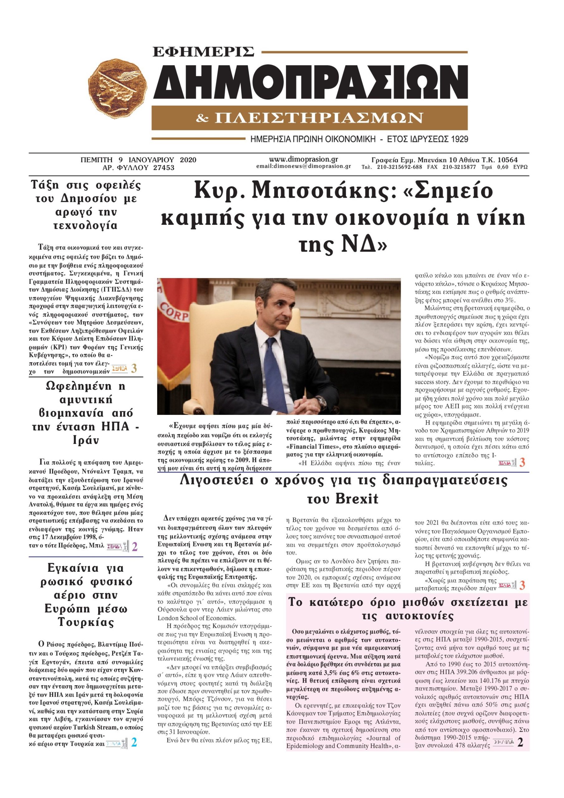 Οι οικονομικές εφημερίδες 9/1/2020 Διονύσης Νίκκας 06:55, Πέμπτη 09 Ιανουαρίου 2020 Media Διαβάστε τα πρωτοσέλιδα των οικονομικών εφημερίδων… ΕΦΗΜΕΡΙΔΕΣ ΟΙΚΟΝΟΜΙΚΕΣ ΠΡΩΤΟΣΕΛΙΔΑ Μοιράσου το: σχολίασε κι εσύ (0 σχόλια) Ακολουθήστε το enikos.gr στο Google News και μάθετε πρώτοι όλες τις ειδήσεις Δείτε όλες τις τελευταίες ειδήσεις από την Ελλάδα και τον Κόσμο στο enikos.gr Ειδήσεις Ροή Ειδήσεων 50 λεπτά πριν Έξοδος Χριστουγέννων: Αυξημένη η κίνηση προς την Κεντρική Ελλάδα – Η εικόνα στα αγροτικά μπλόκα και οι δρόμοι που είναι ανοιχτοί 2 ώρες πριν Καιρός: Επιδείνωση με ισχυρές βροχές και καταιγίδες σήμερα – Πού θα εκδηλωθούν έντονα φαινόμενα 2 ώρες πριν Ελλάδα – Κύπρος – Ισραήλ: Η νέα αμυντική συνεργασία, το κέντρο κυβερνοασφάλειας και τα νεύρα της Τουρκίας 9 ώρες πριν Τραγωδία στην Τουρκία: Νεκρός ο αρχηγός του Γενικού Επιτελείου της Λιβύης – Συνετρίβη λίγο μετά την απογείωση το ιδιωτικό τζετ που τον μετέφερε – ΦΩΤΟ και ΒΙΝΤΕΟ 1 ώρα πριν Το όνομα Τραμπ για πρώτη φορά στα αρχεία Επστάιν – 5 συμπεράσματα από τη νέα μαζική δημοσίευση εγγράφων 4 ώρες πριν Τα ζώδια σήμερα, Τετάρτη 24 Δεκεμβρίου: Αιγόκεροι, χρειάζεται να επαναπροσδιορίσετε τη σχέση σας με τον έρωτα 3 ώρες πριν Χοληστερίνη και σάκχαρο στο αίμα: Η κατανάλωση ενός ροφήματος κάθε μέρα μπορεί να βοηθήσει στην μείωσή τους 3 ώρες πριν Οπτική ψευδαίσθηση: Μόνο αν είσαι ο Σέρλοκ Χολμς θα βρεις τον αριθμό «87» σε 7 δευτερόλεπτα 24 ώρες πριν Η Coca-Cola και ο Ελληνικός Ερυθρός Σταυρός μαζί αυτά τα Χριστούγεννα: Μια μεγάλη αγκαλιά για τους συνανθρώπους μας που έχουν ανάγκη 6 λεπτά πριν Ιταλία: Έκρηξη σε αυτοκινητόδρομο – Φορτηγό με αέριο τυλίχθηκε στις φλόγες – Βίντεο 15 λεπτά πριν Παραμονή των Χριστουγέννων: Πώς θα λειτουργήσουν σήμερα τα καταστήματα, τα σούπερ μάρκετ, οι φούρνοι και οι λαϊκές αγορές 22 λεπτά πριν Παρά Πέντε: Όλα όσα έγιναν στο reunion της θρυλικής σειράς – Το τραγούδι των ηθοποιών και το βίντεο για τους συντελεστές που έχουν φύγει από τη ζωή 28 λεπτά πριν Τραγωδία στη Σλοβακία: Κατέρρευσε οροφή σε εταιρεία – 3 νεκροί 35 λεπτά πριν Αγρότης ανακάλυψε τυχαία λείψανα δύο ανθρώπων της Εποχής του Χαλκού – Το μυστήριο πίσω από την περίεργη ταφή ENIKOS NETWORK 5 τροφές που μειώνουν τη χοληστερίνη φυσικά – Θα τις βρείτε και στο γιορτινό τραπέζι «Έχω γενέθλια τα Χριστούγεννα και δεν μου αρέσει» – 40χρονος αποκαλύπτει την αλήθεια που κανείς δεν λέει Οι πολιτικές εφημερίδες 24/12/2025 Οι αθλητικές εφημερίδες 24/12/2025 Ο Google Assistant θα παραμείνει λίγο περισσότερο για ορισμένους χρήστες Android Τεστ προσωπικότητας: Το βάζο που θα επιλέξετε αποκαλύπτει πώς λύνετε προβλήματα στη ζωή σας περισσότερα 08:43 , Τετάρτη 24 Δεκεμβρίου 2025 Παρά Πέντε: Όλα όσα έγιναν στο reunion της θρυλικής σειράς – Το τραγούδι των ηθοποιών και το βίντεο για τους συντελεστές που έχουν φύγει από τη ζωή Ήταν Σεπτέμβρης του 2005 όταν έκανε πρεμιέρα στο MEGA το «Παρά Πέντε». Η θρυλική σειρά που λατ... 07:28 , Τετάρτη 24 Δεκεμβρίου 2025 Οι αθλητικές μεταδόσεις 24/12/2025 Τα παιχνίδια από το Κύπελλο Εθνών Αφρικής ξεχωρίζουν στο πρόγραμμα με τις αθλητικές μεταδόσεις... 07:01 , Τετάρτη 24 Δεκεμβρίου 2025 Αυτή την Κυριακή με τη Realnews: Το μυστήριο των Χριστουγέννων – Οι γιορτές στη Νέα Υόρκη παίρνουν μια αναπάντεχη τροπή, σε ένα συγκλονιστικό θρίλερ από τη συγγραφέα Vicki Delany Αυτή την Κυριακή με τη Realnews: Το μυστήριο των Χριστουγέννων – Οι γιορτές στη Νέα Υόρκ... 05:48 , Τετάρτη 24 Δεκεμβρίου 2025 Οι οικονομικές εφημερίδ