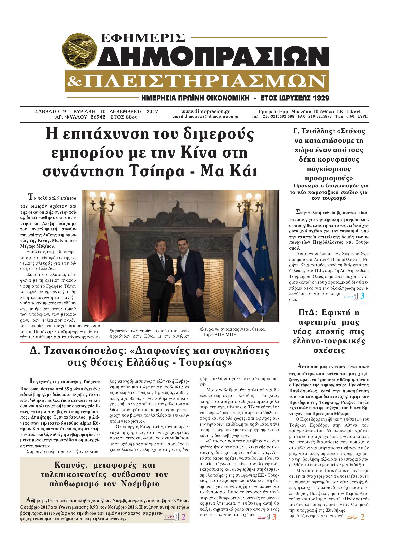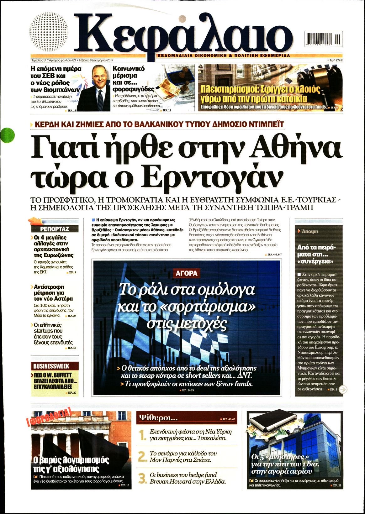 Οι οικονομικές εφημερίδες 9/12/2017 Enikos Newsroom 07:22, Σάββατο 09 Δεκεμβρίου 2017 Media Διαβάστε τα σημερινά πρωτοσέλιδα των οικονομικών εφημερίδων: ΟΙΚΟΝΟΜΙΚΕΣ ΕΦΗΜΕΡΙΔΕΣ ΠΡΩΤΟΣΕΛΙΔΑ Μοιράσου το: σχολίασε κι εσύ (0 σχόλια) Ακολουθήστε το enikos.gr στο Google News και μάθετε πρώτοι όλες τις ειδήσεις Δείτε όλες τις τελευταίες ειδήσεις από την Ελλάδα και τον Κόσμο στο enikos.gr Ειδήσεις Ροή Ειδήσεων 1 ώρα πριν Μπλόκα: Οι αγρότες σηκώνουν τις μπάρες σε διόδια για τους εκδρομείς των Χριστουγέννων και μοιράζουν προϊόντα – Βίντεο 2 ώρες πριν Τσιάρας προς αγρότες: Τα μπλόκα και τα πείσματα δεν ωφελούν – Οι λύσεις περνούν μέσα από τον διάλογο 2 ώρες πριν Αρχεία Έπσταϊν: Οι συγκλονιστικές φωτογραφίες – Ο Μάικλ Τζάκσον, ο Μικ Τζάγκερ και ο Κέβιν Σπέισι ανάμεσα στους διάσημους που απεικονίζονται 21 λεπτά πριν Μαθητές διακινούσαν κοκαΐνη και χασίς σε σχολείο της Αττικής – 12 συλλήψεις 3 ώρες πριν Ινδία: Επτά ελέφαντες σκοτώθηκαν κατά τη σύγκρουση επιβατικού τρένου με κοπάδι 5 ώρες πριν Μία νέα «χρυσή» περίοδος αρχίζει για 3 ζώδια από σήμερα – «Μία αναπάντεχη ευκαιρία οδηγεί στην επιτυχία» 6 ώρες πριν Αγχώνεται για το χριστουγεννιάτικο δώρο που πήρε στην πλούσια σύντροφό του – «Φοβάμαι πως θα το βρει φθηνιάρικο, φοράει βραχιόλια Cartier» 3 ώρες πριν Διαιτολόγος αποκαλύπτει 9 πρωινές συνήθειες που «λιώνουν» το κοιλιακό λίπος – «Υποστηρίζουν την υγιεινή απώλεια βάρους» 4 ώρες πριν Οι 7 φράσεις που δεν λένε ποτέ οι συναισθηματικά έξυπνοι άνθρωποι κατά τη διάρκεια ενός καβγά 16 δευτερόλεπτα πριν Θεσσαλονίκη: Ανήλικος που είχε εξαφανιστεί βρέθηκε στο σπίτι Τούρκων μετά από αστυνομική επιχείρηση 9 λεπτά πριν Ιταλία: 384 συλλήψεις και κατάσχεση 1,4 τόνων ναρκωτικών σε μεγάλη αστυνομική επιχείρηση 17 λεπτά πριν Γερμανού για Μαζωνάκη: «Η σχέση μας μετράει 30 χρόνια – Σαφώς και έχω άποψη» 21 λεπτά πριν Μαθητές διακινούσαν κοκαΐνη και χασίς σε σχολείο της Αττικής – 12 συλλήψεις 26 λεπτά πριν Βέλγιο: Άγνωστοι έριξαν κόκκινη μπογιά στο προξενείο της Πολωνίας στις Βρυξέλλες ENIKOS NETWORK Η αποχή από την αναπαραγωγή παρατείνει τη ζωή στα ζώα, σύμφωνα με μελέτη – Τι ισχύει για τους ανθρώπους; Σημαντικές επαφές στις ΗΠΑ είχε ο υπουργός Υγείας Άδωνις Γεωργιάδης Τσιάρας προς αγρότες: Έχει ικανοποιηθεί το 74% των αιτημάτων – Τα μπλόκα και τα πείσματα δεν ωφελούν MyHealth App: Τα στοιχεία για τον Προσωπικό Βοηθό Υγείας Πολίτη – Τι ερωτήματα έγιναν μέσα σε 7 ημέρες Χαρτογραφώντας το «σημείο χωρίς επιστροφή»: Για πρώτη φορά αποκαλύπτεται με λεπτομέρεια το ακανθώδες όριο της ατμόσφαιρας τ... Η Google καταργεί τη λειτουργία «dark web report» – Πώς θα μπορούν οι χρήστες να διαγράφουν τα δεδομένα τους περισσότερα 14:04 , Σάββατο 20 Δεκεμβρίου 2025 Η Realnews αυτής της Κυριακής (21/12/2025) Με τίτλο: «Ασπίδα προστασίας για την Ελλάδα» κυκλοφορεί, αυτήν την Κυριακή, η Realnews. Σημαντ... 12:53 , Σάββατο 20 Δεκεμβρίου 2025 Να μ’ αγαπάς: Το παρελθόν έρχεται στο φως – Καταιγιστικές εξελίξεις στα τελευταία επεισόδια του 2025 Ο Άγγελος αποκαλύπτεται, η Φωτεινή ανησυχεί για τον Λευτέρη και η Ζωή έρχεται αντιμέτωπη με το... 11:41 , Σάββατο 20 Δεκεμβρίου 2025 «Η αγάπη δεν χάνεται ποτέ»: Η μικρού μήκους ταινία κινουμένων σχεδίων που θέτει ερωτήματα για τη ζωή και τον θάνατο Ο θάνατος είναι ένα από τα πιο σκληρά θέματα που καλείται να διαχειριστεί κάποιος στη διάρκεια... 09:30 , Σάββατο 20 Δεκεμβρίου 2025 «Porto Leone: Στη γειτονιά με τα κόκκινα φανάρια» – Ο Χρόνης αποκαλύπτει στην Αλεξάν