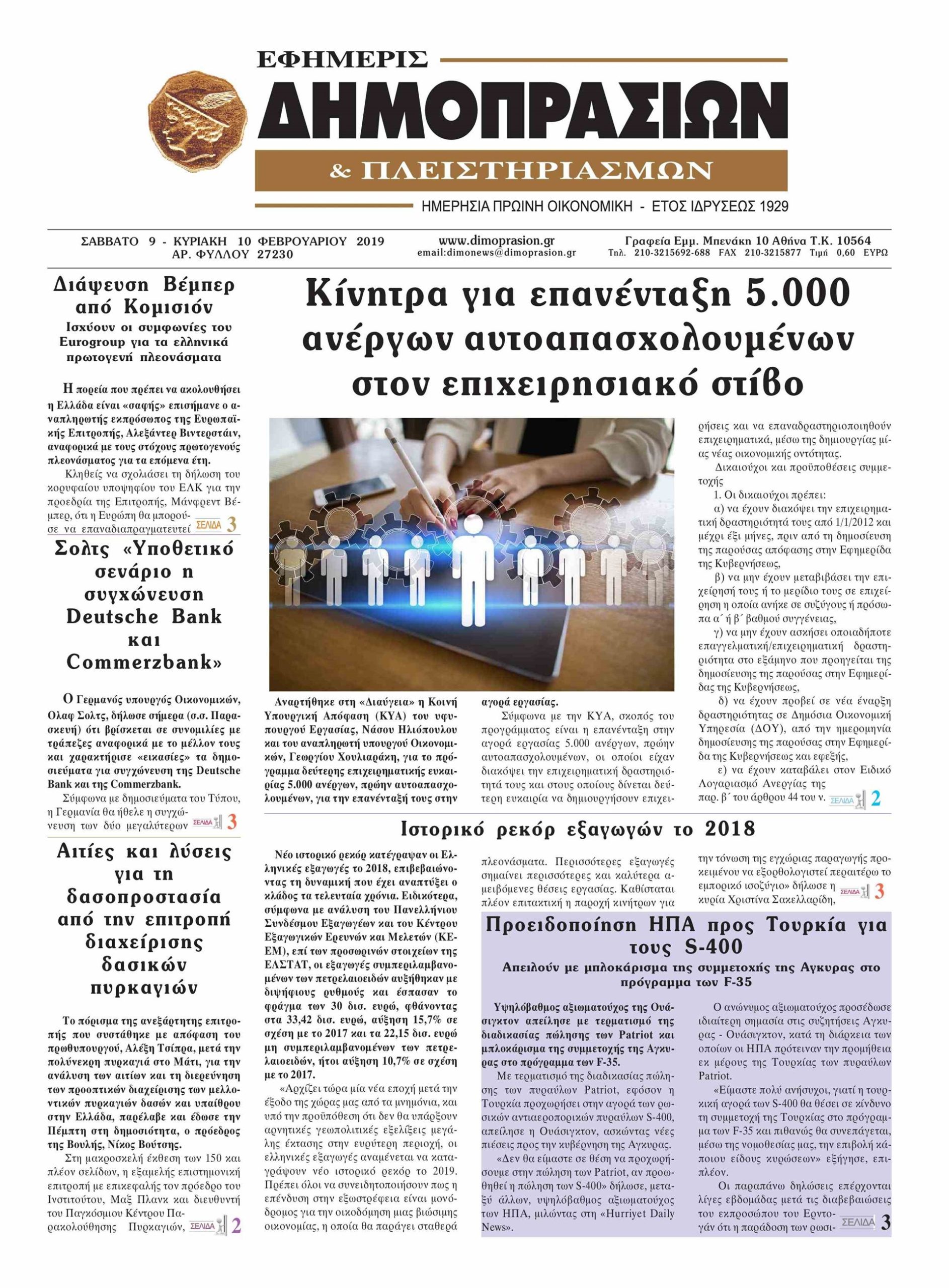Οι οικονομικές εφημερίδες 9/2/19 Enikos Newsroom 06:44, Σάββατο 09 Φεβρουαρίου 2019 Media Διαβάστε τα πρωτοσέλιδα των οικονομικών εφημερίδων: ΟΙΚΟΝΟΜΙΚΕΣ ΕΦΗΜΕΡΙΔΕΣ ΠΡΩΤΟΣΕΛΙΔΑ Μοιράσου το: σχολίασε κι εσύ (0 σχόλια) Ακολουθήστε το enikos.gr στο Google News και μάθετε πρώτοι όλες τις ειδήσεις Δείτε όλες τις τελευταίες ειδήσεις από την Ελλάδα και τον Κόσμο στο enikos.gr Ειδήσεις Ροή Ειδήσεων 45 λεπτά πριν Ευρωπαϊκή Ένωση: Χωρίς συμφωνία, για την μακροπρόθεσμη χρηματοδότηση της Ουκρανίας, ολοκληρώθηκε η Σύνοδος Κορυφής στις Βρυξέλλες 4 ώρες πριν ΟΠΕΚΕΠΕ: Προφυλακιστέος ο φερόμενος αρχηγός και ο λογιστής της εγκληματικής οργάνωσης 5 ώρες πριν Αυξάνουν την πίεση προς την κυβέρνηση οι αγρότες: Κλείνουν παρακαμπτήριους και ανοίγουν διόδια – Τι θα γίνει τις γιορτές 5 ώρες πριν Φοινικούντα: Το Σάββατο απολογείται ο 30χρονος γιος γνωστού επιχειρηματία της Πλάκας που παραδόθηκε – Όσα είπε στους αστυνομικούς και ο ρόλος του στο έγκλημα 4 ώρες πριν ΑΕΚ – Κραϊόβα 3-2: Επική ανατροπή και πρόκριση στους «16» του Conference League η Ένωση 5 ώρες πριν Αρχαιολόγοι ανακάλυψαν ρωμαϊκά τεχνουργήματα από μια πόλη που δεν υπήρξε ποτέ – Τα τρία εντυπωσιακά κτίρια και ο αμφορέας με τις… σαρδέλες 6 ώρες πριν Ύπνος: Η απλή βραδινή ρουτίνα για να προστατεύσετε τα μαλλιά σας από το κρύο κατά τη διάρκεια του χειμώνα 7 ώρες πριν Manifesting: Πώς να συναντήσετε τον σύντροφο της ζωής σας, ανάλογα με τον μήνα γέννησής σας 2 ημέρες πριν 20 χρόνια τα Χριστούγεννα ξεκινούν στα Public με μεγάλη ποικιλία σε δώρα! 59 δευτερόλεπτα πριν Στη Φλόριντα σήμερα οι διαβουλεύσεις σχετικά με τα επόμενα στάδια για τη Λωρίδα της Γάζας 5 λεπτά πριν Σίσσυ Τουμάση: «Είμαι ασθενοφοβική πάρα πολύ και με πιάνει μια παράνοια μ’ αυτό» 30 λεπτά πριν Ντόναλντ Τραμπ: Δεν χρειάζομαι την έγκριση του Κογκρέσου για να διατάξω στρατιωτικά πλήγματα στη Βενεζουέλα 45 λεπτά πριν Ευρωπαϊκή Ένωση: Χωρίς συμφωνία, για την μακροπρόθεσμη χρηματοδότηση της Ουκρανίας, ολοκληρώθηκε η Σύνοδος Κορυφής στις Βρυξέλλες 1 ώρα πριν GNTM: «Κλείδωσαν» οι τέσσερις φιναλίστ – Μεγάλη ανατροπή στις τελευταίες αποχωρήσεις ENIKOS NETWORK Σε περίοδο αυξημένης δραστηριότητας η γρίπη στην Ελλάδα-Μέτρα προστασίας από τον ΕΟΔΥ Σκέφτεστε συνέχεια συζητήσεις που έχετε κάνει; Τι σημαίνει αυτό, σύμφωνα με ειδικό Στεγαστικό: Τι λέει η ΠΟΜΙΔΑ για τα νέα μέτρα που ανακοίνωσε ο Κυριάκος Μητσοτάκης Λαγκάρντ: Αισιόδοξη για την ανάπτυξη της Ευρωζώνης, αβέβαιη για τον πληθωρισμό Χαρτογραφώντας το «σημείο χωρίς επιστροφή»: Για πρώτη φορά αποκαλύπτεται με λεπτομέρεια το ακανθώδες όριο της ατμόσφαιρας τ... Η Google καταργεί τη λειτουργία «dark web report» – Πώς θα μπορούν οι χρήστες να διαγράφουν τα δεδομένα τους περισσότερα 02:50 , Παρασκευή 19 Δεκεμβρίου 2025 GNTM: «Κλείδωσαν» οι τέσσερις φιναλίστ – Μεγάλη ανατροπή στις τελευταίες αποχωρήσεις Για προτελευταία φορά εμφανίστηκαν στο πλατό του GNTM οι φιναλίστ του φετινού κύκλου, το βράδυ... 17:45 , Πέμπτη 18 Δεκεμβρίου 2025 ROUK ZOUK: Εορταστικό επεισόδιο με καλεσμένους τους πρωταγωνιστές του «Γιατί ρε πατέρα» Το Σάββατο 20 Δεκεμβρίου στις 21:00, η Ζέτα Μακρυπούλια υποδέχεται εκλεκτούς ηθοποιούς που όλο... 17:20 , Πέμπτη 18 Δεκεμβρίου 2025 Άγιος έρωτας: Η Χριστίνα εξομολογείται στον πατέρα Νικόλαο, απόψε στις 21:00 στον Alpha Η Νότα αποφασίζει να εκδικηθεί τον Πέτρο και τον Στέφανο, για χάρη του Λούη, όμως τα πράγματα ... 16:50 , Πέμπτη 18 Δεκεμβρίου 2025 Να μ’ αγαπάς: Ζωή και Φωτεινή συμφιλιώνονται ως 