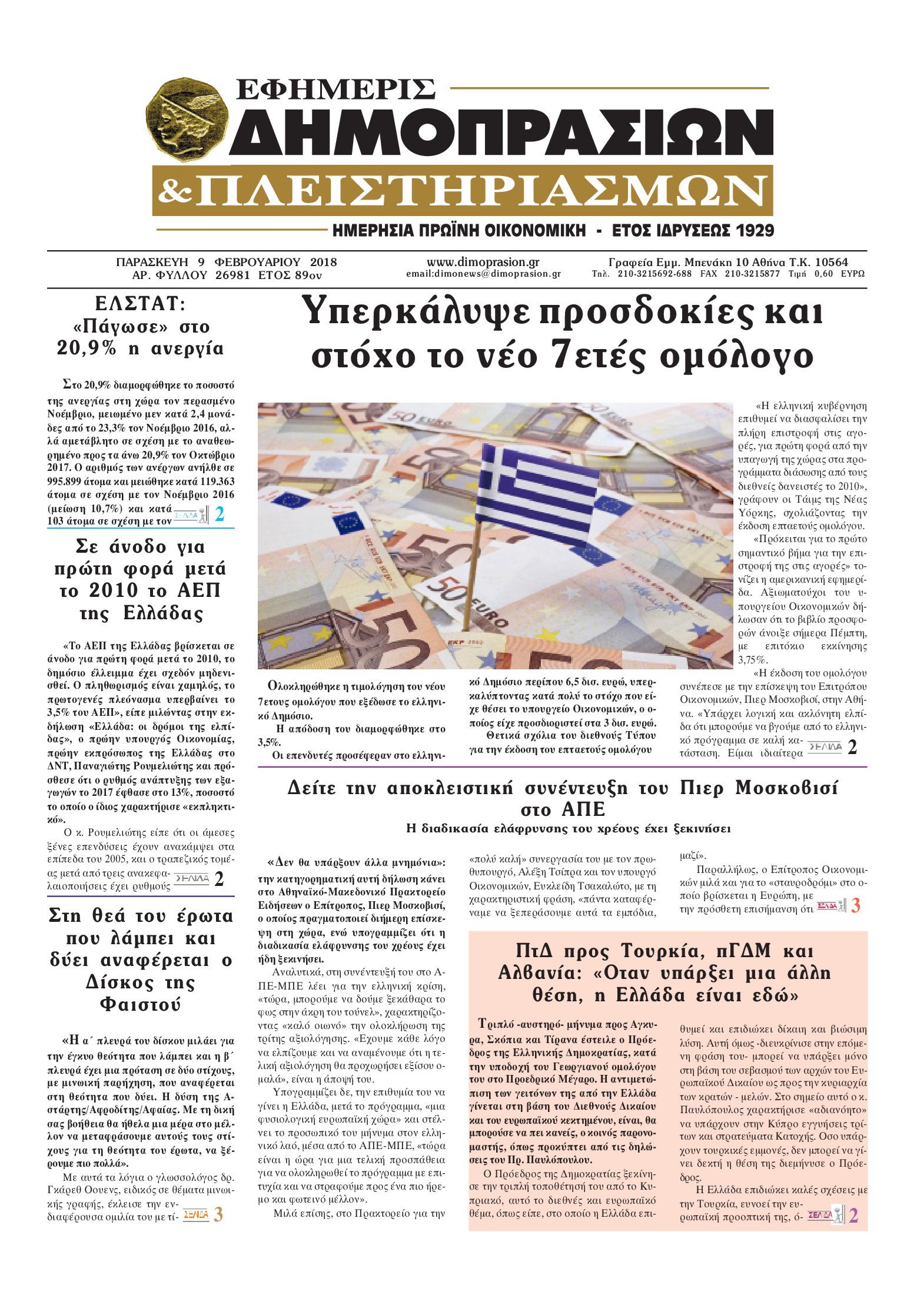 Οι οικονομικές εφημερίδες 9/2/2018 Enikos Newsroom 07:18, Παρασκευή 09 Φεβρουαρίου 2018 Media Διαβάστε τα σημερινά πρωτοσέλιδα των οικονομικών εφημερίδων: ΟΙΚΟΝΟΜΙΚΕΣ ΕΦΗΜΕΡΙΔΕΣ ΠΡΩΤΟΣΕΛΙΔΑ Μοιράσου το: σχολίασε κι εσύ (0 σχόλια) Ακολουθήστε το enikos.gr στο Google News και μάθετε πρώτοι όλες τις ειδήσεις Δείτε όλες τις τελευταίες ειδήσεις από την Ελλάδα και τον Κόσμο στο enikos.gr Ειδήσεις Ροή Ειδήσεων 2 ώρες πριν Αυξάνουν την πίεση προς την κυβέρνηση οι αγρότες: Κλείνουν παρακαμπτήριους και ανοίγουν διόδια – Τι θα γίνει τις γιορτές 33 λεπτά πριν ΟΠΕΚΕΠΕ: Προφυλακιστέος ο φερόμενος αρχηγός και ο λογιστής της εγκληματικής οργάνωσης 2 ώρες πριν Φοινικούντα: Το Σάββατο απολογείται ο 30χρονος γιος γνωστού επιχειρηματία της Πλάκας που παραδόθηκε – Όσα είπε στους αστυνομικούς και ο ρόλος του στο έγκλημα 1 ώρα πριν Μπορεί ο Μαδούρο να αντέξει τον αποκλεισμό του Τραμπ; Τι θα χρειαστεί η Ουάσινγκτον για να τον ανατρέψει 3 ώρες πριν Πρίγκιπας Ουίλιαμ – Κέιτ: Η νέα οικογενειακή φωτογραφία για τις Χριστουγεννιάτικες κάρτες του 2025 2 ώρες πριν Ύπνος: Η απλή βραδινή ρουτίνα για να προστατεύσετε τα μαλλιά σας από το κρύο κατά τη διάρκεια του χειμώνα 3 ώρες πριν Manifesting: Πώς να συναντήσετε τον σύντροφο της ζωής σας, ανάλογα με τον μήνα γέννησής σας 2 ημέρες πριν 20 χρόνια τα Χριστούγεννα ξεκινούν στα Public με μεγάλη ποικιλία σε δώρα! 1 ώρα πριν Αρχαιολόγοι ανακάλυψαν ρωμαϊκά τεχνουργήματα από μια πόλη που δεν υπήρξε ποτέ – Τα τρία εντυπωσιακά κτίρια και ο αμφορέας με τις… σαρδέλες 13 λεπτά πριν ΑΕΚ – Κραϊόβα 3-2: Επική ανατροπή και πρόκριση στους «16» του Conference League η Ένωση 33 λεπτά πριν ΟΠΕΚΕΠΕ: Προφυλακιστέος ο φερόμενος αρχηγός και ο λογιστής της εγκληματικής οργάνωσης 43 λεπτά πριν Αθηνά Μαξίμου: Η τρυφερή ανάρτηση για τα γενέθλια του Αιμίλιου Χειλάκη – «Είναι η εκλεκτική συγγένειά μου, η επιλογή και η ευθύνη μου» 58 λεπτά πριν Παναθηναϊκός – Χάποελ Τελ Αβίβ 93-82: Με… φόρα από την Κωνσταντινούπολη 1 ώρα πριν Μπορεί ο Μαδούρο να αντέξει τον αποκλεισμό του Τραμπ; Τι θα χρειαστεί η Ουάσινγκτον για να τον ανατρέψει ENIKOS NETWORK Σε περίοδο αυξημένης δραστηριότητας η γρίπη στην Ελλάδα-Μέτρα προστασίας από τον ΕΟΔΥ Σκέφτεστε συνέχεια συζητήσεις που έχετε κάνει; Τι σημαίνει αυτό, σύμφωνα με ειδικό Στεγαστικό: Τι λέει η ΠΟΜΙΔΑ για τα νέα μέτρα που ανακοίνωσε ο Κυριάκος Μητσοτάκης Λαγκάρντ: Αισιόδοξη για την ανάπτυξη της Ευρωζώνης, αβέβαιη για τον πληθωρισμό Χαρτογραφώντας το «σημείο χωρίς επιστροφή»: Για πρώτη φορά αποκαλύπτεται με λεπτομέρεια το ακανθώδες όριο της ατμόσφαιρας τ... Η Google καταργεί τη λειτουργία «dark web report» – Πώς θα μπορούν οι χρήστες να διαγράφουν τα δεδομένα τους περισσότερα 17:45 , Πέμπτη 18 Δεκεμβρίου 2025 ROUK ZOUK: Εορταστικό επεισόδιο με καλεσμένους τους πρωταγωνιστές του «Γιατί ρε πατέρα» Το Σάββατο 20 Δεκεμβρίου στις 21:00, η Ζέτα Μακρυπούλια υποδέχεται εκλεκτούς ηθοποιούς που όλο... 17:20 , Πέμπτη 18 Δεκεμβρίου 2025 Άγιος έρωτας: Η Χριστίνα εξομολογείται στον πατέρα Νικόλαο, απόψε στις 21:00 στον Alpha Η Νότα αποφασίζει να εκδικηθεί τον Πέτρο και τον Στέφανο, για χάρη του Λούη, όμως τα πράγματα ... 16:50 , Πέμπτη 18 Δεκεμβρίου 2025 Να μ’ αγαπάς: Ζωή και Φωτεινή συμφιλιώνονται ως μάνα με κόρη, απόψε στις 20:00 Η ταυτότητα του Άγγελου αποκαλύπτεται στο νέο επεισόδιο της σειράς “Να μ’ αγαπάς... 15:52 , Πέμπτη 18 Δεκεμβρίου 2025 Το Σπίτι Δίπλα Στο Ποτάμι: Το καθηλωτικό τελευταίο επεισόδιο για το 2025 απόψε στις 22:30 Καθηλώνει το