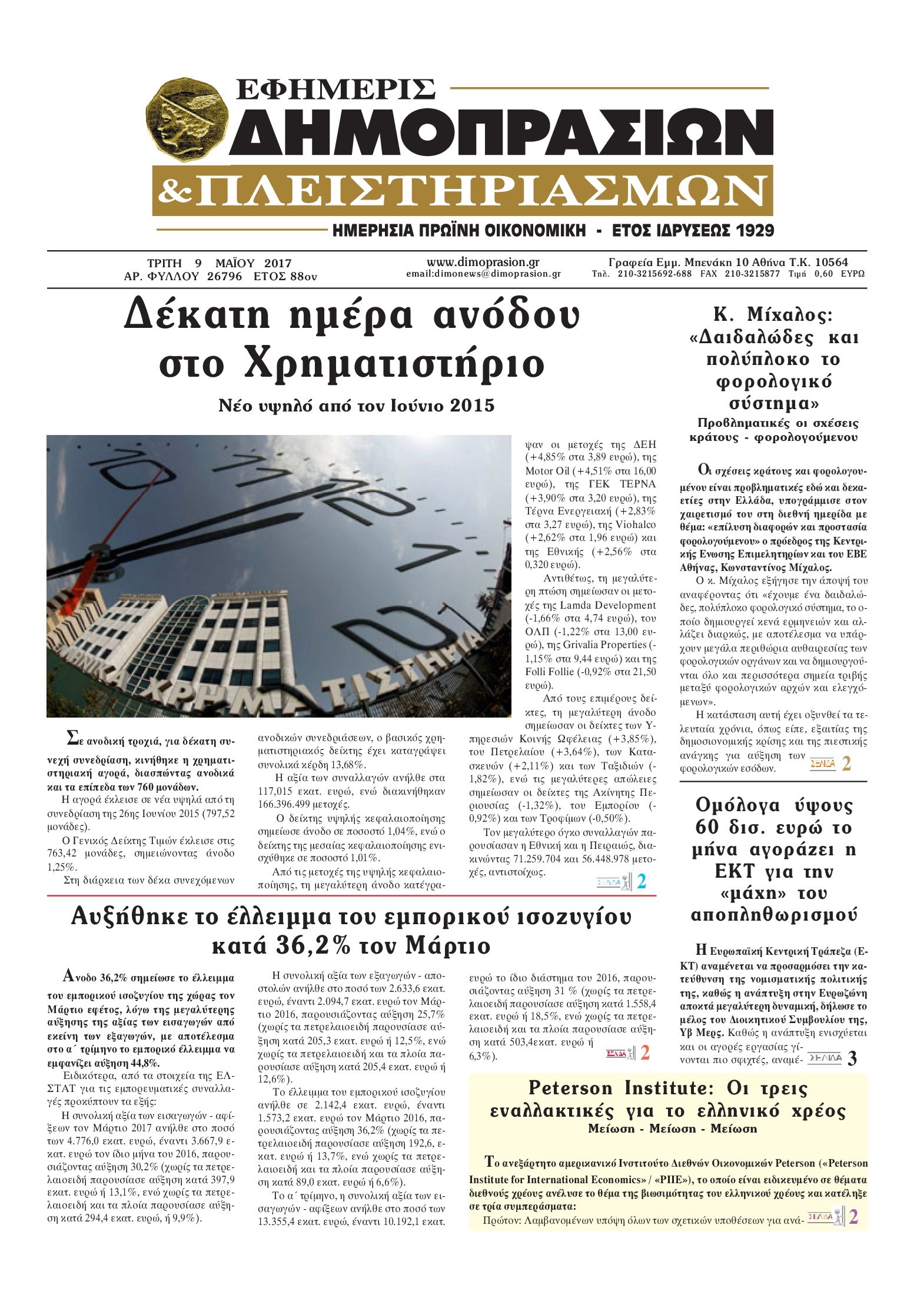 Οι οικονομικές εφημερίδες 9/5/2017 Enikos Newsroom 06:21, Τρίτη 09 Μαΐου 2017 Media Διαβάστε τα σημερινά πρωτοσέλιδα των οικονομικών εφημερίδων: ΟΙΚΟΝΟΜΙΚΕΣ ΕΦΗΜΕΡΙΔΕΣ ΠΡΩΤΟΣΕΛΙΔΑ Μοιράσου το: σχολίασε κι εσύ (0 σχόλια) Ακολουθήστε το enikos.gr στο Google News και μάθετε πρώτοι όλες τις ειδήσεις Δείτε όλες τις τελευταίες ειδήσεις από την Ελλάδα και τον Κόσμο στο enikos.gr Ειδήσεις Ροή Ειδήσεων 2 ώρες πριν Αυξάνουν την πίεση προς την κυβέρνηση οι αγρότες: Κλείνουν παρακαμπτήριους και ανοίγουν διόδια – Τι θα γίνει τις γιορτές 1 ώρα πριν ΟΠΕΚΕΠΕ: Προφυλακιστέος ο φερόμενος αρχηγός και ο λογιστής της εγκληματικής οργάνωσης 2 ώρες πριν Φοινικούντα: Το Σάββατο απολογείται ο 30χρονος γιος γνωστού επιχειρηματία της Πλάκας που παραδόθηκε – Όσα είπε στους αστυνομικούς και ο ρόλος του στο έγκλημα 2 ώρες πριν Μπορεί ο Μαδούρο να αντέξει τον αποκλεισμό του Τραμπ; Τι θα χρειαστεί η Ουάσινγκτον για να τον ανατρέψει 3 ώρες πριν Πρίγκιπας Ουίλιαμ – Κέιτ: Η νέα οικογενειακή φωτογραφία για τις Χριστουγεννιάτικες κάρτες του 2025 3 ώρες πριν Ύπνος: Η απλή βραδινή ρουτίνα για να προστατεύσετε τα μαλλιά σας από το κρύο κατά τη διάρκεια του χειμώνα 4 ώρες πριν Manifesting: Πώς να συναντήσετε τον σύντροφο της ζωής σας, ανάλογα με τον μήνα γέννησής σας 2 ημέρες πριν 20 χρόνια τα Χριστούγεννα ξεκινούν στα Public με μεγάλη ποικιλία σε δώρα! 2 ώρες πριν Αρχαιολόγοι ανακάλυψαν ρωμαϊκά τεχνουργήματα από μια πόλη που δεν υπήρξε ποτέ – Τα τρία εντυπωσιακά κτίρια και ο αμφορέας με τις… σαρδέλες 8 λεπτά πριν Conference League: Απευθείας στους «16» η ΑΕΚ Λάρνακας και η Ρακόβ των Σβάρνα και Κωνσταντόπουλου – Τα αποτελέσματα και η βαθμολογία, 3η η ΑΕΚ 18 λεπτά πριν Σε ομάδες που συνδέονται με το ρωσικό κράτος αποδίδει η Δανία δύο κυβερνοεπιθέσεις που δέχθηκε 33 λεπτά πριν Βαθμολογία UEFA: Η Πολωνία προσπέρασε την Ελλάδα 49 λεπτά πριν Conference League: Οι ομάδες που προκρίθηκαν στους «16» και τα «ζευγαρώματα» στα νοκ άουτ 58 λεπτά πριν ΑΕΚ – Κραϊόβα 3-2: Επική ανατροπή και πρόκριση στους «16» του Conference League η Ένωση ENIKOS NETWORK Σε περίοδο αυξημένης δραστηριότητας η γρίπη στην Ελλάδα-Μέτρα προστασίας από τον ΕΟΔΥ Σκέφτεστε συνέχεια συζητήσεις που έχετε κάνει; Τι σημαίνει αυτό, σύμφωνα με ειδικό Στεγαστικό: Τι λέει η ΠΟΜΙΔΑ για τα νέα μέτρα που ανακοίνωσε ο Κυριάκος Μητσοτάκης Λαγκάρντ: Αισιόδοξη για την ανάπτυξη της Ευρωζώνης, αβέβαιη για τον πληθωρισμό Χαρτογραφώντας το «σημείο χωρίς επιστροφή»: Για πρώτη φορά αποκαλύπτεται με λεπτομέρεια το ακανθώδες όριο της ατμόσφαιρας τ... Η Google καταργεί τη λειτουργία «dark web report» – Πώς θα μπορούν οι χρήστες να διαγράφουν τα δεδομένα τους περισσότερα 17:45 , Πέμπτη 18 Δεκεμβρίου 2025 ROUK ZOUK: Εορταστικό επεισόδιο με καλεσμένους τους πρωταγωνιστές του «Γιατί ρε πατέρα» Το Σάββατο 20 Δεκεμβρίου στις 21:00, η Ζέτα Μακρυπούλια υποδέχεται εκλεκτούς ηθοποιούς που όλο... 17:20 , Πέμπτη 18 Δεκεμβρίου 2025 Άγιος έρωτας: Η Χριστίνα εξομολογείται στον πατέρα Νικόλαο, απόψε στις 21:00 στον Alpha Η Νότα αποφασίζει να εκδικηθεί τον Πέτρο και τον Στέφανο, για χάρη του Λούη, όμως τα πράγματα ... 16:50 , Πέμπτη 18 Δεκεμβρίου 2025 Να μ’ αγαπάς: Ζωή και Φωτεινή συμφιλιώνονται ως μάνα με κόρη, απόψε στις 20:00 Η ταυτότητα του Άγγελου αποκαλύπτεται στο νέο επεισόδιο της σειράς “Να μ’ αγαπάς... 15:52 , Πέμπτη 18 Δεκεμβρίου 2025 Το Σπίτι Δίπλα Στο Ποτάμι: Το καθηλωτικό τελευταίο επεισόδιο για το 2025 απόψε στις 22:30 Καθηλώνει το σημερινό επεισόδιο της σειράς “Το Σπίτι Δίπλα Στο