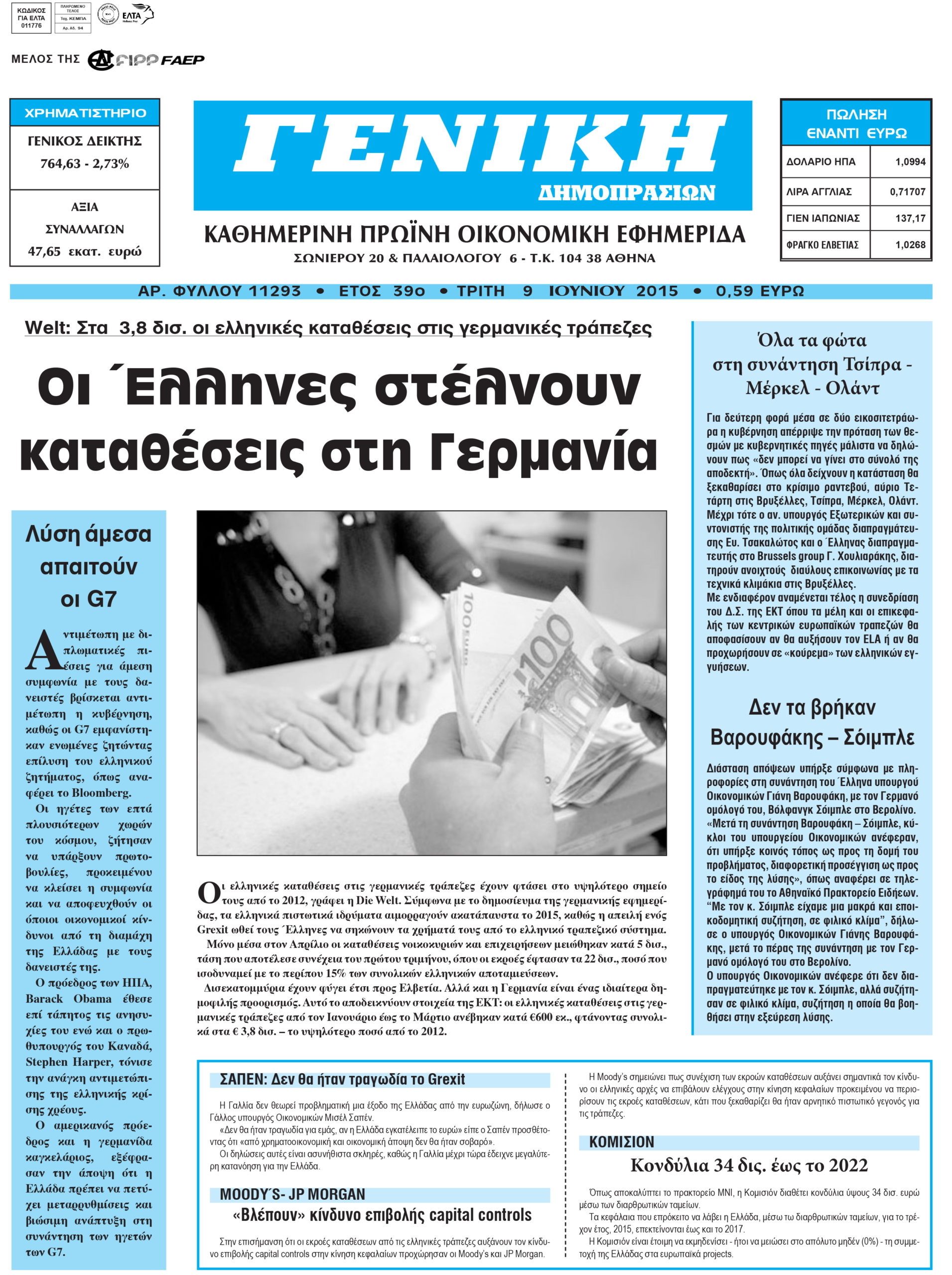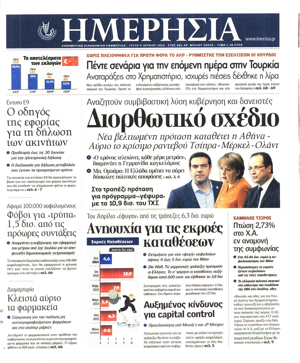 Οι οικονομικές εφημερίδες 9/6/2015 Enikos Newsroom 06:46, Τρίτη 09 Ιουνίου 2015 Media Διαβάστε τα σημερινά πρωτοσέλιδα των οικονομικών εφημερίδων: ΟΙΚΟΝΟΜΙΚΕΣ ΕΦΗΜΕΡΙΔΕΣ ΠΡΩΤΟΣΕΛΙΔΑ Μοιράσου το: σχολίασε κι εσύ (0 σχόλια) Ακολουθήστε το enikos.gr στο Google News και μάθετε πρώτοι όλες τις ειδήσεις Δείτε όλες τις τελευταίες ειδήσεις από την Ελλάδα και τον Κόσμο στο enikos.gr Ειδήσεις Ροή Ειδήσεων 5 ώρες πριν Μητσοτάκης: Αναγκαία η μεταρρύθμιση του πρωτογενούς τομέα – Τα 6 νέα μέτρα για το στεγαστικό και οι αναφορές σε «Ιθάκη» και «πολιτικούς του καναπέ» 4 ώρες πριν Δάνεια σε ελβετικό φράγκο: Τα βασικά σημεία της ρύθμισης – ανάσας για 40.000 δανειολήπτες – Αναλυτικός οδηγός με ερωτήσεις και απαντήσεις 4 ώρες πριν Κυψέλη: Εξιτήριο πήρε η 14χρονη μαθήτρια που μαχαιρώθηκε από την 16χρονη σε σχολείο – «Θέλω να βοηθήσω το παιδί, έχει μπλέξει με κακές παρέες» 4 ώρες πριν Τραμπ: Γιατί κατέθεσε τώρα την αγωγή κατά του BBC – Πώς η κίνησή του εξυπηρετεί το νέο δόγμα του για «αντίσταση» στην Ευρώπη, υπέρ των συντηρητικών 5 ώρες πριν ΟΠΕΚΕΠΕ – Παράνομες επιδοτήσεις: Ελεύθεροι με περιοριστικούς όρους και οι 7 κατηγορούμενοι που απολογήθηκαν σήμερα 4 ώρες πριν Ανακαλύφθηκε βυθισμένη πέτρινη κατασκευή ανοιχτά της Κριμαίας – Αποτελεί μέρος αρχαίας ελληνικής αποικίας 5 ώρες πριν Ύπνος: Αυτό μπορεί να είναι το χειρότερο λάθος για το βιολογικό ρολόι σας, σύμφωνα με ειδικό 6 ώρες πριν Αριθμολογία: Οι άνθρωποι που έχουν γεννηθεί αυτές τις 3 ημερομηνίες, προσελκύουν μεγάλη τύχη πριν από το τέλος του 2025 8 ώρες πριν Οι 7 συμπεριφορές που μαρτυρούν ότι ένας άνδρας επενδύει μακροπρόθεσμα σε μια σχέση 9 λεπτά πριν Ντόναλντ Τραμπ: Κάλυψε απόλυτα την προσωπάρχη του Λευκού Οίκου: «Ναι, έχω προσωπικότητα αλκοολικού» 24 λεπτά πριν ΗΠΑ: Στην αγορά δύο Boeing 747-8 προχωρά η Πολεμική Αεροπορία για την υποστήριξη του προεδρικού στόλου 38 λεπτά πριν Ιταλία: Λεωφορείο έπεσε πάνω σε βιτρίνα καταστήματος στο Τορίνο – Τρεις τραυματίες 54 λεπτά πριν Χαλάνδρι: Καθηγητής έπιασε με κόφτη τα δάχτυλα μαθητή σε κατάληψη – «Μου έχεις πιάσει το χέρι» 1 ώρα πριν Ουκρανία: Εκρήξεις στο Κίεβο ύστερα από προειδοποίηση για επιδρομή drones ENIKOS NETWORK Αίτημα ΙΣΑ για την εξαίρεση των προσωπικών γιατρών από τις κατ’ οίκον επισκέψεις Η σκανδιναβική μέθοδος στον ύπνο που μπορεί να σώσει έναν γάμο Πιερρακάκης: Ο προϋπολογισμός συμβάλλει ουσιαστικά στην ενίσχυση της αγοραστικής δύναμης της πλειονότητας των εργαζομένων e-ΕΦΚΑ: Παρατείνεται η προθεσμία για την υποβολή ΑΠΔ – Ποιους αφορά Σύγχρονος Νοστράδαμος: Προειδοποιεί για «μεγάλο γεγονός» τους επόμενους μήνες που θα συγκλονίσει τη Βρετανία και τον κόσμο Τεστ παρατηρητικότητας: Μπορείτε να βρείτε τις 3 διαφορές στις εικόνες με έναν πιγκουίνο σε 14 δευτερόλεπτα περισσότερα 20:06 , Τρίτη 16 Δεκεμβρίου 2025 Ο ΣΚΑΙ καταγγέλλει τον ΕΚΚΟΜΕΔ Επιστολή με την οποία καταγράφει την έντονη διαμαρτυρία του προς τον διευθύνοντα σύμβουλο του... 17:40 , Τρίτη 16 Δεκεμβρίου 2025 Eurovision: Στις 4 Ιανουαρίου αποκαλύπτονται τα 28 τραγούδια του ελληνικού τελικού Η αγωνία τελειώνει, η γιορτή της Eurovision αρχίζει στην ΕΡΤ από τις πρώτες ημέρες της νέας χρ... 17:09 , Τρίτη 16 Δεκεμβρίου 2025 Alter Ego Media: Βαθύτατη θλίψη και ειλικρινή συλλυπητήρια για την απώλεια της Ειρήνης Μαρινάκη Τη βαθύτατη θλίψη και τα ειλικρινή συλλυπητήριά της εκφράζει η Alter Ego Media για τον θάνατο ... 13:00 , Τρίτη 16 Δεκεμβρίου 2025 «Στο Παρά Πέντε – 20 Χρόνια Μετά»: Κυκλοφόρησε το 