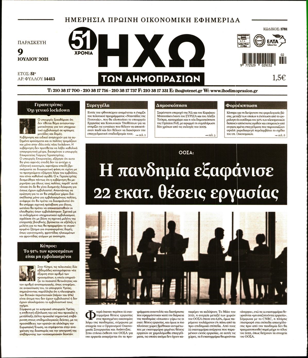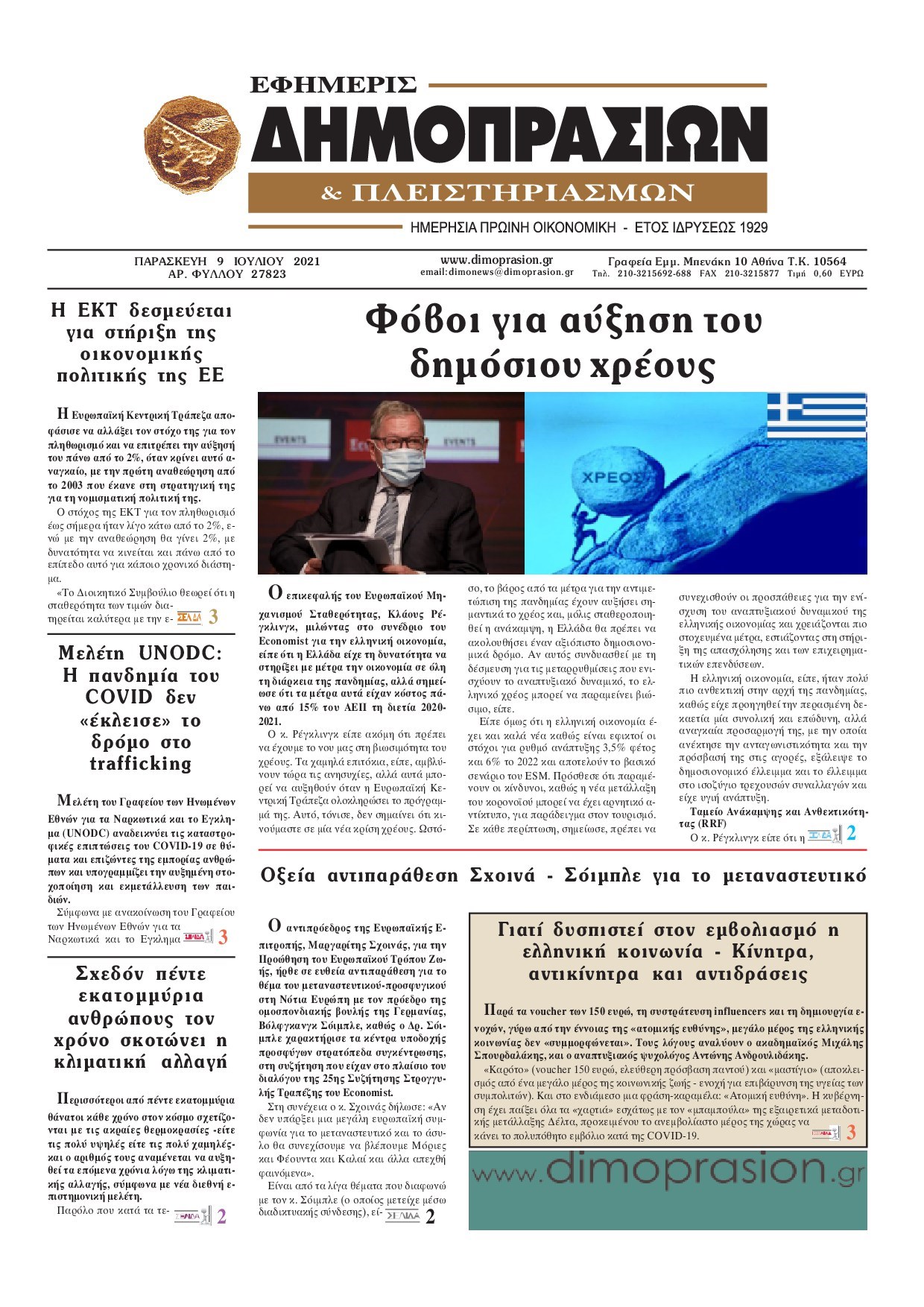 Οι οικονομικές εφημερίδες 9/7/2021 Διονύσης Νίκκας 06:34, Παρασκευή 09 Ιουλίου 2021 Media Διαβάστε τα πρωτοσέλιδα των οικονομικών εφημερίδων… ΟΙΚΟΝΟΜΙΚΕΣ ΕΦΗΜΕΡΙΔΕΣ Μοιράσου το: σχολίασε κι εσύ (0 σχόλια) Ακολουθήστε το enikos.gr στο Google News και μάθετε πρώτοι όλες τις ειδήσεις Δείτε όλες τις τελευταίες ειδήσεις από την Ελλάδα και τον Κόσμο στο enikos.gr Ειδήσεις Ροή Ειδήσεων 3 ώρες πριν Αγρότες: «Όχι στον διάλογο, μας εμπαίζει η κυβέρνηση» – Αποφάσισαν κλιμάκωση των κινητοποιήσεων, τι θα γίνει τα Χριστούγεννα 3 ώρες πριν Την πρώτη Belharra παρέλαβε η χώρα μας, υψώθηκε η ελληνική σημαία στη φρεγάτα «Κίμων» – Δένδιας: «Το ισχυρότερο Πολεμικό Ναυτικό που είχε ποτέ ο ελληνισμός» 1 ώρα πριν Γιώργος Μαζωνάκης: «Έχει υποστεί ένα σωρό εκβιαστικές πρακτικές – Του είπαν ότι θα του βάλουν τον συγκεκριμένο άνθρωπο να τον καταγγείλει» 3 ώρες πριν Μιχάλης Χουρδάκης: «Είμαι διαθέσιμος να συμβάλω στην προσωρινή κάλυψη του ιατρείου της Ψερίμου» – Η επιστολή στον Άδωνι Γεωργιάδη 3 ώρες πριν Εξώδικο Γεωργιάδη στην Κωνσταντοπούλου – «Με κατηγόρησε ότι έχω καταδικαστεί για παιδεραστία» 54 λεπτά πριν Γάμος: 11 ψυχρές αλλά ευγενικές φράσεις, που λέει ένας άνδρας όταν σκέφτεται τον χωρισμό 4 ώρες πριν Τα 5 ζώδια που θα ευνοηθούν στα οικονομικά τους το 2026 – «Τραβούν το χρήμα σαν μαγνήτες» 5 ώρες πριν Αυτό που κρύβεται κάτω από τη Γροιλανδία θα μπορούσε να ανατρέψει όσα γνωρίζουμε για την άνοδο της στάθμης των θαλασσών 1 ημέρα πριν 20 χρόνια τα Χριστούγεννα ξεκινούν στα Public με μεγάλη ποικιλία σε δώρα! 9 λεπτά πριν Στη φυλακή ο «Έλληνας Εσκομπάρ» και τρεις συνεργοί του για το φορτίο με την κοκαΐνη – Τι υποστήριξε στην απολογία του 13 λεπτά πριν ΕΕ: Καλεί τα Σκόπια να σέβονται τις δεσμεύσεις από τη διαδικασία ένταξης και το Διεθνές Δίκαιο – Η χρηματοδότηση του Διαδρόμου Χ 19 λεπτά πριν Σοκ στη Σουηδία: 12χρονος πληρωμένος δολοφόνος σκότωσε λάθος άτομο 24 λεπτά πριν FIFA: Έτοιμη να… επανεντάξει τη Ρωσία από το 2026 29 λεπτά πριν Live η κίνηση: Στο «κόκκινο» Κηφισός, Κηφισίας και οι δρόμοι στο κέντρο – Καθυστερήσεις και στην Αττική Οδό ENIKOS NETWORK Σκέφτεστε συνέχεια συζητήσεις που έχετε κάνει; Τι σημαίνει αυτό, σύμφωνα με ειδικό Ξεκίνησε η «επέλαση» της γρίπης στην Ελλάδα-Ποιοι κινδυνεύουν Κλιμάκωση των κινητοποιήσεων αποφάσισαν οι αγρότες, κλείνουν παρακαμπτήριους την Παρασκευή – Τι απαντά η κυβέρνηση Ευλογιά αιγοπροβάτων: Νέες αποζημιώσεις ύψους 26,02 εκατ. ευρώ σε κτηνοτρόφους – Η κατανομή ανά Περιφέρεια Χαρτογραφώντας το «σημείο χωρίς επιστροφή»: Για πρώτη φορά αποκαλύπτεται με λεπτομέρεια το ακανθώδες όριο της ατμόσφαιρας τ... Η Google καταργεί τη λειτουργία «dark web report» – Πώς θα μπορούν οι χρήστες να διαγράφουν τα δεδομένα τους περισσότερα 17:45 , Πέμπτη 18 Δεκεμβρίου 2025 ROUK ZOUK: Εορταστικό επεισόδιο με καλεσμένους τους πρωταγωνιστές του «Γιατί ρε πατέρα» Το Σάββατο 20 Δεκεμβρίου στις 21:00, η Ζέτα Μακρυπούλια υποδέχεται εκλεκτούς ηθοποιούς που όλο... 17:20 , Πέμπτη 18 Δεκεμβρίου 2025 Άγιος έρωτας: Η Χριστίνα εξομολογείται στον πατέρα Νικόλαο, απόψε στις 21:00 στον Alpha Η Νότα αποφασίζει να εκδικηθεί τον Πέτρο και τον Στέφανο, για χάρη του Λούη, όμως τα πράγματα ... 16:50 , Πέμπτη 18 Δεκεμβρίου 2025 Να μ’ αγαπάς: Ζωή και Φωτεινή συμφιλιώνονται ως μάνα με κόρη, απόψε στις 20:00 Η ταυτότητα του Άγγελου αποκαλύπτεται στο νέο επεισόδιο της σειράς “Να μ’ αγαπάς... 15:52 , Πέμπτη 18 Δεκεμβρίου 2025 Το Σπίτι Δίπλα Στο Ποτάμι: Το καθηλωτικό τελ