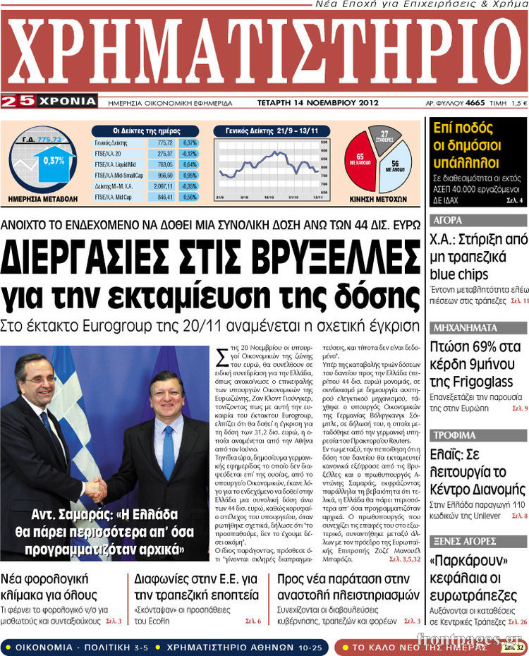 Οι οικονομικές εφημερίδες Enikos Newsroom 09:02, Τετάρτη 14 Νοεμβρίου 2012 Media Οι οικονομικές εφημερίδες Τα σημερινά πρωτοσέλιδα των οικονομικών εφημερίδων. ΕΦΗΜΕΡΙΔΕΣ ΠΡΩΤΟΣΕΛΙΔΑ ΟΙΚΟΝΟΜΙΚΕΣ ΕΦΗΜΕΡΙΔΕΣ ΠΡΩΤΟΣΕΛΙΔΑ Μοιράσου το: σχολίασε κι εσύ (0 σχόλια) Ακολουθήστε το enikos.gr στο Google News και μάθετε πρώτοι όλες τις ειδήσεις Δείτε όλες τις τελευταίες ειδήσεις από την Ελλάδα και τον Κόσμο στο enikos.gr Ειδήσεις Ροή Ειδήσεων 1 ώρα πριν Τρομοκρατική επίθεση στο Σίδνεϊ: Νεκροί 11 πολίτες και ένας δράστης – Εντοπίστηκε αυτοσχέδιος εκρηκτικός μηχανισμός 25 λεπτά πριν ΟΠΕΚΕΠΕ-Κρήτη: Προθεσμία να απολογηθούν από την Τρίτη έως την Πέμπτη έλαβαν οι 16 συλληφθέντες 4 ώρες πριν Σκληραίνουν τη στάση τους οι αγρότες: Αποφασίζουν τις δράσεις της εβδομάδας – Αύριο το συλλαλητήριο στα δικαστήρια της Λάρισας 6 ώρες πριν Κυριάκος Μητσοτάκης μετά το «όχι» των αγροτών: Διάλογος δεν γίνεται με τελεσίγραφα και οι λύσεις προκύπτουν μόνο από συζήτηση 1 ώρα πριν Πανεπιστήμιο Μπράουν: Υπό κράτηση ένα «άτομο ενδιαφέροντος» για το μακελειό με τους 2 νεκρούς και τους 9 τραυματίες 20 λεπτά πριν Τα 5 ζώδια που ευνοούνται στα ερωτικά τους έως τις 21 Δεκεμβρίου – «Η επόμενη σχέση σας θα είναι καθοριστική» 1 ώρα πριν Γεωλογική αποκάλυψη: Επιστήμονες εξηγούν πώς η Ιβηρική Χερσόνησος περιστρέφεται σαν… ρολόι 4 ώρες πριν Προπονήτρια ευεξίας που έχασε 24 κιλά αποκαλύπτει: «Αυτά είναι τα 6 ανησυχητικά σημάδια της υψηλής κορτιζόλης» 5 ώρες πριν Τα 8 πράγματα που τα ευτυχισμένα ζευγάρια δεν κάνουν ποτέ μπροστά στα παιδιά τους 4 λεπτά πριν Νετανιάχου για την επίθεση στο Σίδνεϊ: «Τους είχα προειδοποιήσει – Ρίχνουν λάδι στην φωτιά του αντισημιτισμού» 12 λεπτά πριν Ηλεία: Στον 62χρονο αγνοούμενο ανήκει η σορός που εντόπισε κυνηγός – Τραγικός επίλογος στις έρευνες 20 λεπτά πριν Τα 5 ζώδια που ευνοούνται στα ερωτικά τους έως τις 21 Δεκεμβρίου – «Η επόμενη σχέση σας θα είναι καθοριστική» 25 λεπτά πριν ΟΠΕΚΕΠΕ-Κρήτη: Προθεσμία να απολογηθούν από την Τρίτη έως την Πέμπτη έλαβαν οι 16 συλληφθέντες 35 λεπτά πριν Βίντεο: Άνδρας αρπάζει κινητό από ράφι καταστήματος στο Ηράκλειο Κρήτης – Καρέ καρέ οι κινήσεις του ENIKOS NETWORK Άσκηση ή περισσότερος ύπνος: Τι είναι πιο σημαντικό για την υγεία όταν δεν έχετε χρόνο και για τα δύο; Σπλαχνικό λίπος: 3 υδατάνθρακες που μπορεί να σας βοηθήσουν να το χάσετε, σύμφωνα με ειδικό ΔΥΠΑ: Οι καταβολές που θα γίνουν την ερχόμενη Τετάρτη ΕΚΤ: Τα οφέλη για νοικοκυριά και επιχειρήσεις από τα σταθερά επιτόκια για ολόκληρο το 2026 Σύγχρονος Νοστράδαμος: Προειδοποιεί για «μεγάλο γεγονός» τους επόμενους μήνες που θα συγκλονίσει τη Βρετανία και τον κόσμο Τεστ παρατηρητικότητας: Μπορείτε να βρείτε τις 3 διαφορές στις εικόνες με έναν πιγκουίνο σε 14 δευτερόλεπτα περισσότερα 15:07 , Κυριακή 14 Δεκεμβρίου 2025 IQ160: Η Μαρίνα στέλνει το φούτερ του Τηλέμαχου για το τεστ πατρότητας Η Πηνελόπη αποφασίζει να κάνει αμνιοπαρακέντηση, για να βεβαιωθεί για την υγεία του μωρού της ... 12:46 , Κυριακή 14 Δεκεμβρίου 2025 Η Realnews στο www.pressreader.com Διαβάστε την ψηφιακή έκδοση της εφημερίδας στην οθόνη του κινητού, του tablet και του υπολογισ... 10:07 , Κυριακή 14 Δεκεμβρίου 2025 Η γη της ελιάς: Η αρχή του τέλους του Δημοσθένη πλησιάζει Η δραματική σειρά του MEGA «Η γη της ελιάς» επιφυλάσσει ακόμα μεγαλύτερες ανατροπές. Κάθε επει... 08:15 , Κυριακή 14 Δεκεμβρίου 2025 Σήμερα με τη Realnews: Food & Travel μαζί Beaute και Μαστορέματα Σήμερα με τη Realnews: Food & Travel μαζί Beaute και Μ