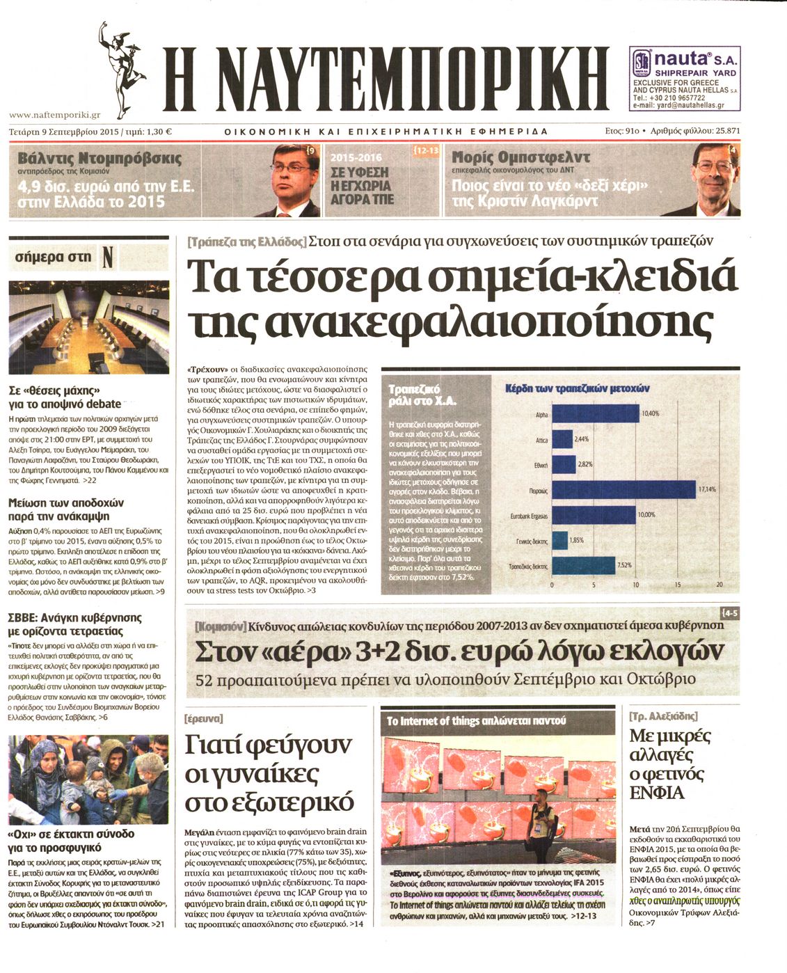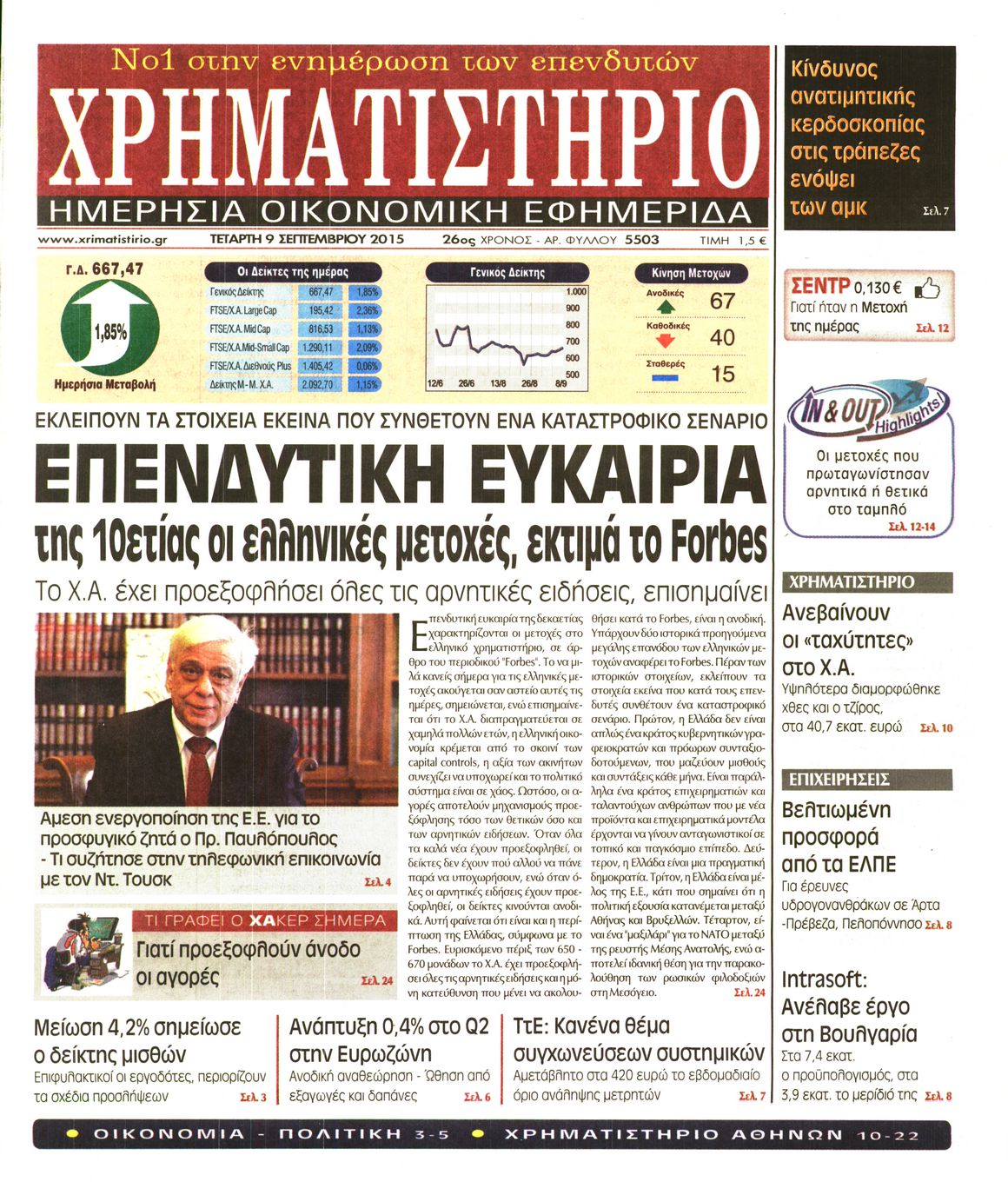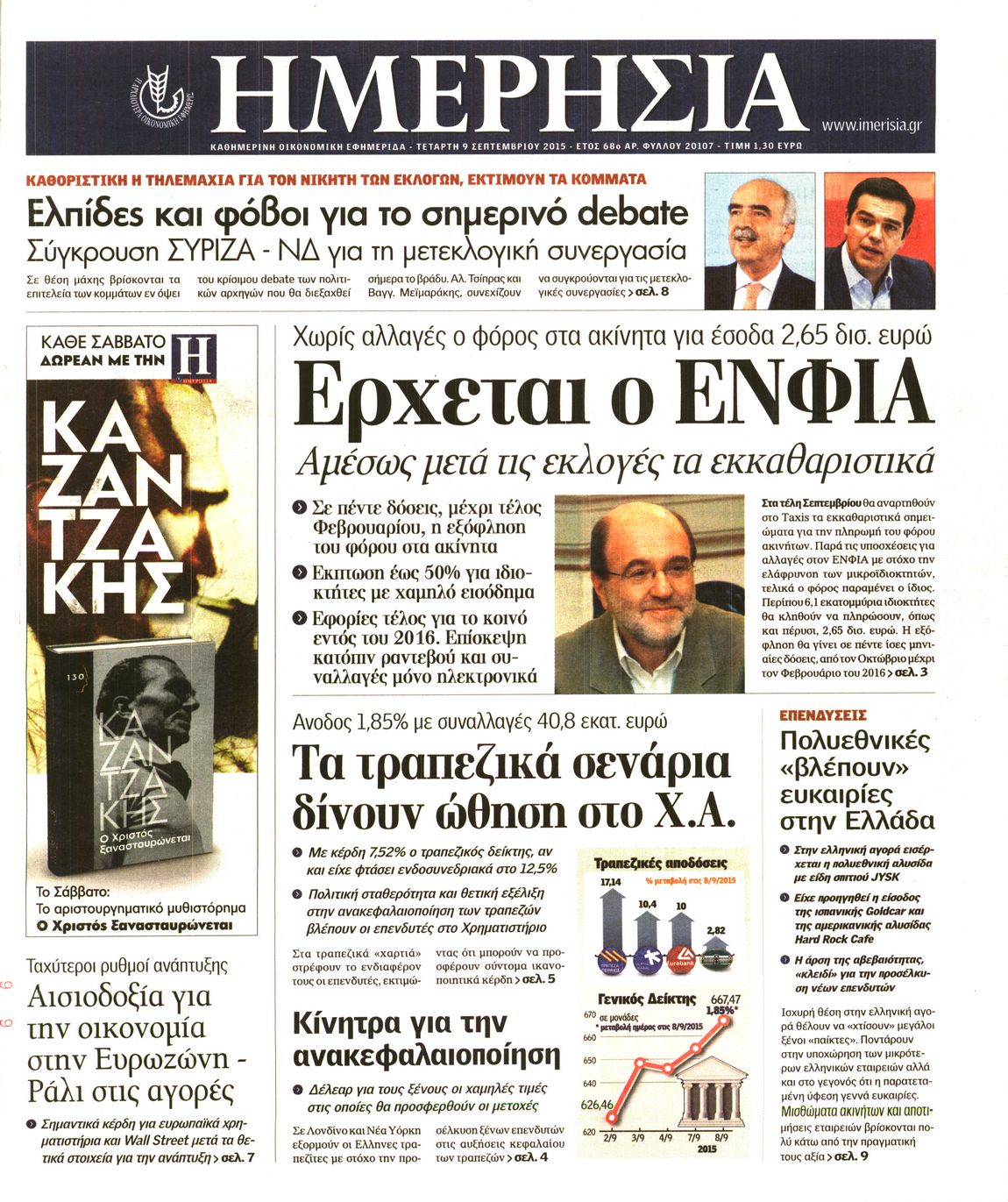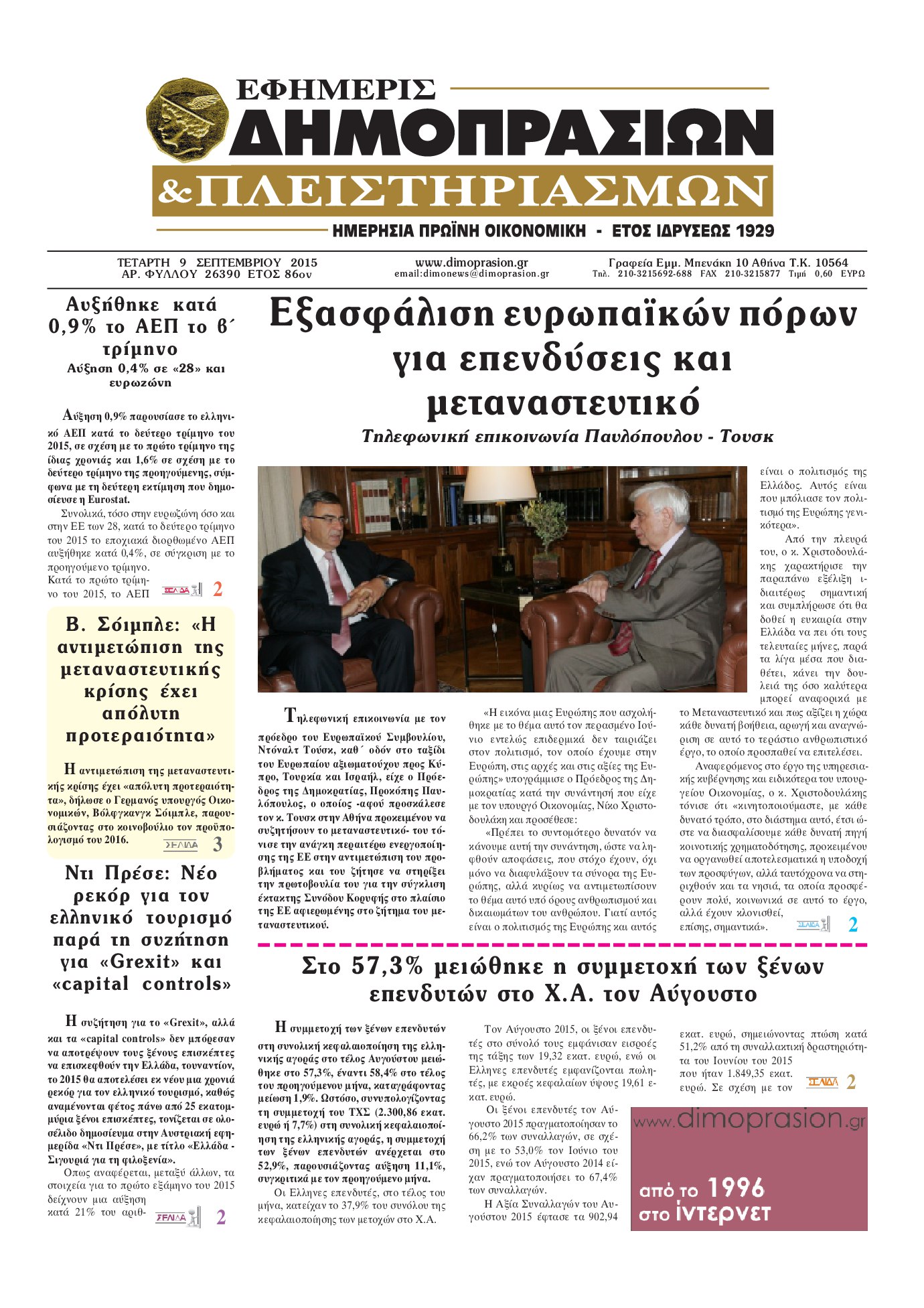 Oι οικονομικές εφημερίδες 9/9/2015 Enikos Newsroom 06:40, Τετάρτη 09 Σεπτεμβρίου 2015 Media Διαβάστε τα σημερινά πρωτοσέλιδα των οικονομικών εφημερίδων: ΟΙΚΟΝΟΜΙΚΕΣ ΕΦΗΜΕΡΙΔΕΣ ΠΡΩΤΟΣΕΛΙΔΑ Μοιράσου το: σχολίασε κι εσύ (0 σχόλια) Ακολουθήστε το enikos.gr στο Google News και μάθετε πρώτοι όλες τις ειδήσεις Δείτε όλες τις τελευταίες ειδήσεις από την Ελλάδα και τον Κόσμο στο enikos.gr Ειδήσεις Ροή Ειδήσεων 4 ώρες πριν Εκτός ευρωομάδας ΣΥΡΙΖΑ ο Νίκος Παππάς μετά την επίθεση στον δημοσιογράφο Νίκο Γιαννόπουλο – Η μήνυση και οι νέες δηλώσεις 5 ώρες πριν «Αγριεύουν» οι αγρότες: «Δεν συντρέχει λόγος συνάντησης με τον πρωθυπουργό» – Ώρα αποφάσεων στη σύσκεψη της Πέμπτης 5 ώρες πριν Κυψέλη: Χωρίς την οικογένειά της δίπλα της απολογήθηκε η 16χρονη – «Της είχε επιτεθεί κάποιος για να την βιάσει, φοβήθηκε και κυκλοφορούσε με μαχαίρι» 4 ώρες πριν Politico: Το πρόβλημα της Ευρώπης δεν είναι το Βέλγιο αλλά ο Ντόναλντ Τραμπ 6 ώρες πριν Αλεξανδρούπολη: Πολυοργανική ανεπάρκεια λόγω υποσιτισμού η αιτία θανάτου του 3χρονου αγοριού 4 ώρες πριν Μυστήριο με τεράστιες κυκλικές πέτρες 200 κιλών – Ανακαλύφθηκαν τυχαία κατά τη διάρκεια οδικών έργων και κανείς δεν ξέρει από πού προέρχονται 5 ώρες πριν Ύπνος: Ειδικός εξηγεί τον πραγματικό λόγο που ξυπνάτε στις 4 τα ξημερώματα – Ο ρόλος των ορμονών και του κιρκάδιου ρυθμού 6 ώρες πριν Αριθμολογία: Οι άνθρωποι που έχουν γεννηθεί αυτές τις 4 ημερομηνίες, είναι τρυφεροί και αγαπούν ανιδιοτελώς 18 ώρες πριν 20 χρόνια τα Χριστούγεννα ξεκινούν στα Public με μεγάλη ποικιλία σε δώρα! 8 λεπτά πριν Βραζιλία: Το Κογκρέσο ενέκρινε σχέδιο νόμου για τη μείωση της ποινής του πρώην προέδρου Μπολσονάρου 22 λεπτά πριν Ένταση στο περιφερειακό συμβούλιο Δυτικής Μακεδονίας: Φωνές, σπρωξιές και διακοπή – Δείτε βίντεο 37 λεπτά πριν Σουδάν: Επιδρομή drone σε χωριό του Νότιου Κορντοφάν – Οκτώ νεκροί 53 λεπτά πριν Αλ Τσαντίρι Νιουζ: Η κόρη της Πάολα στο κοινό – Η ατάκα Λαζόπουλου που την έκανε να «κοκκινήσει» 1 ώρα πριν Ρωσία: Ουκρανικές δυνάμεις έπληξαν πλοίο στο λιμάνι του Ροστόφ – Αναφορές για θύματα ENIKOS NETWORK Αϋπνία: Το κόλπο που θα σας βοηθήσει να κοιμηθείτε απόψε – Είναι απλό και έχει αποτέλεσμα 2,6 εκατομμύρια πολίτες έχουν ήδη εμβολιαστεί κατά της γρίπης ΕΛΣΤΑΤ: Τι δείχνουν τα νέα στοιχεία για τις ηλεκτρονικές παραγγελίες των επιχειρήσεων ΚΕΠΕ: Οι 3 διακριτές συμβολές των ΜμΕ και της μεταποίησης στην ελληνική οικονομία Χαρτογραφώντας το «σημείο χωρίς επιστροφή»: Για πρώτη φορά αποκαλύπτεται με λεπτομέρεια το ακανθώδες όριο της ατμόσφαιρας τ... Η Google καταργεί τη λειτουργία «dark web report» – Πώς θα μπορούν οι χρήστες να διαγράφουν τα δεδομένα τους περισσότερα 02:30 , Πέμπτη 18 Δεκεμβρίου 2025 Αλ Τσαντίρι Νιουζ: Η κόρη της Πάολα στο κοινό – Η ατάκα Λαζόπουλου που την έκανε να «κοκκινήσει» Γιορτινή διάθεση και ευχάριστες στιγμές γέμισε η αποψινή, τελευταία για το 2025, εκπομπή του «... 22:24 , Τετάρτη 17 Δεκεμβρίου 2025 Το Σπίτι Δίπλα Στο Ποτάμι: Σε κίνδυνο η υγεία του Απόστολου – Τι θα δούμε απόψε “Το Σπίτι Δίπλα στο Ποτάμι” ξετυλίγει το νήμα της ζωής των πέντε αδελφών με καταισ... 21:14 , Τετάρτη 17 Δεκεμβρίου 2025 Παιχνίδια Εκδίκησης: Θα καταφέρει ο Χρήστος να κλονίσει την εμπιστοσύνη της Μάγιας απέναντι στον Άγη; Τα «Παιχνίδια Εκδίκησης» έρχονται απόψε στις 22:30, στον Αντ1, με το τελευταίο επεισόδιο της χ... 20:57 , Τετάρτη 17 Δεκεμβρίου 2025 Άγιος Έρωτας: Η Χλόη καταθέτει εναντίον του πατέρα της και ο Χάρης αποκαλύπτε