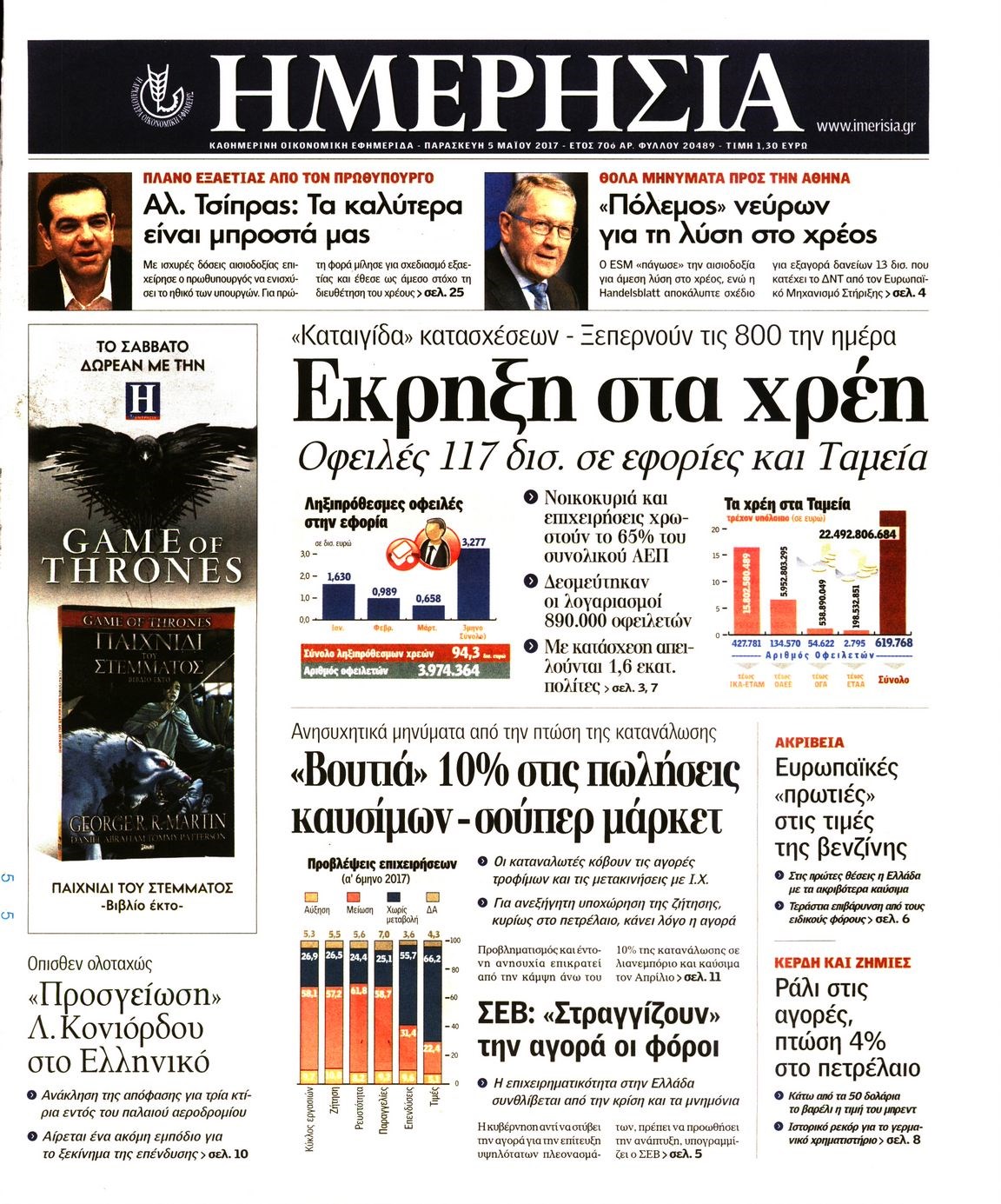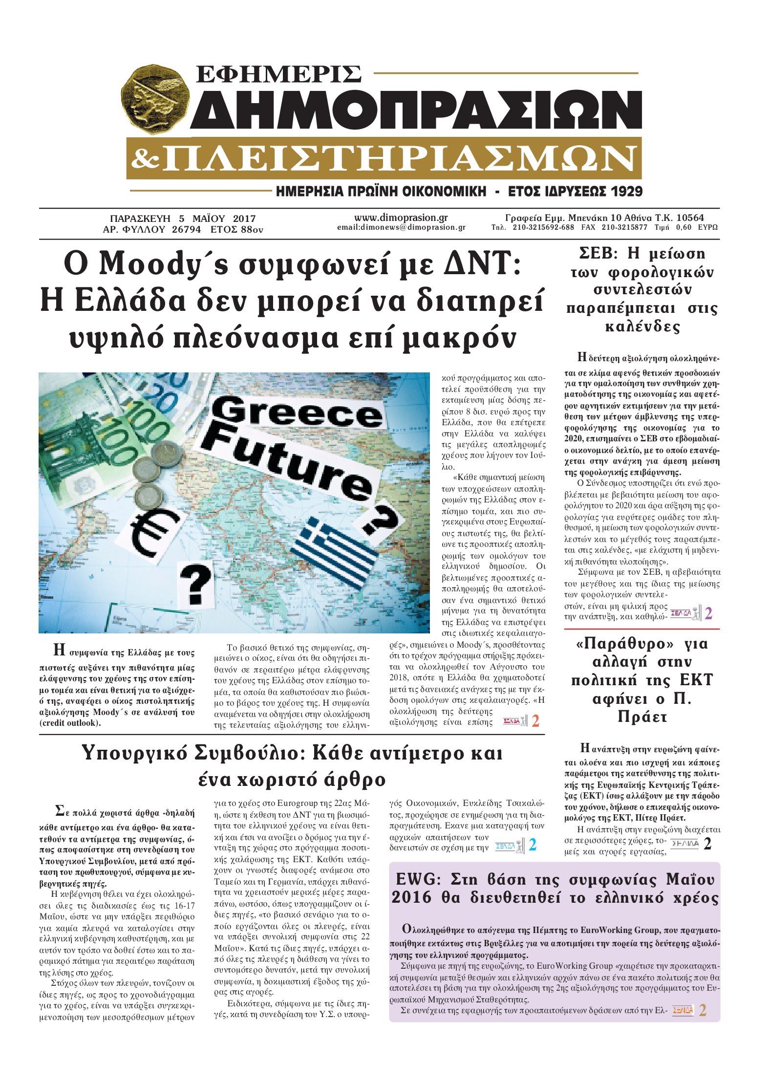 Οι οικονομικές εφημερίδες της ημέρας 5/5/2017 Enikos Newsroom 00:00, Δευτέρα 01 Ιανουαρίου 0001 Media Διαβάστε τα σημερινά πρωτοσέλιδα των οικονομικών εφημερίδων: ΟΙΚΟΝΟΜΙΚΕΣ ΕΦΗΜΕΡΙΔΕΣ ΠΡΩΤΟΣΕΛΙΔΑ Μοιράσου το: σχολίασε κι εσύ (0 σχόλια) Ακολουθήστε το enikos.gr στο Google News και μάθετε πρώτοι όλες τις ειδήσεις Δείτε όλες τις τελευταίες ειδήσεις από την Ελλάδα και τον Κόσμο στο enikos.gr Ειδήσεις Ροή Ειδήσεων 2 ώρες πριν Τρομοκρατική επίθεση στο Σίδνεϊ: Νεκροί 11 πολίτες και ένας δράστης – Εντοπίστηκε αυτοσχέδιος εκρηκτικός μηχανισμός 44 λεπτά πριν ΟΠΕΚΕΠΕ-Κρήτη: Προθεσμία να απολογηθούν από την Τρίτη έως την Πέμπτη έλαβαν οι 16 συλληφθέντες 4 ώρες πριν Σκληραίνουν τη στάση τους οι αγρότες: Αποφασίζουν τις δράσεις της εβδομάδας – Αύριο το συλλαλητήριο στα δικαστήρια της Λάρισας 7 ώρες πριν Κυριάκος Μητσοτάκης μετά το «όχι» των αγροτών: Διάλογος δεν γίνεται με τελεσίγραφα και οι λύσεις προκύπτουν μόνο από συζήτηση 1 ώρα πριν Πανεπιστήμιο Μπράουν: Υπό κράτηση ένα «άτομο ενδιαφέροντος» για το μακελειό με τους 2 νεκρούς και τους 9 τραυματίες 39 λεπτά πριν Τα 5 ζώδια που ευνοούνται στα ερωτικά τους έως τις 21 Δεκεμβρίου – «Η επόμενη σχέση σας θα είναι καθοριστική» 2 ώρες πριν Γεωλογική αποκάλυψη: Επιστήμονες εξηγούν πώς η Ιβηρική Χερσόνησος περιστρέφεται σαν… ρολόι 5 ώρες πριν Προπονήτρια ευεξίας που έχασε 24 κιλά αποκαλύπτει: «Αυτά είναι τα 6 ανησυχητικά σημάδια της υψηλής κορτιζόλης» 6 ώρες πριν Τα 8 πράγματα που τα ευτυχισμένα ζευγάρια δεν κάνουν ποτέ μπροστά στα παιδιά τους 7 λεπτά πριν Τηλεθέαση (13/12): Πώς κινήθηκαν οι εκπομπές στην πρωινή ζώνη το Σάββατο 15 λεπτά πριν Κρήτη: Χαμός σε ποδοσφαιρικό αγώνα – Προπονητής χτύπησε με κουτουλιά παίκτη της αντίπαλης ομάδας 23 λεπτά πριν Νετανιάχου για την επίθεση στο Σίδνεϊ: «Τους είχα προειδοποιήσει – Ρίχνουν λάδι στην φωτιά του αντισημιτισμού» 31 λεπτά πριν Ηλεία: Στον 62χρονο αγνοούμενο ανήκει η σορός που εντόπισε κυνηγός – Τραγικός επίλογος στις έρευνες 39 λεπτά πριν Τα 5 ζώδια που ευνοούνται στα ερωτικά τους έως τις 21 Δεκεμβρίου – «Η επόμενη σχέση σας θα είναι καθοριστική» ENIKOS NETWORK Άσκηση ή περισσότερος ύπνος: Τι είναι πιο σημαντικό για την υγεία όταν δεν έχετε χρόνο και για τα δύο; Σπλαχνικό λίπος: 3 υδατάνθρακες που μπορεί να σας βοηθήσουν να το χάσετε, σύμφωνα με ειδικό ΔΥΠΑ: Οι καταβολές που θα γίνουν την ερχόμενη Τετάρτη ΕΚΤ: Τα οφέλη για νοικοκυριά και επιχειρήσεις από τα σταθερά επιτόκια για ολόκληρο το 2026 Σύγχρονος Νοστράδαμος: Προειδοποιεί για «μεγάλο γεγονός» τους επόμενους μήνες που θα συγκλονίσει τη Βρετανία και τον κόσμο Τεστ παρατηρητικότητας: Μπορείτε να βρείτε τις 3 διαφορές στις εικόνες με έναν πιγκουίνο σε 14 δευτερόλεπτα περισσότερα 16:32 , Κυριακή 14 Δεκεμβρίου 2025 Τηλεθέαση (13/12): Πώς κινήθηκαν οι εκπομπές στην πρωινή ζώνη το Σάββατο Με αμείωτη ένταση συνεχίστηκε η μάχη για την τηλεθέαση στην πρωινή ζώνη των τηλεοπτικών καναλι... 15:07 , Κυριακή 14 Δεκεμβρίου 2025 IQ160: Η Μαρίνα στέλνει το φούτερ του Τηλέμαχου για το τεστ πατρότητας Η Πηνελόπη αποφασίζει να κάνει αμνιοπαρακέντηση, για να βεβαιωθεί για την υγεία του μωρού της ... 12:46 , Κυριακή 14 Δεκεμβρίου 2025 Η Realnews στο www.pressreader.com Διαβάστε την ψηφιακή έκδοση της εφημερίδας στην οθόνη του κινητού, του tablet και του υπολογισ... 10:07 , Κυριακή 14 Δεκεμβρίου 2025 Η γη της ελιάς: Η αρχή του τέλους του Δημοσθένη πλησιάζει Η δραματική σειρά του MEGA «Η γη της ελιάς» επιφυλάσσει ακόμα μεγαλύτ