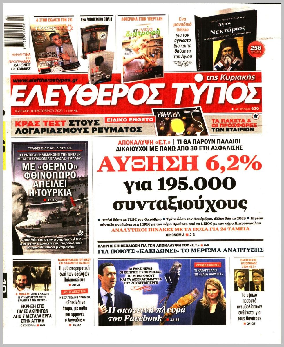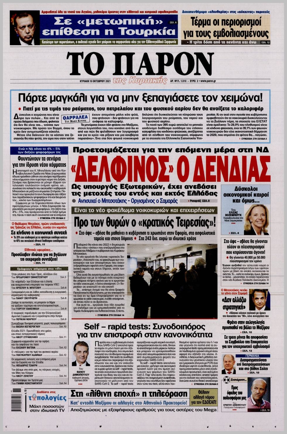 Οι πολιτικές εφημερίδες 10/10/2021 Διονύσης Νίκκας 07:10, Κυριακή 10 Οκτωβρίου 2021 Media Διαβάστε τα πρωτοσέλιδα από τις πολιτικές εφημερίδες… ΠΟΛΙΤΙΚΕΣ ΕΦΗΜΕΡΙΔΕΣ ΠΡΩΤΟΣΕΛΙΔΑ Μοιράσου το: σχολίασε κι εσύ (0 σχόλια) Ακολουθήστε το enikos.gr στο Google News και μάθετε πρώτοι όλες τις ειδήσεις Δείτε όλες τις τελευταίες ειδήσεις από την Ελλάδα και τον Κόσμο στο enikos.gr Ειδήσεις Ροή Ειδήσεων 2 ώρες πριν Πώς δρούσε το κύκλωμα που διακινούσε ναρκωτικά σε σχολεία – Υπέβαλαν σε βασανιστήρια όσους δεν τηρούσαν τους «κανόνες πειθαρχίας» 3 ώρες πριν Αγρότες: Γιορτές στα μπλόκα με ανοιχτά διόδια – Δικογραφία στα Ιωάννινα για το σήκωμα των μπαρών 2 ώρες πριν Ζελένσκι: Οι Αμερικανοί πρότειναν συνάντηση Ουκρανίας, ΗΠΑ, Ρωσίας στο Μαϊάμι 2 ώρες πριν Αττική: Εξαρθρώθηκε εγκληματική οργάνωση που έκλεβε οχήματα, τα παραποιούσε και τα μεταπωλούσε σε πολίτες – Πώς δρούσε το κύκλωμα 1 ώρα πριν Μικαέλα Μπέντχαους: Ο πρώτος άνθρωπος σε αναπηρικό αμαξίδιο που ταξίδεψε στο διάστημα – ΒΙΝΤΕΟ 3 ώρες πριν Η τύχη χαμογελά σε 3 ζώδια έως τις 28 Δεκεμβρίου – «Προσέξτε τις επιλογές σας και η επιμονή σας θα ανταμειφθεί» 7 ώρες πριν Διαιτολόγος αποκαλύπτει 9 πρωινές συνήθειες που «λιώνουν» το κοιλιακό λίπος – «Υποστηρίζουν την υγιεινή απώλεια βάρους» 4 ώρες πριν Μία ανεκμετάλλευτη πηγή θα μπορούσε να προσφέρει ανεξάντλητη ενέργεια – Οι επιστήμονες ίσως γνωρίζουν πώς να την ξεκλειδώσουν 10 ώρες πριν Enerwave: Το νέο «ρεύμα» στη λιανική ενέργειας που αλλάζει την εμπειρία του καταναλωτή 2 λεπτά πριν Φωτιά σε αυτοκίνητο στην Λεωφόρο Κηφισίας στο ύψος της Φιλοθέης – Μεγάλο μποτιλιάρισμα στο σημείο 6 λεπτά πριν Πηνελόπη Πλάκα: Η εξομολόγηση για την προσωπική της ζωή – «Γούσταρα πάρα πολύ την ελευθερία μου» 18 λεπτά πριν Λούλα: Προειδοποιεί πως μια επέμβαση των ΗΠΑ στη Βενεζουέλα θα μπορούσε να είναι καταστροφική 27 λεπτά πριν Τραμπ: Πώς περνάει τις γιορτές των Χριστουγέννων – Τα δώρα που κάνει στα εγγόνια του 40 λεπτά πριν HOTΕΛ ΕΛVIRA: Η Ελβίρα μαθαίνει πως ο Χάρι μένει κρυφά στο ξενοδοχείο του Παντελή ENIKOS NETWORK Οι γυναίκες αποκαλύπτουν το πιο ελκυστικό πράγμα που μπορεί να κάνει ένας άνδρας Ομορφιά και αντιγήρανση: Ειδικοί μιλούν για συσκευές περιποίησης του δέρματος Ολοκληρώθηκαν πληρωμές 22,16 εκατ. ευρώ για το μεταφορικό ισοδύναμο – Κικίλιας: Στηρίζουμε τη νησιωτικότητα Η Realnews στο www.pressreader.com Χαρτογραφώντας το «σημείο χωρίς επιστροφή»: Για πρώτη φορά αποκαλύπτεται με λεπτομέρεια το ακανθώδες όριο της ατμόσφαιρας τ... Η Google καταργεί τη λειτουργία «dark web report» – Πώς θα μπορούν οι χρήστες να διαγράφουν τα δεδομένα τους περισσότερα 18:19 , Σάββατο 20 Δεκεμβρίου 2025 HOTΕΛ ΕΛVIRA: Η Ελβίρα μαθαίνει πως ο Χάρι μένει κρυφά στο ξενοδοχείο του Παντελή Συνεχίζονται οι εκλογές για πρόεδρο, στο νέο επεισόδιο της κωμικής σειράς του MEGA, HOTΕΛ ΕΛVI... 14:04 , Σάββατο 20 Δεκεμβρίου 2025 Η Realnews αυτής της Κυριακής (21/12/2025) Με τίτλο: «Ασπίδα προστασίας για την Ελλάδα» κυκλοφορεί, αυτήν την Κυριακή, η Realnews. Σημαντ... 12:53 , Σάββατο 20 Δεκεμβρίου 2025 Να μ’ αγαπάς: Το παρελθόν έρχεται στο φως – Καταιγιστικές εξελίξεις στα τελευταία επεισόδια του 2025 Ο Άγγελος αποκαλύπτεται, η Φωτεινή ανησυχεί για τον Λευτέρη και η Ζωή έρχεται αντιμέτωπη με το... 11:41 , Σάββατο 20 Δεκεμβρίου 2025 «Η αγάπη δεν χάνεται ποτέ»: Η μικρού μήκους ταινία κινουμένων σχεδίων που θέτει ερωτήματα για τη ζωή και τον θάνατο Ο θάνατος είναι ένα από τα πιο σκληρά θέματα που καλείται να διαχ
