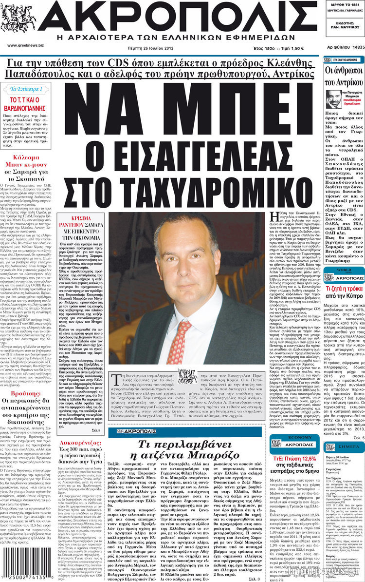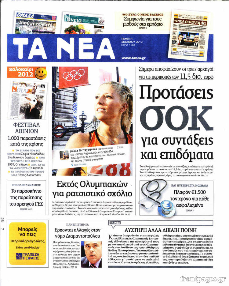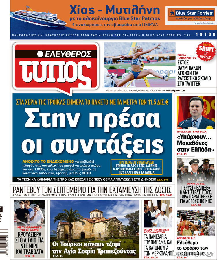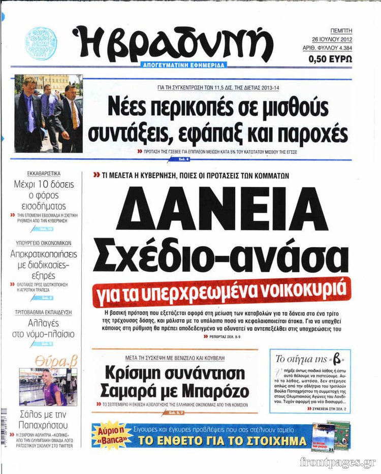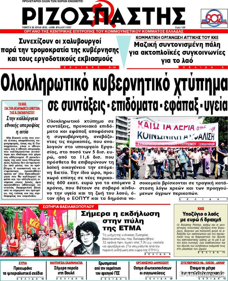 Τα σημερινά πρωτοσέλιδα των πολιτικών εφημερίδων.