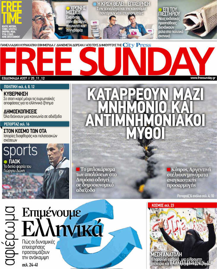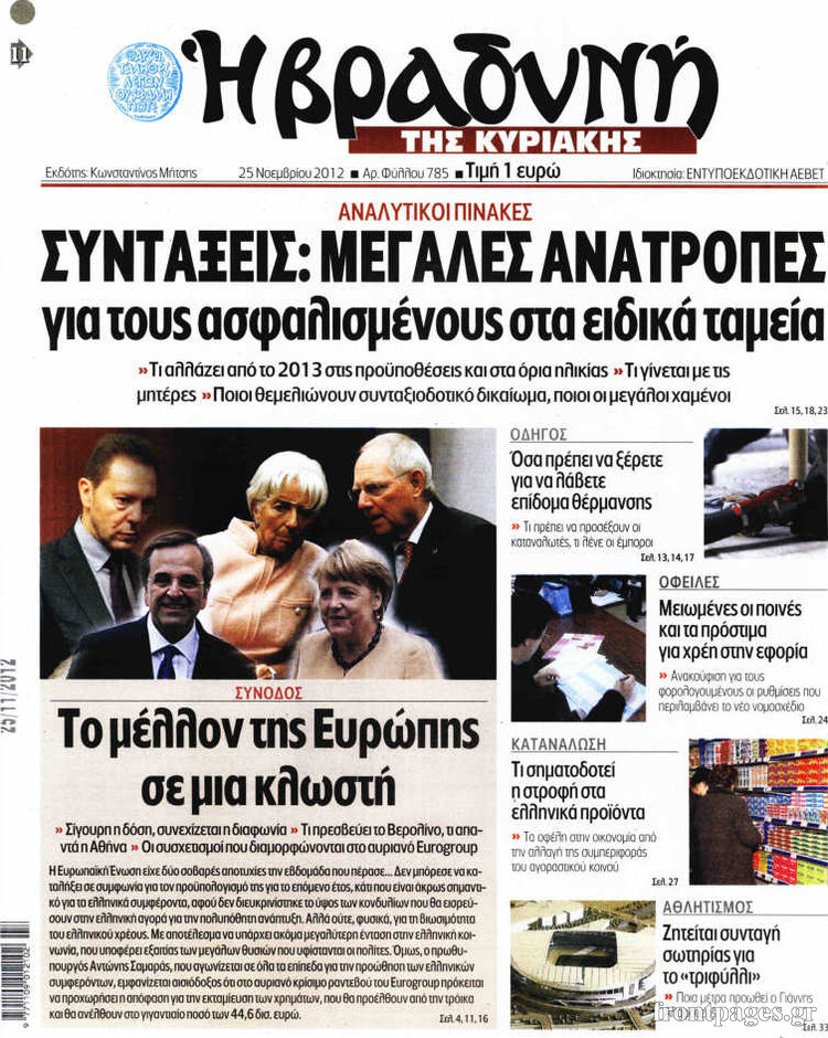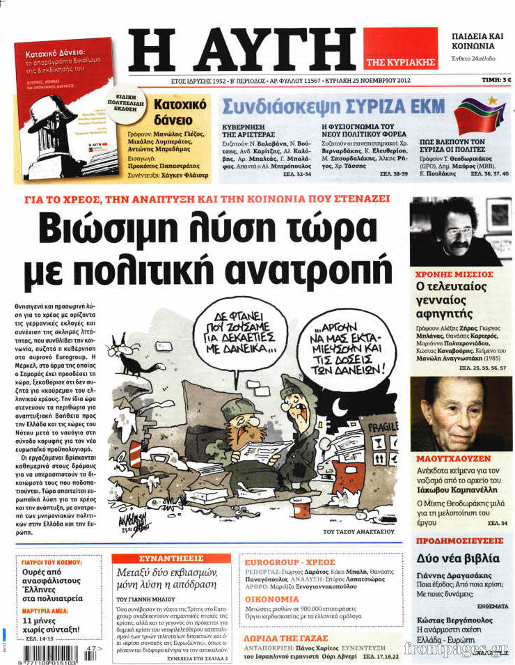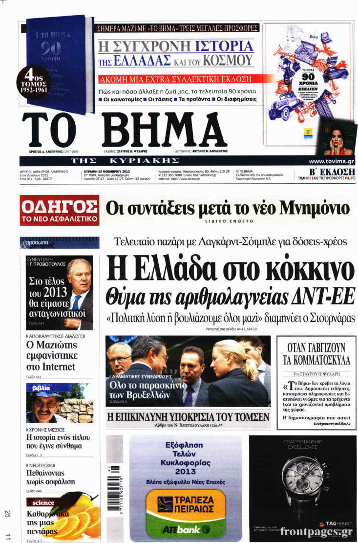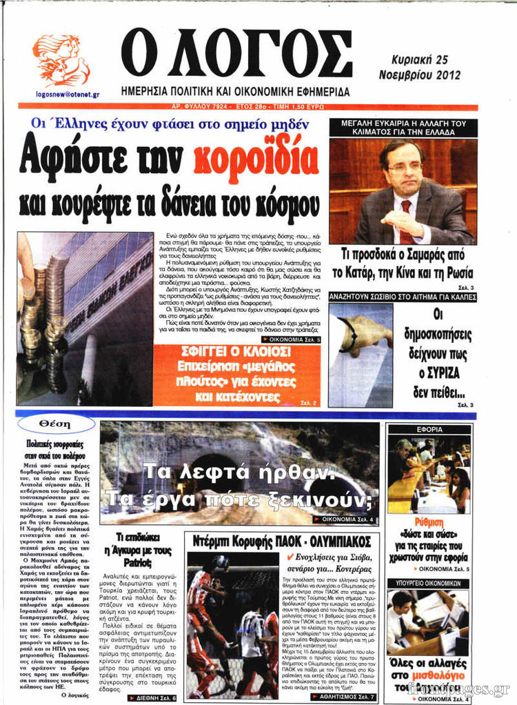 Οι πολιτικές εφημερίδες Enikos Newsroom 09:27, Κυριακή 25 Νοεμβρίου 2012 Media Οι πολιτικές εφημερίδες Διαβάστε τα πρωτοσέλιδα των κυριακάτικων εφημερίδων. ΠΟΛΙΤΙΚΕΣ ΕΦΗΜΕΡΙΔΕΣ Μοιράσου το: σχολίασε κι εσύ (0 σχόλια) Ακολουθήστε το enikos.gr στο Google News και μάθετε πρώτοι όλες τις ειδήσεις Δείτε όλες τις τελευταίες ειδήσεις από την Ελλάδα και τον Κόσμο στο enikos.gr Ειδήσεις Ροή Ειδήσεων 4 ώρες πριν Αγρότες: «Όχι στον διάλογο, μας εμπαίζει η κυβέρνηση» – Αποφάσισαν κλιμάκωση των κινητοποιήσεων, τι θα γίνει τα Χριστούγεννα 49 λεπτά πριν Αθήνα: Εξαρθρώθηκε εγκληματική οργάνωση που διακινούσε ναρκωτικά σε μορφή σοκολάτας – Δύο τράπερ ανάμεσα στους 4 συλληφθέντες – ΒΙΝΤΕΟ 58 λεπτά πριν Στη φυλακή ο «Έλληνας Εσκομπάρ» και τρεις συνεργοί του για το φορτίο με την κοκαΐνη – Τι υποστήριξε στην απολογία του 2 ώρες πριν Γιώργος Μαζωνάκης: «Έχει υποστεί ένα σωρό εκβιαστικές πρακτικές – Του είπαν ότι θα του βάλουν τον συγκεκριμένο άνθρωπο να τον καταγγείλει» 35 λεπτά πριν Γεωργιάδης για Κωνσταντοπούλου: «Έχει καταφέρει να ξεπεράσει ακόμη και τον εαυτό της – Το ερώτημα είναι “γιατί τώρα;”» 5 ώρες πριν Τα 5 ζώδια που θα ευνοηθούν στα οικονομικά τους το 2026 – «Τραβούν το χρήμα σαν μαγνήτες» 2 ώρες πριν Γάμος: 11 ψυχρές αλλά ευγενικές φράσεις, που λέει ένας άνδρας όταν σκέφτεται τον χωρισμό 44 λεπτά πριν Σφουγγάρισμα: Η συνήθεια που θα σας βοηθήσει να διατηρήσετε το σπίτι σας καθαρό και τακτοποιημένο 1 ημέρα πριν 20 χρόνια τα Χριστούγεννα ξεκινούν στα Public με μεγάλη ποικιλία σε δώρα! 4 λεπτά πριν ΗΠΑ: Νέες φωτογραφίες από τον φάκελο Επστάιν έδωσαν στην δημοσιότητα οι Δημοκρατικοί 10 λεπτά πριν ΕΦΕΤ: Συμβουλές για ασφαλή κατανάλωση τροφίμων κατά την εορταστική περίοδο των Χριστουγέννων 18 λεπτά πριν Φάμελλος: Η κινητοποίηση των αγροτών είναι για το συμφέρον όλων των κοινωνικών ομάδων – Πρέπει να φύγετε το συντομότερο 23 λεπτά πριν Primeira Liga: 8ος πιο ακριβός παίκτης στην Πορτογαλία ο Παυλίδης με αξία 35 εκατ. ευρώ – 27ος ο Ιωαννίδης, 45ος ο Βαγιαννίδης 28 λεπτά πριν Λένα Μαντά: «Με τον πατέρα μου δεν έχω ούτε μία καλή ανάμνηση» ENIKOS NETWORK Σκέφτεστε συνέχεια συζητήσεις που έχετε κάνει; Τι σημαίνει αυτό, σύμφωνα με ειδικό Ξεκίνησε η «επέλαση» της γρίπης στην Ελλάδα-Ποιοι κινδυνεύουν Servicers: Μικρή μείωση στα κόκκινα δάνεια που διαχειρίζονται – Αναλυτικά τα στοιχεία ΑΑΔΕ: “Αλλάζει πρόσωπο” το Φορολογικό Μητρώο για πολίτες και επιχειρήσεις – Όλες οι λεπτομέρειες Χαρτογραφώντας το «σημείο χωρίς επιστροφή»: Για πρώτη φορά αποκαλύπτεται με λεπτομέρεια το ακανθώδες όριο της ατμόσφαιρας τ... Η Google καταργεί τη λειτουργία «dark web report» – Πώς θα μπορούν οι χρήστες να διαγράφουν τα δεδομένα τους περισσότερα 17:45 , Πέμπτη 18 Δεκεμβρίου 2025 ROUK ZOUK: Εορταστικό επεισόδιο με καλεσμένους τους πρωταγωνιστές του «Γιατί ρε πατέρα» Το Σάββατο 20 Δεκεμβρίου στις 21:00, η Ζέτα Μακρυπούλια υποδέχεται εκλεκτούς ηθοποιούς που όλο... 17:20 , Πέμπτη 18 Δεκεμβρίου 2025 Άγιος έρωτας: Η Χριστίνα εξομολογείται στον πατέρα Νικόλαο, απόψε στις 21:00 στον Alpha Η Νότα αποφασίζει να εκδικηθεί τον Πέτρο και τον Στέφανο, για χάρη του Λούη, όμως τα πράγματα ... 16:50 , Πέμπτη 18 Δεκεμβρίου 2025 Να μ’ αγαπάς: Ζωή και Φωτεινή συμφιλιώνονται ως μάνα με κόρη, απόψε στις 20:00 Η ταυτότητα του Άγγελου αποκαλύπτεται στο νέο επεισόδιο της σειράς “Να μ’ αγαπάς... 15:52 , Πέμπτη 18 Δεκεμβρίου 2025 Το Σπίτι Δίπλα Στο Ποτάμι: Το καθηλωτικό τελευταίο επεισόδιο για το 2025 απόψε στις 22:30 
