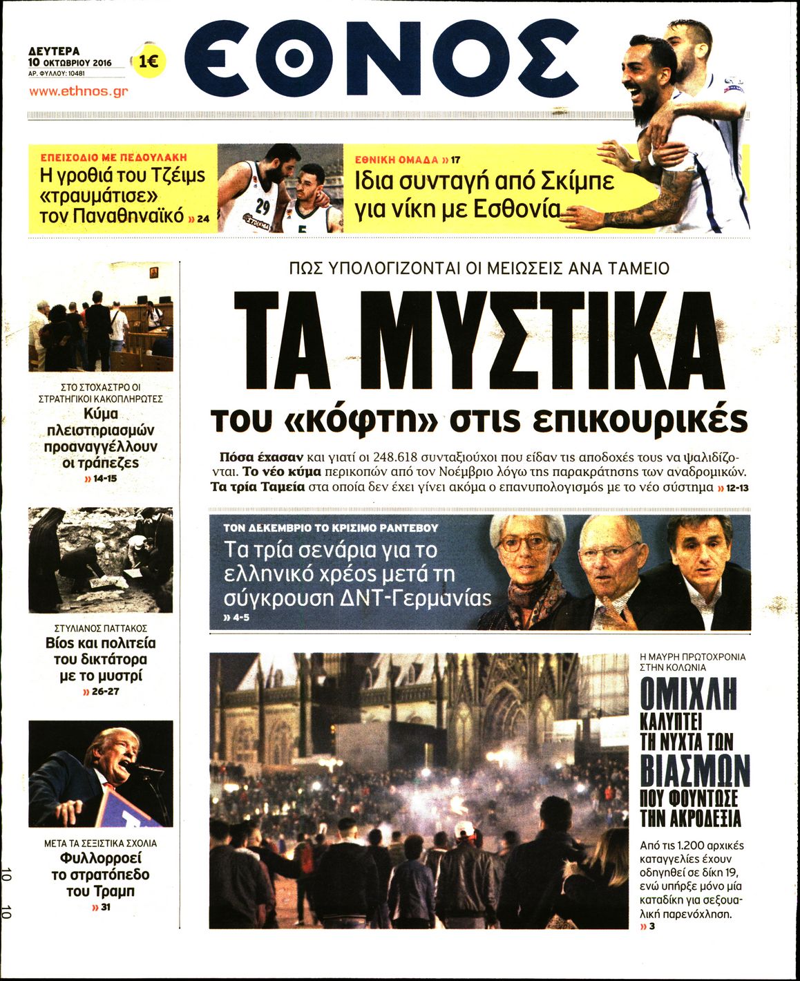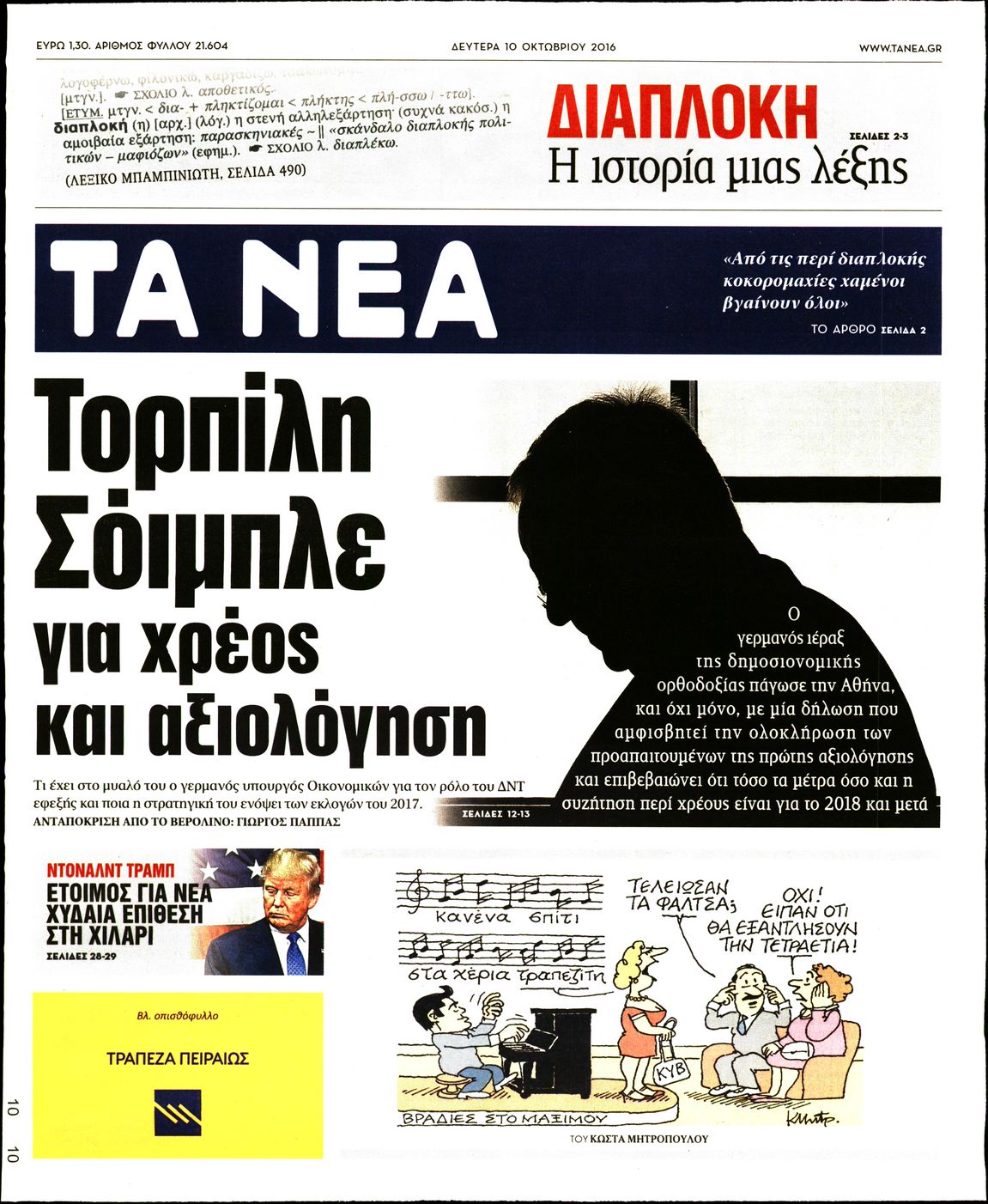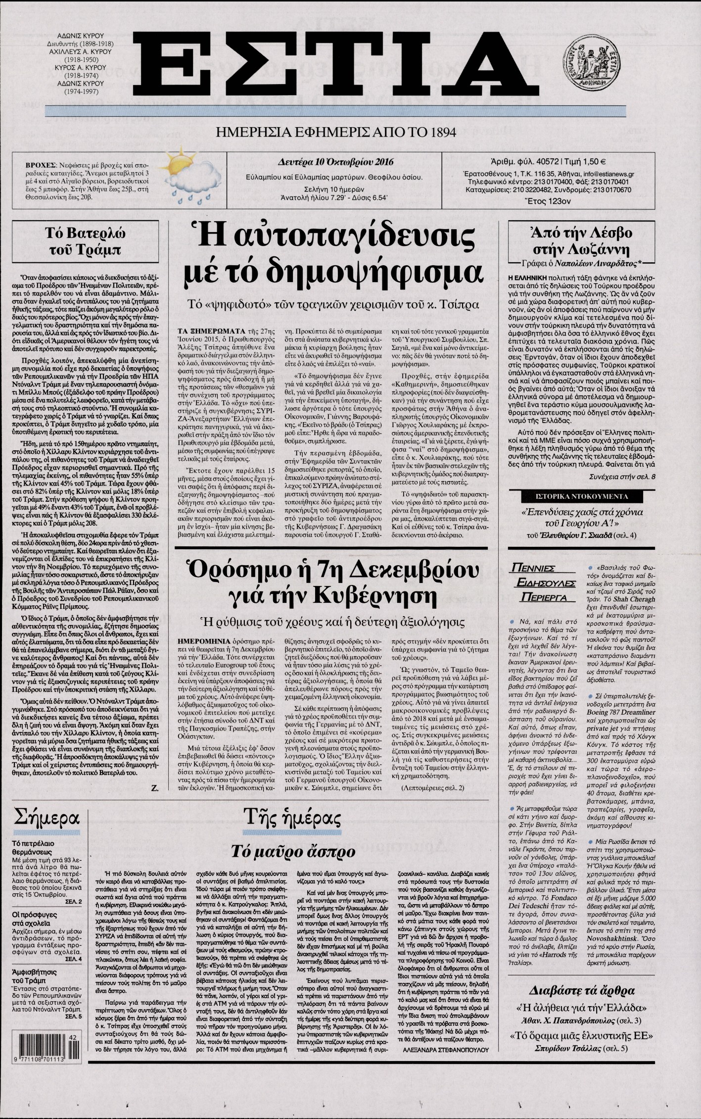 Οι πολιτικές εφημερίδες 10/10/2016 Enikos Newsroom 06:52, Δευτέρα 10 Οκτωβρίου 2016 Media Διαβάστε τα σημερινά πρωτοσέλιδα των πολιτικών εφημερίδων: ΠΟΛΙΤΙΚΕΣ ΕΦΗΜΕΡΙΔΕΣ ΠΡΩΤΟΣΕΛΙΔΑ Μοιράσου το: σχολίασε κι εσύ (0 σχόλια) Ακολουθήστε το enikos.gr στο Google News και μάθετε πρώτοι όλες τις ειδήσεις Δείτε όλες τις τελευταίες ειδήσεις από την Ελλάδα και τον Κόσμο στο enikos.gr Ειδήσεις Ροή Ειδήσεων 6 ώρες πριν Μητσοτάκης: Αναγκαία η μεταρρύθμιση του πρωτογενούς τομέα – Τα 6 νέα μέτρα για το στεγαστικό και οι αναφορές σε «Ιθάκη» και «πολιτικούς του καναπέ» 5 ώρες πριν Δάνεια σε ελβετικό φράγκο: Τα βασικά σημεία της ρύθμισης – ανάσας για 40.000 δανειολήπτες – Αναλυτικός οδηγός με ερωτήσεις και απαντήσεις 4 ώρες πριν Κυψέλη: Εξιτήριο πήρε η 14χρονη μαθήτρια που μαχαιρώθηκε από την 16χρονη σε σχολείο – «Θέλω να βοηθήσω το παιδί, έχει μπλέξει με κακές παρέες» 4 ώρες πριν Τραμπ: Γιατί κατέθεσε τώρα την αγωγή κατά του BBC – Πώς η κίνησή του εξυπηρετεί το νέο δόγμα του για «αντίσταση» στην Ευρώπη, υπέρ των συντηρητικών 5 ώρες πριν ΟΠΕΚΕΠΕ – Παράνομες επιδοτήσεις: Ελεύθεροι με περιοριστικούς όρους και οι 7 κατηγορούμενοι που απολογήθηκαν σήμερα 4 ώρες πριν Ανακαλύφθηκε βυθισμένη πέτρινη κατασκευή ανοιχτά της Κριμαίας – Αποτελεί μέρος αρχαίας ελληνικής αποικίας 5 ώρες πριν Ύπνος: Αυτό μπορεί να είναι το χειρότερο λάθος για το βιολογικό ρολόι σας, σύμφωνα με ειδικό 6 ώρες πριν Αριθμολογία: Οι άνθρωποι που έχουν γεννηθεί αυτές τις 3 ημερομηνίες, προσελκύουν μεγάλη τύχη πριν από το τέλος του 2025 8 ώρες πριν Οι 7 συμπεριφορές που μαρτυρούν ότι ένας άνδρας επενδύει μακροπρόθεσμα σε μια σχέση 15 λεπτά πριν Νίκος Πλακιάς: Η Μαρία Καρυστιανού πλέον θα κρίνεται ως πολιτικός και όχι ως συγγενής 31 λεπτά πριν Ντόναλντ Τραμπ: Κάλυψε απόλυτα την προσωπάρχη του Λευκού Οίκου: «Ναι, έχω προσωπικότητα αλκοολικού» 46 λεπτά πριν ΗΠΑ: Στην αγορά δύο Boeing 747-8 προχωρά η Πολεμική Αεροπορία για την υποστήριξη του προεδρικού στόλου 1 ώρα πριν Ιταλία: Λεωφορείο έπεσε πάνω σε βιτρίνα καταστήματος στο Τορίνο – Τρεις τραυματίες 1 ώρα πριν Χαλάνδρι: Καθηγητής έπιασε με κόφτη τα δάχτυλα μαθητή σε κατάληψη – «Μου έχεις πιάσει το χέρι» ENIKOS NETWORK Αίτημα ΙΣΑ για την εξαίρεση των προσωπικών γιατρών από τις κατ’ οίκον επισκέψεις Η σκανδιναβική μέθοδος στον ύπνο που μπορεί να σώσει έναν γάμο Πιερρακάκης: Ο προϋπολογισμός συμβάλλει ουσιαστικά στην ενίσχυση της αγοραστικής δύναμης της πλειονότητας των εργαζομένων e-ΕΦΚΑ: Παρατείνεται η προθεσμία για την υποβολή ΑΠΔ – Ποιους αφορά Σύγχρονος Νοστράδαμος: Προειδοποιεί για «μεγάλο γεγονός» τους επόμενους μήνες που θα συγκλονίσει τη Βρετανία και τον κόσμο Τεστ παρατηρητικότητας: Μπορείτε να βρείτε τις 3 διαφορές στις εικόνες με έναν πιγκουίνο σε 14 δευτερόλεπτα περισσότερα 20:06 , Τρίτη 16 Δεκεμβρίου 2025 Ο ΣΚΑΙ καταγγέλλει τον ΕΚΚΟΜΕΔ Επιστολή με την οποία καταγράφει την έντονη διαμαρτυρία του προς τον διευθύνοντα σύμβουλο του... 17:40 , Τρίτη 16 Δεκεμβρίου 2025 Eurovision: Στις 4 Ιανουαρίου αποκαλύπτονται τα 28 τραγούδια του ελληνικού τελικού Η αγωνία τελειώνει, η γιορτή της Eurovision αρχίζει στην ΕΡΤ από τις πρώτες ημέρες της νέας χρ... 17:09 , Τρίτη 16 Δεκεμβρίου 2025 Alter Ego Media: Βαθύτατη θλίψη και ειλικρινή συλλυπητήρια για την απώλεια της Ειρήνης Μαρινάκη Τη βαθύτατη θλίψη και τα ειλικρινή συλλυπητήριά της εκφράζει η Alter Ego Media για τον θάνατο ... 13:00 , Τρίτη 16 Δεκεμβρίου 2025 «Στο Παρά Πέντε – 20 Χρόνια Μετά»: Κυκλ