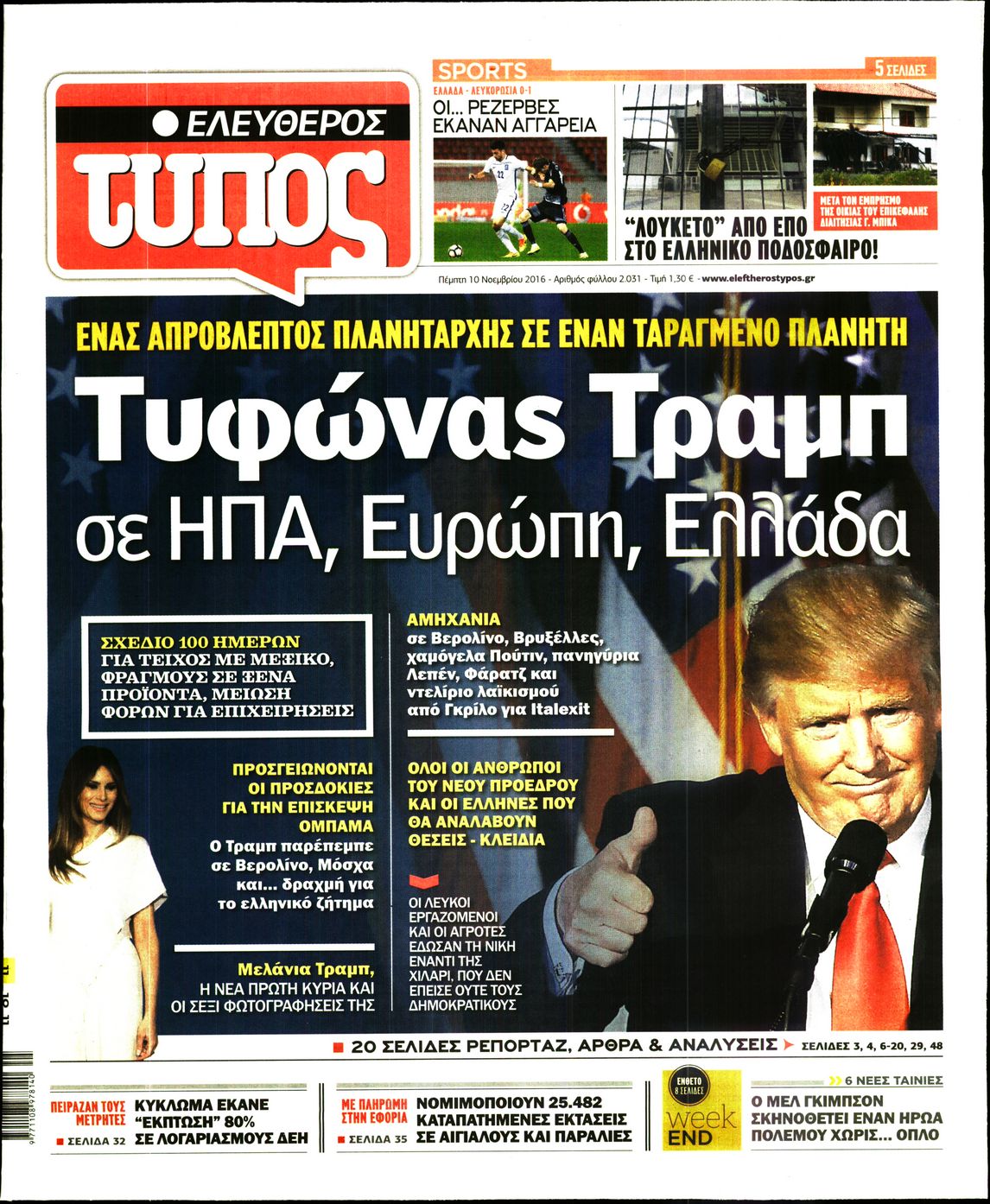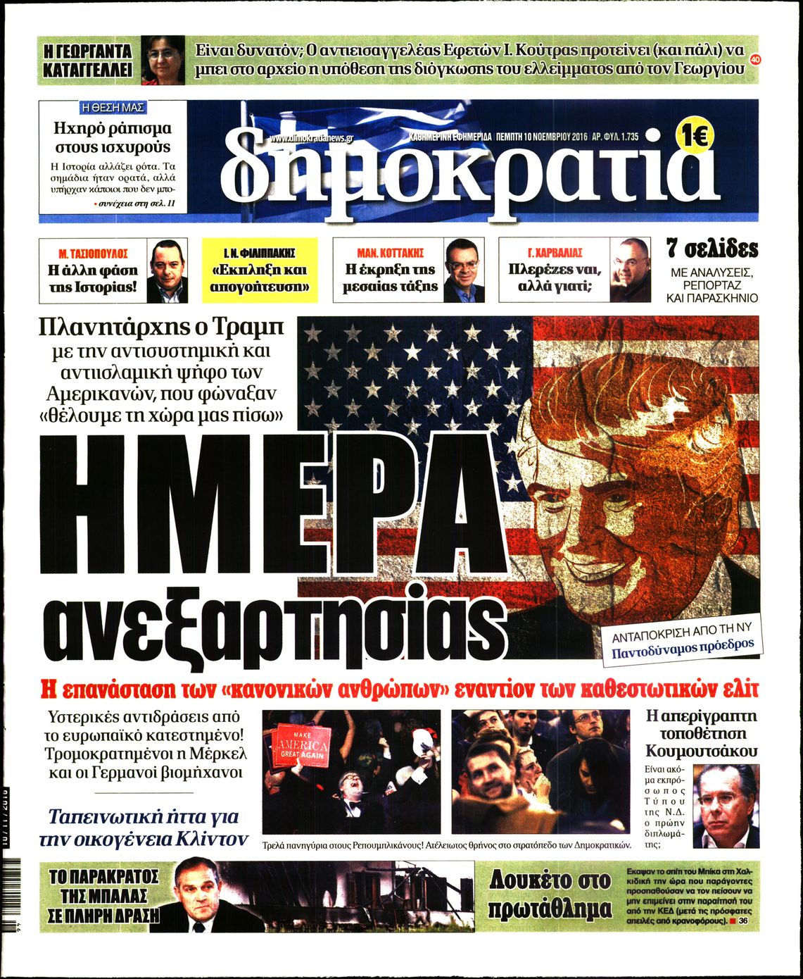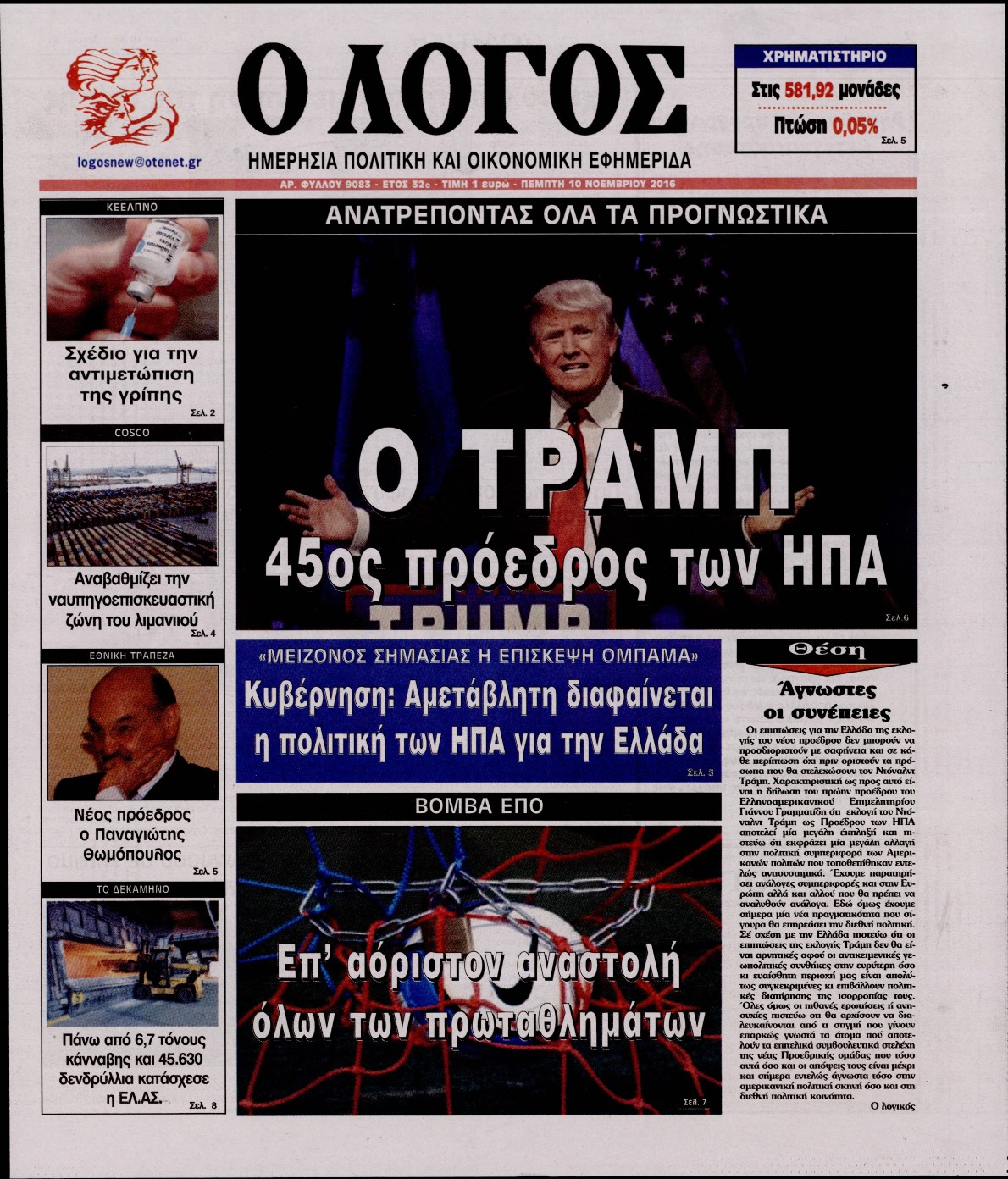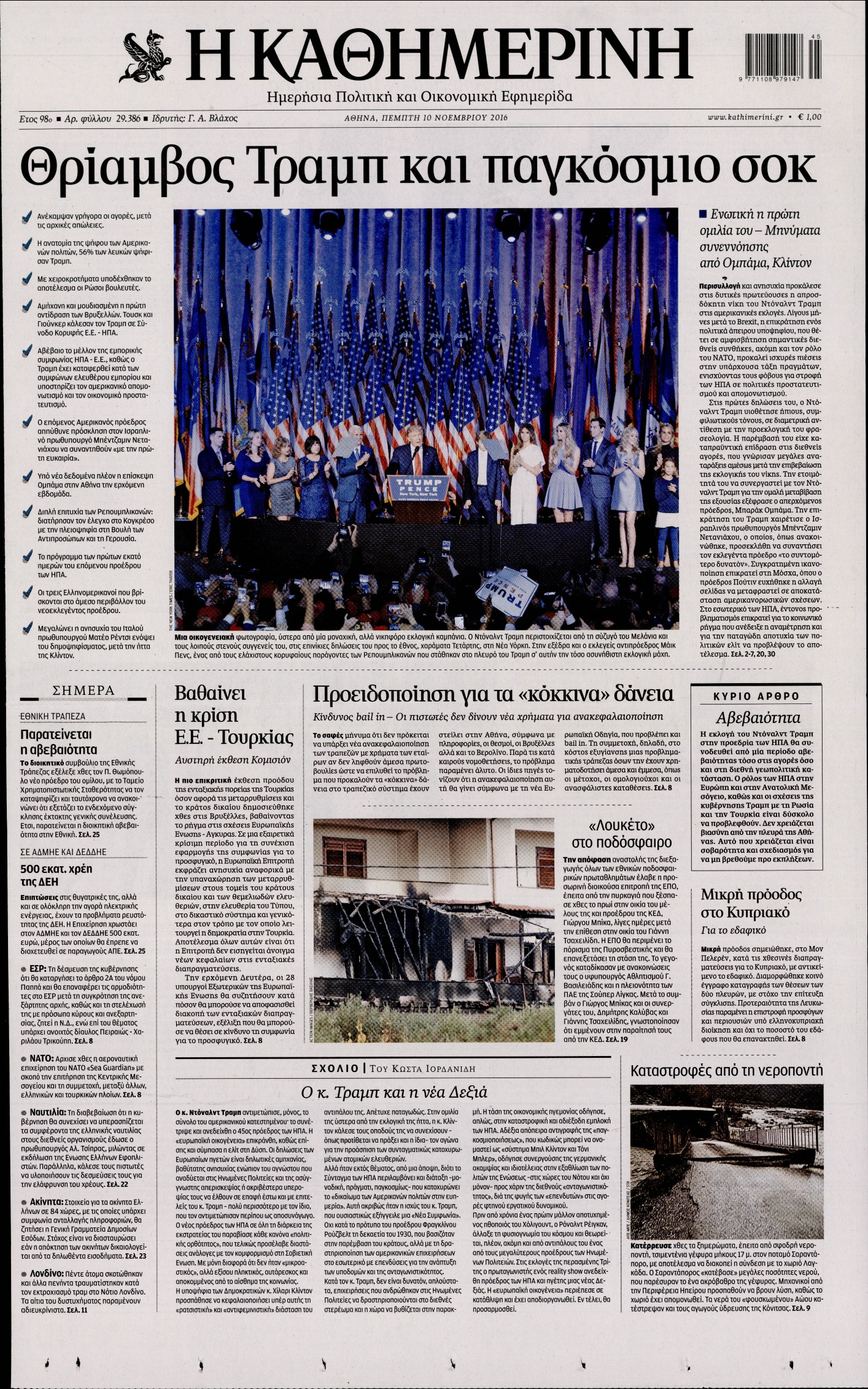 Οι πολιτικές εφημερίδες 10/11/2016 Enikos Newsroom 02:05, Πέμπτη 10 Νοεμβρίου 2016 Media Διαβάστε τα σημερινά πρωτοσέλιδα των πολιτικών εφημερίδων: ΠΟΛΙΤΙΚΕΣ ΕΦΗΜΕΡΙΔΕΣ ΠΡΩΤΟΣΕΛΙΔΑ Μοιράσου το: σχολίασε κι εσύ (0 σχόλια) Ακολουθήστε το enikos.gr στο Google News και μάθετε πρώτοι όλες τις ειδήσεις Δείτε όλες τις τελευταίες ειδήσεις από την Ελλάδα και τον Κόσμο στο enikos.gr Ειδήσεις Ροή Ειδήσεων 8 ώρες πριν Χριστούγεννα στα μπλόκα: Επιμένουν στις κινητοποιήσεις τους οι αγρότες – Ανοίγουν τα διόδια το Σαββατοκύριακο 9 ώρες πριν Ουκρανία: Η άνευ προηγουμένου επίθεση σε ρωσικό τάνκερ στη Μεσόγειο και το μήνυμα προς στον Πούτιν – Το «μακρύ χέρι» του Κιέβου 8 ώρες πριν Πούτιν: Τα μηνύματα σε Ευρώπη και ΝΑΤΟ από το μαραθώνιο «σόου» του – Η απαίτηση για «σεβασμό» και η ειρήνη «με τους όρους» της Μόσχας 7 ώρες πριν ΗΠΑ: Η κυβέρνηση του Ντόναλντ Τραμπ άρχισε να δημοσιοποιεί τα αρχεία Έπσταϊν 7 ώρες πριν Άνω Λιόσια: Πυροβολισμοί σε επιχείρηση με χαλιά – Εντοπίστηκαν 10 κάλυκες 60 λεπτά πριν Αυγά: Πόσα μπορείτε να τρώτε την ημέρα με ασφάλεια για μέγιστη πρόσληψη πρωτεΐνης 1 ώρα πριν Τα ζώδια σήμερα, Σάββατο 20 Δεκεμβρίου: Παρθένοι, το σύμπαν σας δίνει το κλειδί 8 ώρες πριν Ανακαλύφθηκαν αρχαία χρυσά νομίσματα 2.200 ετών που απεικονίζουν τον θεό Απόλλωνα – Η άγνωστη σύνδεση με τον Φίλιππο Β΄ της Μακεδονίας 9 ώρες πριν Ύπνος: Μια κρυφή κατάσταση του εγκεφάλου πριν από τον ύπνο μπορεί να είναι το “κλειδί” για υψηλή ευφυΐα και δημιουργικότητα 6 λεπτά πριν Αναβολή συμφωνίας ΕΕ-Mercosur: Ο χρόνος «δεν είναι απεριόριστος» προειδοποιεί η Παραγουάη 20 λεπτά πριν Κίριλ Ντμίτριεφ: Στις ΗΠΑ ο απεσταλμένος της Ρωσίας για συνομιλίες με τους ομολόγους του, Γουίτκοφ και Κούσνερ 28 λεπτά πριν ΔΕΔΔΗΕ: Διακοπές ρεύματος σήμερα (20/12) στην Αθήνα και σε άλλες 7 περιοχές της Αττικής 36 λεπτά πριν Κολομβία: Είκοσι χρόνια κάθειρξη σε πρώην ανώτερο αξιωματικό για 72 εκτελέσεις αμάχων 44 λεπτά πριν Οπτική ψευδαίσθηση: Μόνο αν είσαι ο Σέρλοκ Χολμς θα βρεις τον αριθμό «87» σε 7 δευτερόλεπτα ENIKOS NETWORK Πρέπει να αποδέχεστε ή να απορρίπτετε όλα τα cookies; Ένας ειδικός εξηγεί Η αγαπημένη λιχουδιά των πόνι που μπορεί να ενισχύσει όραση, εγκέφαλο και ανοσοποιητικό Αναστολή μέτρων αναγκαστικής εκτέλεσης για κτηνοτρόφους που πλήττονται από την ευλογιά των αιγοπροβάτων Πλήρης επάρκεια προϊόντων στις λαϊκές της Αττικής, παρά τις αγροτικές κινητοποιήσεις – Τι απαντούν οι πωλητές Χαρτογραφώντας το «σημείο χωρίς επιστροφή»: Για πρώτη φορά αποκαλύπτεται με λεπτομέρεια το ακανθώδες όριο της ατμόσφαιρας τ... Η Google καταργεί τη λειτουργία «dark web report» – Πώς θα μπορούν οι χρήστες να διαγράφουν τα δεδομένα τους περισσότερα 05:48 , Σάββατο 20 Δεκεμβρίου 2025 Οι οικονομικές εφημερίδες 20/12/2025 Διαβάστε τα πρωτοσέλιδα από τις οικονομικές εφημερίδες, σήμερα 20/12/2025. 05:43 , Σάββατο 20 Δεκεμβρίου 2025 Οι αθλητικές εφημερίδες 20/12/2025 Διαβάστε τα πρωτοσέλιδα από τις αθλητικές εφημερίδες, σήμερα 20/12/2025. 05:38 , Σάββατο 20 Δεκεμβρίου 2025 Οι πολιτικές εφημερίδες 20/12/2025 Διαβάστε τα πρωτοσέλιδα από τις πολιτικές εφημερίδες, σήμερα 20/12/2025. 04:20 , Σάββατο 20 Δεκεμβρίου 2025 Αγγελική Νικολούλη: Τα συλλυπητήρια για την απώλεια της Ειρήνης Μαρινάκη Τα συλληπητήρια στον πρόεδρο του Mega, τον Βαγγέλη Μαρινάκη, για την απώλεια της μητέρας του Ε... ΤΕΛΕΥΤΑΙΕΣ ΕΙΔΗΣΕΙΣ 6 λεπτά πριν Αναβολή συμφωνίας ΕΕ-Mercosur: Ο χρόνος «δεν είναι... 20 λεπτά πριν Κίριλ Ντμίτριεφ: Στις ΗΠΑ ο απεσταλμένος της Ρωσίας... 28 λ