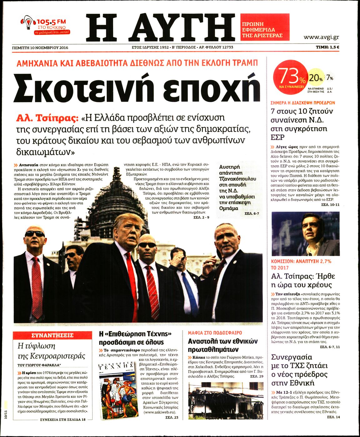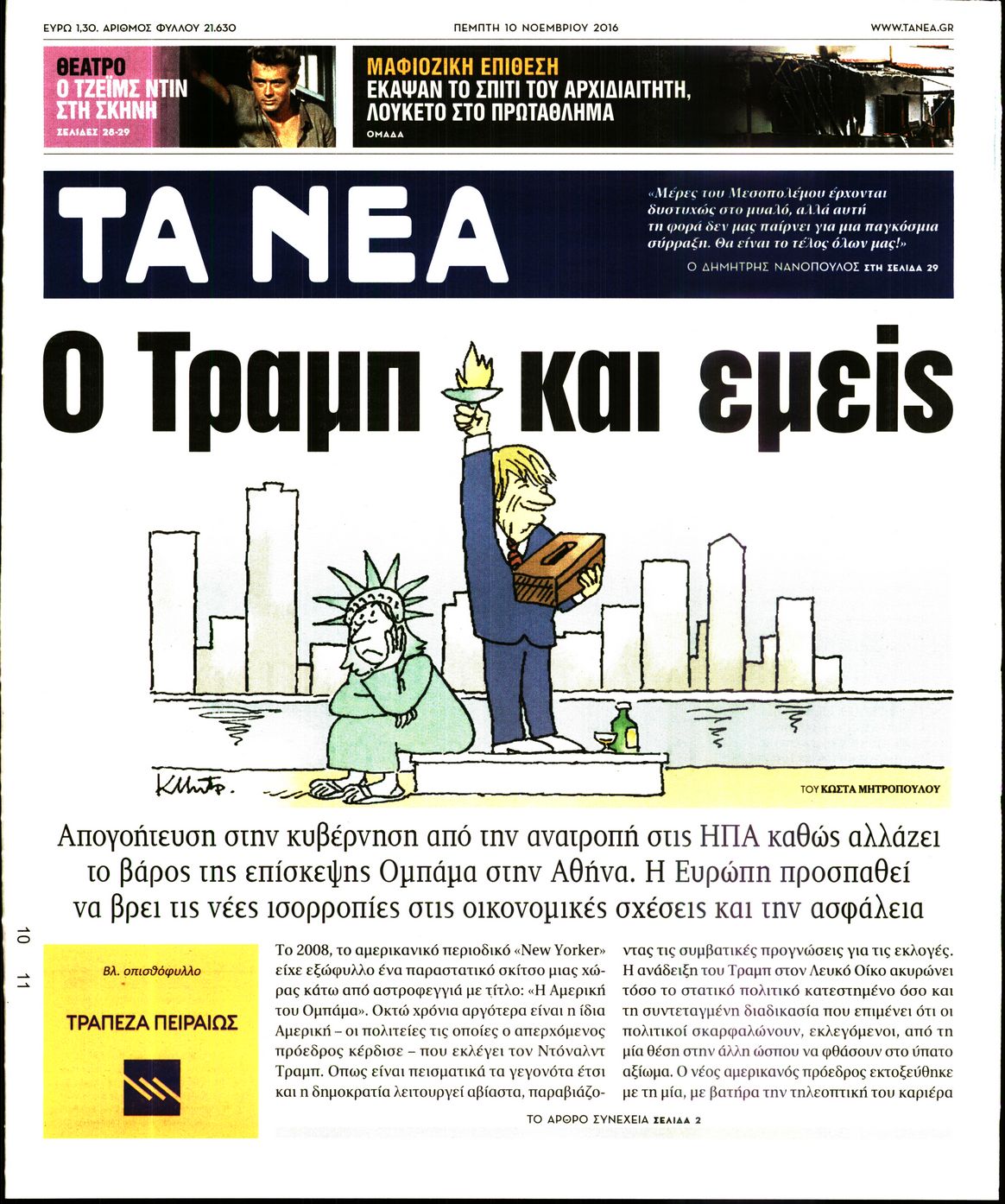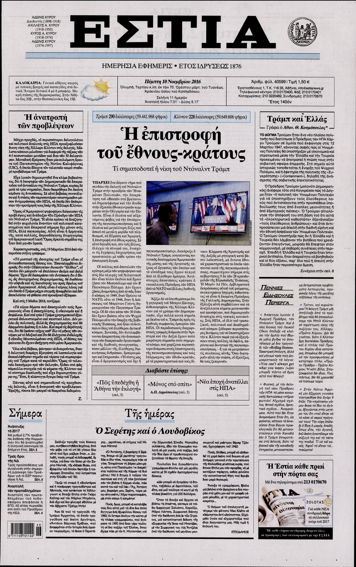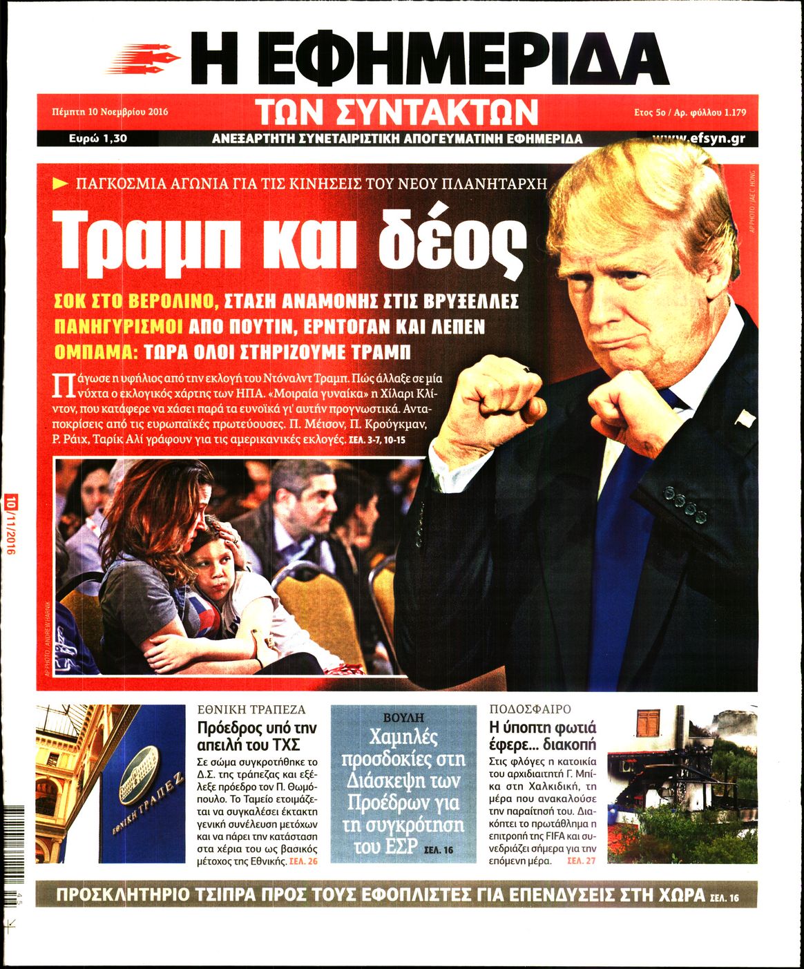 Οι πολιτικές εφημερίδες 10/11/2016 Enikos Newsroom 02:05, Πέμπτη 10 Νοεμβρίου 2016 Media Διαβάστε τα σημερινά πρωτοσέλιδα των πολιτικών εφημερίδων: ΠΟΛΙΤΙΚΕΣ ΕΦΗΜΕΡΙΔΕΣ ΠΡΩΤΟΣΕΛΙΔΑ Μοιράσου το: σχολίασε κι εσύ (0 σχόλια) Ακολουθήστε το enikos.gr στο Google News και μάθετε πρώτοι όλες τις ειδήσεις Δείτε όλες τις τελευταίες ειδήσεις από την Ελλάδα και τον Κόσμο στο enikos.gr Ειδήσεις Ροή Ειδήσεων 8 ώρες πριν Χριστούγεννα στα μπλόκα: Επιμένουν στις κινητοποιήσεις τους οι αγρότες – Ανοίγουν τα διόδια το Σαββατοκύριακο 9 ώρες πριν Ουκρανία: Η άνευ προηγουμένου επίθεση σε ρωσικό τάνκερ στη Μεσόγειο και το μήνυμα προς στον Πούτιν – Το «μακρύ χέρι» του Κιέβου 8 ώρες πριν Πούτιν: Τα μηνύματα σε Ευρώπη και ΝΑΤΟ από το μαραθώνιο «σόου» του – Η απαίτηση για «σεβασμό» και η ειρήνη «με τους όρους» της Μόσχας 7 ώρες πριν ΗΠΑ: Η κυβέρνηση του Ντόναλντ Τραμπ άρχισε να δημοσιοποιεί τα αρχεία Έπσταϊν 7 ώρες πριν Άνω Λιόσια: Πυροβολισμοί σε επιχείρηση με χαλιά – Εντοπίστηκαν 10 κάλυκες 60 λεπτά πριν Αυγά: Πόσα μπορείτε να τρώτε την ημέρα με ασφάλεια για μέγιστη πρόσληψη πρωτεΐνης 1 ώρα πριν Τα ζώδια σήμερα, Σάββατο 20 Δεκεμβρίου: Παρθένοι, το σύμπαν σας δίνει το κλειδί 8 ώρες πριν Ανακαλύφθηκαν αρχαία χρυσά νομίσματα 2.200 ετών που απεικονίζουν τον θεό Απόλλωνα – Η άγνωστη σύνδεση με τον Φίλιππο Β΄ της Μακεδονίας 9 ώρες πριν Ύπνος: Μια κρυφή κατάσταση του εγκεφάλου πριν από τον ύπνο μπορεί να είναι το “κλειδί” για υψηλή ευφυΐα και δημιουργικότητα 6 λεπτά πριν Αναβολή συμφωνίας ΕΕ-Mercosur: Ο χρόνος «δεν είναι απεριόριστος» προειδοποιεί η Παραγουάη 20 λεπτά πριν Κίριλ Ντμίτριεφ: Στις ΗΠΑ ο απεσταλμένος της Ρωσίας για συνομιλίες με τους ομολόγους του, Γουίτκοφ και Κούσνερ 28 λεπτά πριν ΔΕΔΔΗΕ: Διακοπές ρεύματος σήμερα (20/12) στην Αθήνα και σε άλλες 7 περιοχές της Αττικής 36 λεπτά πριν Κολομβία: Είκοσι χρόνια κάθειρξη σε πρώην ανώτερο αξιωματικό για 72 εκτελέσεις αμάχων 44 λεπτά πριν Οπτική ψευδαίσθηση: Μόνο αν είσαι ο Σέρλοκ Χολμς θα βρεις τον αριθμό «87» σε 7 δευτερόλεπτα ENIKOS NETWORK Πρέπει να αποδέχεστε ή να απορρίπτετε όλα τα cookies; Ένας ειδικός εξηγεί Η αγαπημένη λιχουδιά των πόνι που μπορεί να ενισχύσει όραση, εγκέφαλο και ανοσοποιητικό Αναστολή μέτρων αναγκαστικής εκτέλεσης για κτηνοτρόφους που πλήττονται από την ευλογιά των αιγοπροβάτων Πλήρης επάρκεια προϊόντων στις λαϊκές της Αττικής, παρά τις αγροτικές κινητοποιήσεις – Τι απαντούν οι πωλητές Χαρτογραφώντας το «σημείο χωρίς επιστροφή»: Για πρώτη φορά αποκαλύπτεται με λεπτομέρεια το ακανθώδες όριο της ατμόσφαιρας τ... Η Google καταργεί τη λειτουργία «dark web report» – Πώς θα μπορούν οι χρήστες να διαγράφουν τα δεδομένα τους περισσότερα 05:48 , Σάββατο 20 Δεκεμβρίου 2025 Οι οικονομικές εφημερίδες 20/12/2025 Διαβάστε τα πρωτοσέλιδα από τις οικονομικές εφημερίδες, σήμερα 20/12/2025. 05:43 , Σάββατο 20 Δεκεμβρίου 2025 Οι αθλητικές εφημερίδες 20/12/2025 Διαβάστε τα πρωτοσέλιδα από τις αθλητικές εφημερίδες, σήμερα 20/12/2025. 05:38 , Σάββατο 20 Δεκεμβρίου 2025 Οι πολιτικές εφημερίδες 20/12/2025 Διαβάστε τα πρωτοσέλιδα από τις πολιτικές εφημερίδες, σήμερα 20/12/2025. 04:20 , Σάββατο 20 Δεκεμβρίου 2025 Αγγελική Νικολούλη: Τα συλλυπητήρια για την απώλεια της Ειρήνης Μαρινάκη Τα συλληπητήρια στον πρόεδρο του Mega, τον Βαγγέλη Μαρινάκη, για την απώλεια της μητέρας του Ε... ΤΕΛΕΥΤΑΙΕΣ ΕΙΔΗΣΕΙΣ 6 λεπτά πριν Αναβολή συμφωνίας ΕΕ-Mercosur: Ο χρόνος «δεν είναι... 20 λεπτά πριν Κίριλ Ντμίτριεφ: Στις ΗΠΑ ο απεσταλμένος της Ρωσίας... 28 λ