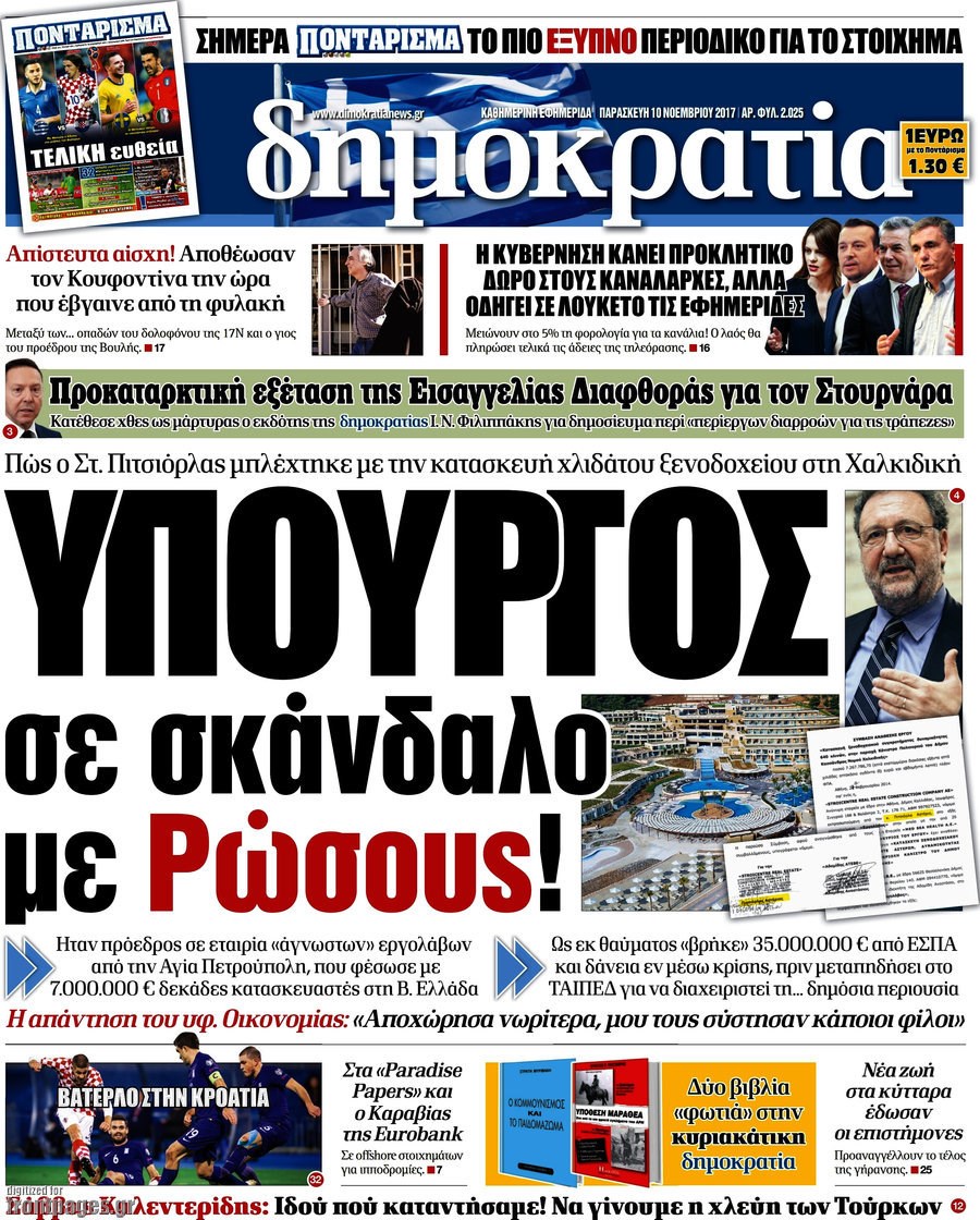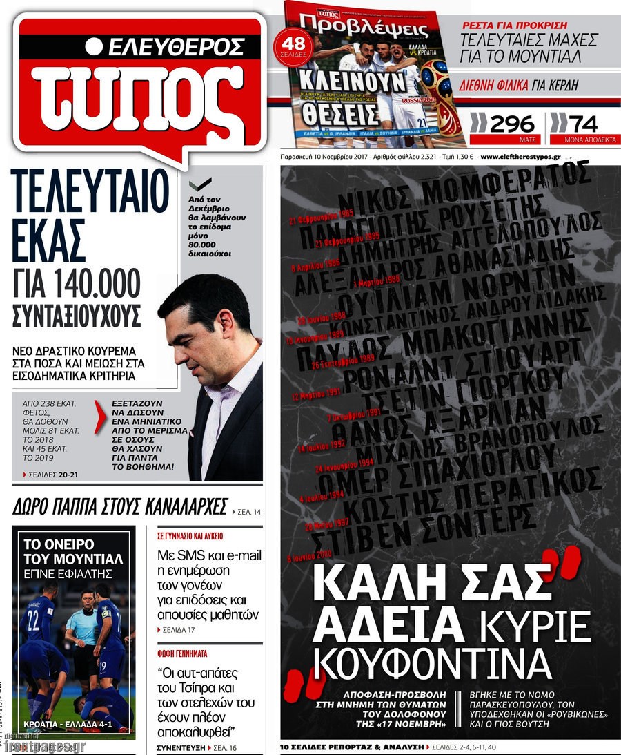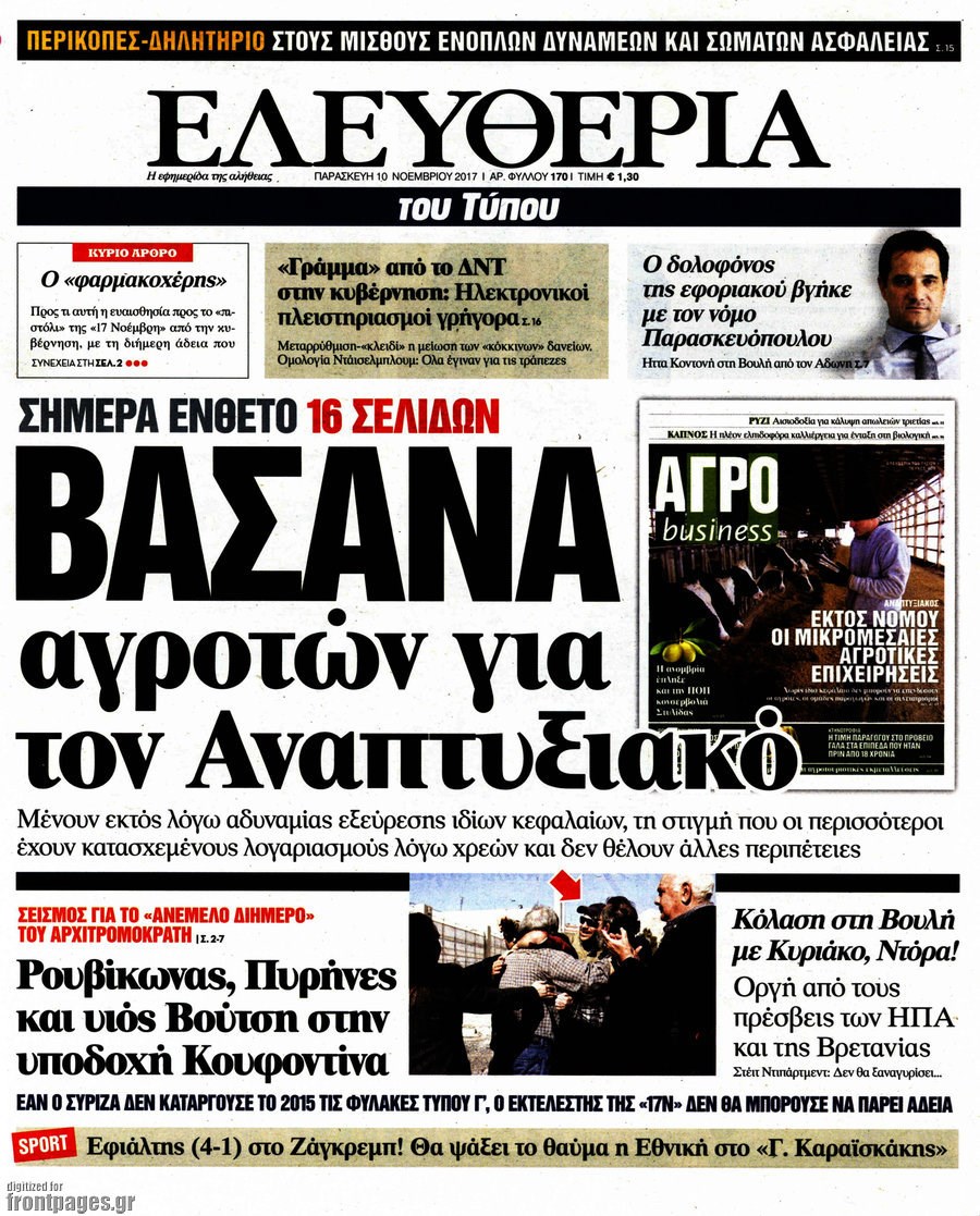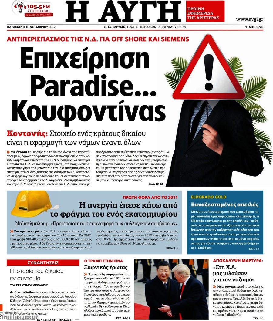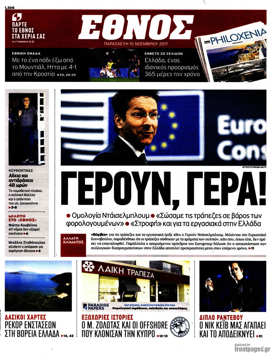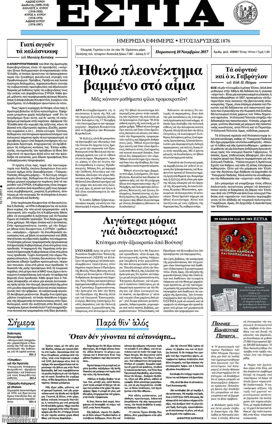 Οι πολιτικές εφημερίδες 10/11/2017 Enikos Newsroom 07:35, Παρασκευή 10 Νοεμβρίου 2017 Media Διαβάστε τα σημερινά πρωτοσέλιδα των πολιτικών εφημερίδων: ΠΟΛΙΤΙΚΕΣ ΕΦΗΜΕΡΙΔΕΣ ΠΡΩΤΟΣΕΛΙΔΑ Μοιράσου το: σχολίασε κι εσύ (0 σχόλια) Ακολουθήστε το enikos.gr στο Google News και μάθετε πρώτοι όλες τις ειδήσεις Δείτε όλες τις τελευταίες ειδήσεις από την Ελλάδα και τον Κόσμο στο enikos.gr Ειδήσεις Ροή Ειδήσεων 3 ώρες πριν Χριστούγεννα στα μπλόκα οι αγρότες: Άνοιξαν στα διόδια και μοίρασαν προϊόντα στους πολίτες – Νέα σύσκεψη την Κυριακή στη Νίκαια 4 ώρες πριν Κύκλωμα διακίνησης ναρκωτικών σε σχολεία: Τηλεφωνούσαν στους ανηλίκους την ώρα του μαθήματος – Οι διάλογοι-σοκ, τα «ψευδώνυμα» και τα βασανιστήρια 3 ώρες πριν Αρχεία Επστάιν: Οι 500 σελίδες που λείπουν, τα αναπάντητα ερωτήματα και οι επώνυμοι – Τι έπεται 5 ώρες πριν Ζελένσκι: Μόνο οι ΗΠΑ και ο Τραμπ μπορούν να πιέσουν τη Ρωσία να βάλει τέλος στον πόλεμο 5 ώρες πριν Φοινικούντα: Προφυλακιστέος ο 30χρονος για συνέργεια στη διπλή δολοφονία – Και άλλα πρόσωπα στο «μικροσκόπιο» 3 ώρες πριν Αποκαλύφθηκε το άγνωστο «GPS» της αρχαιότητας – Πώς οι ναοί «φώτιζαν» τον δρόμο των ναυτικών πριν από την εφεύρεση των φάρων 4 ώρες πριν Ύπνος: Η διατροφή που μπορεί να σας βοηθήσει να κοιμάστε καλύτερα και να ζήσετε περισσότερο 5 ώρες πριν Αριθμολογία: Ο αριθμός του φύλακα αγγέλου σας, με βάση τον μήνα γέννησής σας – «Έτσι σας στέλνει σημάδια το σύμπαν» 17 ώρες πριν Enerwave: Το νέο «ρεύμα» στη λιανική ενέργειας που αλλάζει την εμπειρία του καταναλωτή 15 λεπτά πριν Σεισμός 3,8 Ρίχτερ ανοιχτά της Αμοργού 31 λεπτά πριν Άννα Βίσση: Τα… Social Media «προσκύνησαν» την «απόλυτη» για την συναυλία της στο Καλλιμάρμαρο που προβλήθηκε από το Mega 45 λεπτά πριν Φωτεινή Αθερίδου: «Προσπαθώ να είμαι κάθετη και αυστηρή σαν μαμά πια» 60 λεπτά πριν ΗΠΑ, Αίγυπτος, Κατάρ και Τουρκία συζήτησαν τη δεύτερη φάση του ειρηνευτικού σχεδίου για τη Γάζα 1 ώρα πριν Γιάννης Αντετοκούνμπο: Έμεινε στην 6η θέση της ψηφοφορίας του ESPN για το βραβείο του MVP του NBA ENIKOS NETWORK Οι γυναίκες αποκαλύπτουν το πιο ελκυστικό πράγμα που μπορεί να κάνει ένας άνδρας Ομορφιά και αντιγήρανση: Ειδικοί μιλούν για συσκευές περιποίησης του δέρματος «Πολεμική» προετοιμασία από την ευρωπαϊκή βιομηχανία ενέργειας – Η Eurelectric ζητεί «ομπρέλα» προστασίας για τις υποδομές Ακύρωση ΑΦΜ για απάτες – Ποιους βάζει στο στόχαστρο η ΑΑΔΕ Χαρτογραφώντας το «σημείο χωρίς επιστροφή»: Για πρώτη φορά αποκαλύπτεται με λεπτομέρεια το ακανθώδες όριο της ατμόσφαιρας τ... Η Google καταργεί τη λειτουργία «dark web report» – Πώς θα μπορούν οι χρήστες να διαγράφουν τα δεδομένα τους περισσότερα 01:30 , Κυριακή 21 Δεκεμβρίου 2025 Άννα Βίσση: Τα… Social Media «προσκύνησαν» την «απόλυτη» για την συναυλία της στο Καλλιμάρμαρο που προβλήθηκε από το Mega Την ημέρα των γενεθλίων της Άννας Βίσση, το MEGA τίμησε τη διαχρονική παρουσία της «απόλυτης Ε... 00:00 , Κυριακή 21 Δεκεμβρίου 2025 The Voice: Η επιστροφή της Έλενας Παπαρίζου και η ατάκα του Γιώργου Μαζωνάκη μετά τις καταγγελίες Στη φάση των Cross Battles Live μπήκε το The Voice, με την Έλενα Παπαρίζου να επιστρέφει στο π... 20:30 , Σάββατο 20 Δεκεμβρίου 2025 Αυτή την Κυριακή με τη Realnews: Instyle, μαζί Drive και Realnews Geopolitics Αυτή την Κυριακή με τη Realnews: Instyle, μαζί Drive και Realnews Geopolitics Instyle Η Άννα Ρ... 20:28 , Σάββατο 20 Δεκεμβρίου 2025 Ο ΑΝΤ1 γεμίζει τις γιορτές με μουσική – Ποιους καλλιτέχνες θα απολαύσουμε Φέτος στον ΑΝΤ1 γιορτάζουμε τις νύχτες μας παρέα με αγαπημένους καλλιτέχν