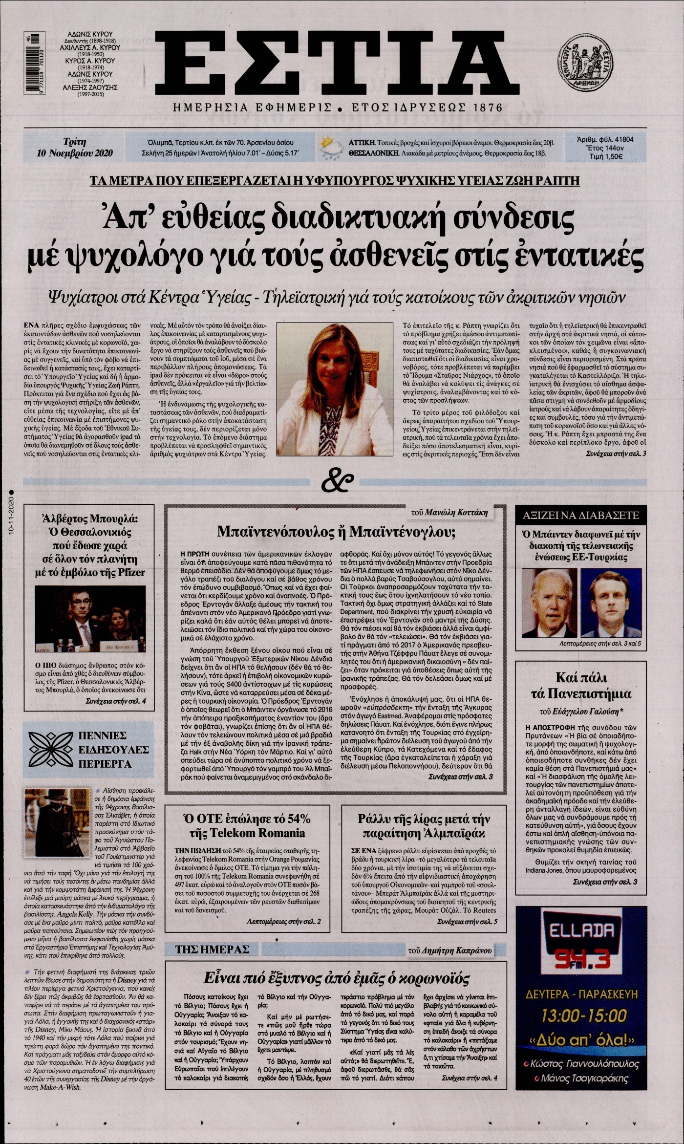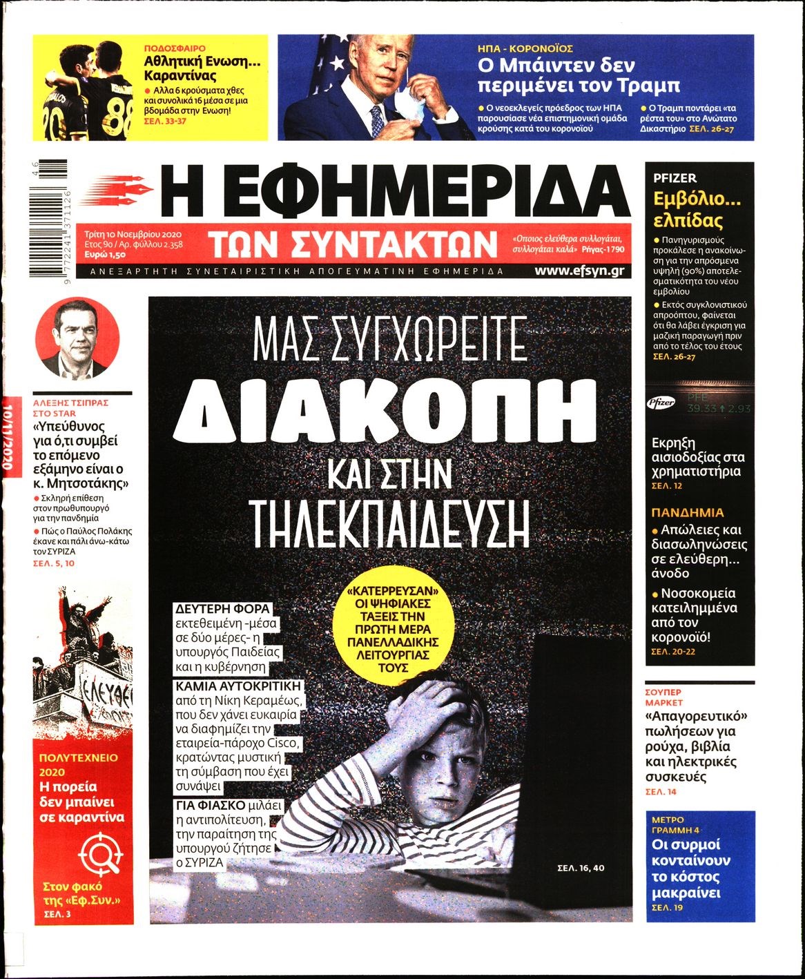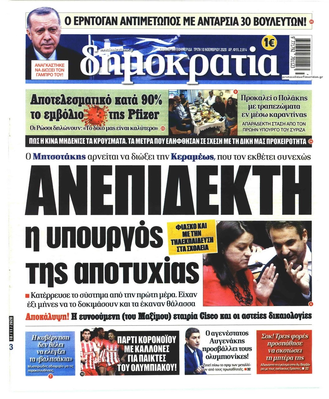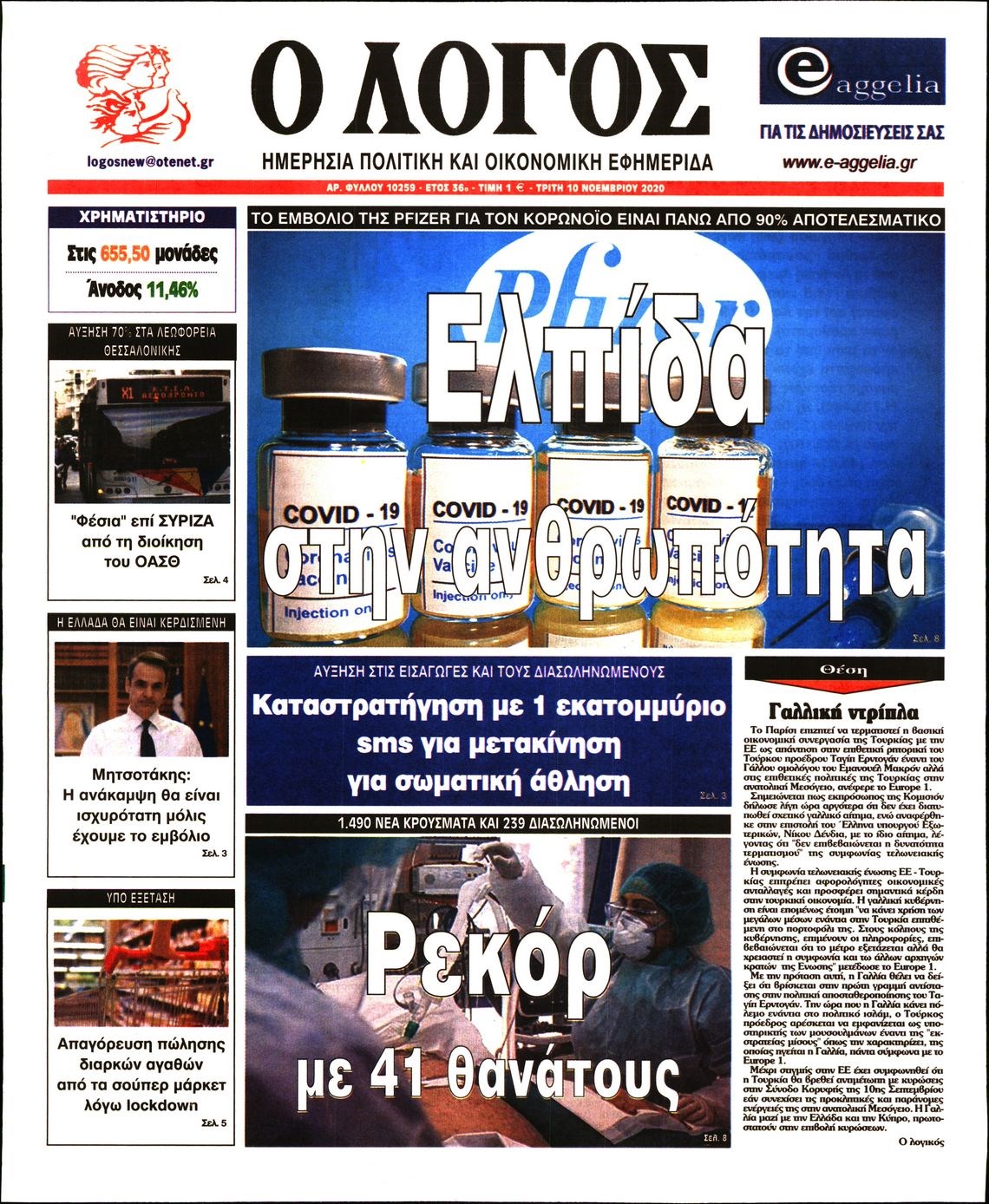 Οι πολιτικές εφημερίδες 10/11/2020 Διονύσης Νίκκας 06:10, Τρίτη 10 Νοεμβρίου 2020 Media Διαβάστε τα πρωτοσέλιδα των πολιτικών εφημερίδων… ΕΦΗΜΕΡΙΔΕΣ ΠΟΛΙΤΙΚΕΣ ΕΦΗΜΕΡΙΔΕΣ ΠΡΩΤΟΣΕΛΙΔΑ Μοιράσου το: σχολίασε κι εσύ (0 σχόλια) Ακολουθήστε το enikos.gr στο Google News και μάθετε πρώτοι όλες τις ειδήσεις Δείτε όλες τις τελευταίες ειδήσεις από την Ελλάδα και τον Κόσμο στο enikos.gr Ειδήσεις Ροή Ειδήσεων 2 ώρες πριν Χριστούγεννα στα μπλόκα: Επιμένουν στις κινητοποιήσεις τους οι αγρότες – Ανοίγουν τα διόδια το Σαββατοκύριακο 3 ώρες πριν Ουκρανία: Η άνευ προηγουμένου επίθεση σε ρωσικό τάνκερ στη Μεσόγειο και το μήνυμα προς στον Πούτιν – Το «μακρύ χέρι» του Κιέβου 2 ώρες πριν Πούτιν: Τα μηνύματα σε Ευρώπη και ΝΑΤΟ από το μαραθώνιο «σόου» του – Η απαίτηση για «σεβασμό» και η ειρήνη «με τους όρους» της Μόσχας 3 ώρες πριν Τραμπ: Δεν αποκλείει την πιθανότητα ενός πολέμου στη Βενεζουέλα – «Ο Μαδούρο ξέρει καλύτερα από τον καθένα τι ακριβώς θέλω» 4 ώρες πριν Συνεχίζει να προκαλεί ο Μίτσκοσκι: «Για μένα το όνομα Μακεδονία είναι ιερό» 2 ώρες πριν Ανακαλύφθηκαν αρχαία χρυσά νομίσματα 2.200 ετών που απεικονίζουν τον θεό Απόλλωνα – Η άγνωστη σύνδεση με τον Φίλιππο Β΄ της Μακεδονίας 3 ώρες πριν Ύπνος: Μια κρυφή κατάσταση του εγκεφάλου πριν από τον ύπνο μπορεί να είναι το “κλειδί” για υψηλή ευφυΐα και δημιουργικότητα 4 ώρες πριν Αριθμολογία: Οι άνθρωποι που έχουν γεννηθεί αυτές τις 4 ημερομηνίες, συχνά παρεξηγούνται – «Η καλοσύνη τους κρύβει τεράστια δύναμη» 5 ώρες πριν Ξεχάστε το καθάρισμα το Σαββατοκύριακο: Ο «κανόνας των 20 λεπτών» που θα σας λύσει τα χέρια 6 λεπτά πριν Ουκρανία: Ολοκληρώθηκαν οι συνομιλίες με τους Αμερικανούς κι Ευρωπαίους διαπραγματευτές 21 λεπτά πριν Μπαρτσελόνα – Μπασκόνια 134-124: Οι «μπλαουγκράνα» πήραν το ματς της χρονιάς ύστερα από τρεις παρατάσεις 36 λεπτά πριν Φαίη Σκορδά: «Παλιότερα τα κομπλιμέντα τα προσπερνούσα, τώρα τα έχω ανάγκη» 52 λεπτά πριν Βασίλης Σπανούλης: Δεν εμφανίστηκε ούτε ένας δημοσιογράφος στην συνέντευξη Τύπου – «Καλησπέρα στον… κανέναν», δείτε βίντεο 1 ώρα πριν Πόλεμος στην Ουκρανία: Εφτά νεκροί από ρωσική πυραυλική επίθεση στο λιμάνι της Οδησσού ENIKOS NETWORK Το ΕΚΑΒ τιμήθηκε από την Ακαδημία Αθηνών για τα 40 χρόνια προσφοράς του Έχετε πραγματικά μεγάλη καρδιά; 10 χαρακτηριστικά όσων έχουν καλοσύνη Αναστολή μέτρων αναγκαστικής εκτέλεσης για κτηνοτρόφους που πλήττονται από την ευλογιά των αιγοπροβάτων Πλήρης επάρκεια προϊόντων στις λαϊκές της Αττικής, παρά τις αγροτικές κινητοποιήσεις – Τι απαντούν οι πωλητές Χαρτογραφώντας το «σημείο χωρίς επιστροφή»: Για πρώτη φορά αποκαλύπτεται με λεπτομέρεια το ακανθώδες όριο της ατμόσφαιρας τ... Η Google καταργεί τη λειτουργία «dark web report» – Πώς θα μπορούν οι χρήστες να διαγράφουν τα δεδομένα τους περισσότερα 22:42 , Παρασκευή 19 Δεκεμβρίου 2025 Γιώργος Γιαννόπουλος για “Το σόι σου”: “Είναι ευτυχία και ευλογία αυτή η σειρά” «Είναι ευτυχία και ευλογία η συγκυρία αυτής της σειράς», θα πει ο Γιώργος Γιαννόπουλος -ο αγαπ... 20:37 , Παρασκευή 19 Δεκεμβρίου 2025 Don’t Forget The Lyrics: Η Έλλη Κοκκίνου υποδέχεται 4 παίκτες που θα κάνουν τα πάντα για να μη χάσουν ούτε… μισή λέξη από τους στίχους Το «Don’t Forget The Lyrics» επιστρέφει απόψε, Παρασκευή 19 Δεκεμβρίου, στις 21:00 με νέο επει... 19:31 , Παρασκευή 19 Δεκεμβρίου 2025 GNTM: Απόψε ο μεγάλος τελικός για τους 4 φιναλίστ Έπειτα από μήνες γεμάτους μόδα, δημιουργία και έντονες αναμετρήσεις, το GNTM 2025 κορυφ