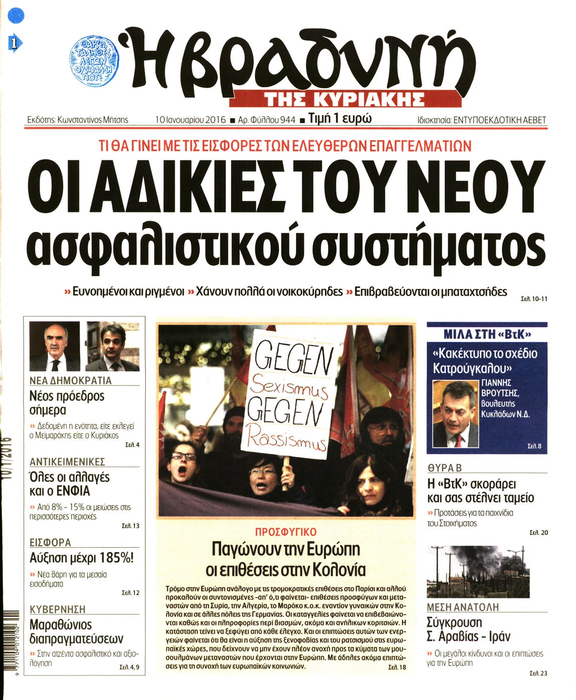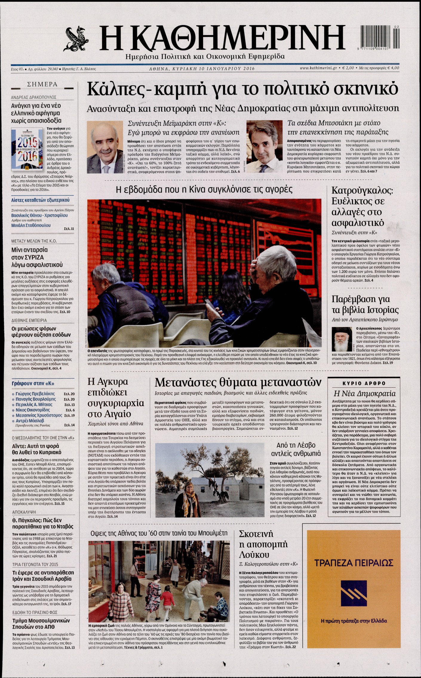 Οι πολιτικές εφημερίδες 10/1/2016 Enikos Newsroom 02:52, Κυριακή 10 Ιανουαρίου 2016 Media Διαβάστε τα σημερινά πρωτοσέλιδα των πολιτικών εφημερίδων: ΠΟΛΙΤΙΚΕΣ ΕΦΗΜΕΡΙΔΕΣ ΠΡΩΤΟΣΕΛΙΔΑ Μοιράσου το: σχολίασε κι εσύ (0 σχόλια) Ακολουθήστε το enikos.gr στο Google News και μάθετε πρώτοι όλες τις ειδήσεις Δείτε όλες τις τελευταίες ειδήσεις από την Ελλάδα και τον Κόσμο στο enikos.gr Ειδήσεις Ροή Ειδήσεων 52 λεπτά πριν Χριστούγεννα στα μπλόκα: Επιμένουν στις κινητοποιήσεις τους οι αγρότες – Ανοίγουν τα διόδια το Σαββατοκύριακο 1 ώρα πριν Ουκρανία: Η άνευ προηγουμένου επίθεση σε ρωσικό τάνκερ στη Μεσόγειο και το μήνυμα προς στον Πούτιν – Το «μακρύ χέρι» του Κιέβου 30 λεπτά πριν Πούτιν: Τα μηνύματα σε Ευρώπη και ΝΑΤΟ από το μαραθώνιο «σόου» του – Η απαίτηση για «σεβασμό» και η ειρήνη «με τους όρους» της Μόσχας 1 ώρα πριν Τραμπ: Δεν αποκλείει την πιθανότητα ενός πολέμου στη Βενεζουέλα – «Ο Μαδούρο ξέρει καλύτερα από τον καθένα τι ακριβώς θέλω» 2 ώρες πριν Συνεχίζει να προκαλεί ο Μίτσκοσκι: «Για μένα το όνομα Μακεδονία είναι ιερό» 4 ώρες πριν Πούτιν: «Ναι, είμαι ερωτευμένος» – Βίντεο από τη σπάνια προσωπική παραδοχή του 3 ώρες πριν Αριθμολογία: Οι άνθρωποι που έχουν γεννηθεί αυτές τις 4 ημερομηνίες, συχνά παρεξηγούνται – «Η καλοσύνη τους κρύβει τεράστια δύναμη» 2 ώρες πριν Ύπνος: Μια κρυφή κατάσταση του εγκεφάλου πριν από τον ύπνο μπορεί να είναι το “κλειδί” για υψηλή ευφυΐα και δημιουργικότητα 4 ώρες πριν Ξεχάστε το καθάρισμα το Σαββατοκύριακο: Ο «κανόνας των 20 λεπτών» που θα σας λύσει τα χέρια 31 λεπτά πριν Ανακαλύφθηκαν αρχαία χρυσά νομίσματα 2.200 ετών που απεικονίζουν τον θεό Απόλλωνα – Η άγνωστη σύνδεση με τον Φίλιππο Β΄ της Μακεδονίας 38 δευτερόλεπτα πριν Γάζα: Ισραηλινό πλήγμα σε σχολείο που είχαν καταφύγει εκτοπισμένοι – Τουλάχιστον έξι νεκροί 15 λεπτά πριν Ολυμπιακός – Βιλερμπάν 107-84: Επιστροφή στις νίκες με… προπόνηση 21 λεπτά πριν Νέος Κόσμος: Συνελήφθη 41χρονος με ένταλμα από την Τουρκία για εμπόριο ναρκωτικών και ληστεία 30 λεπτά πριν Πούτιν: Τα μηνύματα σε Ευρώπη και ΝΑΤΟ από το μαραθώνιο «σόου» του – Η απαίτηση για «σεβασμό» και η ειρήνη «με τους όρους» της Μόσχας 31 λεπτά πριν Ανακαλύφθηκαν αρχαία χρυσά νομίσματα 2.200 ετών που απεικονίζουν τον θεό Απόλλωνα – Η άγνωστη σύνδεση με τον Φίλιππο Β΄ της Μακεδονίας ENIKOS NETWORK Το ΕΚΑΒ τιμήθηκε από την Ακαδημία Αθηνών για τα 40 χρόνια προσφοράς του Έχετε πραγματικά μεγάλη καρδιά; 10 χαρακτηριστικά όσων έχουν καλοσύνη Αναστολή μέτρων αναγκαστικής εκτέλεσης για κτηνοτρόφους που πλήττονται από την ευλογιά των αιγοπροβάτων Πλήρης επάρκεια προϊόντων στις λαϊκές της Αττικής, παρά τις αγροτικές κινητοποιήσεις – Τι απαντούν οι πωλητές Χαρτογραφώντας το «σημείο χωρίς επιστροφή»: Για πρώτη φορά αποκαλύπτεται με λεπτομέρεια το ακανθώδες όριο της ατμόσφαιρας τ... Η Google καταργεί τη λειτουργία «dark web report» – Πώς θα μπορούν οι χρήστες να διαγράφουν τα δεδομένα τους περισσότερα 22:42 , Παρασκευή 19 Δεκεμβρίου 2025 Γιώργος Γιαννόπουλος για “Το σόι σου”: “Είναι ευτυχία και ευλογία αυτή η σειρά” «Είναι ευτυχία και ευλογία η συγκυρία αυτής της σειράς», θα πει ο Γιώργος Γιαννόπουλος -ο αγαπ... 20:37 , Παρασκευή 19 Δεκεμβρίου 2025 Don’t Forget The Lyrics: Η Έλλη Κοκκίνου υποδέχεται 4 παίκτες που θα κάνουν τα πάντα για να μη χάσουν ούτε… μισή λέξη από τους στίχους Το «Don’t Forget The Lyrics» επιστρέφει απόψε, Παρασκευή 19 Δεκεμβρίου, στις 21:00 με νέο επει... 19:31 , Παρασκευή 19 Δεκεμβρίου 2