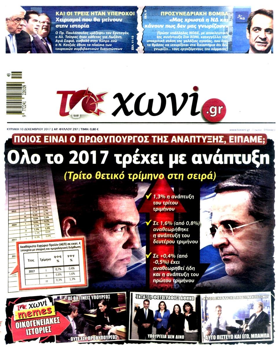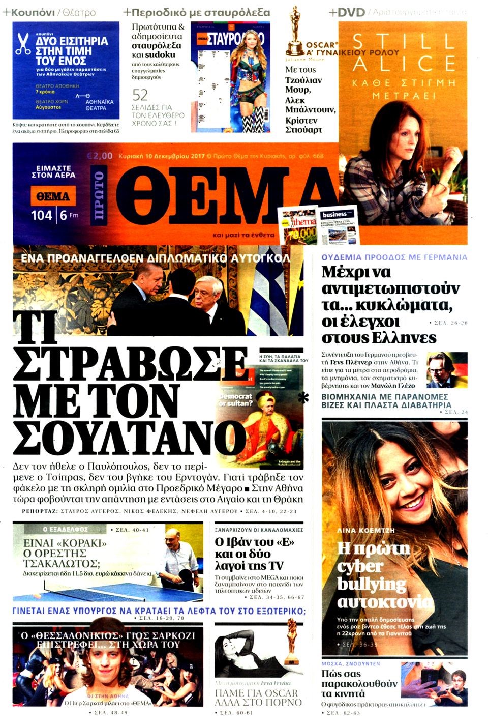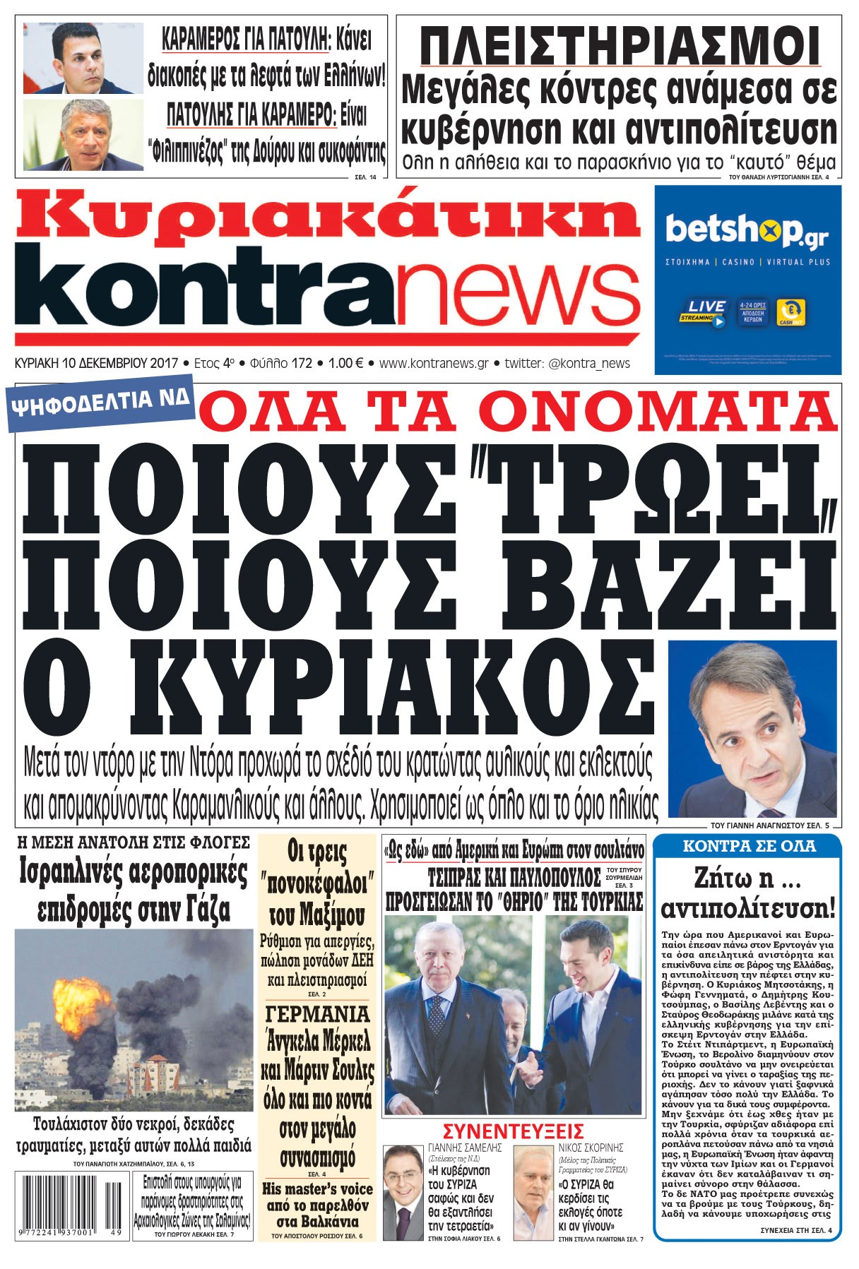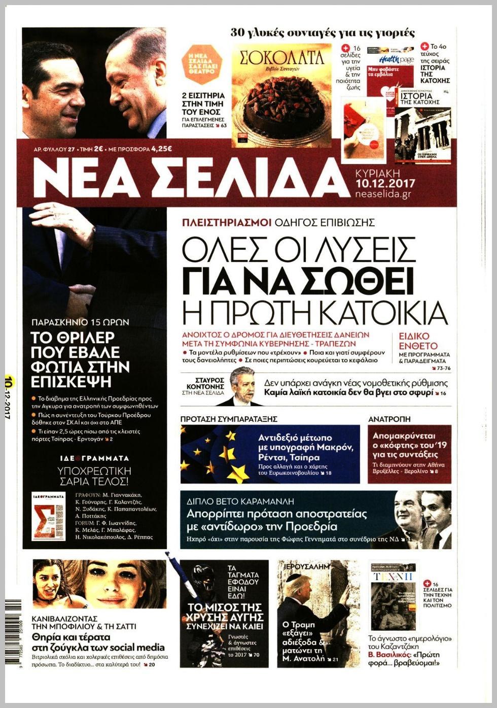 Οι πολιτικές εφημερίδες 10/12/2017 Κώστας Τεό 07:50, Κυριακή 10 Δεκεμβρίου 2017 Media Διαβάστε τα σημερινά πρωτοσέλιδα των πολιτικών εφημερίδων: ΠΟΛΙΤΙΚΕΣ ΕΦΗΜΕΡΙΔΕΣ ΠΡΩΤΟΣΕΛΙΔΑ Μοιράσου το: σχολίασε κι εσύ (0 σχόλια) Ακολουθήστε το enikos.gr στο Google News και μάθετε πρώτοι όλες τις ειδήσεις Δείτε όλες τις τελευταίες ειδήσεις από την Ελλάδα και τον Κόσμο στο enikos.gr Ειδήσεις Ροή Ειδήσεων 1 ώρα πριν Χριστούγεννα στα μπλόκα: Επιμένουν στις κινητοποιήσεις τους οι αγρότες – Ανοίγουν τα διόδια το Σαββατοκύριακο 2 ώρες πριν Ουκρανία: Η άνευ προηγουμένου επίθεση σε ρωσικό τάνκερ στη Μεσόγειο και το μήνυμα προς στον Πούτιν – Το «μακρύ χέρι» του Κιέβου 46 λεπτά πριν Πούτιν: Τα μηνύματα σε Ευρώπη και ΝΑΤΟ από το μαραθώνιο «σόου» του – Η απαίτηση για «σεβασμό» και η ειρήνη «με τους όρους» της Μόσχας 2 ώρες πριν Τραμπ: Δεν αποκλείει την πιθανότητα ενός πολέμου στη Βενεζουέλα – «Ο Μαδούρο ξέρει καλύτερα από τον καθένα τι ακριβώς θέλω» 2 ώρες πριν Συνεχίζει να προκαλεί ο Μίτσκοσκι: «Για μένα το όνομα Μακεδονία είναι ιερό» 48 λεπτά πριν Ανακαλύφθηκαν αρχαία χρυσά νομίσματα 2.200 ετών που απεικονίζουν τον θεό Απόλλωνα – Η άγνωστη σύνδεση με τον Φίλιππο Β΄ της Μακεδονίας 2 ώρες πριν Ύπνος: Μια κρυφή κατάσταση του εγκεφάλου πριν από τον ύπνο μπορεί να είναι το “κλειδί” για υψηλή ευφυΐα και δημιουργικότητα 3 ώρες πριν Αριθμολογία: Οι άνθρωποι που έχουν γεννηθεί αυτές τις 4 ημερομηνίες, συχνά παρεξηγούνται – «Η καλοσύνη τους κρύβει τεράστια δύναμη» 4 ώρες πριν Ξεχάστε το καθάρισμα το Σαββατοκύριακο: Ο «κανόνας των 20 λεπτών» που θα σας λύσει τα χέρια 2 λεπτά πριν Σάμος: Άνοιξε το μπλόκο των αγροτών στον κόμβο Κοκκαρίου – Σε νέα συνεδρίαση θα καθορίσουν την στάση τους 10 λεπτά πριν Άνω Λιόσια: Πυροβολισμοί σε επιχείρηση με χαλιά – Εντοπίστηκαν 10 κάλυκες 17 λεπτά πριν Γάζα: Ισραηλινό πλήγμα σε σχολείο που είχαν καταφύγει εκτοπισμένοι – Τουλάχιστον έξι νεκροί 32 λεπτά πριν Ολυμπιακός – Βιλερμπάν 107-84: Επιστροφή στις νίκες με… προπόνηση 37 λεπτά πριν Νέος Κόσμος: Συνελήφθη 41χρονος με ένταλμα από την Τουρκία για εμπόριο ναρκωτικών και ληστεία ENIKOS NETWORK Το ΕΚΑΒ τιμήθηκε από την Ακαδημία Αθηνών για τα 40 χρόνια προσφοράς του Έχετε πραγματικά μεγάλη καρδιά; 10 χαρακτηριστικά όσων έχουν καλοσύνη Αναστολή μέτρων αναγκαστικής εκτέλεσης για κτηνοτρόφους που πλήττονται από την ευλογιά των αιγοπροβάτων Πλήρης επάρκεια προϊόντων στις λαϊκές της Αττικής, παρά τις αγροτικές κινητοποιήσεις – Τι απαντούν οι πωλητές Χαρτογραφώντας το «σημείο χωρίς επιστροφή»: Για πρώτη φορά αποκαλύπτεται με λεπτομέρεια το ακανθώδες όριο της ατμόσφαιρας τ... Η Google καταργεί τη λειτουργία «dark web report» – Πώς θα μπορούν οι χρήστες να διαγράφουν τα δεδομένα τους περισσότερα 22:42 , Παρασκευή 19 Δεκεμβρίου 2025 Γιώργος Γιαννόπουλος για “Το σόι σου”: “Είναι ευτυχία και ευλογία αυτή η σειρά” «Είναι ευτυχία και ευλογία η συγκυρία αυτής της σειράς», θα πει ο Γιώργος Γιαννόπουλος -ο αγαπ... 20:37 , Παρασκευή 19 Δεκεμβρίου 2025 Don’t Forget The Lyrics: Η Έλλη Κοκκίνου υποδέχεται 4 παίκτες που θα κάνουν τα πάντα για να μη χάσουν ούτε… μισή λέξη από τους στίχους Το «Don’t Forget The Lyrics» επιστρέφει απόψε, Παρασκευή 19 Δεκεμβρίου, στις 21:00 με νέο επει... 19:31 , Παρασκευή 19 Δεκεμβρίου 2025 GNTM: Απόψε ο μεγάλος τελικός για τους 4 φιναλίστ Έπειτα από μήνες γεμάτους μόδα, δημιουργία και έντονες αναμετρήσεις, το GNTM 2025 κορυφώνεται,... 18:11 , Παρασκευή 19 Δεκεμβρίου 2025 Το σόι σου: 