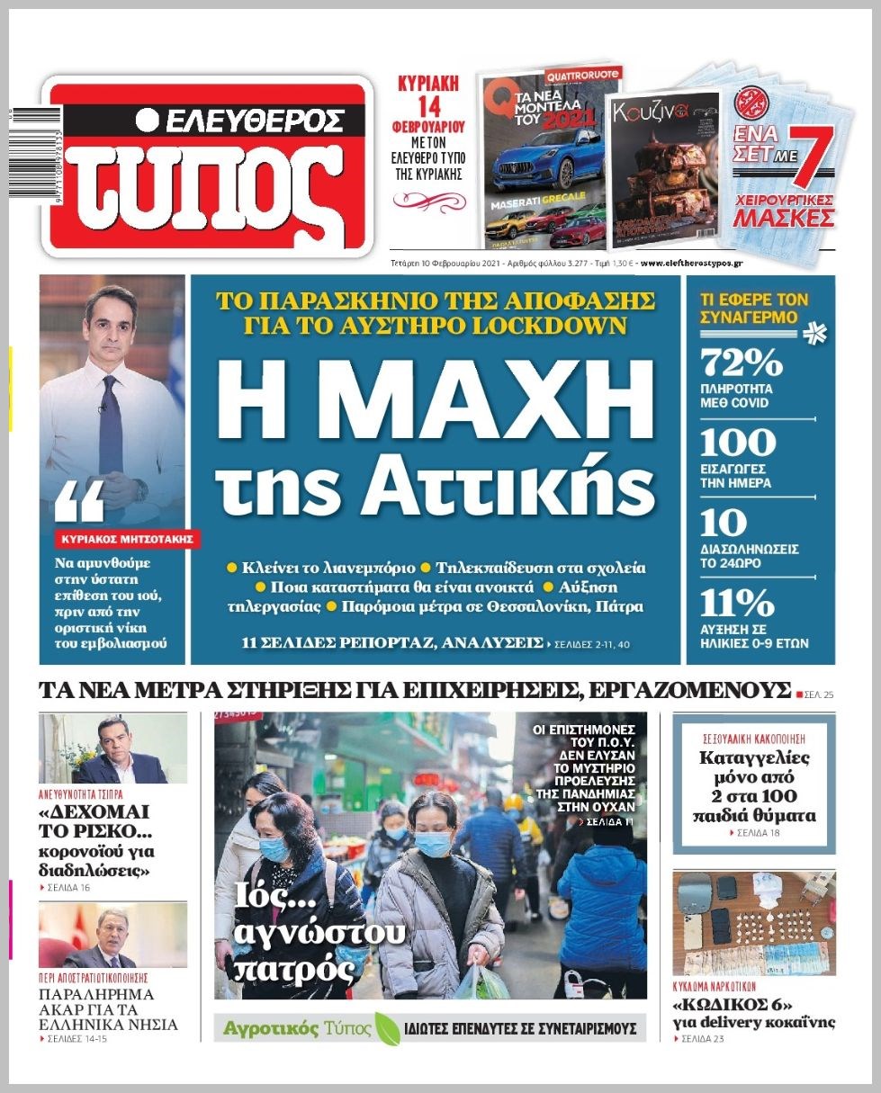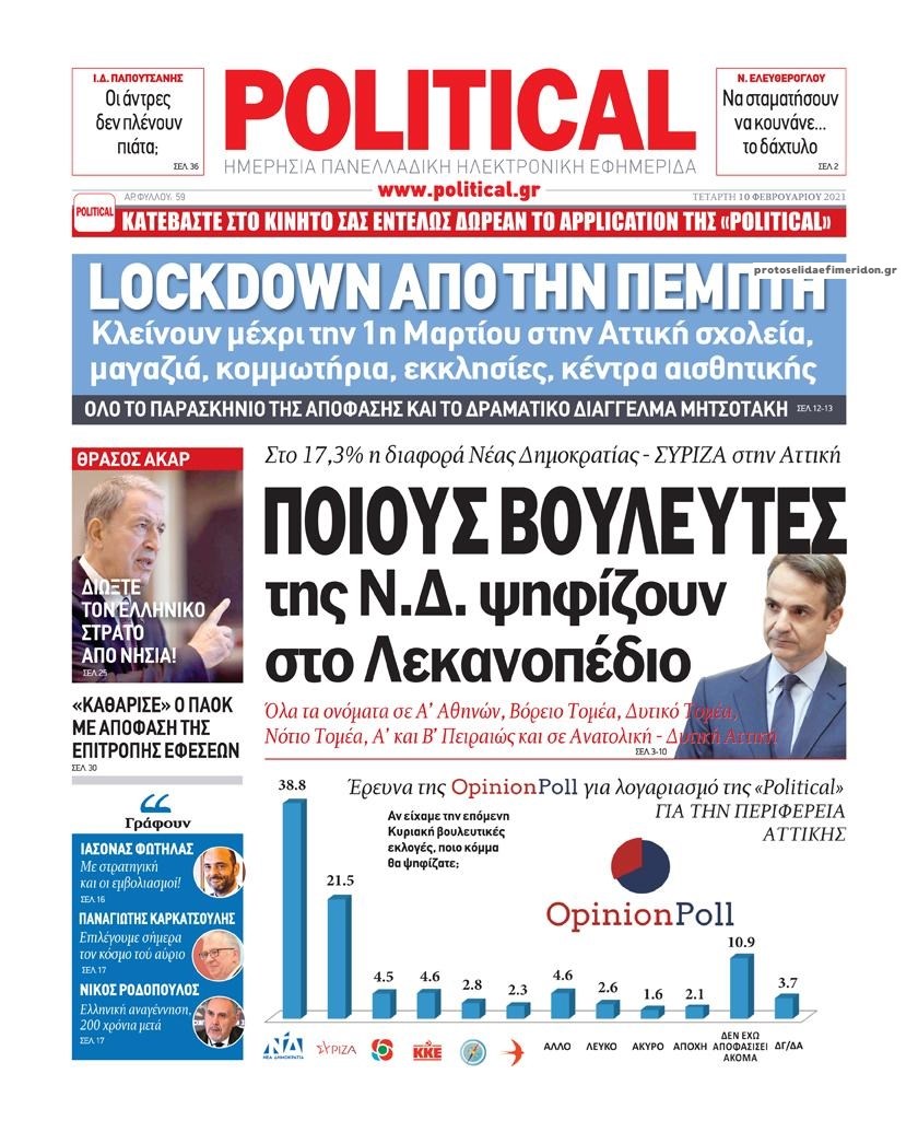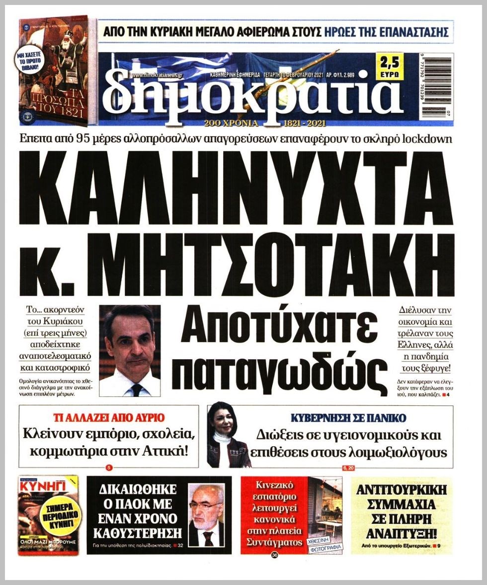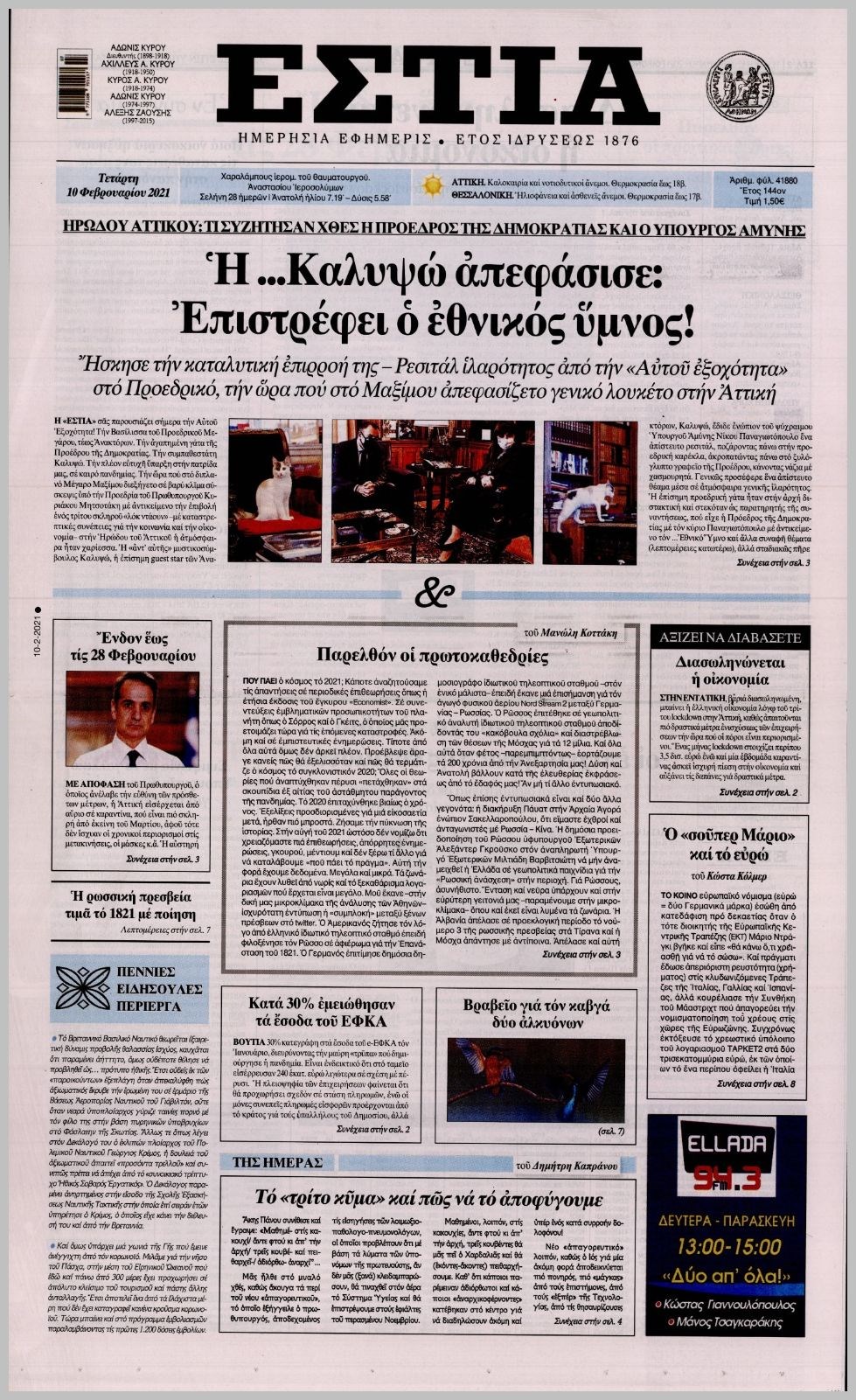 Οι πολιτικές εφημερίδες 10/2/2021 Διονύσης Νίκκας 06:12, Τετάρτη 10 Φεβρουαρίου 2021 Media Διαβάστε τα πρωτοσέλιδα των πολιτικών εφημερίδων…. ΕΦΗΜΕΡΙΔΕΣ ΠΟΛΙΤΙΚΕΣ ΕΦΗΜΕΡΙΔΕΣ ΠΡΩΤΟΣΕΛΙΔΑ Μοιράσου το: σχολίασε κι εσύ (0 σχόλια) Ακολουθήστε το enikos.gr στο Google News και μάθετε πρώτοι όλες τις ειδήσεις Δείτε όλες τις τελευταίες ειδήσεις από την Ελλάδα και τον Κόσμο στο enikos.gr Ειδήσεις Ροή Ειδήσεων 2 ώρες πριν Χριστούγεννα στα μπλόκα: Επιμένουν στις κινητοποιήσεις τους οι αγρότες – Ανοίγουν τα διόδια το Σαββατοκύριακο 2 ώρες πριν Ουκρανία: Η άνευ προηγουμένου επίθεση σε ρωσικό τάνκερ στη Μεσόγειο και το μήνυμα προς στον Πούτιν – Το «μακρύ χέρι» του Κιέβου 2 ώρες πριν Πούτιν: Τα μηνύματα σε Ευρώπη και ΝΑΤΟ από το μαραθώνιο «σόου» του – Η απαίτηση για «σεβασμό» και η ειρήνη «με τους όρους» της Μόσχας 3 ώρες πριν Τραμπ: Δεν αποκλείει την πιθανότητα ενός πολέμου στη Βενεζουέλα – «Ο Μαδούρο ξέρει καλύτερα από τον καθένα τι ακριβώς θέλω» 3 ώρες πριν Συνεχίζει να προκαλεί ο Μίτσκοσκι: «Για μένα το όνομα Μακεδονία είναι ιερό» 2 ώρες πριν Ανακαλύφθηκαν αρχαία χρυσά νομίσματα 2.200 ετών που απεικονίζουν τον θεό Απόλλωνα – Η άγνωστη σύνδεση με τον Φίλιππο Β΄ της Μακεδονίας 3 ώρες πριν Ύπνος: Μια κρυφή κατάσταση του εγκεφάλου πριν από τον ύπνο μπορεί να είναι το “κλειδί” για υψηλή ευφυΐα και δημιουργικότητα 4 ώρες πριν Αριθμολογία: Οι άνθρωποι που έχουν γεννηθεί αυτές τις 4 ημερομηνίες, συχνά παρεξηγούνται – «Η καλοσύνη τους κρύβει τεράστια δύναμη» 5 ώρες πριν Ξεχάστε το καθάρισμα το Σαββατοκύριακο: Ο «κανόνας των 20 λεπτών» που θα σας λύσει τα χέρια 16 λεπτά πριν Φαίη Σκορδά: «Παλιότερα τα κομπλιμέντα τα προσπερνούσα, τώρα τα έχω ανάγκη» 32 λεπτά πριν Βασίλης Σπανούλης: Δεν εμφανίστηκε ούτε ένας δημοσιογράφος στην συνέντευξη Τύπου – «Καλησπέρα στον… κανέναν», δείτε βίντεο 43 λεπτά πριν Πόλεμος στην Ουκρανία: Εφτά νεκροί από ρωσική πυραυλική επίθεση στο λιμάνι της Οδησσού 46 λεπτά πριν ΗΠΑ: Η κυβέρνηση του Ντόναλντ Τραμπ άρχισε να δημοσιοποιεί τα αρχεία Έπσταϊν 58 λεπτά πριν Σάμος: Άνοιξε το μπλόκο των αγροτών στον κόμβο Κοκκαρίου – Σε νέα συνεδρίαση θα καθορίσουν την στάση τους ENIKOS NETWORK Το ΕΚΑΒ τιμήθηκε από την Ακαδημία Αθηνών για τα 40 χρόνια προσφοράς του Έχετε πραγματικά μεγάλη καρδιά; 10 χαρακτηριστικά όσων έχουν καλοσύνη Αναστολή μέτρων αναγκαστικής εκτέλεσης για κτηνοτρόφους που πλήττονται από την ευλογιά των αιγοπροβάτων Πλήρης επάρκεια προϊόντων στις λαϊκές της Αττικής, παρά τις αγροτικές κινητοποιήσεις – Τι απαντούν οι πωλητές Χαρτογραφώντας το «σημείο χωρίς επιστροφή»: Για πρώτη φορά αποκαλύπτεται με λεπτομέρεια το ακανθώδες όριο της ατμόσφαιρας τ... Η Google καταργεί τη λειτουργία «dark web report» – Πώς θα μπορούν οι χρήστες να διαγράφουν τα δεδομένα τους περισσότερα 22:42 , Παρασκευή 19 Δεκεμβρίου 2025 Γιώργος Γιαννόπουλος για “Το σόι σου”: “Είναι ευτυχία και ευλογία αυτή η σειρά” «Είναι ευτυχία και ευλογία η συγκυρία αυτής της σειράς», θα πει ο Γιώργος Γιαννόπουλος -ο αγαπ... 20:37 , Παρασκευή 19 Δεκεμβρίου 2025 Don’t Forget The Lyrics: Η Έλλη Κοκκίνου υποδέχεται 4 παίκτες που θα κάνουν τα πάντα για να μη χάσουν ούτε… μισή λέξη από τους στίχους Το «Don’t Forget The Lyrics» επιστρέφει απόψε, Παρασκευή 19 Δεκεμβρίου, στις 21:00 με νέο επει... 19:31 , Παρασκευή 19 Δεκεμβρίου 2025 GNTM: Απόψε ο μεγάλος τελικός για τους 4 φιναλίστ Έπειτα από μήνες γεμάτους μόδα, δημιουργία και έντονες αναμετρήσεις, το GNTM 2025 κορυφών