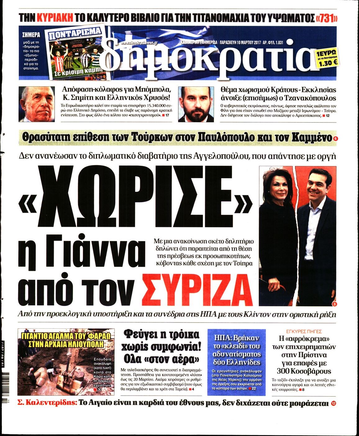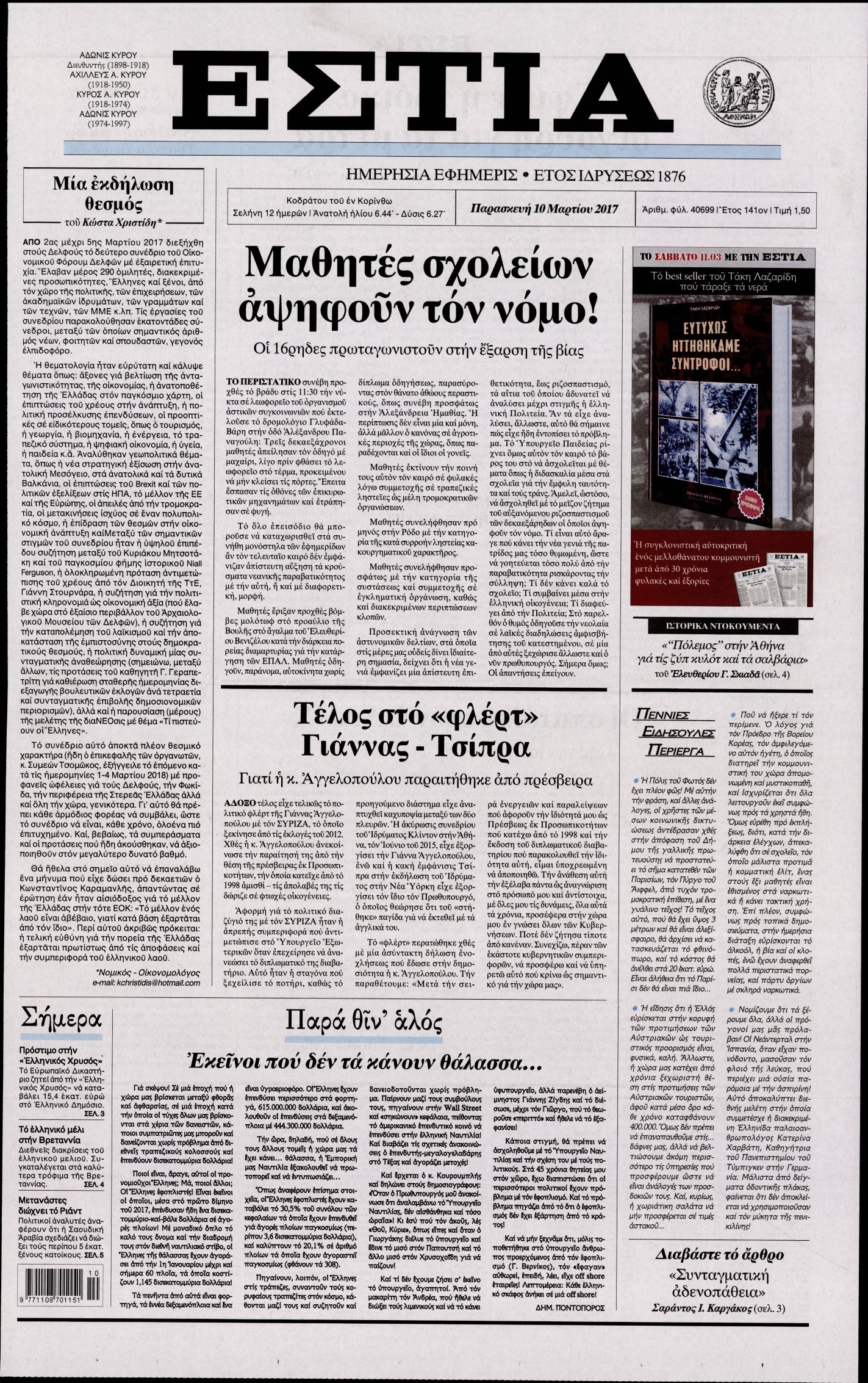 Οι πολιτικές εφημερίδες 10/3/2017 Enikos Newsroom 07:03, Παρασκευή 10 Μαρτίου 2017 Media Διαβάστε τα σημερινά πρωτοσέλιδα των πολιτικών εφημερίδων: ΠΟΛΙΤΙΚΕΣ ΕΦΗΜΕΡΙΔΕΣ ΠΡΩΤΟΣΕΛΙΔΑ Μοιράσου το: σχολίασε κι εσύ (0 σχόλια) Ακολουθήστε το enikos.gr στο Google News και μάθετε πρώτοι όλες τις ειδήσεις Δείτε όλες τις τελευταίες ειδήσεις από την Ελλάδα και τον Κόσμο στο enikos.gr Ειδήσεις Ροή Ειδήσεων 2 ώρες πριν Πώς δρούσε το κύκλωμα που διακινούσε ναρκωτικά σε σχολεία – Υπέβαλαν σε βασανιστήρια όσους δεν τηρούσαν τους «κανόνες πειθαρχίας» 2 ώρες πριν Αγρότες: Γιορτές στα μπλόκα με ανοιχτά διόδια – Δικογραφία στα Ιωάννινα για το σήκωμα των μπαρών 2 ώρες πριν Ζελένσκι: Οι Αμερικανοί πρότειναν συνάντηση Ουκρανίας, ΗΠΑ, Ρωσίας στο Μαϊάμι 1 ώρα πριν Αττική: Εξαρθρώθηκε εγκληματική οργάνωση που έκλεβε οχήματα, τα παραποιούσε και τα μεταπωλούσε σε πολίτες – Πώς δρούσε το κύκλωμα 53 λεπτά πριν Μικαέλα Μπέντχαους: Ο πρώτος άνθρωπος σε αναπηρικό αμαξίδιο που ταξίδεψε στο διάστημα – ΒΙΝΤΕΟ 2 ώρες πριν Η τύχη χαμογελά σε 3 ζώδια έως τις 28 Δεκεμβρίου – «Προσέξτε τις επιλογές σας και η επιμονή σας θα ανταμειφθεί» 7 ώρες πριν Διαιτολόγος αποκαλύπτει 9 πρωινές συνήθειες που «λιώνουν» το κοιλιακό λίπος – «Υποστηρίζουν την υγιεινή απώλεια βάρους» 4 ώρες πριν Μία ανεκμετάλλευτη πηγή θα μπορούσε να προσφέρει ανεξάντλητη ενέργεια – Οι επιστήμονες ίσως γνωρίζουν πώς να την ξεκλειδώσουν 10 ώρες πριν Enerwave: Το νέο «ρεύμα» στη λιανική ενέργειας που αλλάζει την εμπειρία του καταναλωτή 4 λεπτά πριν Τραμπ: Πώς περνάει τις γιορτές των Χριστουγέννων – Τα δώρα που κάνει στα εγγόνια του 17 λεπτά πριν HOTΕΛ ΕΛVIRA: Η Ελβίρα μαθαίνει πως ο Χάρι μένει κρυφά στο ξενοδοχείο του Παντελή 27 λεπτά πριν Ερντογάν: «Δεν έχουμε βλέψεις στα εδάφη κανενός, αλλά δεν θα επιτρέψουμε να παραβιαστούν τα δικαιώματά μας» 36 λεπτά πριν Η Realnews στο www.pressreader.com 43 λεπτά πριν Νιούκαστλ – Τσέλσι 2-2: Αλύγιστοι οι Λονδρέζοι ENIKOS NETWORK Γιατί πρέπει να ζητάμε χάρες; Ποιο είναι το φαινόμενο Ben Franklin που κάνει τους άλλους να μας συμπαθούν Η αποχή από την αναπαραγωγή παρατείνει τη ζωή στα ζώα, σύμφωνα με μελέτη – Τι ισχύει για τους ανθρώπους; Η Realnews στο www.pressreader.com Τράπεζες: Πόσες ημέρες θα είναι κλειστές μέσα στις γιορτές Χαρτογραφώντας το «σημείο χωρίς επιστροφή»: Για πρώτη φορά αποκαλύπτεται με λεπτομέρεια το ακανθώδες όριο της ατμόσφαιρας τ... Η Google καταργεί τη λειτουργία «dark web report» – Πώς θα μπορούν οι χρήστες να διαγράφουν τα δεδομένα τους περισσότερα 18:19 , Σάββατο 20 Δεκεμβρίου 2025 HOTΕΛ ΕΛVIRA: Η Ελβίρα μαθαίνει πως ο Χάρι μένει κρυφά στο ξενοδοχείο του Παντελή Συνεχίζονται οι εκλογές για πρόεδρο, στο νέο επεισόδιο της κωμικής σειράς του MEGA, HOTΕΛ ΕΛVI... 14:04 , Σάββατο 20 Δεκεμβρίου 2025 Η Realnews αυτής της Κυριακής (21/12/2025) Με τίτλο: «Ασπίδα προστασίας για την Ελλάδα» κυκλοφορεί, αυτήν την Κυριακή, η Realnews. Σημαντ... 12:53 , Σάββατο 20 Δεκεμβρίου 2025 Να μ’ αγαπάς: Το παρελθόν έρχεται στο φως – Καταιγιστικές εξελίξεις στα τελευταία επεισόδια του 2025 Ο Άγγελος αποκαλύπτεται, η Φωτεινή ανησυχεί για τον Λευτέρη και η Ζωή έρχεται αντιμέτωπη με το... 11:41 , Σάββατο 20 Δεκεμβρίου 2025 «Η αγάπη δεν χάνεται ποτέ»: Η μικρού μήκους ταινία κινουμένων σχεδίων που θέτει ερωτήματα για τη ζωή και τον θάνατο Ο θάνατος είναι ένα από τα πιο σκληρά θέματα που καλείται να διαχειριστεί κάποιος στη διάρκεια... ΤΕΛΕΥΤΑΙΕΣ ΕΙΔΗΣΕΙΣ 4 λεπτά πριν Τραμπ: Πώς περνάει τις γιορτές των Χριστουγέννων –... 17 λεπ