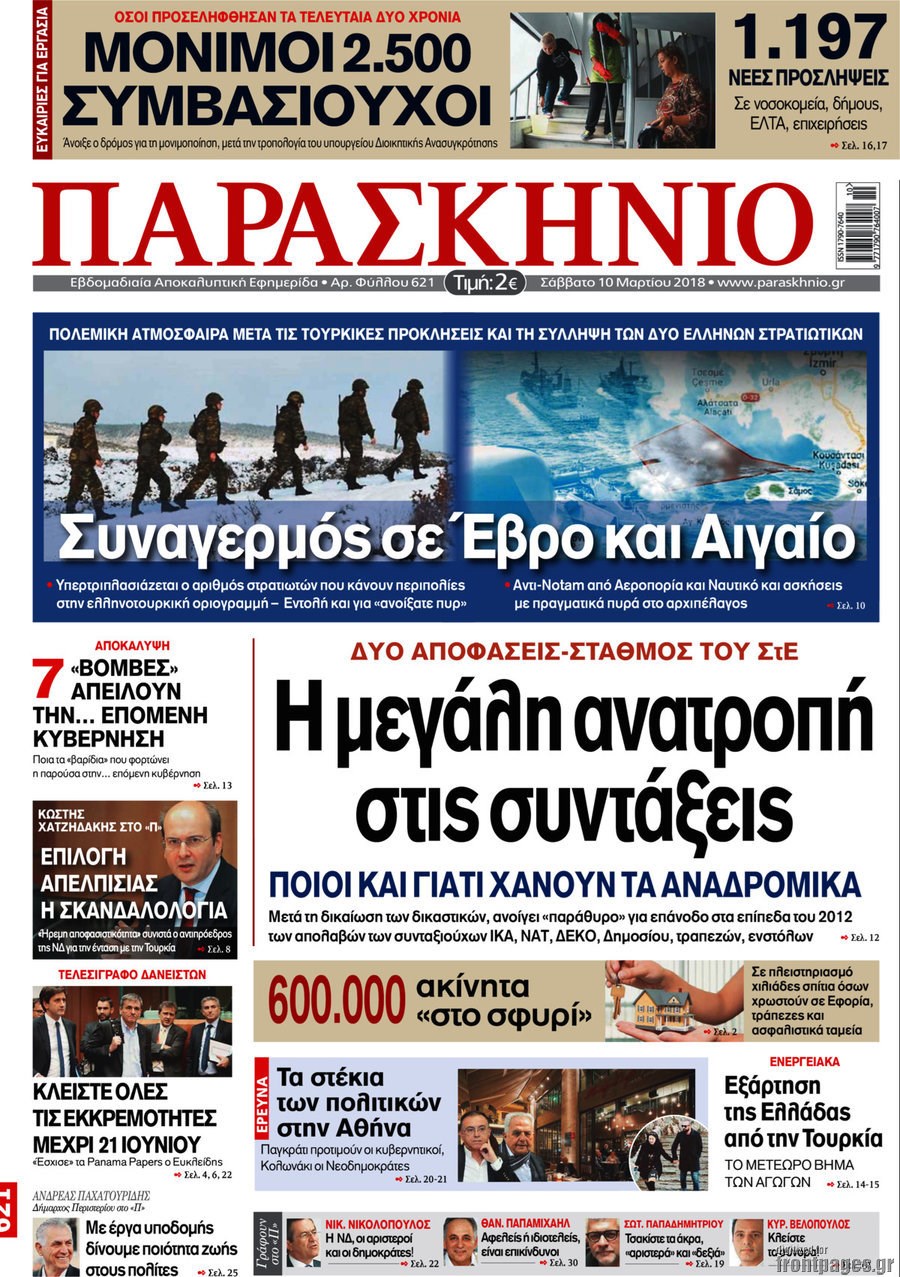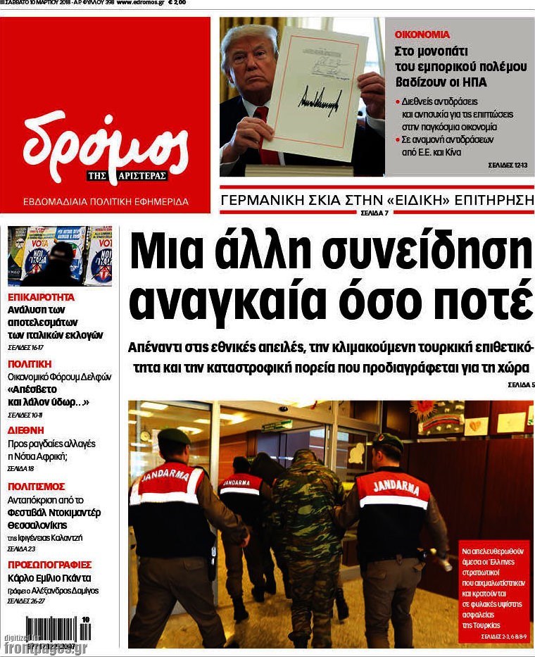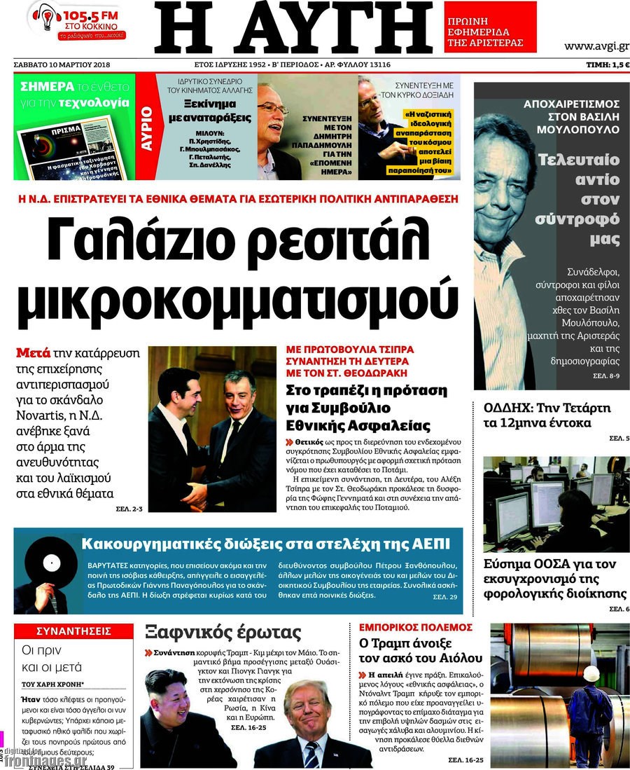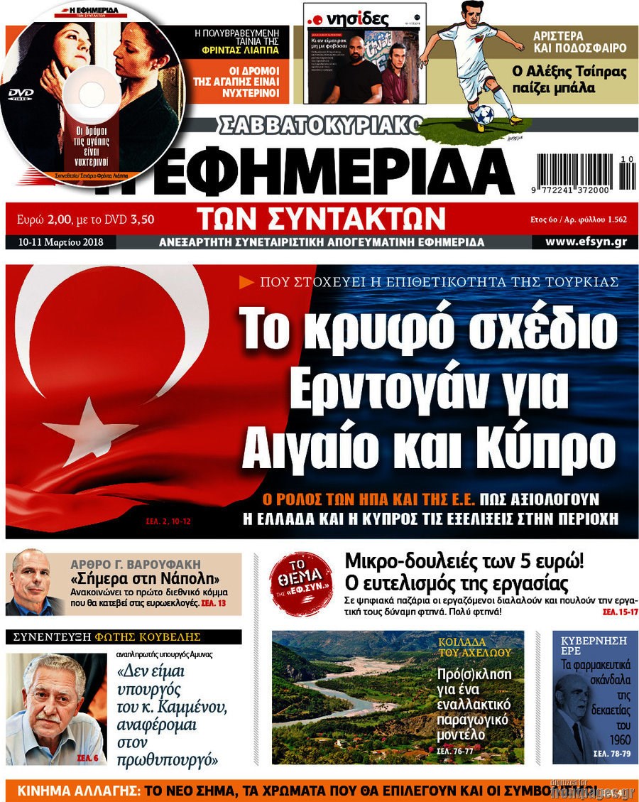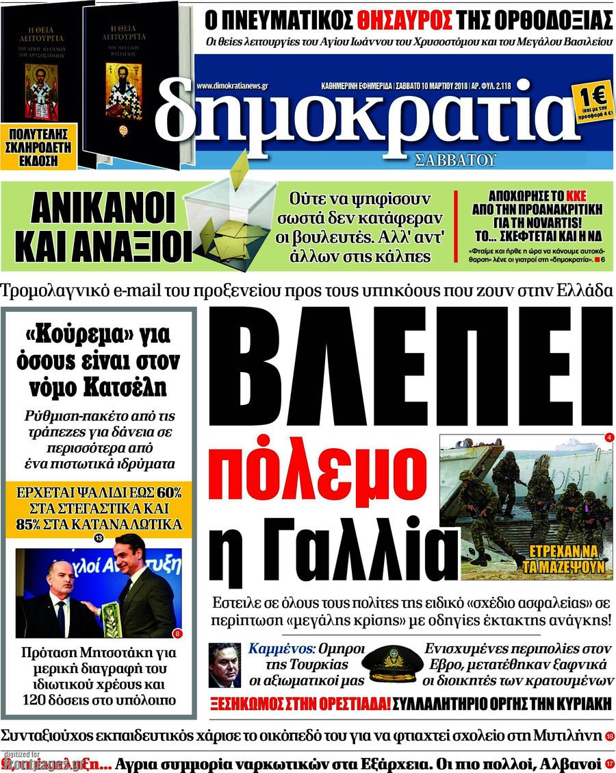 Οι πολιτικές εφημερίδες 10/3/2018 Enikos Newsroom 07:43, Σάββατο 10 Μαρτίου 2018 Media Διαβάστε τα σημερινά πρωτοσέλιδα των πολιτικών εφημερίδων: ΠΟΛΙΤΙΚΕΣ ΕΦΗΜΕΡΙΔΕΣ ΠΡΩΤΟΣΕΛΙΔΑ Μοιράσου το: σχολίασε κι εσύ (0 σχόλια) Ακολουθήστε το enikos.gr στο Google News και μάθετε πρώτοι όλες τις ειδήσεις Δείτε όλες τις τελευταίες ειδήσεις από την Ελλάδα και τον Κόσμο στο enikos.gr Ειδήσεις Ροή Ειδήσεων 7 ώρες πριν Χριστούγεννα στα μπλόκα: Επιμένουν στις κινητοποιήσεις τους οι αγρότες – Ανοίγουν τα διόδια το Σαββατοκύριακο 7 ώρες πριν Ουκρανία: Η άνευ προηγουμένου επίθεση σε ρωσικό τάνκερ στη Μεσόγειο και το μήνυμα προς στον Πούτιν – Το «μακρύ χέρι» του Κιέβου 6 ώρες πριν Πούτιν: Τα μηνύματα σε Ευρώπη και ΝΑΤΟ από το μαραθώνιο «σόου» του – Η απαίτηση για «σεβασμό» και η ειρήνη «με τους όρους» της Μόσχας 7 ώρες πριν Τραμπ: Δεν αποκλείει την πιθανότητα ενός πολέμου στη Βενεζουέλα – «Ο Μαδούρο ξέρει καλύτερα από τον καθένα τι ακριβώς θέλω» 8 ώρες πριν Συνεχίζει να προκαλεί ο Μίτσκοσκι: «Για μένα το όνομα Μακεδονία είναι ιερό» 6 ώρες πριν Ανακαλύφθηκαν αρχαία χρυσά νομίσματα 2.200 ετών που απεικονίζουν τον θεό Απόλλωνα – Η άγνωστη σύνδεση με τον Φίλιππο Β΄ της Μακεδονίας 7 ώρες πριν Ύπνος: Μια κρυφή κατάσταση του εγκεφάλου πριν από τον ύπνο μπορεί να είναι το “κλειδί” για υψηλή ευφυΐα και δημιουργικότητα 8 ώρες πριν Αριθμολογία: Οι άνθρωποι που έχουν γεννηθεί αυτές τις 4 ημερομηνίες, συχνά παρεξηγούνται – «Η καλοσύνη τους κρύβει τεράστια δύναμη» 9 ώρες πριν Ξεχάστε το καθάρισμα το Σαββατοκύριακο: Ο «κανόνας των 20 λεπτών» που θα σας λύσει τα χέρια 28 δευτερόλεπτα πριν Γιώργος Μπαρτζώκας: «Για εμένα σημαίνει πάρα πολλά να ακούω το όνομά μου από τον κόσμο του Ολυμπιακού» 9 λεπτά πριν ΟΗΕ: Το Συμβούλιο Ασφαλείας παρατείνει για έναν χρόνο την εντολή της ειρηνευτικής δύναμης στο Κονγκό 25 λεπτά πριν Μοχάμεντ Σαλάχ: Ζήτησε «συγγνώμη» από τους συμπαίκτες του στη Λίβερπουλ για το ξέσπασμά του 40 λεπτά πριν Μάρκο Ρούμπιο: Ανθρωπιστική κατάπαυση του πυρός στο Σουδάν ζητά ο Αμερικανός υπουργός Εξωτερικών 55 λεπτά πριν Αγγελική Νικολούλη: Τα συλλυπητήρια για την απώλεια της Ειρήνης Μαρινάκη ENIKOS NETWORK Το ΕΚΑΒ τιμήθηκε από την Ακαδημία Αθηνών για τα 40 χρόνια προσφοράς του Έχετε πραγματικά μεγάλη καρδιά; 10 χαρακτηριστικά όσων έχουν καλοσύνη Αναστολή μέτρων αναγκαστικής εκτέλεσης για κτηνοτρόφους που πλήττονται από την ευλογιά των αιγοπροβάτων Πλήρης επάρκεια προϊόντων στις λαϊκές της Αττικής, παρά τις αγροτικές κινητοποιήσεις – Τι απαντούν οι πωλητές Χαρτογραφώντας το «σημείο χωρίς επιστροφή»: Για πρώτη φορά αποκαλύπτεται με λεπτομέρεια το ακανθώδες όριο της ατμόσφαιρας τ... Η Google καταργεί τη λειτουργία «dark web report» – Πώς θα μπορούν οι χρήστες να διαγράφουν τα δεδομένα τους περισσότερα 04:20 , Σάββατο 20 Δεκεμβρίου 2025 Αγγελική Νικολούλη: Τα συλλυπητήρια για την απώλεια της Ειρήνης Μαρινάκη Τα συλληπητήρια στον πρόεδρο του Mega, τον Βαγγέλη Μαρινάκη, για την απώλεια της μητέρας του Ε... 02:50 , Σάββατο 20 Δεκεμβρίου 2025 GNTM: Η Ξένια Τσίρκοβα αναδείχθηκε μεγάλη νικήτρια και πήρε τις 50.000 ευρώ – Ποιος βρέθηκε σε απόσταση αναπνοής; Με φαντασμαγορικό τρόπο ολοκληρώθηκε το βράδυ της Παρασκευής ο μεγάλος τελικός του GNTM, μέσα ... 22:42 , Παρασκευή 19 Δεκεμβρίου 2025 Γιώργος Γιαννόπουλος για “Το σόι σου”: “Είναι ευτυχία και ευλογία αυτή η σειρά” «Είναι ευτυχία και ευλογία η συγκυρία αυτής της σειράς», θα πει ο Γιώργος Γιανν