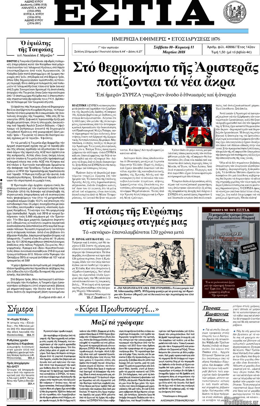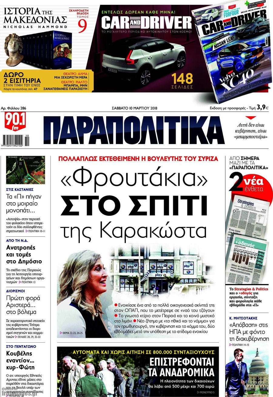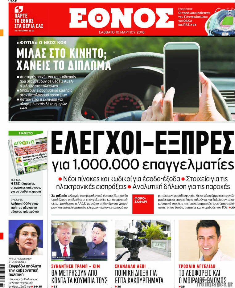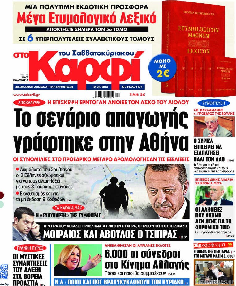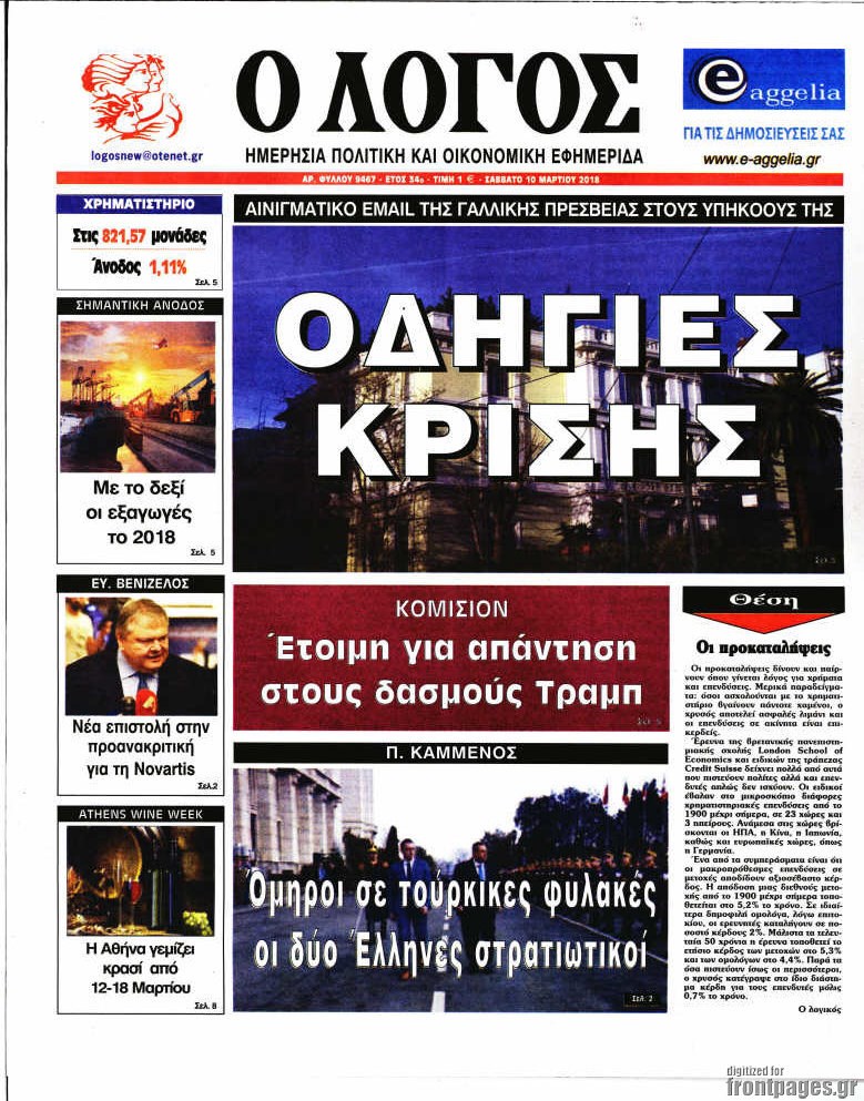 Οι πολιτικές εφημερίδες 10/3/2018 Enikos Newsroom 07:43, Σάββατο 10 Μαρτίου 2018 Media Διαβάστε τα σημερινά πρωτοσέλιδα των πολιτικών εφημερίδων: ΠΟΛΙΤΙΚΕΣ ΕΦΗΜΕΡΙΔΕΣ ΠΡΩΤΟΣΕΛΙΔΑ Μοιράσου το: σχολίασε κι εσύ (0 σχόλια) Ακολουθήστε το enikos.gr στο Google News και μάθετε πρώτοι όλες τις ειδήσεις Δείτε όλες τις τελευταίες ειδήσεις από την Ελλάδα και τον Κόσμο στο enikos.gr Ειδήσεις Ροή Ειδήσεων 7 ώρες πριν Χριστούγεννα στα μπλόκα: Επιμένουν στις κινητοποιήσεις τους οι αγρότες – Ανοίγουν τα διόδια το Σαββατοκύριακο 7 ώρες πριν Ουκρανία: Η άνευ προηγουμένου επίθεση σε ρωσικό τάνκερ στη Μεσόγειο και το μήνυμα προς στον Πούτιν – Το «μακρύ χέρι» του Κιέβου 6 ώρες πριν Πούτιν: Τα μηνύματα σε Ευρώπη και ΝΑΤΟ από το μαραθώνιο «σόου» του – Η απαίτηση για «σεβασμό» και η ειρήνη «με τους όρους» της Μόσχας 7 ώρες πριν Τραμπ: Δεν αποκλείει την πιθανότητα ενός πολέμου στη Βενεζουέλα – «Ο Μαδούρο ξέρει καλύτερα από τον καθένα τι ακριβώς θέλω» 8 ώρες πριν Συνεχίζει να προκαλεί ο Μίτσκοσκι: «Για μένα το όνομα Μακεδονία είναι ιερό» 6 ώρες πριν Ανακαλύφθηκαν αρχαία χρυσά νομίσματα 2.200 ετών που απεικονίζουν τον θεό Απόλλωνα – Η άγνωστη σύνδεση με τον Φίλιππο Β΄ της Μακεδονίας 7 ώρες πριν Ύπνος: Μια κρυφή κατάσταση του εγκεφάλου πριν από τον ύπνο μπορεί να είναι το “κλειδί” για υψηλή ευφυΐα και δημιουργικότητα 8 ώρες πριν Αριθμολογία: Οι άνθρωποι που έχουν γεννηθεί αυτές τις 4 ημερομηνίες, συχνά παρεξηγούνται – «Η καλοσύνη τους κρύβει τεράστια δύναμη» 9 ώρες πριν Ξεχάστε το καθάρισμα το Σαββατοκύριακο: Ο «κανόνας των 20 λεπτών» που θα σας λύσει τα χέρια 28 δευτερόλεπτα πριν Γιώργος Μπαρτζώκας: «Για εμένα σημαίνει πάρα πολλά να ακούω το όνομά μου από τον κόσμο του Ολυμπιακού» 9 λεπτά πριν ΟΗΕ: Το Συμβούλιο Ασφαλείας παρατείνει για έναν χρόνο την εντολή της ειρηνευτικής δύναμης στο Κονγκό 25 λεπτά πριν Μοχάμεντ Σαλάχ: Ζήτησε «συγγνώμη» από τους συμπαίκτες του στη Λίβερπουλ για το ξέσπασμά του 40 λεπτά πριν Μάρκο Ρούμπιο: Ανθρωπιστική κατάπαυση του πυρός στο Σουδάν ζητά ο Αμερικανός υπουργός Εξωτερικών 55 λεπτά πριν Αγγελική Νικολούλη: Τα συλλυπητήρια για την απώλεια της Ειρήνης Μαρινάκη ENIKOS NETWORK Το ΕΚΑΒ τιμήθηκε από την Ακαδημία Αθηνών για τα 40 χρόνια προσφοράς του Έχετε πραγματικά μεγάλη καρδιά; 10 χαρακτηριστικά όσων έχουν καλοσύνη Αναστολή μέτρων αναγκαστικής εκτέλεσης για κτηνοτρόφους που πλήττονται από την ευλογιά των αιγοπροβάτων Πλήρης επάρκεια προϊόντων στις λαϊκές της Αττικής, παρά τις αγροτικές κινητοποιήσεις – Τι απαντούν οι πωλητές Χαρτογραφώντας το «σημείο χωρίς επιστροφή»: Για πρώτη φορά αποκαλύπτεται με λεπτομέρεια το ακανθώδες όριο της ατμόσφαιρας τ... Η Google καταργεί τη λειτουργία «dark web report» – Πώς θα μπορούν οι χρήστες να διαγράφουν τα δεδομένα τους περισσότερα 04:20 , Σάββατο 20 Δεκεμβρίου 2025 Αγγελική Νικολούλη: Τα συλλυπητήρια για την απώλεια της Ειρήνης Μαρινάκη Τα συλληπητήρια στον πρόεδρο του Mega, τον Βαγγέλη Μαρινάκη, για την απώλεια της μητέρας του Ε... 02:50 , Σάββατο 20 Δεκεμβρίου 2025 GNTM: Η Ξένια Τσίρκοβα αναδείχθηκε μεγάλη νικήτρια και πήρε τις 50.000 ευρώ – Ποιος βρέθηκε σε απόσταση αναπνοής; Με φαντασμαγορικό τρόπο ολοκληρώθηκε το βράδυ της Παρασκευής ο μεγάλος τελικός του GNTM, μέσα ... 22:42 , Παρασκευή 19 Δεκεμβρίου 2025 Γιώργος Γιαννόπουλος για “Το σόι σου”: “Είναι ευτυχία και ευλογία αυτή η σειρά” «Είναι ευτυχία και ευλογία η συγκυρία αυτής της σειράς», θα πει ο Γιώργος Γιανν