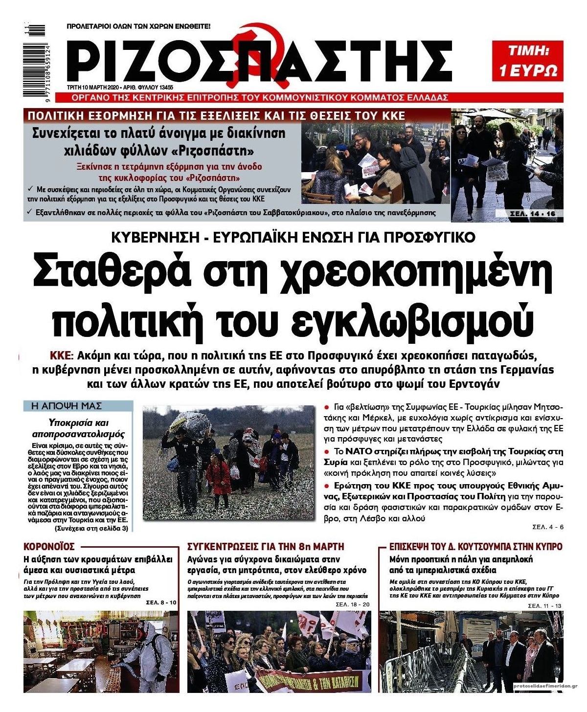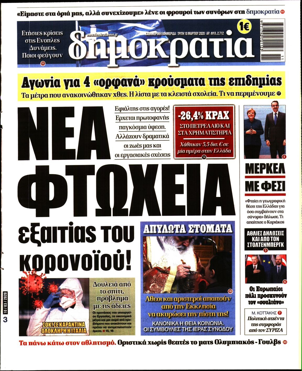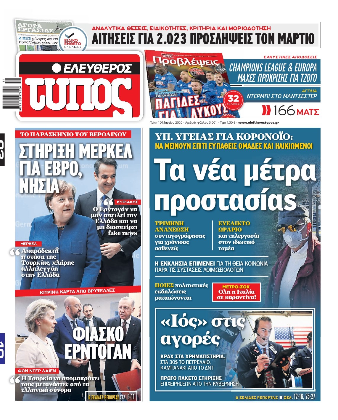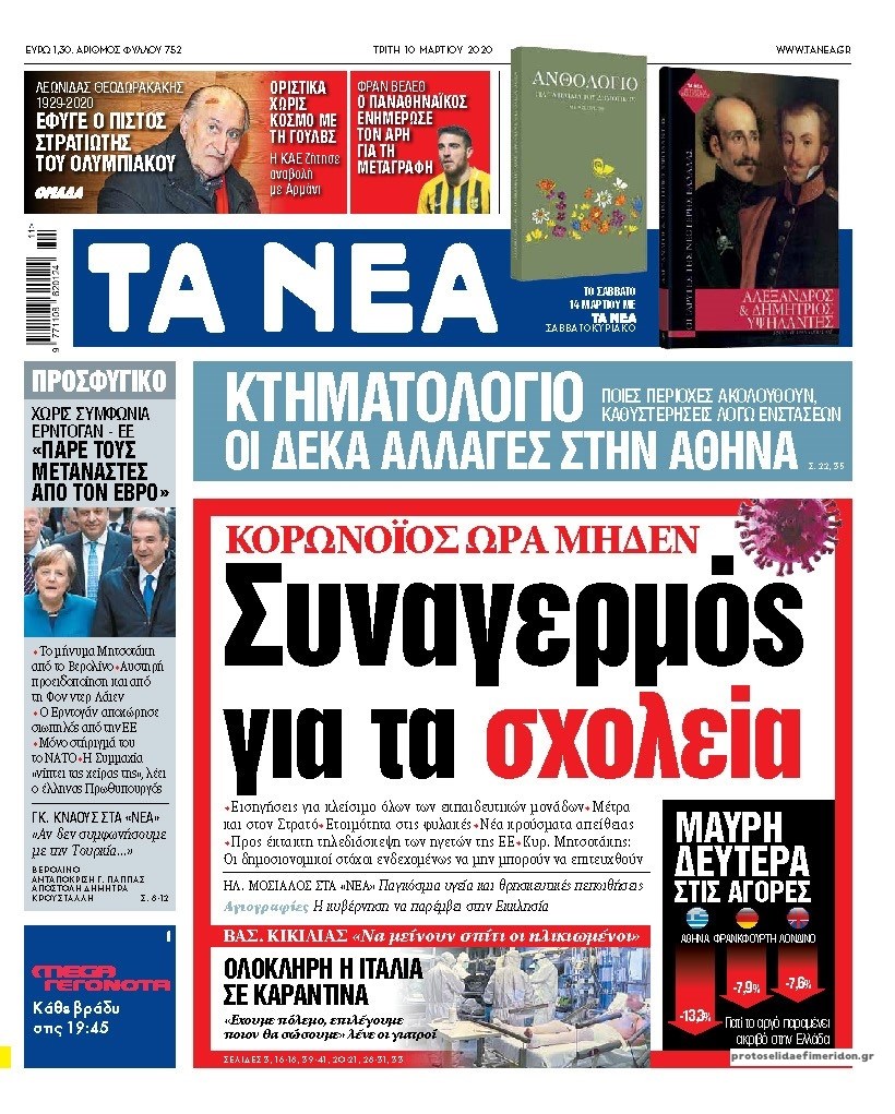 Οι πολιτικές εφημερίδες 10/3/2020 Κώστας Τεό 06:08, Τρίτη 10 Μαρτίου 2020 Media Διαβάστε τα πρωτοσέλιδα των πολιτικών εφημερίδων: ΠΟΛΙΤΙΚΕΣ ΕΦΗΜΕΡΙΔΕΣ ΠΡΩΤΟΣΕΛΙΔΑ Μοιράσου το: σχολίασε κι εσύ (0 σχόλια) Ακολουθήστε το enikos.gr στο Google News και μάθετε πρώτοι όλες τις ειδήσεις Δείτε όλες τις τελευταίες ειδήσεις από την Ελλάδα και τον Κόσμο στο enikos.gr Ειδήσεις Ροή Ειδήσεων 2 ώρες πριν Υπόθεση Έπσταϊν: Το Υπουργείο Δικαιοσύνης δημοσιοποίησε μια σειρά από εξαιρετικά επεξεργασμένα αρχεία – «Λείπουν τα πιο σημαντικά έγγραφα», λένε οι Δημοκρατικοί 1 ώρα πριν Ο «χάρτης» με τις αυξήσεις και τις φοροελαφρύνσεις του 2026 – Ποιοι και πόσα κερδίζουν 11 ώρες πριν Χριστούγεννα στα μπλόκα: Επιμένουν στις κινητοποιήσεις τους οι αγρότες – Ανοίγουν τα διόδια το Σαββατοκύριακο 2 ώρες πριν ΟΝΕΧ – MEGATUGS: Ξεκίνησε η ναυπήγηση ρυμουλκών στην Ελλάδα – Προθάλαμος πολεμικών πλοίων – Δείτε φωτογραφίες και βίντεο 2 ώρες πριν Καιρός: Αλλαγή σκηνικού σήμερα με βροχές και πτώση της θερμοκρασίας – Οι προβλέψεις των μετεωρολόγων για τα Χριστούγεννα 4 ώρες πριν Αυγά: Πόσα μπορείτε να τρώτε την ημέρα με ασφάλεια για μέγιστη πρόσληψη πρωτεΐνης 3 ώρες πριν Οπτική ψευδαίσθηση: Μόνο αν είσαι ο Σέρλοκ Χολμς θα βρεις τον αριθμό «87» σε 7 δευτερόλεπτα 2 ώρες πριν Αρχαιολόγοι ανακάλυψαν σε χωράφι απεικόνιση 600 ετών ενός Αγίου – Τα στοιχεία που δείχνουν ότι μαρτύρησε 35 λεπτά πριν Αγχώνεται για το χριστουγεννιάτικο δώρο που πήρε στην πλούσια σύντροφό του – «Φοβάμαι πως θα το βρει φθηνιάρικο, φοράει βραχιόλια Cartier» 10 λεπτά πριν «Porto Leone: Στη γειτονιά με τα κόκκινα φανάρια» – Ο Χρόνης αποκαλύπτει στην Αλεξάνδρα το μυστικό για το παιδί της Λένας 18 λεπτά πριν Νέες αιτήσεις για ίδρυση μη κρατικών πανεπιστημίων στο πρώτο δίμηνο του 2026 – Τι είπε η Ζαχαράκη 26 λεπτά πριν Ουκρανία: Drones έπληξαν εξέδρα πετρελαίου και πολεμικό πλοίο της Ρωσίας στην Κασπία 34 λεπτά πριν Παιδική υπέρταση: Μια σιωπηλή απειλή που αυξάνεται διεθνώς 35 λεπτά πριν Αγχώνεται για το χριστουγεννιάτικο δώρο που πήρε στην πλούσια σύντροφό του – «Φοβάμαι πως θα το βρει φθηνιάρικο, φοράει βραχιόλια Cartier» ENIKOS NETWORK Πόσα κιλά παίρνουμε πραγματικά τα Χριστούγεννα, σύμφωνα με την επιστήμη – Πώς να το αποτρέψουμε; Το δημοφιλές ρόφημα που αυξάνει την πίεση πιο γρήγορα και από το αλάτι Mega χριστουγεννιάτικη φορολοταρία: «Κλείδωσε» η ημερομηνία για την κλήρωση – Ερωτήσεις και απαντήσεις Αναστολή μέτρων αναγκαστικής εκτέλεσης για κτηνοτρόφους που πλήττονται από την ευλογιά των αιγοπροβάτων Χαρτογραφώντας το «σημείο χωρίς επιστροφή»: Για πρώτη φορά αποκαλύπτεται με λεπτομέρεια το ακανθώδες όριο της ατμόσφαιρας τ... Η Google καταργεί τη λειτουργία «dark web report» – Πώς θα μπορούν οι χρήστες να διαγράφουν τα δεδομένα τους περισσότερα 09:30 , Σάββατο 20 Δεκεμβρίου 2025 «Porto Leone: Στη γειτονιά με τα κόκκινα φανάρια» – Ο Χρόνης αποκαλύπτει στην Αλεξάνδρα το μυστικό για το παιδί της Λένας Η μεγάλη δραματική σειρά του Apha «Porto Leone: Στη γειτονιά με τα κόκκινα φανάρια» μας μεταφέ... 08:14 , Σάββατο 20 Δεκεμβρίου 2025 Τρομεροί γονείς: Η Μαρία Καβογιάννη εισβάλλει στο σπίτι της οικογένειας Στεφανίδη Όσα θα δούμε στο νέο διπλό επεισόδιο της σειράς «Τρομεροί γονείς», σήμερα Σάββατο 20 Δεκεμβρίο... 05:48 , Σάββατο 20 Δεκεμβρίου 2025 Οι οικονομικές εφημερίδες 20/12/2025 Διαβάστε τα πρωτοσέλιδα από τις οικονομικές εφημερίδες, σήμερα 20/12/2025. 05:43 , Σάββατο 20 Δεκεμβρίου 2025 Οι αθλητικές εφημερίδες 20/12/2025 Δ