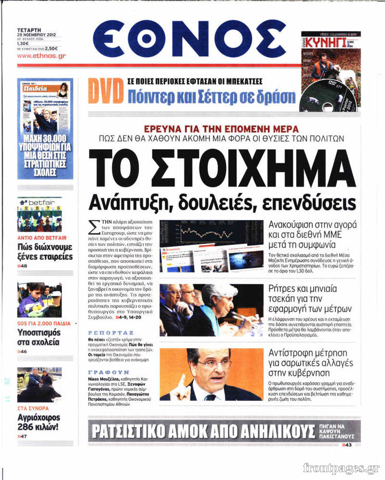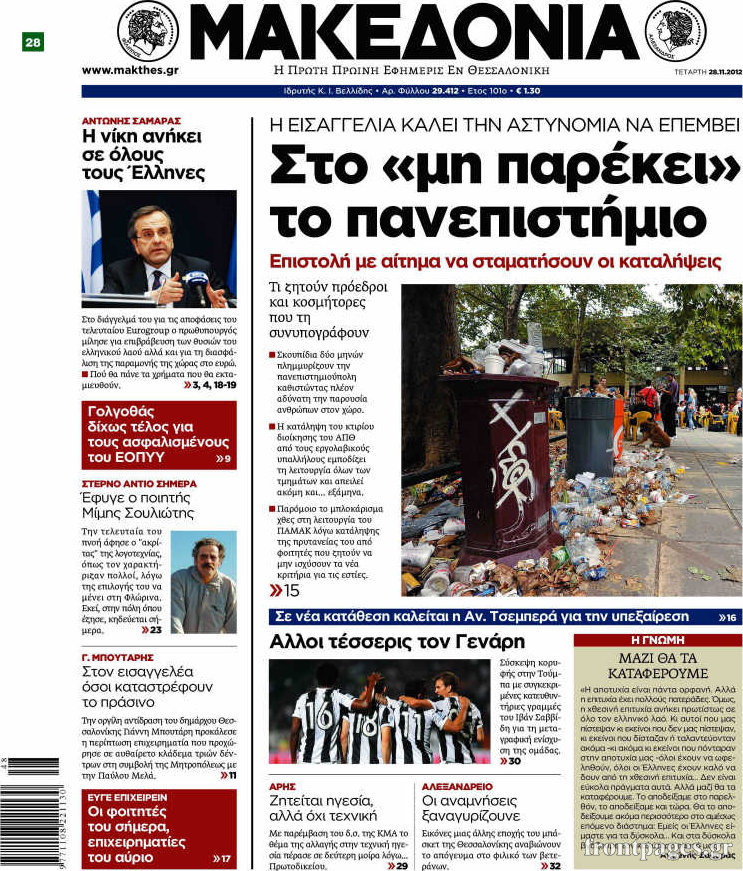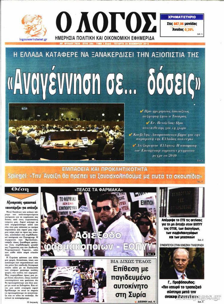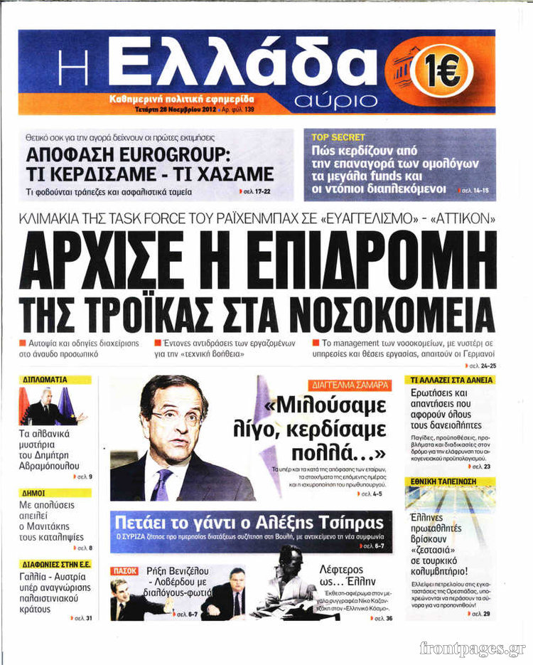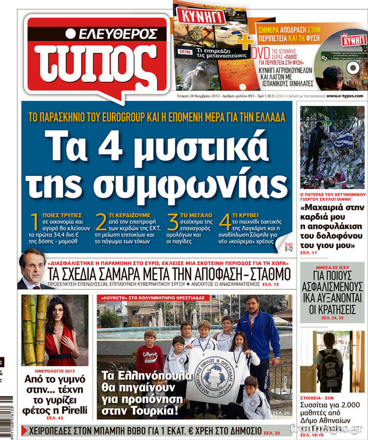 Οι πολιτικές εφημερίδες Enikos Newsroom 08:56, Τετάρτη 28 Νοεμβρίου 2012 Media Οι πολιτικές εφημερίδες Τα σημερινά πρωτοσέλιδα των πολιτικών εφημερίδων ΕΦΗΜΕΡΙΔΕΣ ΕΦΗΜΕΡΙΔΕΣ ΠΡΩΤΟΣΕΛΙΔΑ ΠΟΛΙΤΙΚΕΣ ΕΦΗΜΕΡΙΔΕΣ Μοιράσου το: σχολίασε κι εσύ (0 σχόλια) Ακολουθήστε το enikos.gr στο Google News και μάθετε πρώτοι όλες τις ειδήσεις Δείτε όλες τις τελευταίες ειδήσεις από την Ελλάδα και τον Κόσμο στο enikos.gr Ειδήσεις Ροή Ειδήσεων 14 λεπτά πριν Η διαδρομή του σκάφους με την τεράστια ποσότητα κοκαΐνης που κατασχέθηκε στο λιμάνι του Πειραιά – Συνελήφθη και γνωστός «βαρώνος» 42 λεπτά πριν Τσιάρας για αγροτικές κινητοποιήσεις: Μονόδρομος ο διάλογος – Διαφάνεια με τη μεταφορά του ΟΠΕΚΕΠΕ στην ΑΑΔΕ 2 ώρες πριν Αυστραλία: Σχέσεις με το ISIS εκτιμάται πως είχαν οι δράστες της τρομοκρατικής επίθεσης στο Σίδνεϊ 2 ώρες πριν Σοκ στο Χόλιγουντ: Νεκροί από μαχαιριές ο σκηνοθέτης Ρομπ Ράινερ και η σύζυγός του – Αναφορές ότι τους σκότωσε ο γιος τους 2 ώρες πριν Αγρότες: Αμετακίνητοι από τα μπλόκα σε τελωνεία και εθνικές οδούς – Ο χάρτης των κινητοποιήσεων και τα αιτήματά τους 24 λεπτά πριν Τα 3 ζώδια που μπαίνουν σε μια νέα δυναμική εποχή – «Είστε έτοιμοι για όλα» 1 ώρα πριν Κληρονόμησε 2,8 εκατ. ευρώ και φοβάται ότι οι άνδρες θα την πλησιάζουν για τα λεφτά – «Μήπως καλύτερα να το κρατήσω μυστικό;» 2 ώρες πριν Κάτω από παλάτι κρυβόταν ένα άλλο μνημειώδες ανάκτορο: Οι ανασκαφές σε αρχαία πόλη αποκάλυψαν τα ερείπια και τα μυστικά του 4 ώρες πριν Διατροφή: Γιατρός προειδοποιεί για 2 απλά λάθη που αυξάνουν τον κίνδυνο χρόνιων παθήσεων 2 λεπτά πριν ΗΠΑ: Κινέζος δισεκατομμυριούχος απέκτησε πάνω από 100 παιδιά μέσω παρένθετης μητρότητας – Φαντασιώνεται… γάμους με την οικογένεια Μασκ 3 λεπτά πριν Δείτε LIVE το συνέδριο «Ελληνικός Τουρισμός, Μια Εθνική Υπόθεση!» 8 λεπτά πριν Ρωσία: Κατέρριψε 130 ουκρανικά drones κατά τη διάρκεια της νύχτας – Αεροδρόμια της Μόσχας ανέστειλαν τη λειτουργία τους 14 λεπτά πριν Η διαδρομή του σκάφους με την τεράστια ποσότητα κοκαΐνης που κατασχέθηκε στο λιμάνι του Πειραιά – Συνελήφθη και γνωστός «βαρώνος» 17 λεπτά πριν Αγροτικές κινητοποιήσεις: Αποκλεισμός του τελωνείου Νίκης στη Φλώρινα και του δρόμου προς Πτολεμαΐδα ENIKOS NETWORK Έλλειψη μαγνησίου: Ποια τα συμπτώματα που επηρεάζουν ύπνο, ενέργεια και διάθεση Έχετε καλή φυσική κατάσταση; Δείτε αν μπορείτε να κάνετε αυτές τις 5 κινήσεις ΦΠΑ: Αυξημένος κατά 57% ο αριθμός των ελέγχων για παράνομες επιστροφές και απάτες – Ποιοι βρίσκονται στο στόχαστρο της ΑΑΔΕ Δάνεια σε ελβετικό φράγκο: Ανακοινώνεται η ρύθμιση- Ποιοι και πόσο θα έχουν όφελος – Όλες οι λεπτομέρειες Σύγχρονος Νοστράδαμος: Προειδοποιεί για «μεγάλο γεγονός» τους επόμενους μήνες που θα συγκλονίσει τη Βρετανία και τον κόσμο Τεστ παρατηρητικότητας: Μπορείτε να βρείτε τις 3 διαφορές στις εικόνες με έναν πιγκουίνο σε 14 δευτερόλεπτα περισσότερα 10:21 , Δευτέρα 15 Δεκεμβρίου 2025 Δείτε LIVE το συνέδριο «Ελληνικός Τουρισμός, Μια Εθνική Υπόθεση!» Δείτε απευθείας το 7ο συνέδριο «Ελληνικός Τουρισμός, Μια Εθνική Υπόθεση!». Το συνέδριο συνδιορ... 09:15 , Δευτέρα 15 Δεκεμβρίου 2025 Την Κυριακή με τη Realnews: Ό,τι και αν αγοράσεις, σκανάρεις και κερδίζεις! Την Κυριακή με τη Realnews: Ό,τι και αν αγοράσεις, σκανάρεις και κερδίζεις! Με το PADU app, το... 07:42 , Δευτέρα 15 Δεκεμβρίου 2025 Την Κυριακή με τη Realnews: Δωροεπιταγή10€ Δωροεπιταγή αξίας 10€ για αγορές άνω των 60€ από τα πολυκαταστήματα FactoryOutlet H προσφορά ι... 07:17 , Δευτέρ
