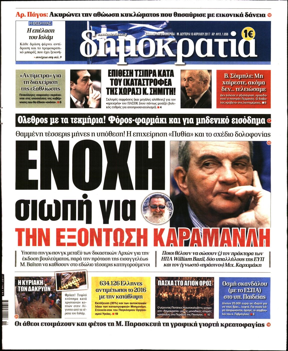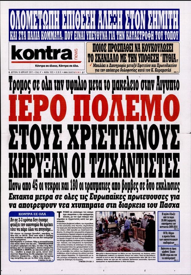 Οι πολιτικές εφημερίδες 10/4/2017 Κώστας Τεό 06:28, Δευτέρα 10 Απριλίου 2017 Media Διαβάστε τα σημερινά πρωτοσέλιδα των πολιτικών εφημερίδων: ΠΟΛΙΤΙΚΕΣ ΕΦΗΜΕΡΙΔΕΣ ΠΡΩΤΟΣΕΛΙΔΑ Μοιράσου το: σχολίασε κι εσύ (0 σχόλια) Ακολουθήστε το enikos.gr στο Google News και μάθετε πρώτοι όλες τις ειδήσεις Δείτε όλες τις τελευταίες ειδήσεις από την Ελλάδα και τον Κόσμο στο enikos.gr Ειδήσεις Ροή Ειδήσεων 2 ώρες πριν Χριστούγεννα στα μπλόκα: Επιμένουν στις κινητοποιήσεις τους οι αγρότες – Ανοίγουν τα διόδια το Σαββατοκύριακο 3 ώρες πριν Ουκρανία: Η άνευ προηγουμένου επίθεση σε ρωσικό τάνκερ στη Μεσόγειο και το μήνυμα προς στον Πούτιν – Το «μακρύ χέρι» του Κιέβου 2 ώρες πριν Πούτιν: Τα μηνύματα σε Ευρώπη και ΝΑΤΟ από το μαραθώνιο «σόου» του – Η απαίτηση για «σεβασμό» και η ειρήνη «με τους όρους» της Μόσχας 3 ώρες πριν Τραμπ: Δεν αποκλείει την πιθανότητα ενός πολέμου στη Βενεζουέλα – «Ο Μαδούρο ξέρει καλύτερα από τον καθένα τι ακριβώς θέλω» 3 ώρες πριν Συνεχίζει να προκαλεί ο Μίτσκοσκι: «Για μένα το όνομα Μακεδονία είναι ιερό» 2 ώρες πριν Ανακαλύφθηκαν αρχαία χρυσά νομίσματα 2.200 ετών που απεικονίζουν τον θεό Απόλλωνα – Η άγνωστη σύνδεση με τον Φίλιππο Β΄ της Μακεδονίας 3 ώρες πριν Ύπνος: Μια κρυφή κατάσταση του εγκεφάλου πριν από τον ύπνο μπορεί να είναι το “κλειδί” για υψηλή ευφυΐα και δημιουργικότητα 4 ώρες πριν Αριθμολογία: Οι άνθρωποι που έχουν γεννηθεί αυτές τις 4 ημερομηνίες, συχνά παρεξηγούνται – «Η καλοσύνη τους κρύβει τεράστια δύναμη» 5 ώρες πριν Ξεχάστε το καθάρισμα το Σαββατοκύριακο: Ο «κανόνας των 20 λεπτών» που θα σας λύσει τα χέρια 5 λεπτά πριν Μπαρτσελόνα – Μπασκόνια 134-124: Οι «μπλαουγκράνα» πήραν το ματς της χρονιάς ύστερα από τρεις παρατάσεις 20 λεπτά πριν Φαίη Σκορδά: «Παλιότερα τα κομπλιμέντα τα προσπερνούσα, τώρα τα έχω ανάγκη» 36 λεπτά πριν Βασίλης Σπανούλης: Δεν εμφανίστηκε ούτε ένας δημοσιογράφος στην συνέντευξη Τύπου – «Καλησπέρα στον… κανέναν», δείτε βίντεο 47 λεπτά πριν Πόλεμος στην Ουκρανία: Εφτά νεκροί από ρωσική πυραυλική επίθεση στο λιμάνι της Οδησσού 51 λεπτά πριν ΗΠΑ: Η κυβέρνηση του Ντόναλντ Τραμπ άρχισε να δημοσιοποιεί τα αρχεία Έπσταϊν ENIKOS NETWORK Το ΕΚΑΒ τιμήθηκε από την Ακαδημία Αθηνών για τα 40 χρόνια προσφοράς του Έχετε πραγματικά μεγάλη καρδιά; 10 χαρακτηριστικά όσων έχουν καλοσύνη Αναστολή μέτρων αναγκαστικής εκτέλεσης για κτηνοτρόφους που πλήττονται από την ευλογιά των αιγοπροβάτων Πλήρης επάρκεια προϊόντων στις λαϊκές της Αττικής, παρά τις αγροτικές κινητοποιήσεις – Τι απαντούν οι πωλητές Χαρτογραφώντας το «σημείο χωρίς επιστροφή»: Για πρώτη φορά αποκαλύπτεται με λεπτομέρεια το ακανθώδες όριο της ατμόσφαιρας τ... Η Google καταργεί τη λειτουργία «dark web report» – Πώς θα μπορούν οι χρήστες να διαγράφουν τα δεδομένα τους περισσότερα 22:42 , Παρασκευή 19 Δεκεμβρίου 2025 Γιώργος Γιαννόπουλος για “Το σόι σου”: “Είναι ευτυχία και ευλογία αυτή η σειρά” «Είναι ευτυχία και ευλογία η συγκυρία αυτής της σειράς», θα πει ο Γιώργος Γιαννόπουλος -ο αγαπ... 20:37 , Παρασκευή 19 Δεκεμβρίου 2025 Don’t Forget The Lyrics: Η Έλλη Κοκκίνου υποδέχεται 4 παίκτες που θα κάνουν τα πάντα για να μη χάσουν ούτε… μισή λέξη από τους στίχους Το «Don’t Forget The Lyrics» επιστρέφει απόψε, Παρασκευή 19 Δεκεμβρίου, στις 21:00 με νέο επει... 19:31 , Παρασκευή 19 Δεκεμβρίου 2025 GNTM: Απόψε ο μεγάλος τελικός για τους 4 φιναλίστ Έπειτα από μήνες γεμάτους μόδα, δημιουργία και έντονες αναμετρήσεις, το GNTM 2025 κορυφώνεται,... 18:11 , Παρα