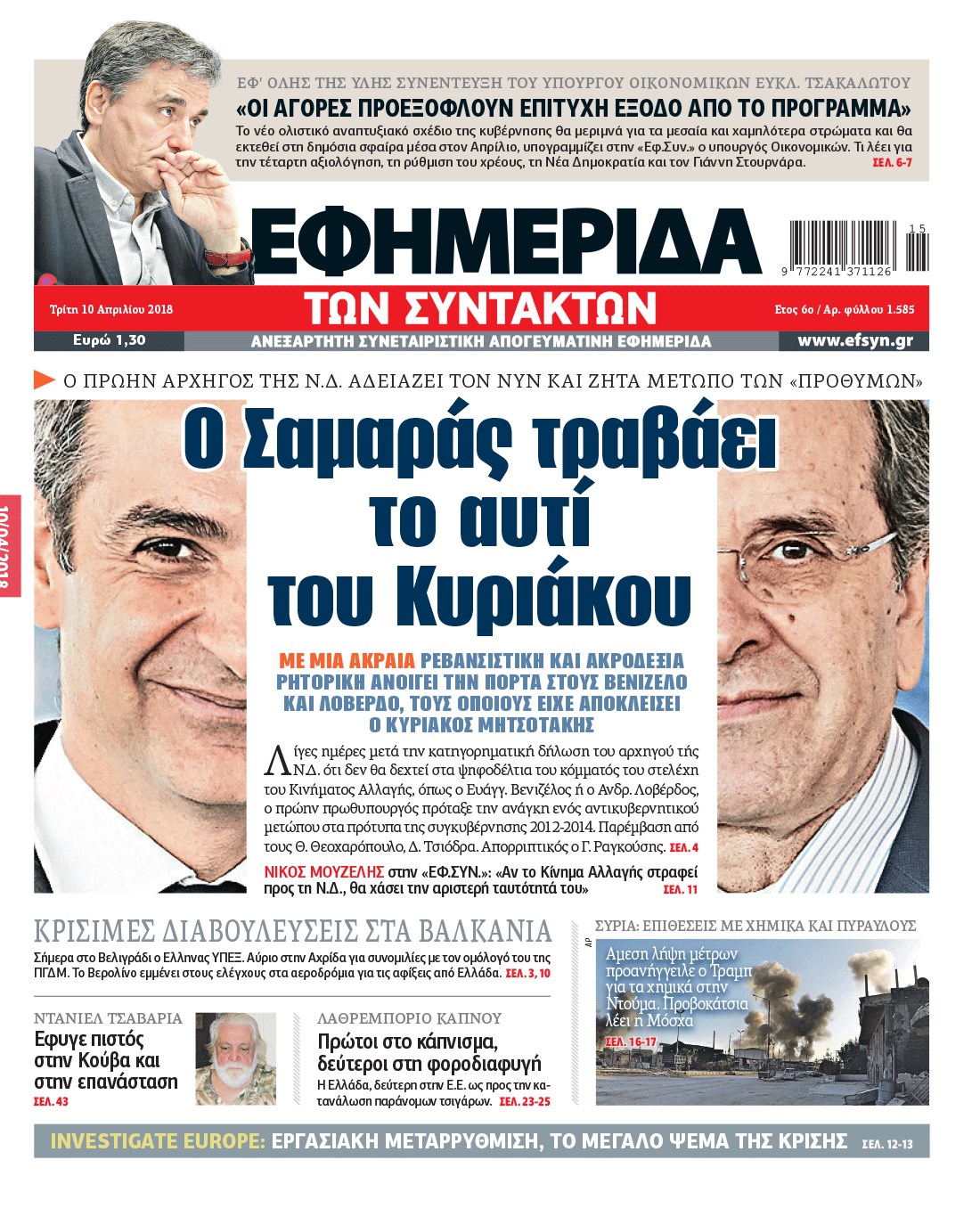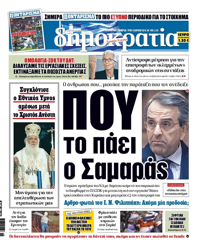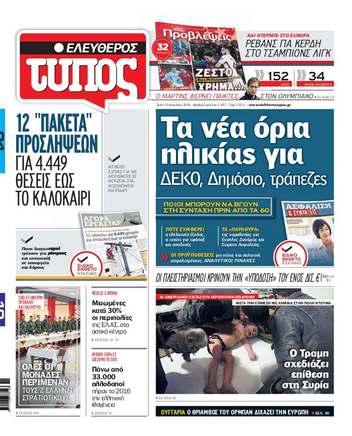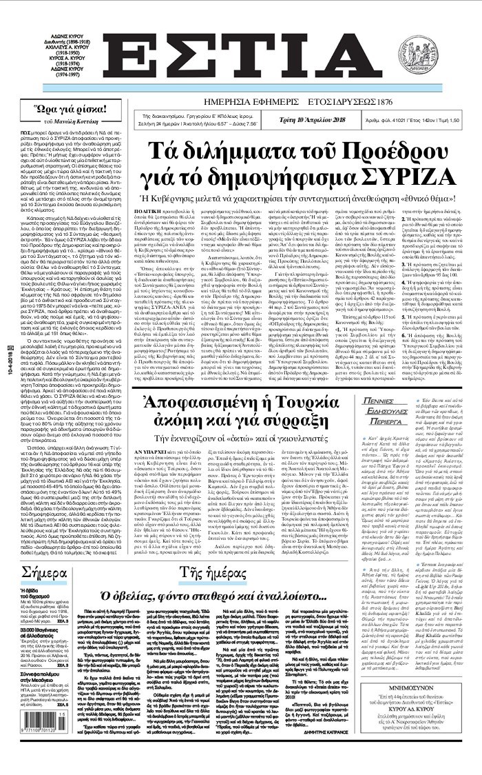 Οι πολιτικές εφημερίδες 10/4/2018 Κώστας Τεό 06:38, Τρίτη 10 Απριλίου 2018 Media Διαβάστε τα σημερινά πρωτοσέλιδα των πολιτικών εφημερίδων: ΠΟΛΙΤΙΚΕΣ ΕΦΗΜΕΡΙΔΕΣ ΠΡΩΤΟΣΕΛΙΔΑ Μοιράσου το: σχολίασε κι εσύ (0 σχόλια) Ακολουθήστε το enikos.gr στο Google News και μάθετε πρώτοι όλες τις ειδήσεις Δείτε όλες τις τελευταίες ειδήσεις από την Ελλάδα και τον Κόσμο στο enikos.gr Ειδήσεις Ροή Ειδήσεων 3 ώρες πριν Πώς δρούσε το κύκλωμα που διακινούσε ναρκωτικά σε σχολεία – Υπέβαλαν σε βασανιστήρια όσους δεν τηρούσαν τους «κανόνες πειθαρχίας» 4 ώρες πριν Αγρότες: Γιορτές στα μπλόκα με ανοιχτά διόδια – Δικογραφία στα Ιωάννινα για το σήκωμα των μπαρών 3 ώρες πριν Ζελένσκι: Οι Αμερικανοί πρότειναν συνάντηση Ουκρανίας, ΗΠΑ, Ρωσίας στο Μαϊάμι 2 ώρες πριν Τραμπ: Πώς περνάει τις γιορτές των Χριστουγέννων – Τα δώρα που κάνει στα εγγόνια του 2 ώρες πριν Μικαέλα Μπέντχαους: Ο πρώτος άνθρωπος σε αναπηρικό αμαξίδιο που ταξίδεψε στο διάστημα – ΒΙΝΤΕΟ 4 ώρες πριν Η τύχη χαμογελά σε 3 ζώδια έως τις 28 Δεκεμβρίου – «Προσέξτε τις επιλογές σας και η επιμονή σας θα ανταμειφθεί» 5 ώρες πριν Μία ανεκμετάλλευτη πηγή θα μπορούσε να προσφέρει ανεξάντλητη ενέργεια – Οι επιστήμονες ίσως γνωρίζουν πώς να την ξεκλειδώσουν 1 ώρα πριν Μήπως οι γιορτές σας δεν είναι τόσο τέλειες; 7 χριστουγεννιάτικες συνήθειες που μαρτυρούν ότι μια οικογένεια είναι δυσλειτουργική 11 ώρες πριν Enerwave: Το νέο «ρεύμα» στη λιανική ενέργειας που αλλάζει την εμπειρία του καταναλωτή 5 λεπτά πριν Πώς να απαλλαγείτε από τη μυρωδιά του τηγανητού φαγητού: Το μυστικό βρίσκεται στην κουζίνα σας 11 λεπτά πριν Βλαχοδήμος: «Νιώθω καλά που είμαι σημαντικός για τη Σεβίλλη» – Τι είπε για τη Ρεάλ Μαδρίτης και τον Μπαπέ 20 λεπτά πριν Πρίγκιπας Ουίλιαμ: Μαγείρεψε παρέα με τον πρίγκιπα Τζορτζ για τους αστέγους – ΦΩΤΟ και ΒΙΝΤΕΟ 29 λεπτά πριν Επιχείρηση της Τροχαίας κατά της παράνομης στάθμευσης στο Νέο Ψυχικό – Τέσσερις συλλήψεις 38 λεπτά πριν Κυριάκος Μητσοτάκης: Στην Ιερουσαλήμ την Τρίτη ο Πρωθυπουργός για την τριμερή Ελλάδας, Κύπρου, Ισραήλ – Θα συναντηθεί και με τον Αμπάς ENIKOS NETWORK Οι γυναίκες αποκαλύπτουν το πιο ελκυστικό πράγμα που μπορεί να κάνει ένας άνδρας Ομορφιά και αντιγήρανση: Ειδικοί μιλούν για συσκευές περιποίησης του δέρματος Θεοδωρικάκος: Εθνική στρατηγική για τους ημιαγωγούς – Πρώτο βήμα η χρηματοδότηση του πρώτου Κέντρου Ικανοτήτων, με 3,63 εκα... Επίδομα θέρμανσης: Μπαίνει η πρώτη δόση την Τρίτη – Οι επόμενες πληρωμές Χαρτογραφώντας το «σημείο χωρίς επιστροφή»: Για πρώτη φορά αποκαλύπτεται με λεπτομέρεια το ακανθώδες όριο της ατμόσφαιρας τ... Η Google καταργεί τη λειτουργία «dark web report» – Πώς θα μπορούν οι χρήστες να διαγράφουν τα δεδομένα τους περισσότερα 18:19 , Σάββατο 20 Δεκεμβρίου 2025 HOTΕΛ ΕΛVIRA: Η Ελβίρα μαθαίνει πως ο Χάρι μένει κρυφά στο ξενοδοχείο του Παντελή Συνεχίζονται οι εκλογές για πρόεδρο, στο νέο επεισόδιο της κωμικής σειράς του MEGA, HOTΕΛ ΕΛVI... 14:04 , Σάββατο 20 Δεκεμβρίου 2025 Η Realnews αυτής της Κυριακής (21/12/2025) Με τίτλο: «Ασπίδα προστασίας για την Ελλάδα» κυκλοφορεί, αυτήν την Κυριακή, η Realnews. Σημαντ... 12:53 , Σάββατο 20 Δεκεμβρίου 2025 Να μ’ αγαπάς: Το παρελθόν έρχεται στο φως – Καταιγιστικές εξελίξεις στα τελευταία επεισόδια του 2025 Ο Άγγελος αποκαλύπτεται, η Φωτεινή ανησυχεί για τον Λευτέρη και η Ζωή έρχεται αντιμέτωπη με το... 11:41 , Σάββατο 20 Δεκεμβρίου 2025 «Η αγάπη δεν χάνεται ποτέ»: Η μικρού μήκους ταινία κινουμένων σχεδίων που θέτει ερωτ