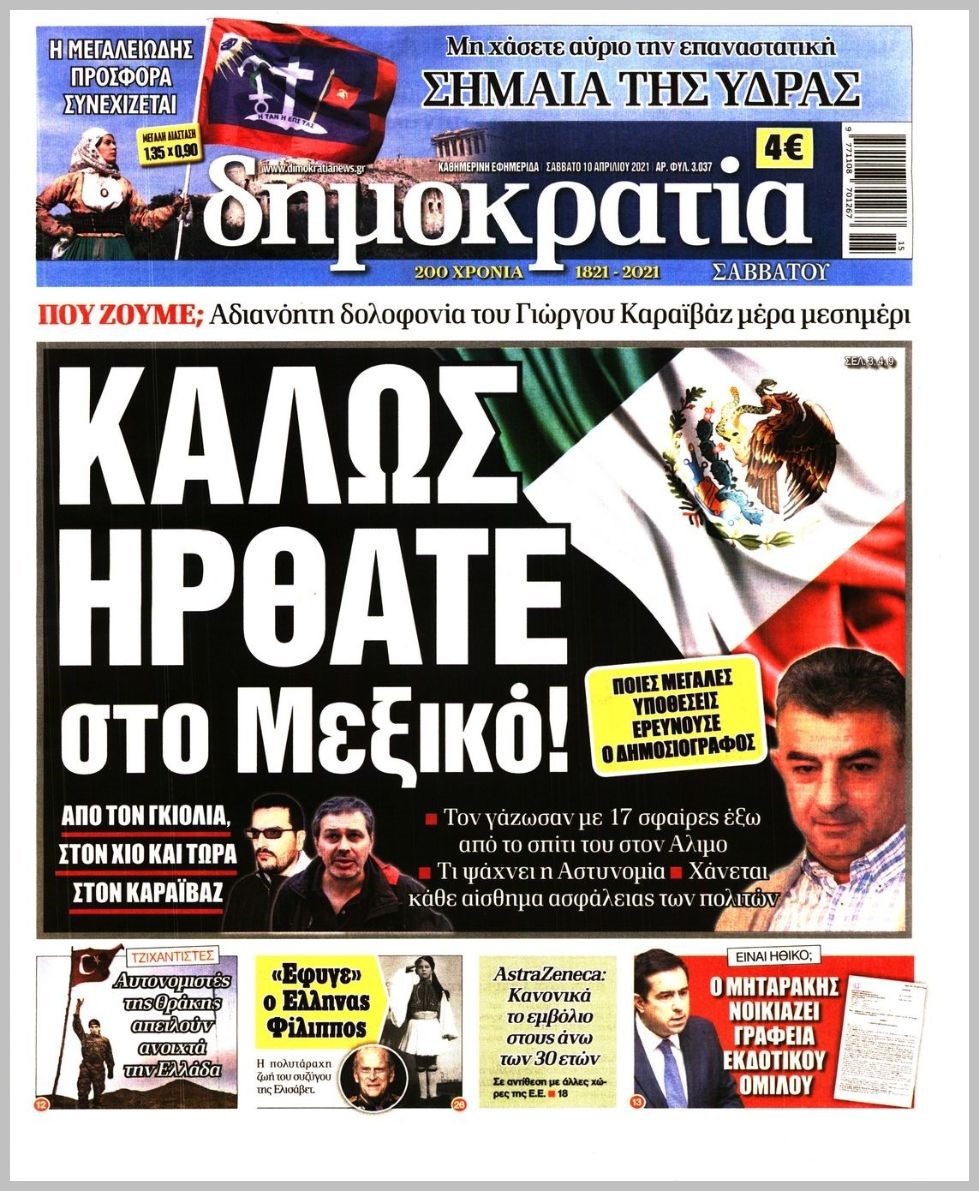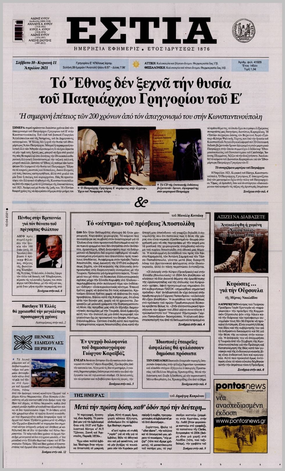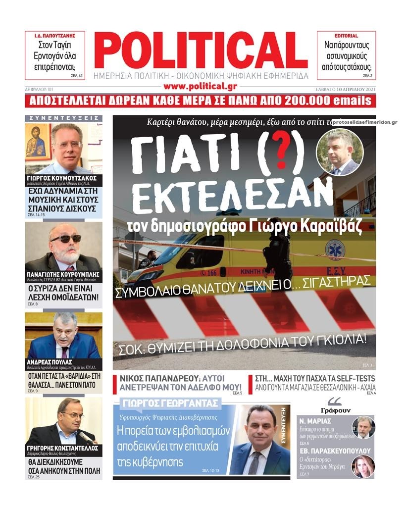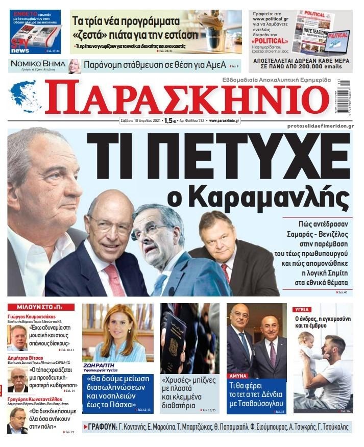 Οι πολιτικές εφημερίδες 10/4/2021 Διονύσης Νίκκας 07:05, Σάββατο 10 Απριλίου 2021 Media Διαβάστε τα πρωτοσέλιδα των πολιτικών εφημερίδων… ΕΦΗΜΕΡΙΔΕΣ ΠΡΩΤΟΣΕΛΙΔΑ Μοιράσου το: σχολίασε κι εσύ (0 σχόλια) Ακολουθήστε το enikos.gr στο Google News και μάθετε πρώτοι όλες τις ειδήσεις Δείτε όλες τις τελευταίες ειδήσεις από την Ελλάδα και τον Κόσμο στο enikos.gr Ειδήσεις Ροή Ειδήσεων 2 ώρες πριν Υπόθεση Έπσταϊν: Το Υπουργείο Δικαιοσύνης δημοσιοποίησε μια σειρά από εξαιρετικά επεξεργασμένα αρχεία – «Λείπουν τα πιο σημαντικά έγγραφα», λένε οι Δημοκρατικοί 1 ώρα πριν Ο «χάρτης» με τις αυξήσεις και τις φοροελαφρύνσεις του 2026 – Ποιοι και πόσα κερδίζουν 11 ώρες πριν Χριστούγεννα στα μπλόκα: Επιμένουν στις κινητοποιήσεις τους οι αγρότες – Ανοίγουν τα διόδια το Σαββατοκύριακο 2 ώρες πριν ΟΝΕΧ – MEGATUGS: Ξεκίνησε η ναυπήγηση ρυμουλκών στην Ελλάδα – Προθάλαμος πολεμικών πλοίων – Δείτε φωτογραφίες και βίντεο 2 ώρες πριν Καιρός: Αλλαγή σκηνικού σήμερα με βροχές και πτώση της θερμοκρασίας – Οι προβλέψεις των μετεωρολόγων για τα Χριστούγεννα 4 ώρες πριν Αυγά: Πόσα μπορείτε να τρώτε την ημέρα με ασφάλεια για μέγιστη πρόσληψη πρωτεΐνης 4 ώρες πριν Οπτική ψευδαίσθηση: Μόνο αν είσαι ο Σέρλοκ Χολμς θα βρεις τον αριθμό «87» σε 7 δευτερόλεπτα 2 ώρες πριν Αρχαιολόγοι ανακάλυψαν σε χωράφι απεικόνιση 600 ετών ενός Αγίου – Τα στοιχεία που δείχνουν ότι μαρτύρησε 49 λεπτά πριν Αγχώνεται για το χριστουγεννιάτικο δώρο που πήρε στην πλούσια σύντροφό του – «Φοβάμαι πως θα το βρει φθηνιάρικο, φοράει βραχιόλια Cartier» 8 λεπτά πριν Η χήνα… που πέρασαν για κλέφτη: Έσπασε την πόρτα προκαλώντας πανικό 16 λεπτά πριν Θεσσαλονίκη: 24ωρη λειτουργία σήμερα σε μετρό και 6 λεωφορειακές γραμμές 23 λεπτά πριν «Porto Leone: Στη γειτονιά με τα κόκκινα φανάρια» – Ο Χρόνης αποκαλύπτει στην Αλεξάνδρα το μυστικό για το παιδί της Λένας 32 λεπτά πριν Νέες αιτήσεις για ίδρυση μη κρατικών πανεπιστημίων στο πρώτο δίμηνο του 2026 – Τι είπε η Ζαχαράκη 40 λεπτά πριν Ουκρανία: Drones έπληξαν εξέδρα πετρελαίου και πολεμικό πλοίο της Ρωσίας στην Κασπία ENIKOS NETWORK Πόσα κιλά παίρνουμε πραγματικά τα Χριστούγεννα, σύμφωνα με την επιστήμη – Πώς να το αποτρέψουμε; Το δημοφιλές ρόφημα που αυξάνει την πίεση πιο γρήγορα και από το αλάτι Mega χριστουγεννιάτικη φορολοταρία: «Κλείδωσε» η ημερομηνία για την κλήρωση – Ερωτήσεις και απαντήσεις Αναστολή μέτρων αναγκαστικής εκτέλεσης για κτηνοτρόφους που πλήττονται από την ευλογιά των αιγοπροβάτων Χαρτογραφώντας το «σημείο χωρίς επιστροφή»: Για πρώτη φορά αποκαλύπτεται με λεπτομέρεια το ακανθώδες όριο της ατμόσφαιρας τ... Η Google καταργεί τη λειτουργία «dark web report» – Πώς θα μπορούν οι χρήστες να διαγράφουν τα δεδομένα τους περισσότερα 09:30 , Σάββατο 20 Δεκεμβρίου 2025 «Porto Leone: Στη γειτονιά με τα κόκκινα φανάρια» – Ο Χρόνης αποκαλύπτει στην Αλεξάνδρα το μυστικό για το παιδί της Λένας Η μεγάλη δραματική σειρά του Apha «Porto Leone: Στη γειτονιά με τα κόκκινα φανάρια» μας μεταφέ... 08:14 , Σάββατο 20 Δεκεμβρίου 2025 Τρομεροί γονείς: Η Μαρία Καβογιάννη εισβάλλει στο σπίτι της οικογένειας Στεφανίδη Όσα θα δούμε στο νέο διπλό επεισόδιο της σειράς «Τρομεροί γονείς», σήμερα Σάββατο 20 Δεκεμβρίο... 05:48 , Σάββατο 20 Δεκεμβρίου 2025 Οι οικονομικές εφημερίδες 20/12/2025 Διαβάστε τα πρωτοσέλιδα από τις οικονομικές εφημερίδες, σήμερα 20/12/2025. 05:43 , Σάββατο 20 Δεκεμβρίου 2025 Οι αθλητικές εφημερίδες 20/12/2025 Διαβάστε τα πρωτοσέλιδα από τις αθλητικές εφημερίδες, σήμ
