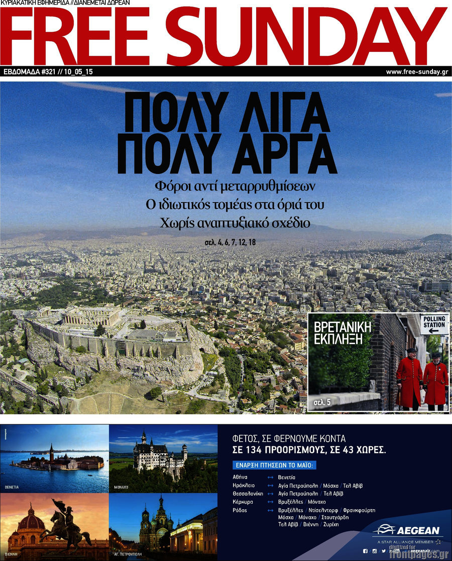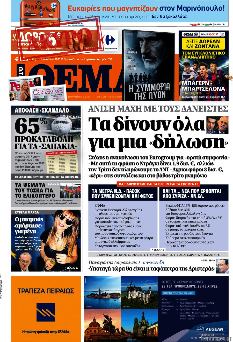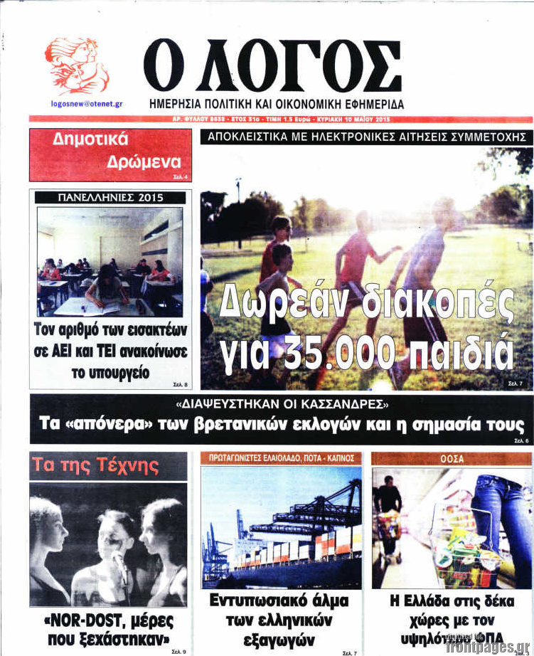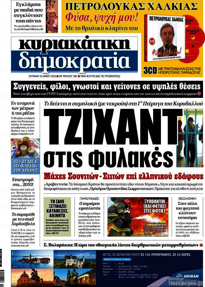 Οι πολιτικές εφημερίδες 10/5/2015 Enikos Newsroom 07:49, Κυριακή 10 Μαΐου 2015 Media Διαβάστε τα σημερινά πρωτοσέλιδα των πολιτικών εφημερίδων. ΕΦΗΜΕΡΙΔΕΣ ΠΟΛΙΤΙΚΕΣ ΕΦΗΜΕΡΙΔΕΣ ΠΡΩΤΟΣΕΛΙΔΑ Μοιράσου το: σχολίασε κι εσύ (0 σχόλια) Ακολουθήστε το enikos.gr στο Google News και μάθετε πρώτοι όλες τις ειδήσεις Δείτε όλες τις τελευταίες ειδήσεις από την Ελλάδα και τον Κόσμο στο enikos.gr Ειδήσεις Ροή Ειδήσεων 50 λεπτά πριν Politico: Πώς ο Τραμπ σε 4 βήματα μπορεί να καταλάβει τη Γροιλανδία – Η στρατηγική που θυμίζει… Πούτιν και το σενάριο της εισβολής 13 λεπτά πριν Μητσοτάκης: Χαιρετίζει τη στήριξη ύψους 45 δισ. ευρώ της Κομισιόν στους αγρότες – «Η φωνή της Ελλάδας στην Ευρώπη ακούγεται πιο δυνατά» 24 λεπτά πριν Φαραντούρης: «Ενώνω τη φωνή μου με την Καρυστιανού, αν αποφασίσω να πορευτώ σε άλλο δρόμο θα ενημερώσω αρμοδίως τον ΣΥΡΙΖΑ» 2 ώρες πριν Συναγερμός για τις νοσηλείες λόγω της γρίπης: Σε επιφυλακή οι υγειονομικές Αρχές μετά την αύξηση των εισαγωγών 2 ώρες πριν Φονικό κύμα ψύχους στην Ευρώπη: 6 νεκροί και χάος στους δρόμους και τα αεροδρόμια 1 ώρα πριν Οι οικονομικές δυσκολίες τελειώνουν για 3 ζώδια – «Έρχονται μεγάλα κέρδη» 3 ώρες πριν Χαμένο αρχαίο χωριό με μυστηριώδες παρελθόν ανακαλύφθηκε εν μέσω κατασκευών: «Συναρπαστικό εύρημα» 2 ώρες πριν Αρνείται να καθαρίσει την καφετιέρα στο γραφείο προκαλώντας αντιδράσεις – «Δεν την χρησιμοποιώ ποτέ» 26 λεπτά πριν Όσοι προσποιούνται ότι είναι υποστηρικτικοί ενώ σε κρίνουν, δείχνουν αυτά τα 8 σημάδια 7 λεπτά πριν Βίντεο-σοκ από κακοποίηση δύο σκύλων: 68χρονος τους είχε δέσει σε αυτοκίνητο και τους έσερνε στον δρόμο 11 λεπτά πριν Νίνο: Το απρόοπτο με το μικρόφωνο την ώρα που τραγουδούσε – Δείτε βίντεο 13 λεπτά πριν Μητσοτάκης: Χαιρετίζει τη στήριξη ύψους 45 δισ. ευρώ της Κομισιόν στους αγρότες – «Η φωνή της Ελλάδας στην Ευρώπη ακούγεται πιο δυνατά» 16 λεπτά πριν Έβρος: 25χρονος μετανάστης εντοπίστηκε πυροβολημένος στη Νέα Βύσσα 21 λεπτά πριν Ακούστε το σχόλιο του Νίκου Χατζηνικολάου 7/1/2026 ENIKOS NETWORK Υπέρταση: 5 πράγματα που είναι καλό να κάνουν οι γυναίκες για καλύτερη αρτηριακή πίεση, σύμφωνα με καρδιολόγους Σφοδρές αντιδράσεις για τις δηλώσεις Βαρουφάκη περί χρήσης ουσιών Ακίνητα: «Έρχεται» η διάταξη για την αναδρομική ενίσχυση με ακόμη ένα ενοίκιο – Πότε θα ψηφιστεί στη Βουλή Επιδόματα μητρότητας 2026: Πότε θα γίνει η πρώτη πληρωμή για το νέο έτος και ποιους θα αφορά Ο Google Assistant θα παραμείνει λίγο περισσότερο για ορισμένους χρήστες Android Τεστ προσωπικότητας: Το βάζο που θα επιλέξετε αποκαλύπτει πώς λύνετε προβλήματα στη ζωή σας περισσότερα 09:45 , Τετάρτη 07 Ιανουαρίου 2026 Εκτός «Πρωινού» ο Γιώργος Λιάγκας: «Είναι ένα μικρό θέμα υγείας» Εκτός εκπομπής βρέθηκε ο Γιώργος Λιάγκας στη σημερινή πρωινή εκπομπή του ΑΝΤ1, «Το Πρωινό», με... 09:00 , Τετάρτη 07 Ιανουαρίου 2026 Αυτή την Κυριακή με τη Realnews: Μυστηριώδης εξαφάνιση – Ένα καθηλωτικό θρίλερ γεμάτο αγωνία από τον διεθνώς αναγνωρισμένο συγγραφέα Rick Mofina Αυτή την Κυριακή με τη Realnews: Μυστηριώδης εξαφάνιση –Ένα καθηλωτικό θρίλερ γεμάτο αγω... 08:00 , Τετάρτη 07 Ιανουαρίου 2026 Την Κυριακή με τη Realnews: Ό,τι και αν αγοράσεις, σκανάρεις και κερδίζεις! Την Κυριακή με τη Realnews: Ό,τι και αν αγοράσεις, σκανάρεις και κερδίζεις! Με το PADU app, το... 07:00 , Τετάρτη 07 Ιανουαρίου 2026 Την Κυριακή με τη Realnews: Δωροεπιταγή 10€ Την Κυριακή με τη Realnews: Δωροεπιταγή 10€ Δωροεπιταγή αξίας 10€ για αγορές άνω των 60€ από τ... ΤΕΛΕΥΤΑΙΕΣ ΕΙΔΗΣΕΙΣ 7 λεπτά πρι