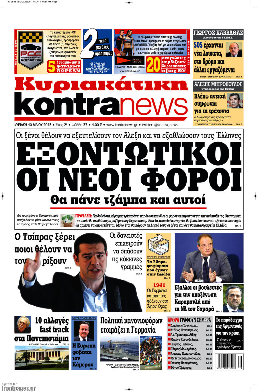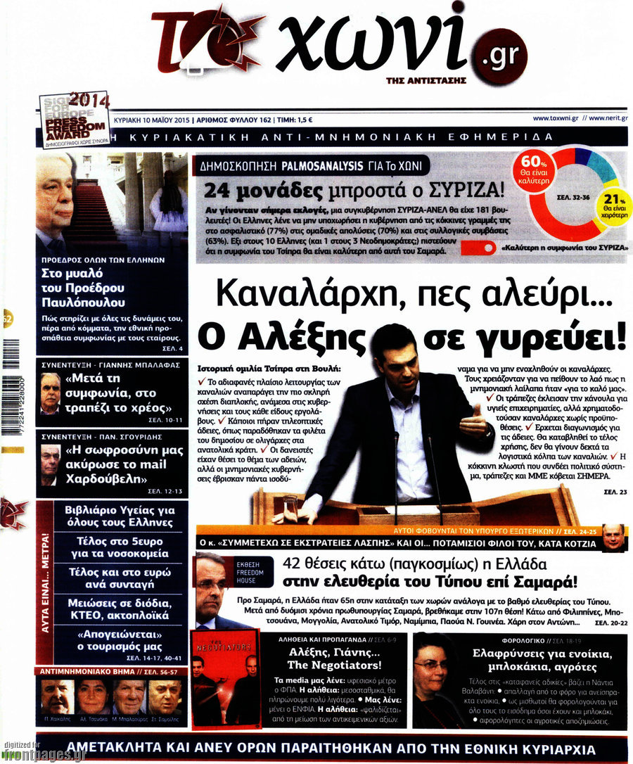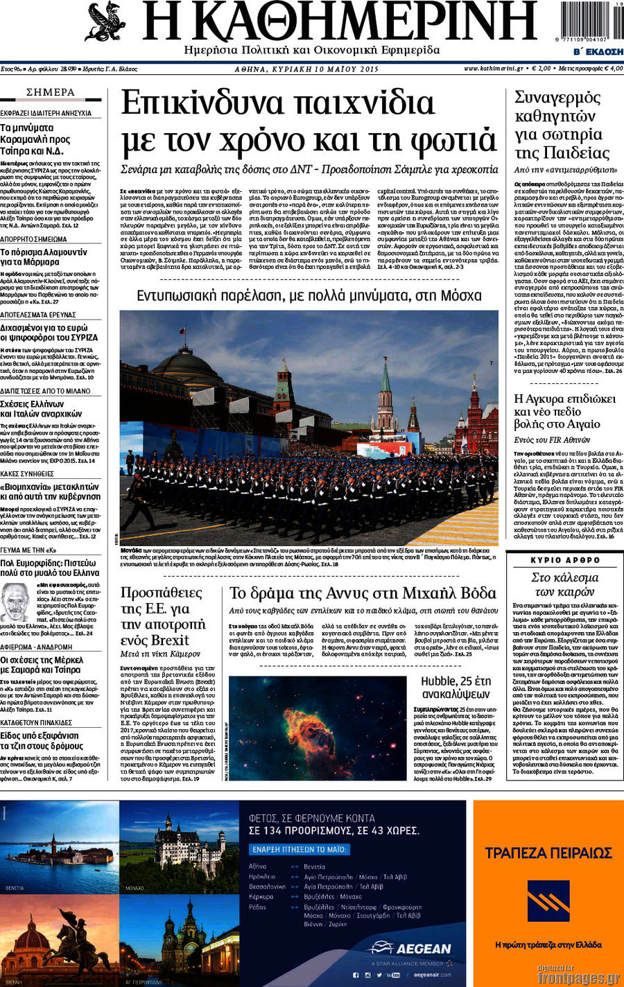 Οι πολιτικές εφημερίδες 10/5/2015 Enikos Newsroom 07:49, Κυριακή 10 Μαΐου 2015 Media Διαβάστε τα σημερινά πρωτοσέλιδα των πολιτικών εφημερίδων. ΕΦΗΜΕΡΙΔΕΣ ΠΟΛΙΤΙΚΕΣ ΕΦΗΜΕΡΙΔΕΣ ΠΡΩΤΟΣΕΛΙΔΑ Μοιράσου το: σχολίασε κι εσύ (0 σχόλια) Ακολουθήστε το enikos.gr στο Google News και μάθετε πρώτοι όλες τις ειδήσεις Δείτε όλες τις τελευταίες ειδήσεις από την Ελλάδα και τον Κόσμο στο enikos.gr Ειδήσεις Ροή Ειδήσεων 50 λεπτά πριν Politico: Πώς ο Τραμπ σε 4 βήματα μπορεί να καταλάβει τη Γροιλανδία – Η στρατηγική που θυμίζει… Πούτιν και το σενάριο της εισβολής 13 λεπτά πριν Μητσοτάκης: Χαιρετίζει τη στήριξη ύψους 45 δισ. ευρώ της Κομισιόν στους αγρότες – «Η φωνή της Ελλάδας στην Ευρώπη ακούγεται πιο δυνατά» 24 λεπτά πριν Φαραντούρης: «Ενώνω τη φωνή μου με την Καρυστιανού, αν αποφασίσω να πορευτώ σε άλλο δρόμο θα ενημερώσω αρμοδίως τον ΣΥΡΙΖΑ» 2 ώρες πριν Συναγερμός για τις νοσηλείες λόγω της γρίπης: Σε επιφυλακή οι υγειονομικές Αρχές μετά την αύξηση των εισαγωγών 2 ώρες πριν Φονικό κύμα ψύχους στην Ευρώπη: 6 νεκροί και χάος στους δρόμους και τα αεροδρόμια 1 ώρα πριν Οι οικονομικές δυσκολίες τελειώνουν για 3 ζώδια – «Έρχονται μεγάλα κέρδη» 3 ώρες πριν Χαμένο αρχαίο χωριό με μυστηριώδες παρελθόν ανακαλύφθηκε εν μέσω κατασκευών: «Συναρπαστικό εύρημα» 2 ώρες πριν Αρνείται να καθαρίσει την καφετιέρα στο γραφείο προκαλώντας αντιδράσεις – «Δεν την χρησιμοποιώ ποτέ» 26 λεπτά πριν Όσοι προσποιούνται ότι είναι υποστηρικτικοί ενώ σε κρίνουν, δείχνουν αυτά τα 8 σημάδια 7 λεπτά πριν Βίντεο-σοκ από κακοποίηση δύο σκύλων: 68χρονος τους είχε δέσει σε αυτοκίνητο και τους έσερνε στον δρόμο 11 λεπτά πριν Νίνο: Το απρόοπτο με το μικρόφωνο την ώρα που τραγουδούσε – Δείτε βίντεο 13 λεπτά πριν Μητσοτάκης: Χαιρετίζει τη στήριξη ύψους 45 δισ. ευρώ της Κομισιόν στους αγρότες – «Η φωνή της Ελλάδας στην Ευρώπη ακούγεται πιο δυνατά» 16 λεπτά πριν Έβρος: 25χρονος μετανάστης εντοπίστηκε πυροβολημένος στη Νέα Βύσσα 21 λεπτά πριν Ακούστε το σχόλιο του Νίκου Χατζηνικολάου 7/1/2026 ENIKOS NETWORK Υπέρταση: 5 πράγματα που είναι καλό να κάνουν οι γυναίκες για καλύτερη αρτηριακή πίεση, σύμφωνα με καρδιολόγους Σφοδρές αντιδράσεις για τις δηλώσεις Βαρουφάκη περί χρήσης ουσιών Ακίνητα: «Έρχεται» η διάταξη για την αναδρομική ενίσχυση με ακόμη ένα ενοίκιο – Πότε θα ψηφιστεί στη Βουλή Επιδόματα μητρότητας 2026: Πότε θα γίνει η πρώτη πληρωμή για το νέο έτος και ποιους θα αφορά Ο Google Assistant θα παραμείνει λίγο περισσότερο για ορισμένους χρήστες Android Τεστ προσωπικότητας: Το βάζο που θα επιλέξετε αποκαλύπτει πώς λύνετε προβλήματα στη ζωή σας περισσότερα 09:45 , Τετάρτη 07 Ιανουαρίου 2026 Εκτός «Πρωινού» ο Γιώργος Λιάγκας: «Είναι ένα μικρό θέμα υγείας» Εκτός εκπομπής βρέθηκε ο Γιώργος Λιάγκας στη σημερινή πρωινή εκπομπή του ΑΝΤ1, «Το Πρωινό», με... 09:00 , Τετάρτη 07 Ιανουαρίου 2026 Αυτή την Κυριακή με τη Realnews: Μυστηριώδης εξαφάνιση – Ένα καθηλωτικό θρίλερ γεμάτο αγωνία από τον διεθνώς αναγνωρισμένο συγγραφέα Rick Mofina Αυτή την Κυριακή με τη Realnews: Μυστηριώδης εξαφάνιση –Ένα καθηλωτικό θρίλερ γεμάτο αγω... 08:00 , Τετάρτη 07 Ιανουαρίου 2026 Την Κυριακή με τη Realnews: Ό,τι και αν αγοράσεις, σκανάρεις και κερδίζεις! Την Κυριακή με τη Realnews: Ό,τι και αν αγοράσεις, σκανάρεις και κερδίζεις! Με το PADU app, το... 07:00 , Τετάρτη 07 Ιανουαρίου 2026 Την Κυριακή με τη Realnews: Δωροεπιταγή 10€ Την Κυριακή με τη Realnews: Δωροεπιταγή 10€ Δωροεπιταγή αξίας 10€ για αγορές άνω των 60€ από τ... ΤΕΛΕΥΤΑΙΕΣ ΕΙΔΗΣΕΙΣ 7 λεπτά πρι