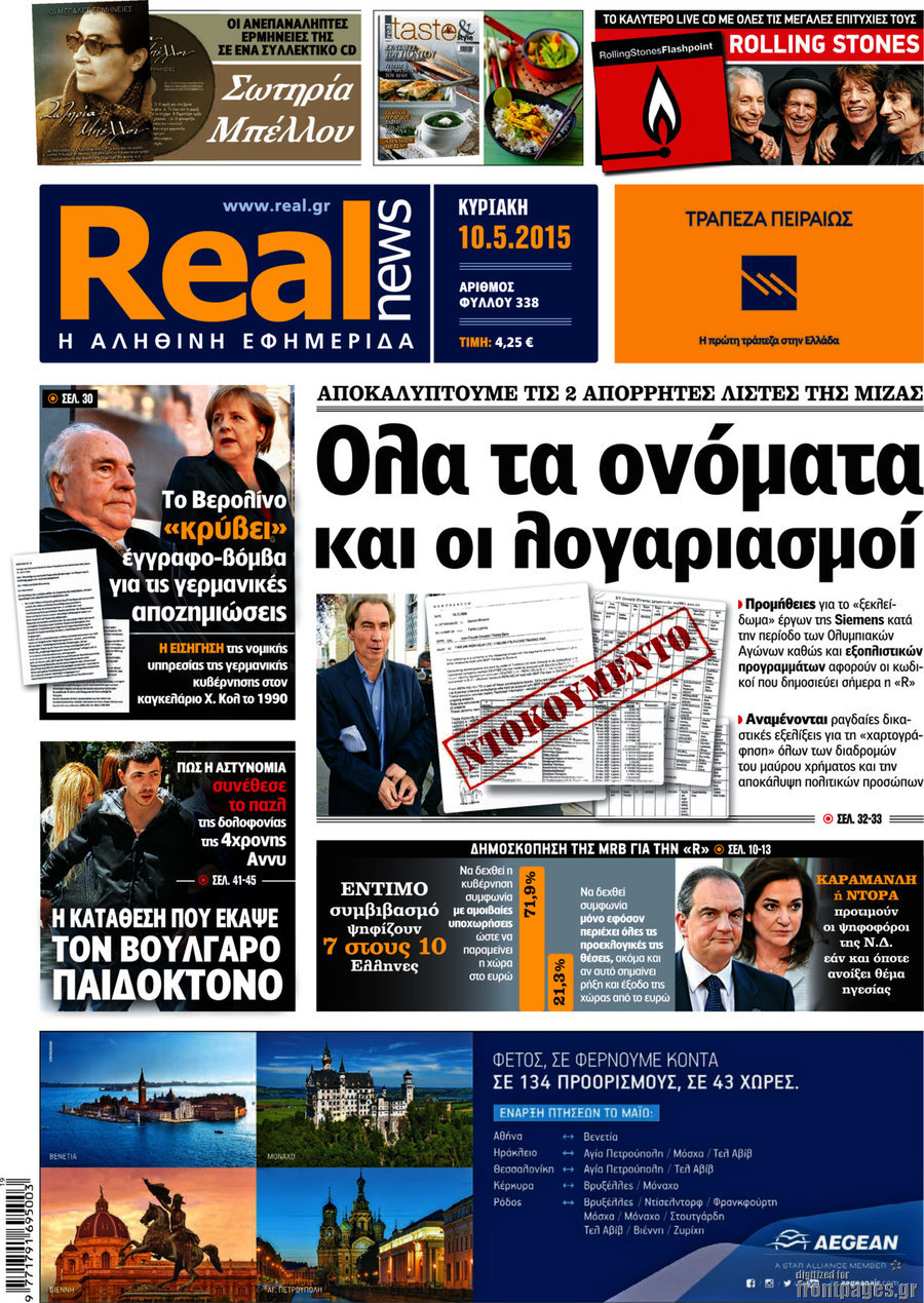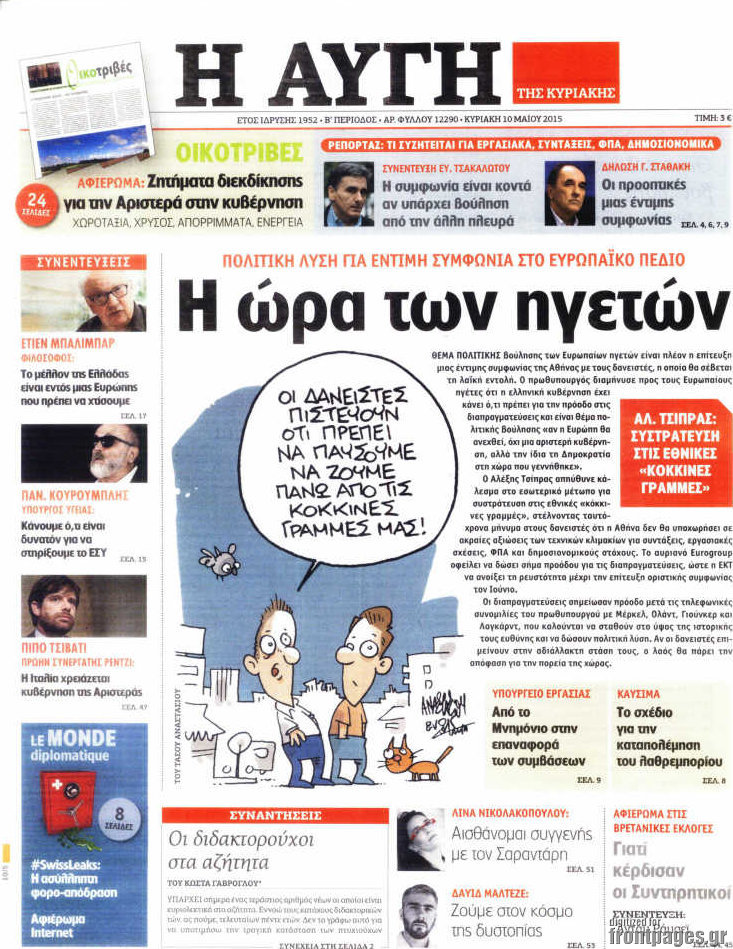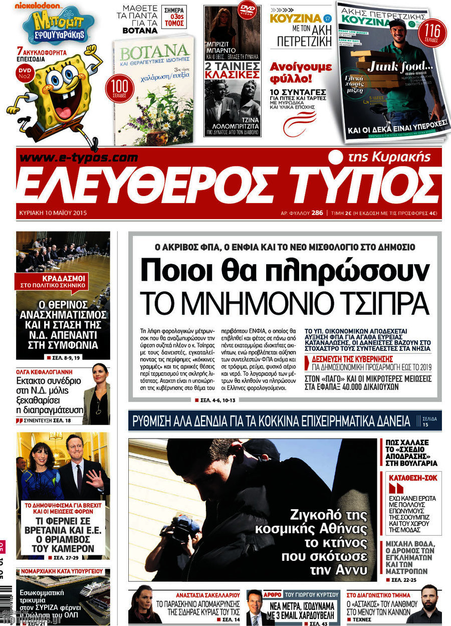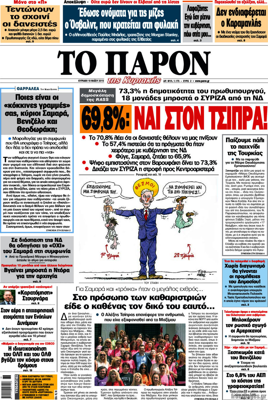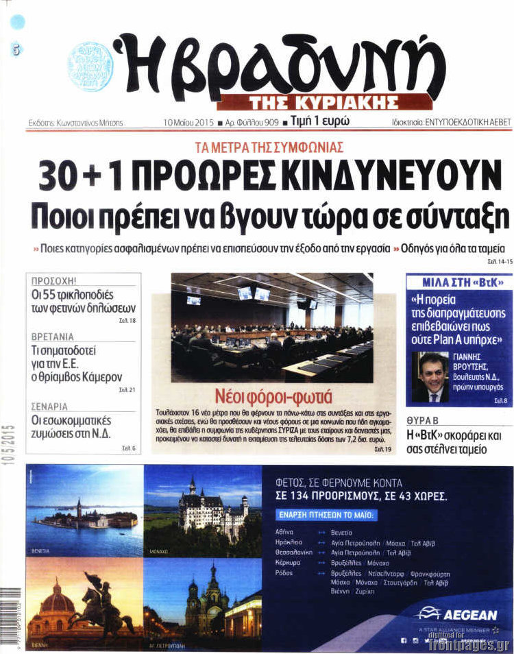 Οι πολιτικές εφημερίδες 10/5/2015 Enikos Newsroom 07:49, Κυριακή 10 Μαΐου 2015 Media Διαβάστε τα σημερινά πρωτοσέλιδα των πολιτικών εφημερίδων. ΕΦΗΜΕΡΙΔΕΣ ΠΟΛΙΤΙΚΕΣ ΕΦΗΜΕΡΙΔΕΣ ΠΡΩΤΟΣΕΛΙΔΑ Μοιράσου το: σχολίασε κι εσύ (0 σχόλια) Ακολουθήστε το enikos.gr στο Google News και μάθετε πρώτοι όλες τις ειδήσεις Δείτε όλες τις τελευταίες ειδήσεις από την Ελλάδα και τον Κόσμο στο enikos.gr Ειδήσεις Ροή Ειδήσεων 5 ώρες πριν Θετικοί οι αγρότες στη νέα πρόσκληση για διάλογο με τον Πρωθυπουργό – Αποφασίζουν την Παρασκευή εάν θα «σπάσουν» τον 48ωρο αποκλεισμό 5 ώρες πριν Πάτρα: Την Παρασκευή οι απολογίες των 4 εμπλεκομένων για τον θανάσιμο ξυλοδαρμό του 30χρονου – Το ξέσπασμα της μητέρας του θύματος και το βίντεο-σοκ 5 ώρες πριν Μινεάπολη: Η εκτέλεση της 37χρονης Ρενέ Γκουντ αποκαλύπτει δύο εντελώς αντίθετες διαχωριστικές γραμμές στην αμερικανική πολιτική 7 ώρες πριν Κύπρος: Πολιτικές αντιδράσεις μετά την διαρροή του βίντεο με «χρηματοδοτήσεις» και «επενδυτές» – Κυβέρνηση: Υβριδική επίθεση με κακόβουλο μοντάζ 2 ώρες πριν Χρήστος Πολίτης: Το πραγματικό του όνομα, η καριέρα και το… φαινόμενο «Γιάγκος Δράκος» 7 ώρες πριν Αριθμολογία 2026: Οι άτυχοι μήνες της χρονιάς, με βάση την ημερομηνία γέννησής σας 8 ώρες πριν Περιορίστε τη σκόνη στο σπίτι σας με μια απλή και οικονομική λύση – Ο ρόλος της υγρασίας 6 ώρες πριν Ύπνος: Δυσκολεύεστε να κοιμηθείτε; Γιατρός μοιράζεται ένα «μυστικό» συστατικό που βοηθάει στη χαλάρωση 5 ώρες πριν Ανακαλύφθηκε εντυπωσιακός τάφος 1.300 ετών – Τα τεχνουργήματα που περιείχε ρίχνουν φως στη ζωή των ελίτ της δυναστείας Τανγκ 28 λεπτά πριν Eurovision 2026: Η Tianora που διαγωνιστεί στον Εθνικό τελικό, αποκαλύπτει – «Έχω σπουδάσει βυζαντινή μουσική, το τραγούδι που έστειλα έχει μέσα το στοιχείο της Ελλάδας» 44 λεπτά πριν Συρία: Έκκληση του απεσταλμένου των ΗΠΑ για αποκλιμάκωση των συγκρούσεων στο Χαλέπι 58 λεπτά πριν Ιωάννα Μαλέσκου: «Δεν θα επιτρέψω σε κανέναν να εισβάλλει με το έτσι θέλω στο σπίτι μου και στη ζωή μου» 1 ώρα πριν Μάκης Δελαπόρτας: Ξέρω πράγματα για τη Ρένα Παγκράτη που δεν τα ‘χω πει ποτέ 1 ώρα πριν Φιλιππίνες: Ένας νεκρός και 27 αγνοούμενοι από κατάρρευση εγκατάστασης απορριμμάτων ENIKOS NETWORK Γιατί κάποιοι κρεμάνε φύλλα δάφνης στην πόρτα της κρεβατοκάμαρας; Το μυστικό για καλύτερο ύπνο ΠΟΕΔΗΝ: Σήμα κινδύνου εκπέμπει η Πνευμονολογική Κλινική του Νοσοκομείου Άρτας ΣΑΤΑ: 48ωρη απεργία για τις 13 και 14 Ιανουαρίου αποφάσισαν οι αυτοκινητιστές των ταξί στην Αττική ΔΥΠΑ: Αρχίζει η υποβολή προγραμμάτων κατάρτισης για άνεργους δικαιούχους του Ελάχιστου Εγγυημένου Εισοδήματος – Όλες οι λεπ... Ο Google Assistant θα παραμείνει λίγο περισσότερο για ορισμένους χρήστες Android Τεστ προσωπικότητας: Το βάζο που θα επιλέξετε αποκαλύπτει πώς λύνετε προβλήματα στη ζωή σας περισσότερα 18:15 , Πέμπτη 08 Ιανουαρίου 2026 Άγιος Έρωτας: Ο πατήρ Νικόλαος σώζει τη μικρή Ελευθερία και ο Παύλος παθαίνει καρδιακή προσβολή – Καθηλώνουν τα επόμενα επεισόδια Η αγαπημένη δραματική σειρά “Άγιος ‘Ερωτας” επιστρέφει στις οθόνες μας με νέ... 17:43 , Πέμπτη 08 Ιανουαρίου 2026 Οι Αθώοι: Η μουσική της μεγάλης παραγωγής του Mega – Νέο lyrics video Η σειρά εποχής, που έχει ήδη κλέψει τις εντυπώσεις από τις πρώτες κιόλας εικόνες των τρέιλερ π... 17:04 , Πέμπτη 08 Ιανουαρίου 2026 Νέα δυναμική διεθνής επένδυση του Θοδωρή Κυριακού στις ΗΠΑ Ο Πρόεδρος του Ομίλου Antenna, Θοδωρής Κυριακού, συνεχίζει να ενισχύει δυναμικά την παγκόσμια ... 12:40 , Πέμπτη 08 