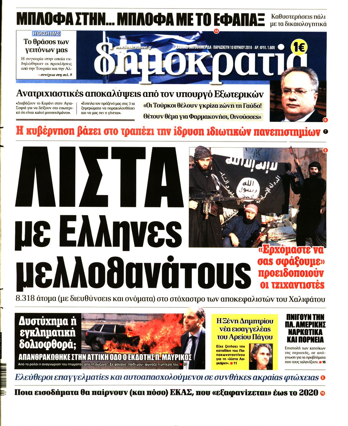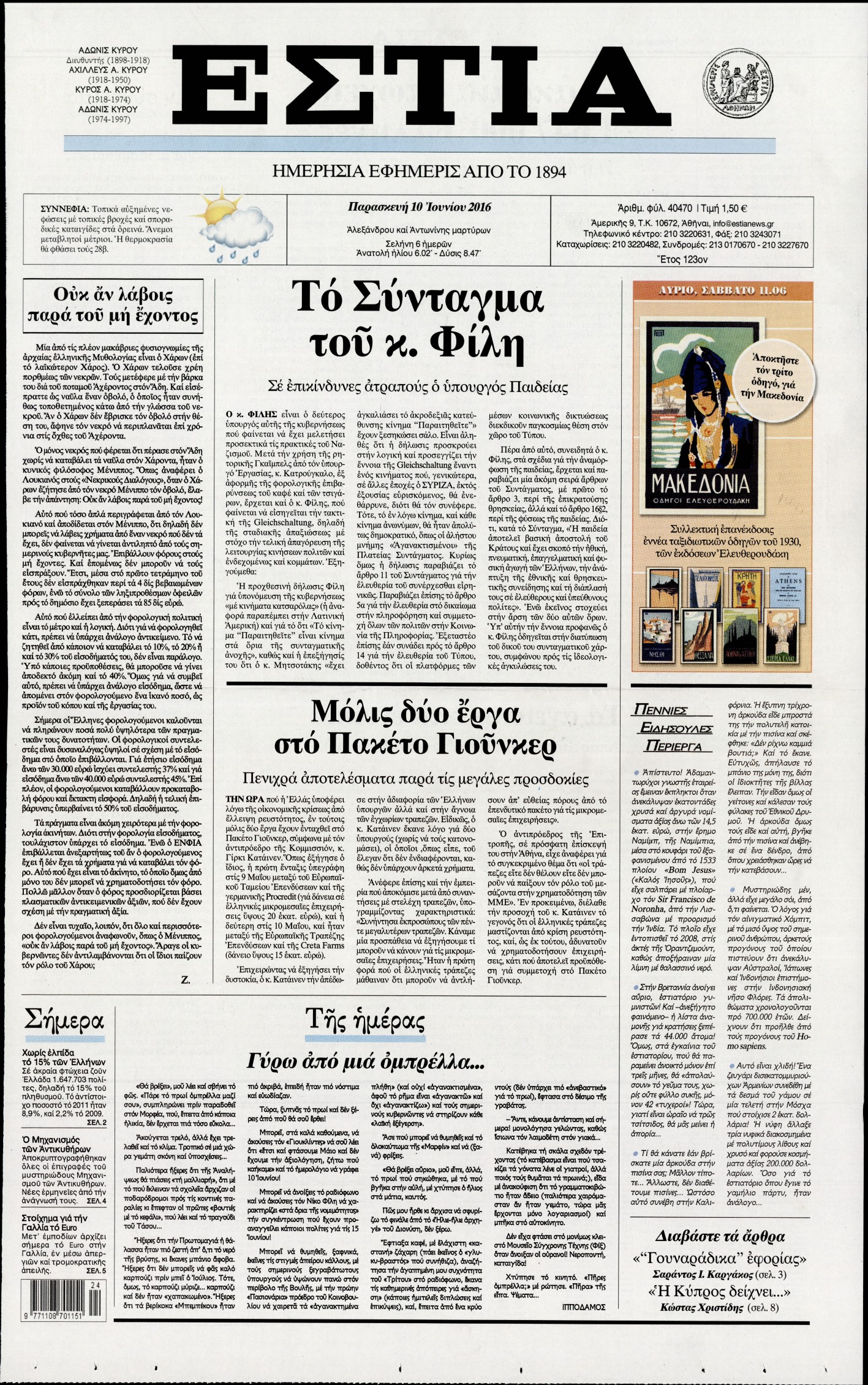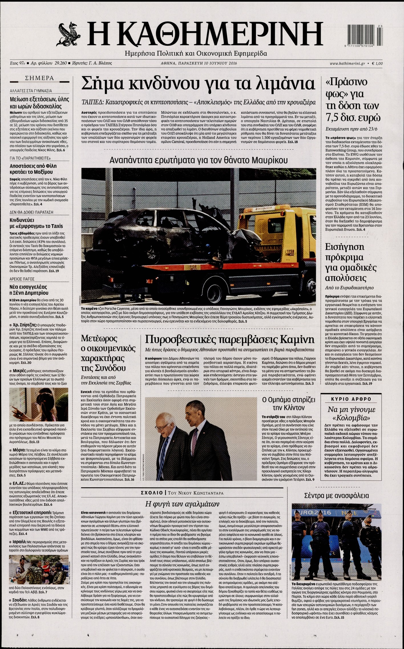 Οι πολιτικές εφημερίδες 10/6/2016 Enikos Newsroom 05:21, Παρασκευή 10 Ιουνίου 2016 Media Διαβάστε τα σημερινά πρωτοσέλιδα των πολιτικών εφημερίδων: ΠΟΛΙΤΙΚΕΣ ΕΦΗΜΕΡΙΔΕΣ Μοιράσου το: σχολίασε κι εσύ (0 σχόλια) Ακολουθήστε το enikos.gr στο Google News και μάθετε πρώτοι όλες τις ειδήσεις Δείτε όλες τις τελευταίες ειδήσεις από την Ελλάδα και τον Κόσμο στο enikos.gr Ειδήσεις Ροή Ειδήσεων 8 ώρες πριν Χριστούγεννα στα μπλόκα: Επιμένουν στις κινητοποιήσεις τους οι αγρότες – Ανοίγουν τα διόδια το Σαββατοκύριακο 9 ώρες πριν Ουκρανία: Η άνευ προηγουμένου επίθεση σε ρωσικό τάνκερ στη Μεσόγειο και το μήνυμα προς στον Πούτιν – Το «μακρύ χέρι» του Κιέβου 8 ώρες πριν Πούτιν: Τα μηνύματα σε Ευρώπη και ΝΑΤΟ από το μαραθώνιο «σόου» του – Η απαίτηση για «σεβασμό» και η ειρήνη «με τους όρους» της Μόσχας 7 ώρες πριν ΗΠΑ: Η κυβέρνηση του Ντόναλντ Τραμπ άρχισε να δημοσιοποιεί τα αρχεία Έπσταϊν 7 ώρες πριν Άνω Λιόσια: Πυροβολισμοί σε επιχείρηση με χαλιά – Εντοπίστηκαν 10 κάλυκες 58 λεπτά πριν Αυγά: Πόσα μπορείτε να τρώτε την ημέρα με ασφάλεια για μέγιστη πρόσληψη πρωτεΐνης 1 ώρα πριν Τα ζώδια σήμερα, Σάββατο 20 Δεκεμβρίου: Παρθένοι, το σύμπαν σας δίνει το κλειδί 8 ώρες πριν Ανακαλύφθηκαν αρχαία χρυσά νομίσματα 2.200 ετών που απεικονίζουν τον θεό Απόλλωνα – Η άγνωστη σύνδεση με τον Φίλιππο Β΄ της Μακεδονίας 9 ώρες πριν Ύπνος: Μια κρυφή κατάσταση του εγκεφάλου πριν από τον ύπνο μπορεί να είναι το “κλειδί” για υψηλή ευφυΐα και δημιουργικότητα 4 λεπτά πριν Αναβολή συμφωνίας ΕΕ-Mercosur: Ο χρόνος «δεν είναι απεριόριστος» προειδοποιεί η Παραγουάη 18 λεπτά πριν Κίριλ Ντμίτριεφ: Στις ΗΠΑ ο απεσταλμένος της Ρωσίας για συνομιλίες με τους ομολόγους του, Γουίτκοφ και Κούσνερ 26 λεπτά πριν ΔΕΔΔΗΕ: Διακοπές ρεύματος σήμερα (20/12) στην Αθήνα και σε άλλες 7 περιοχές της Αττικής 34 λεπτά πριν Κολομβία: Είκοσι χρόνια κάθειρξη σε πρώην ανώτερο αξιωματικό για 72 εκτελέσεις αμάχων 42 λεπτά πριν Οπτική ψευδαίσθηση: Μόνο αν είσαι ο Σέρλοκ Χολμς θα βρεις τον αριθμό «87» σε 7 δευτερόλεπτα ENIKOS NETWORK Πρέπει να αποδέχεστε ή να απορρίπτετε όλα τα cookies; Ένας ειδικός εξηγεί Η αγαπημένη λιχουδιά των πόνι που μπορεί να ενισχύσει όραση, εγκέφαλο και ανοσοποιητικό Αναστολή μέτρων αναγκαστικής εκτέλεσης για κτηνοτρόφους που πλήττονται από την ευλογιά των αιγοπροβάτων Πλήρης επάρκεια προϊόντων στις λαϊκές της Αττικής, παρά τις αγροτικές κινητοποιήσεις – Τι απαντούν οι πωλητές Χαρτογραφώντας το «σημείο χωρίς επιστροφή»: Για πρώτη φορά αποκαλύπτεται με λεπτομέρεια το ακανθώδες όριο της ατμόσφαιρας τ... Η Google καταργεί τη λειτουργία «dark web report» – Πώς θα μπορούν οι χρήστες να διαγράφουν τα δεδομένα τους περισσότερα 05:48 , Σάββατο 20 Δεκεμβρίου 2025 Οι οικονομικές εφημερίδες 20/12/2025 Διαβάστε τα πρωτοσέλιδα από τις οικονομικές εφημερίδες, σήμερα 20/12/2025. 05:43 , Σάββατο 20 Δεκεμβρίου 2025 Οι αθλητικές εφημερίδες 20/12/2025 Διαβάστε τα πρωτοσέλιδα από τις αθλητικές εφημερίδες, σήμερα 20/12/2025. 05:38 , Σάββατο 20 Δεκεμβρίου 2025 Οι πολιτικές εφημερίδες 20/12/2025 Διαβάστε τα πρωτοσέλιδα από τις πολιτικές εφημερίδες, σήμερα 20/12/2025. 04:20 , Σάββατο 20 Δεκεμβρίου 2025 Αγγελική Νικολούλη: Τα συλλυπητήρια για την απώλεια της Ειρήνης Μαρινάκη Τα συλληπητήρια στον πρόεδρο του Mega, τον Βαγγέλη Μαρινάκη, για την απώλεια της μητέρας του Ε... ΤΕΛΕΥΤΑΙΕΣ ΕΙΔΗΣΕΙΣ 18 λεπτά πριν Κίριλ Ντμίτριεφ: Στις ΗΠΑ ο απεσταλμένος της Ρωσίας... 26 λεπτά πριν ΔΕΔΔΗΕ: Διακοπές ρεύματος σήμερα (20/12) στην Αθήνα και... 34 λεπτά 