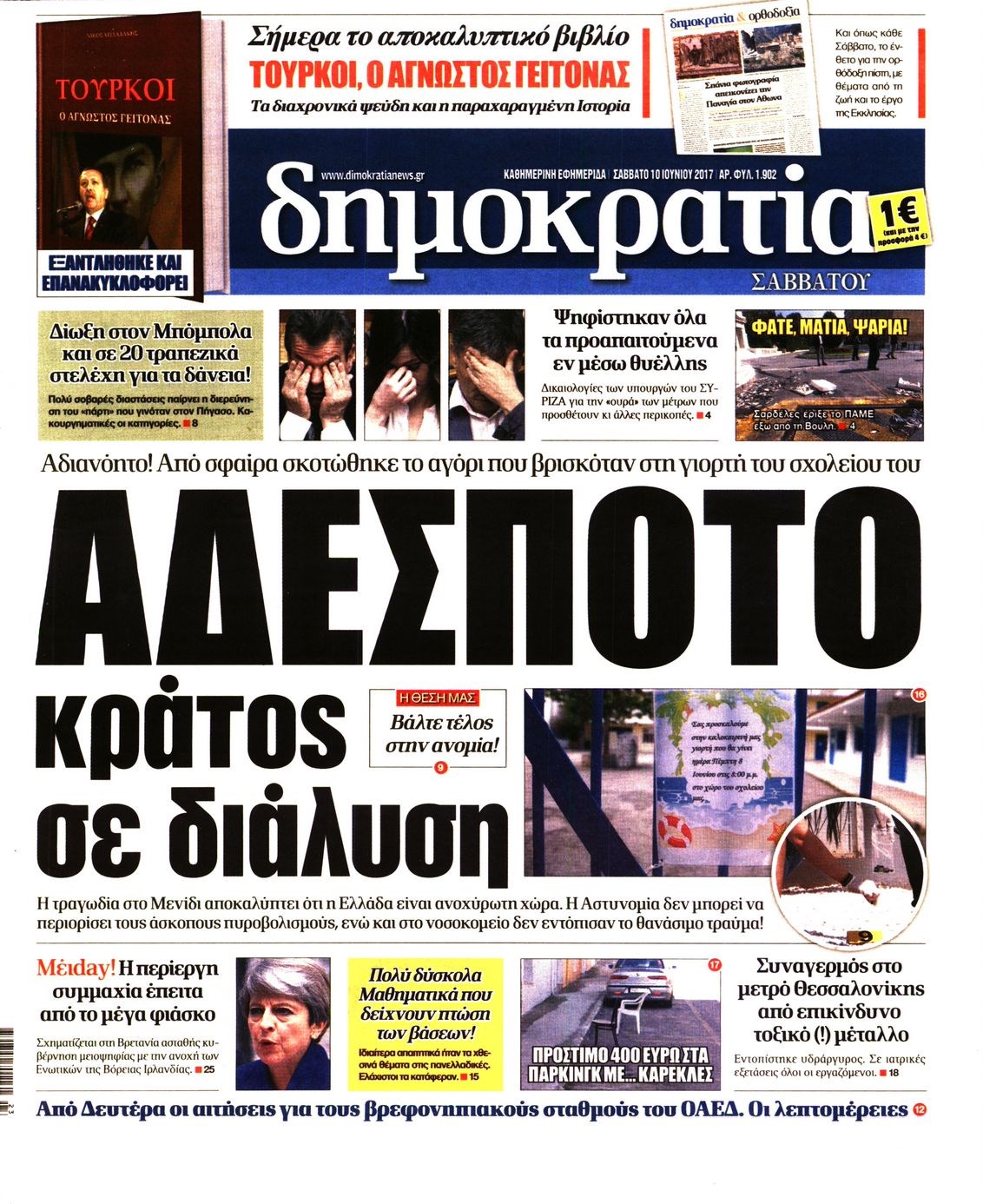 Οι πολιτικές εφημερίδες 10/6/2017 Enikos Newsroom 07:11, Σάββατο 10 Ιουνίου 2017 Media Διαβάστε τα σημερινά πρωτοσέλιδα των πολιτικών εφημερίδων: ΠΟΛΙΤΙΚΕΣ ΕΦΗΜΕΡΙΔΕΣ ΠΡΩΤΟΣΕΛΙΔΑ Μοιράσου το: σχολίασε κι εσύ (0 σχόλια) Ακολουθήστε το enikos.gr στο Google News και μάθετε πρώτοι όλες τις ειδήσεις Δείτε όλες τις τελευταίες ειδήσεις από την Ελλάδα και τον Κόσμο στο enikos.gr Ειδήσεις Ροή Ειδήσεων 3 ώρες πριν Πώς δρούσε το κύκλωμα που διακινούσε ναρκωτικά σε σχολεία – Υπέβαλαν σε βασανιστήρια όσους δεν τηρούσαν τους «κανόνες πειθαρχίας» 4 ώρες πριν Αγρότες: Γιορτές στα μπλόκα με ανοιχτά διόδια – Δικογραφία στα Ιωάννινα για το σήκωμα των μπαρών 3 ώρες πριν Ζελένσκι: Οι Αμερικανοί πρότειναν συνάντηση Ουκρανίας, ΗΠΑ, Ρωσίας στο Μαϊάμι 2 ώρες πριν Τραμπ: Πώς περνάει τις γιορτές των Χριστουγέννων – Τα δώρα που κάνει στα εγγόνια του 2 ώρες πριν Μικαέλα Μπέντχαους: Ο πρώτος άνθρωπος σε αναπηρικό αμαξίδιο που ταξίδεψε στο διάστημα – ΒΙΝΤΕΟ 4 ώρες πριν Η τύχη χαμογελά σε 3 ζώδια έως τις 28 Δεκεμβρίου – «Προσέξτε τις επιλογές σας και η επιμονή σας θα ανταμειφθεί» 5 ώρες πριν Μία ανεκμετάλλευτη πηγή θα μπορούσε να προσφέρει ανεξάντλητη ενέργεια – Οι επιστήμονες ίσως γνωρίζουν πώς να την ξεκλειδώσουν 1 ώρα πριν Μήπως οι γιορτές σας δεν είναι τόσο τέλειες; 7 χριστουγεννιάτικες συνήθειες που μαρτυρούν ότι μια οικογένεια είναι δυσλειτουργική 11 ώρες πριν Enerwave: Το νέο «ρεύμα» στη λιανική ενέργειας που αλλάζει την εμπειρία του καταναλωτή 10 λεπτά πριν Πώς να απαλλαγείτε από τη μυρωδιά του τηγανητού φαγητού: Το μυστικό βρίσκεται στην κουζίνα σας 15 λεπτά πριν Βλαχοδήμος: «Νιώθω καλά που είμαι σημαντικός για τη Σεβίλλη» – Τι είπε για τη Ρεάλ Μαδρίτης και τον Μπαπέ 24 λεπτά πριν Πρίγκιπας Ουίλιαμ: Μαγείρεψε παρέα με τον πρίγκιπα Τζορτζ για τους αστέγους – ΦΩΤΟ και ΒΙΝΤΕΟ 33 λεπτά πριν Επιχείρηση της Τροχαίας κατά της παράνομης στάθμευσης στο Νέο Ψυχικό – Τέσσερις συλλήψεις 42 λεπτά πριν Κυριάκος Μητσοτάκης: Στην Ιερουσαλήμ την Τρίτη ο Πρωθυπουργός για την τριμερή Ελλάδας, Κύπρου, Ισραήλ – Θα συναντηθεί και με τον Αμπάς ENIKOS NETWORK Οι γυναίκες αποκαλύπτουν το πιο ελκυστικό πράγμα που μπορεί να κάνει ένας άνδρας Ομορφιά και αντιγήρανση: Ειδικοί μιλούν για συσκευές περιποίησης του δέρματος Θεοδωρικάκος: Εθνική στρατηγική για τους ημιαγωγούς – Πρώτο βήμα η χρηματοδότηση του πρώτου Κέντρου Ικανοτήτων, με 3,63 εκα... Επίδομα θέρμανσης: Μπαίνει η πρώτη δόση την Τρίτη – Οι επόμενες πληρωμές Χαρτογραφώντας το «σημείο χωρίς επιστροφή»: Για πρώτη φορά αποκαλύπτεται με λεπτομέρεια το ακανθώδες όριο της ατμόσφαιρας τ... Η Google καταργεί τη λειτουργία «dark web report» – Πώς θα μπορούν οι χρήστες να διαγράφουν τα δεδομένα τους περισσότερα 18:19 , Σάββατο 20 Δεκεμβρίου 2025 HOTΕΛ ΕΛVIRA: Η Ελβίρα μαθαίνει πως ο Χάρι μένει κρυφά στο ξενοδοχείο του Παντελή Συνεχίζονται οι εκλογές για πρόεδρο, στο νέο επεισόδιο της κωμικής σειράς του MEGA, HOTΕΛ ΕΛVI... 14:04 , Σάββατο 20 Δεκεμβρίου 2025 Η Realnews αυτής της Κυριακής (21/12/2025) Με τίτλο: «Ασπίδα προστασίας για την Ελλάδα» κυκλοφορεί, αυτήν την Κυριακή, η Realnews. Σημαντ... 12:53 , Σάββατο 20 Δεκεμβρίου 2025 Να μ’ αγαπάς: Το παρελθόν έρχεται στο φως – Καταιγιστικές εξελίξεις στα τελευταία επεισόδια του 2025 Ο Άγγελος αποκαλύπτεται, η Φωτεινή ανησυχεί για τον Λευτέρη και η Ζωή έρχεται αντιμέτωπη με το... 11:41 , Σάββατο 20 Δεκεμβρίου 2025 «Η αγάπη δεν χάνεται ποτέ»: Η μικρού μήκους ταινία κινουμένων σχεδίων που θέτει ερωτή