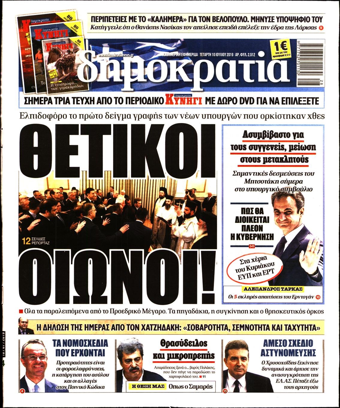 Οι πολιτικές εφημερίδες 10/7/19 Διονύσης Νίκκας 06:17, Τετάρτη 10 Ιουλίου 2019 Media Διαβάστε τα πρωτοσέλιδα των πολιτικών εφημερίδων… ΕΦΗΜΕΡΙΔΩΝ ΠΟΛΙΤΙΚΩΝ ΠΡΩΤΟΣΕΛΙΔΑ Μοιράσου το: σχολίασε κι εσύ (0 σχόλια) Ακολουθήστε το enikos.gr στο Google News και μάθετε πρώτοι όλες τις ειδήσεις Δείτε όλες τις τελευταίες ειδήσεις από την Ελλάδα και τον Κόσμο στο enikos.gr Ειδήσεις Ροή Ειδήσεων 2 ώρες πριν Τσιάρας: Καλούμε άμεσα τους εκπροσώπους των αγροτών σε ουσιαστικό διάλογο – Υπάρχουν περιθώρια, η κοινωνία περιμένει υπευθυνότητα 9 λεπτά πριν Ρομπ και Μισέλ Ράινερ: Συνελήφθη ο γιος τους ως ύποπτος για την δολοφονία τους 3 λεπτά πριν Σίδνεϊ: Δεύτερος ήρωας κλωτσάει το όπλο του δράστη πριν τον πυροβολήσουν οι αστυνομικοί και τον χτυπήσουν πολίτες κατά λάθος 2 ώρες πριν Κυψέλη: Για πρώτη ημέρα βρισκόταν στο σχολείο η 16χρονη που επιτέθηκε με μαχαίρι στην 14χρονη – Τι αναφέρουν μαρτυρίες μαθητών για το επεισόδιο 3 ώρες πριν Λάρισα: Αναβλήθηκε για τον Οκτώβριο του 2026 η δίκη δύο αγροτών του μπλόκου της Νίκαιας 2 ώρες πριν Τα 3 ζώδια που θα έχουν τύχη «βουνό» έως τις 21 Δεκεμβρίου – «Η ανατροπή που περιμένετε πλησιάζει» 6 ώρες πριν Μακροζωία: 55χρονος που ισχυρίζεται ότι βιολογικά είναι 20 ετών μοιράζεται μια απλή συμβουλή για υγιή εγκέφαλο 7 ώρες πριν Οι 8 φράσεις που δίνουν αμέσως την εντύπωση πως είστε δύσκολος άνθρωπος 9 ώρες πριν Κληρονόμησε 2,8 εκατ. ευρώ και φοβάται ότι οι άνδρες θα την πλησιάζουν για τα λεφτά – «Μήπως καλύτερα να το κρατήσω μυστικό;» 3 λεπτά πριν Σίδνεϊ: Δεύτερος ήρωας κλωτσάει το όπλο του δράστη πριν τον πυροβολήσουν οι αστυνομικοί και τον χτυπήσουν πολίτες κατά λάθος 9 λεπτά πριν Ρομπ και Μισέλ Ράινερ: Συνελήφθη ο γιος τους ως ύποπτος για την δολοφονία τους 14 λεπτά πριν Eurovision 2026: 35 χώρες θα συμμετάσχουν στον διαγωνισμό στη Βιέννη – Οι 5 που απέχουν και οι 3 που επιστρέφουν 20 λεπτά πριν Επιχείρηση «Νυχτερινός Ποιμήν»: Εντοπίστηκαν 10 ανήλικοι που είχαν καταναλώσει αλκοόλ σε κατάστημα στον Πειραιά – Συνελήφθη ο υπεύθυνος 25 λεπτά πριν Γερμανία: Ολοκληρώθηκαν οι συνομιλίες ΗΠΑ-Ουκρανίας – Άγνωστο εάν οι Αμερικανοί διαπραγματευτές θα συμμετάσχουν στη συνάντηση με τους Ευρωπαίους ηγέτες ENIKOS NETWORK Στο νοσοκομείο 15χρονη μαθήτρια μετά από μαχαίρωμα μέσα σε γυμνάσιο της Αθήνας Οι 9 κορυφαίες ιατρικές έρευνες για το 2025 που αλλάζουν το τοπίο της υγείας Γιορτές: Έτσι θα αντιμετωπίσετε το οικονομικό άγχος και θα αποφύγετε τον υπερκαταναλωτισμό ΕΛΣΤΑΤ: Μείωση 6,4% στον αριθμό των κενών θέσεων εργασίας στο σύνολο της οικονομίας κατά το γ’ τρίμηνο 2025 – Δείτε αναλυτι... Σύγχρονος Νοστράδαμος: Προειδοποιεί για «μεγάλο γεγονός» τους επόμενους μήνες που θα συγκλονίσει τη Βρετανία και τον κόσμο Τεστ παρατηρητικότητας: Μπορείτε να βρείτε τις 3 διαφορές στις εικόνες με έναν πιγκουίνο σε 14 δευτερόλεπτα περισσότερα 15:31 , Δευτέρα 15 Δεκεμβρίου 2025 Συνέδριο «Ελληνικός Τουρισμός 2025, Μια εθνική υπόθεση!» – Το στοίχημα του ανθρώπινου δυναμικού στον τουρισμό Τον κρίσιμο ρόλο της εκπαίδευσης, της κατάρτισης και της επάρκειας ανθρώπινου δυναμικού για τη... 14:57 , Δευτέρα 15 Δεκεμβρίου 2025 Συνέδριο «Ελληνικός Τουρισμός 2025, Μια εθνική υπόθεση!» – Σταύρος Αρναουτάκης: Βασικό θέμα για την ανάπτυξη κάθε Περιφέρειας είναι οι υποδομές Το ετήσιο συνέδριο «Ελληνικός Τουρισμός 2025, Μια εθνική υπόθεση!» συνδιοργανώνουν η Next is N... 14:27 , Δευτέρα 15 Δεκεμβρίου 2025 Να μ’ αγαπάς: Η Φωτεινή αποφασίζει να δώσει τέ
