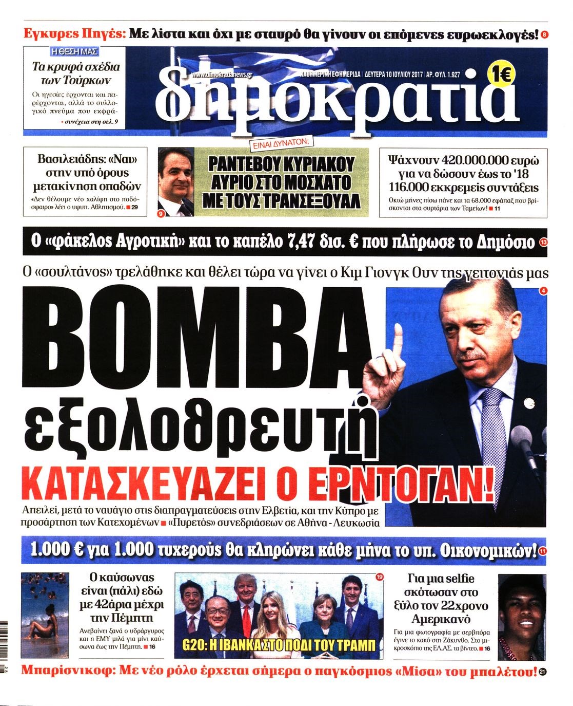 Οι πολιτικές εφημερίδες 10/7/2017 Enikos Newsroom 07:28, Δευτέρα 10 Ιουλίου 2017 Media Διαβάστε τα σημερινά πρωτοσέλιδα των πολιτικών εφημερίδων: ΠΟΛΙΤΙΚΕΣ ΕΦΗΜΕΡΙΔΕΣ ΠΡΩΤΟΣΕΛΙΔΑ Μοιράσου το: σχολίασε κι εσύ (0 σχόλια) Ακολουθήστε το enikos.gr στο Google News και μάθετε πρώτοι όλες τις ειδήσεις Δείτε όλες τις τελευταίες ειδήσεις από την Ελλάδα και τον Κόσμο στο enikos.gr Ειδήσεις Ροή Ειδήσεων 2 ώρες πριν Αγρότες: Πολύωροι αποκλεισμοί στα τελωνεία Προμαχώνα, Εξοχής, Ευζώνων και Νίκης – Κλείνουν τον κόμβο Φιλώτα οι παραγωγοί στη Δυτική Μακεδονία 2 ώρες πριν Νίκος Παππάς: Ζητώ συγγνώμη για αυτό το επεισόδιο – Δεν τον γρονθοκόπησα 4 ώρες πριν Ευρωπαϊκό Συμβούλιο: Όλες οι λεπτομέρειες για το δάνειο των 90 δισ. ευρώ στην Ουκρανία – Τα συμπεράσματα της Συνόδου Κορυφής 3 ώρες πριν Αίγιο: 22χρονη κατήγγειλε ότι έπεσε θύμα βιασμού και ληστείας από συγγενικά της πρόσωπα 2 ώρες πριν Τρομακτικό βίντεο: Η στιγμή της έκρηξης στο τζετ που μετέφερε τον οδηγό του NASCAR, Γκρεγκ Μπιφλ και την οικογένειά του 2 ώρες πριν Αλλαγή σελίδας για 3 ζώδια – «Μία δύσκολη περίοδος φτάνει στο τέλος της» 2 ημέρες πριν 20 χρόνια τα Χριστούγεννα ξεκινούν στα Public με μεγάλη ποικιλία σε δώρα! 3 ώρες πριν Ο σύζυγός της συμπεριφέρεται όπως το παιδί τους – «Χρησιμοποιεί αστείες δικαιολογίες για να μην κάνει δουλειές και να ξοδεύει λεφτά» 1 ώρα πριν Γεμάτος νεροχύτης; 5 σοβαρές ευθύνες που «φοβίζουν» όσους αφήνουν άπλυτα πιάτα 4 λεπτά πριν ΕΥΔΑΠ: 17 ερωτήσεις και απαντήσεις για τις αλλαγές στα τιμολόγια του νερού 10 λεπτά πριν Οδοντιατρικός Σύλλογος Αττικής: Προσοχή στις παραπλανητικές διαφημίσεις οδοντικών εμφυτευμάτων 17 λεπτά πριν Αλεξάνδρα Νίκα για Κωνσταντίνο Αργυρό: «Τον συμβουλεύομαι για όλα» – Πώς θα περάσουν τις γιορτές 23 λεπτά πριν Κρήτη: Στο Ρέθυμνο μεταφέρονται οι εκατοντάδες μετανάστες που διασώθηκαν ανοιχτά της Γαύδου 28 λεπτά πριν Ειδικός μοιράζεται 6 κόλπα για να διατηρείστε σε φόρμα με πάνω από 40 ώρες εργασίας την εβδομάδα: «Προπονηθείτε πριν από τη δουλειά, όχι μετά» ENIKOS NETWORK Κίνδυνος παραπλάνησης από διαφημίσεις οδοντικών εμφυτευμάτων Καρκίνος του πνεύμονα: Έως 8.000 ζωές μπορούν να σωθούν με την έγκαιρη διάγνωση ΕΥΔΑΠ: Στο τραπέζι αλλαγές στους λογαριασμούς του νερού – Τι θα ισχύσει για ευάλωτα νοικοκυριά και επιχειρήσεις Επιδόματα και παροχές από τον ΟΠΕΚΑ: Τι πιστώνεται σήμερα στους τραπεζικούς λογαριασμούς Χαρτογραφώντας το «σημείο χωρίς επιστροφή»: Για πρώτη φορά αποκαλύπτεται με λεπτομέρεια το ακανθώδες όριο της ατμόσφαιρας τ... Η Google καταργεί τη λειτουργία «dark web report» – Πώς θα μπορούν οι χρήστες να διαγράφουν τα δεδομένα τους περισσότερα 08:00 , Παρασκευή 19 Δεκεμβρίου 2025 Την Κυριακή με τη Realnews: Δωροεπιταγή 10€ Δωροεπιταγή αξίας 10€ για αγορές άνω των 60€ από τα πολυκαταστήματα FactoryOutlet H προσφορά ι... 05:48 , Παρασκευή 19 Δεκεμβρίου 2025 Οι οικονομικές εφημερίδες 19/12/2025 Διαβάστε τα πρωτοσέλιδα από τις οικονομικές εφημερίδες, σήμερα 19/12/2025. 05:43 , Παρασκευή 19 Δεκεμβρίου 2025 Οι αθλητικές εφημερίδες 19/12/2025 Διαβάστε τα πρωτοσέλιδα από τις αθλητικές εφημερίδες, σήμερα 19/12/2025. 05:38 , Παρασκευή 19 Δεκεμβρίου 2025 Οι πολιτικές εφημερίδες 19/12/2025 Διαβάστε τα πρωτοσέλιδα από τις πολιτικές εφημερίδες, σήμερα 19/12/2025. ΤΕΛΕΥΤΑΙΕΣ ΕΙΔΗΣΕΙΣ 4 λεπτά πριν ΕΥΔΑΠ: 17 ερωτήσεις και απαντήσεις για τις αλλαγές στα... 10 λεπτά πριν Οδοντιατρικός Σύλλογος Αττικής: Προσοχή στις... 17 λεπτά πριν Αλεξάνδρα Νίκα για Κωνσταντίνο Αργυρό: «Τον... 23 λε