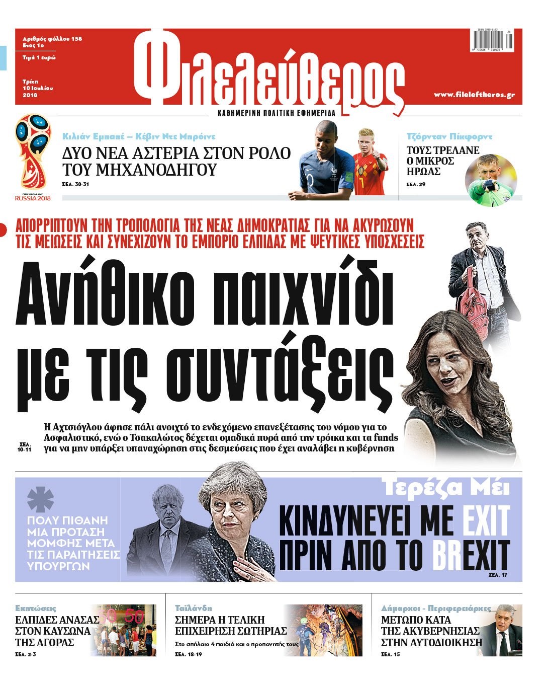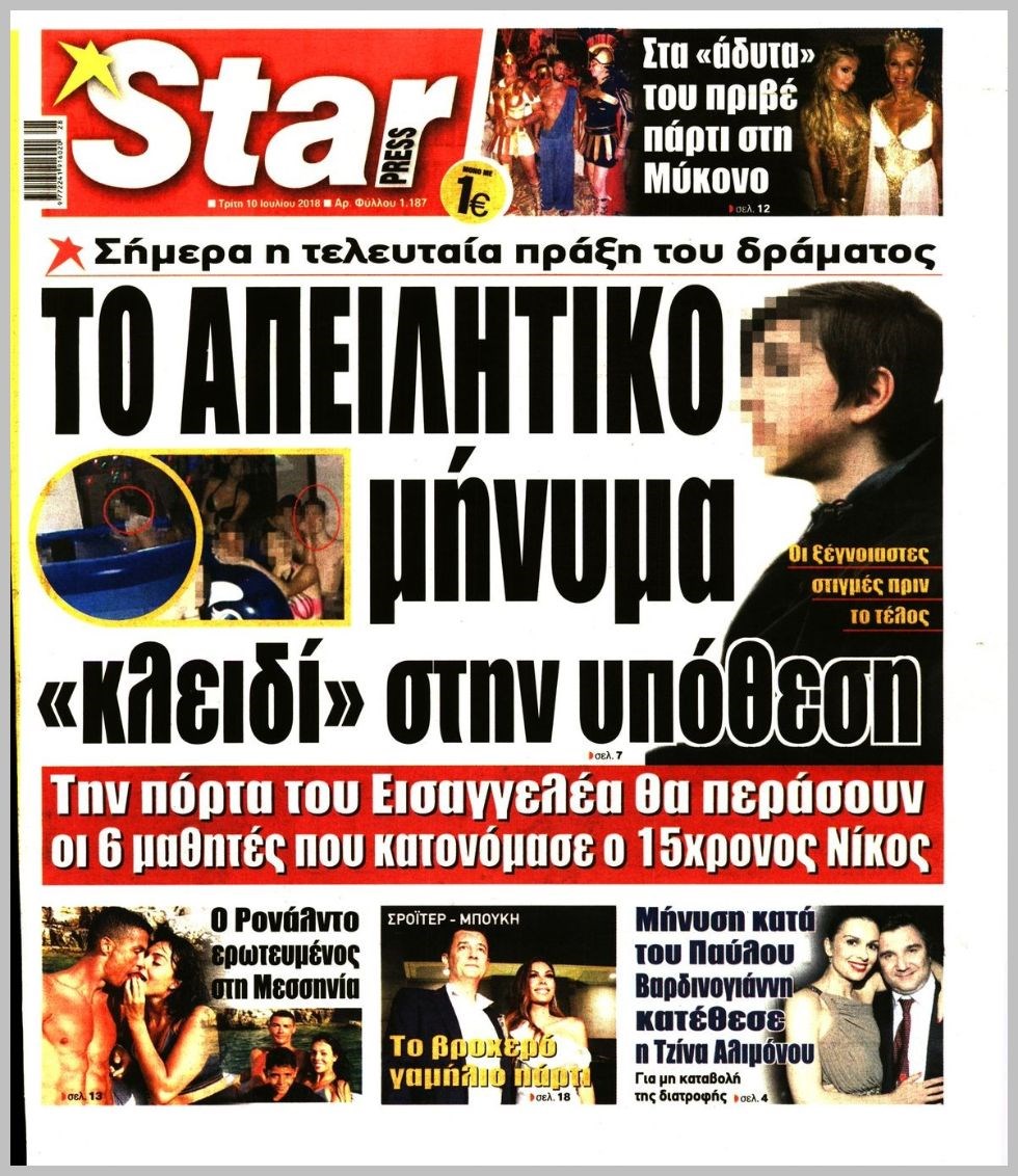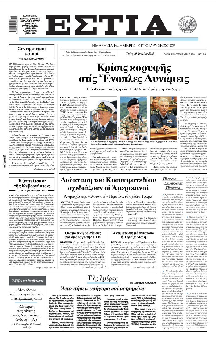 Οι πολιτικές εφημερίδες 10/7/2018 Κώστας Τεό 06:10, Τρίτη 10 Ιουλίου 2018 Media Διαβάστε τα σημερινά πρωτοσέλιδα των πολιτικών εφημερίδων: ΠΟΛΙΤΙΚΕΣ ΕΦΗΜΕΡΙΔΕΣ ΠΡΩΤΟΣΕΛΙΔΑ Μοιράσου το: σχολίασε κι εσύ (0 σχόλια) Ακολουθήστε το enikos.gr στο Google News και μάθετε πρώτοι όλες τις ειδήσεις Δείτε όλες τις τελευταίες ειδήσεις από την Ελλάδα και τον Κόσμο στο enikos.gr Ειδήσεις Ροή Ειδήσεων 2 ώρες πριν Μπλόκα: Οι αγρότες σηκώνουν τις μπάρες σε διόδια για τους εκδρομείς των Χριστουγέννων και μοιράζουν προϊόντα – Βίντεο 2 ώρες πριν Τσιάρας προς αγρότες: Τα μπλόκα και τα πείσματα δεν ωφελούν – Οι λύσεις περνούν μέσα από τον διάλογο 3 ώρες πριν Αρχεία Έπσταϊν: Οι συγκλονιστικές φωτογραφίες – Ο Μάικλ Τζάκσον, ο Μικ Τζάγκερ και ο Κέβιν Σπέισι ανάμεσα στους διάσημους που απεικονίζονται 55 λεπτά πριν Μαθητές διακινούσαν κοκαΐνη και χασίς σε σχολείο της Αττικής – 12 συλλήψεις 1 ώρα πριν Βέλγιο: Άγνωστοι έριξαν κόκκινη μπογιά στο προξενείο της Πολωνίας στις Βρυξέλλες 5 ώρες πριν Μία νέα «χρυσή» περίοδος αρχίζει για 3 ζώδια από σήμερα – «Μία αναπάντεχη ευκαιρία οδηγεί στην επιτυχία» 3 ώρες πριν Διαιτολόγος αποκαλύπτει 9 πρωινές συνήθειες που «λιώνουν» το κοιλιακό λίπος – «Υποστηρίζουν την υγιεινή απώλεια βάρους» 4 ώρες πριν Οι 7 φράσεις που δεν λένε ποτέ οι συναισθηματικά έξυπνοι άνθρωποι κατά τη διάρκεια ενός καβγά 7 ώρες πριν Enerwave: Το νέο «ρεύμα» στη λιανική ενέργειας που αλλάζει την εμπειρία του καταναλωτή 4 λεπτά πριν Μαρινάκης στον Realfm 97,8: Η κυβέρνηση σέβεται κάθε λογική διεκδίκηση των αγροτών, αλλά και το αίτημα των πολιτών να μην ταλαιπωρούνται 10 λεπτά πριν O Πάντερ MVP της 17ης αγωνιστικής στην Euroleague 19 λεπτά πριν Πέθανε η τραγουδίστρια Κλαούντια Ντελμέρ 26 λεπτά πριν Μία ανεκμετάλλευτη πηγή θα μπορούσε να προσφέρει ανεξάντλητη ενέργεια – Οι επιστήμονες ίσως γνωρίζουν πώς να την ξεκλειδώσουν 35 λεπτά πριν Θεσσαλονίκη: Ανήλικος που είχε εξαφανιστεί βρέθηκε στο σπίτι Τούρκων μετά από αστυνομική επιχείρηση ENIKOS NETWORK Η αποχή από την αναπαραγωγή παρατείνει τη ζωή στα ζώα, σύμφωνα με μελέτη – Τι ισχύει για τους ανθρώπους; Σημαντικές επαφές στις ΗΠΑ είχε ο υπουργός Υγείας Άδωνις Γεωργιάδης Ευλογιά αιγοπροβάτων: Παρατεταμένη επιζωοτία, αυστηρά μέτρα – Τι ισχύει για τον εμβολιασμό και την ανασύσταση του ζωικού κε... Τσιάρας προς αγρότες: Έχει ικανοποιηθεί το 74% των αιτημάτων – Τα μπλόκα και τα πείσματα δεν ωφελούν Χαρτογραφώντας το «σημείο χωρίς επιστροφή»: Για πρώτη φορά αποκαλύπτεται με λεπτομέρεια το ακανθώδες όριο της ατμόσφαιρας τ... Η Google καταργεί τη λειτουργία «dark web report» – Πώς θα μπορούν οι χρήστες να διαγράφουν τα δεδομένα τους περισσότερα 14:04 , Σάββατο 20 Δεκεμβρίου 2025 Η Realnews αυτής της Κυριακής (21/12/2025) Με τίτλο: «Ασπίδα προστασίας για την Ελλάδα» κυκλοφορεί, αυτήν την Κυριακή, η Realnews. Σημαντ... 12:53 , Σάββατο 20 Δεκεμβρίου 2025 Να μ’ αγαπάς: Το παρελθόν έρχεται στο φως – Καταιγιστικές εξελίξεις στα τελευταία επεισόδια του 2025 Ο Άγγελος αποκαλύπτεται, η Φωτεινή ανησυχεί για τον Λευτέρη και η Ζωή έρχεται αντιμέτωπη με το... 11:41 , Σάββατο 20 Δεκεμβρίου 2025 «Η αγάπη δεν χάνεται ποτέ»: Η μικρού μήκους ταινία κινουμένων σχεδίων που θέτει ερωτήματα για τη ζωή και τον θάνατο Ο θάνατος είναι ένα από τα πιο σκληρά θέματα που καλείται να διαχειριστεί κάποιος στη διάρκεια... 09:30 , Σάββατο 20 Δεκεμβρίου 2025 «Porto Leone: Στη γειτονιά με τα κόκκινα φανάρια» – Ο Χρόνης αποκαλύπτει στην Αλεξάνδρα το μυστικό 