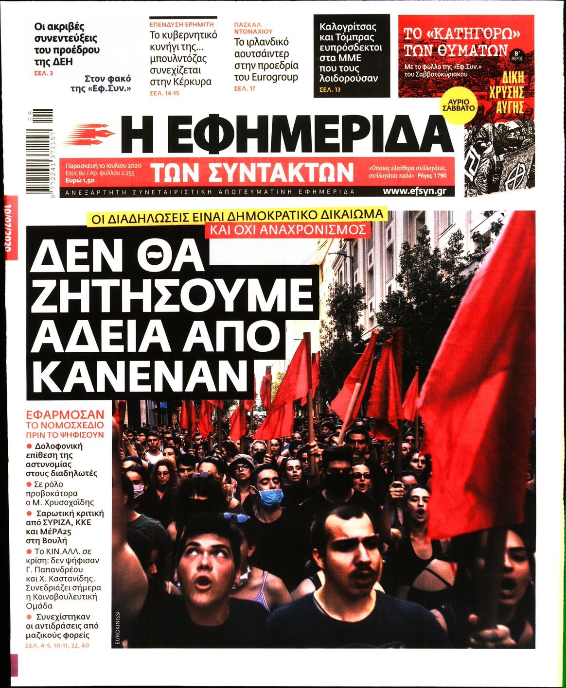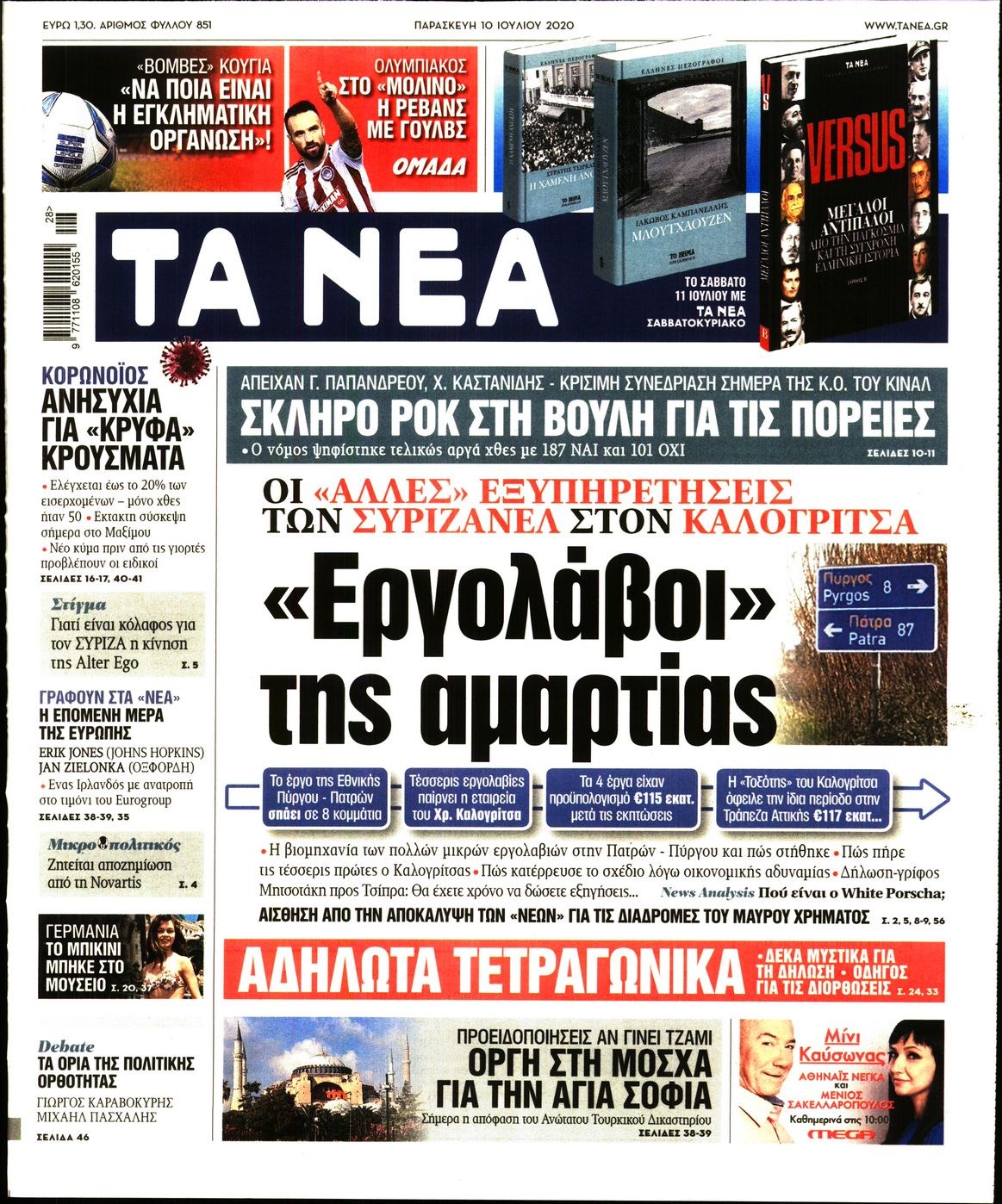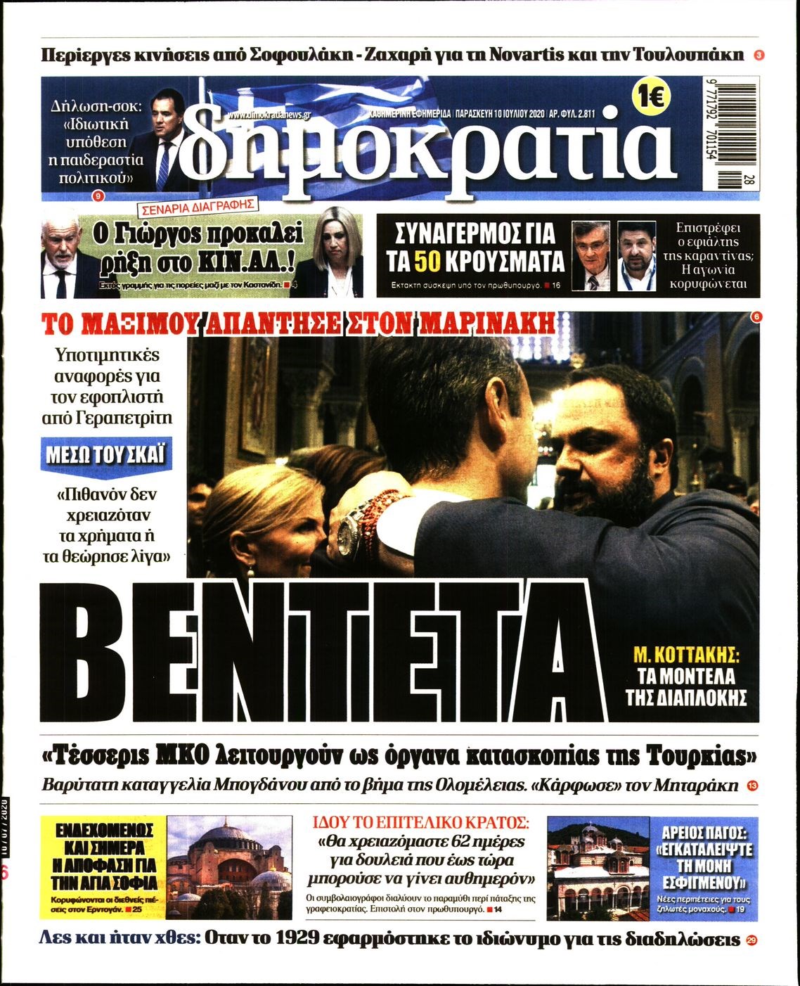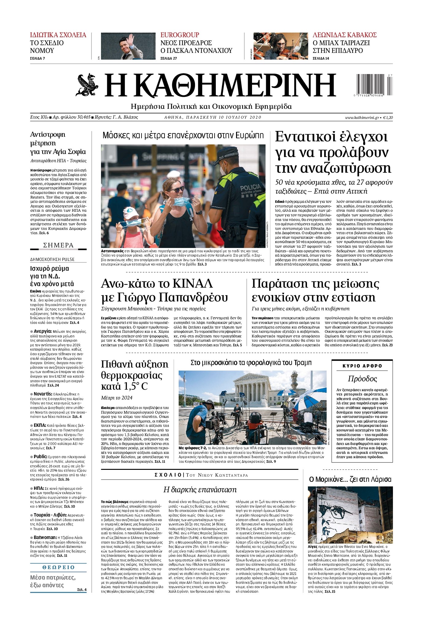 Οι πολιτικές εφημερίδες 10/7/2020 Διονύσης Νίκκας 06:16, Παρασκευή 10 Ιουλίου 2020 Media Διαβάστε τα πρωτοσέλιδα των πολιτικών εφημερίδων… ΠΟΛΙΤΙΚΕΣ ΕΦΗΜΕΡΙΔΕΣ ΠΡΩΤΟΣΕΛΙΔΑ Μοιράσου το: σχολίασε κι εσύ (0 σχόλια) Ακολουθήστε το enikos.gr στο Google News και μάθετε πρώτοι όλες τις ειδήσεις Δείτε όλες τις τελευταίες ειδήσεις από την Ελλάδα και τον Κόσμο στο enikos.gr Ειδήσεις Ροή Ειδήσεων 2 ώρες πριν Μπλόκα: Οι αγρότες σηκώνουν τις μπάρες σε διόδια για τους εκδρομείς των Χριστουγέννων και μοιράζουν προϊόντα – Βίντεο 2 ώρες πριν Τσιάρας προς αγρότες: Τα μπλόκα και τα πείσματα δεν ωφελούν – Οι λύσεις περνούν μέσα από τον διάλογο 3 ώρες πριν Αρχεία Έπσταϊν: Οι συγκλονιστικές φωτογραφίες – Ο Μάικλ Τζάκσον, ο Μικ Τζάγκερ και ο Κέβιν Σπέισι ανάμεσα στους διάσημους που απεικονίζονται 54 λεπτά πριν Μαθητές διακινούσαν κοκαΐνη και χασίς σε σχολείο της Αττικής – 12 συλλήψεις 60 λεπτά πριν Βέλγιο: Άγνωστοι έριξαν κόκκινη μπογιά στο προξενείο της Πολωνίας στις Βρυξέλλες 5 ώρες πριν Μία νέα «χρυσή» περίοδος αρχίζει για 3 ζώδια από σήμερα – «Μία αναπάντεχη ευκαιρία οδηγεί στην επιτυχία» 3 ώρες πριν Διαιτολόγος αποκαλύπτει 9 πρωινές συνήθειες που «λιώνουν» το κοιλιακό λίπος – «Υποστηρίζουν την υγιεινή απώλεια βάρους» 4 ώρες πριν Οι 7 φράσεις που δεν λένε ποτέ οι συναισθηματικά έξυπνοι άνθρωποι κατά τη διάρκεια ενός καβγά 6 ώρες πριν Enerwave: Το νέο «ρεύμα» στη λιανική ενέργειας που αλλάζει την εμπειρία του καταναλωτή 3 λεπτά πριν Μαρινάκης στον Realfm 97,8: Η κυβέρνηση σέβεται κάθε λογική διεκδίκηση των αγροτών, αλλά και το αίτημα των πολιτών να μην ταλαιπωρούνται 9 λεπτά πριν O Πάντερ MVP της 17ης αγωνιστικής στην Euroleague 17 λεπτά πριν Πέθανε η τραγουδίστρια Κλαούντια Ντελμέρ 25 λεπτά πριν Μία ανεκμετάλλευτη πηγή θα μπορούσε να προσφέρει ανεξάντλητη ενέργεια – Οι επιστήμονες ίσως γνωρίζουν πώς να την ξεκλειδώσουν 34 λεπτά πριν Θεσσαλονίκη: Ανήλικος που είχε εξαφανιστεί βρέθηκε στο σπίτι Τούρκων μετά από αστυνομική επιχείρηση ENIKOS NETWORK Η αποχή από την αναπαραγωγή παρατείνει τη ζωή στα ζώα, σύμφωνα με μελέτη – Τι ισχύει για τους ανθρώπους; Σημαντικές επαφές στις ΗΠΑ είχε ο υπουργός Υγείας Άδωνις Γεωργιάδης Ευλογιά αιγοπροβάτων: Παρατεταμένη επιζωοτία, αυστηρά μέτρα – Τι ισχύει για τον εμβολιασμό και την ανασύσταση του ζωικού κε... Τσιάρας προς αγρότες: Έχει ικανοποιηθεί το 74% των αιτημάτων – Τα μπλόκα και τα πείσματα δεν ωφελούν Χαρτογραφώντας το «σημείο χωρίς επιστροφή»: Για πρώτη φορά αποκαλύπτεται με λεπτομέρεια το ακανθώδες όριο της ατμόσφαιρας τ... Η Google καταργεί τη λειτουργία «dark web report» – Πώς θα μπορούν οι χρήστες να διαγράφουν τα δεδομένα τους περισσότερα 14:04 , Σάββατο 20 Δεκεμβρίου 2025 Η Realnews αυτής της Κυριακής (21/12/2025) Με τίτλο: «Ασπίδα προστασίας για την Ελλάδα» κυκλοφορεί, αυτήν την Κυριακή, η Realnews. Σημαντ... 12:53 , Σάββατο 20 Δεκεμβρίου 2025 Να μ’ αγαπάς: Το παρελθόν έρχεται στο φως – Καταιγιστικές εξελίξεις στα τελευταία επεισόδια του 2025 Ο Άγγελος αποκαλύπτεται, η Φωτεινή ανησυχεί για τον Λευτέρη και η Ζωή έρχεται αντιμέτωπη με το... 11:41 , Σάββατο 20 Δεκεμβρίου 2025 «Η αγάπη δεν χάνεται ποτέ»: Η μικρού μήκους ταινία κινουμένων σχεδίων που θέτει ερωτήματα για τη ζωή και τον θάνατο Ο θάνατος είναι ένα από τα πιο σκληρά θέματα που καλείται να διαχειριστεί κάποιος στη διάρκεια... 09:30 , Σάββατο 20 Δεκεμβρίου 2025 «Porto Leone: Στη γειτονιά με τα κόκκινα φανάρια» – Ο Χρόνης αποκαλύπτει στην Αλεξάνδρα το μυστ