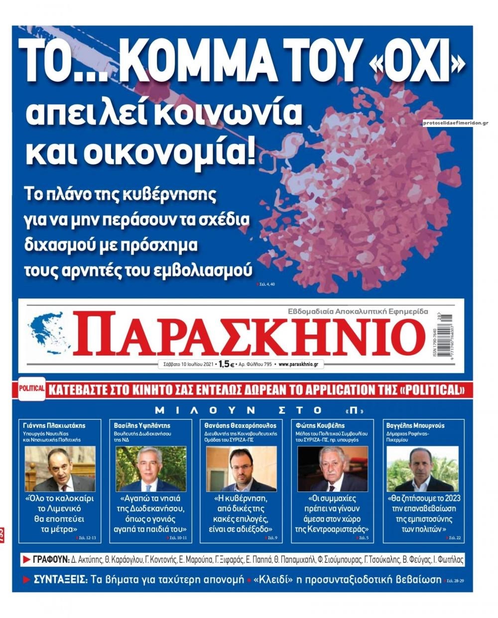 Οι πολιτικές εφημερίδες 10/7/2021 Διονύσης Νίκκας 07:06, Σάββατο 10 Ιουλίου 2021 Media Διαβάστε τα πρωτοσέλιδα των πολιτικών εφημερίδων… ΕΦΗΜΕΡΙΔΕΣ ΠΡΩΤΟΣΕΛΙΔΑ Μοιράσου το: σχολίασε κι εσύ (0 σχόλια) Ακολουθήστε το enikos.gr στο Google News και μάθετε πρώτοι όλες τις ειδήσεις Δείτε όλες τις τελευταίες ειδήσεις από την Ελλάδα και τον Κόσμο στο enikos.gr Ειδήσεις Ροή Ειδήσεων 2 ώρες πριν Γιορτές με μπλόκα για τους αγρότες: Ανοίγουν διόδια και μοιράζουν προϊόντα στους ταξιδιώτες 8 λεπτά πριν Τσιάρας για αγρότες: Ικανοποιείται το αίτημα για αφορολόγητο πετρέλαιο στη μάνικα, πρόθεσή μας να μειωθεί ακόμη περισσότερο η τιμή στο ρεύμα 23 λεπτά πριν Αρχεία Έπσταϊν: Οι συγκλονιστικές φωτογραφίες – Ο Μάικλ Τζάκσον, ο Μικ Τζάγκερ και ο Κέβιν Σπέισι ανάμεσα στους διάσημους που απεικονίζονται 2 ώρες πριν Νέες ταυτότητες: Μεγάλη αναμονή για ραντεβού στην Αττική – Τέλος τα ταξίδια εκτός Ελλάδος από τον Αύγουστο για όσους δεν έχουν αλλάξει 54 λεπτά πριν Ινδία: Επτά ελέφαντες σκοτώθηκαν κατά τη σύγκρουση επιβατικού τρένου με κοπάδι 3 ώρες πριν Μία νέα «χρυσή» περίοδος αρχίζει για 3 ζώδια από σήμερα – «Μία αναπάντεχη ευκαιρία οδηγεί στην επιτυχία» 5 ώρες πριν Αρχαιολόγοι ανακάλυψαν σε χωράφι απεικόνιση 600 ετών ενός Αγίου – Τα στοιχεία που δείχνουν ότι μαρτύρησε 4 ώρες πριν Αγχώνεται για το χριστουγεννιάτικο δώρο που πήρε στην πλούσια σύντροφό του – «Φοβάμαι πως θα το βρει φθηνιάρικο, φοράει βραχιόλια Cartier» 52 λεπτά πριν Διαιτολόγος αποκαλύπτει 9 πρωινές συνήθειες που «λιώνουν» το κοιλιακό λίπος – «Υποστηρίζουν την υγιεινή απώλεια βάρους» 8 λεπτά πριν Τσιάρας για αγρότες: Ικανοποιείται το αίτημα για αφορολόγητο πετρέλαιο στη μάνικα, πρόθεσή μας να μειωθεί ακόμη περισσότερο η τιμή στο ρεύμα 15 λεπτά πριν Η Ζιζέλ Μπούντχεν παντρεύτηκε τον δάσκαλο ζίου-ζίτσου, Χοακίμ Βαλέντε 23 λεπτά πριν Αρχεία Έπσταϊν: Οι συγκλονιστικές φωτογραφίες – Ο Μάικλ Τζάκσον, ο Μικ Τζάγκερ και ο Κέβιν Σπέισι ανάμεσα στους διάσημους που απεικονίζονται 31 λεπτά πριν Χρήστος Μάντακας: «Θα μπορούσα να είχα φύγει από τη ζωή, δεν μπορούσα να περπατήσω…» 38 λεπτά πριν Εντυπωσιακό βίντεο από «τσουνάμι» πάγου στη Σιβηρία – Πώς προκαλείται το σπάνιο φαινόμενο ENIKOS NETWORK Είστε μόνιμα απρόσεκτοι; 3 σημάδια που δείχνουν ότι μπορεί να είναι σύμπτωμα πάθησης Πόσα κιλά παίρνουμε πραγματικά τα Χριστούγεννα, σύμφωνα με την επιστήμη – Πώς να το αποτρέψουμε; Χρήστος Δήμας: Στα 2,5 εκατ. ευρώ την ημέρα το κόστος από το άνοιγμα των διοδίων από τους αγρότες – Θα αξιώσουν αποζημίωση ... Χριστούγεννα και Πρωτοχρονιά: Πώς αμείβονται όσοι εργαστούν Χαρτογραφώντας το «σημείο χωρίς επιστροφή»: Για πρώτη φορά αποκαλύπτεται με λεπτομέρεια το ακανθώδες όριο της ατμόσφαιρας τ... Η Google καταργεί τη λειτουργία «dark web report» – Πώς θα μπορούν οι χρήστες να διαγράφουν τα δεδομένα τους περισσότερα 11:41 , Σάββατο 20 Δεκεμβρίου 2025 «Η αγάπη δεν χάνεται ποτέ»: Η μικρού μήκους ταινία κινουμένων σχεδίων που θέτει ερωτήματα για τη ζωή και τον θάνατο Ο θάνατος είναι ένα από τα πιο σκληρά θέματα που καλείται να διαχειριστεί κάποιος στη διάρκεια... 09:30 , Σάββατο 20 Δεκεμβρίου 2025 «Porto Leone: Στη γειτονιά με τα κόκκινα φανάρια» – Ο Χρόνης αποκαλύπτει στην Αλεξάνδρα το μυστικό για το παιδί της Λένας Η μεγάλη δραματική σειρά του Apha «Porto Leone: Στη γειτονιά με τα κόκκινα φανάρια» μας μεταφέ... 08:14 , Σάββατο 20 Δεκεμβρίου 2025 Τρομεροί γονείς: Η Μαρία Καβογιάννη εισβάλλει στο σπίτ