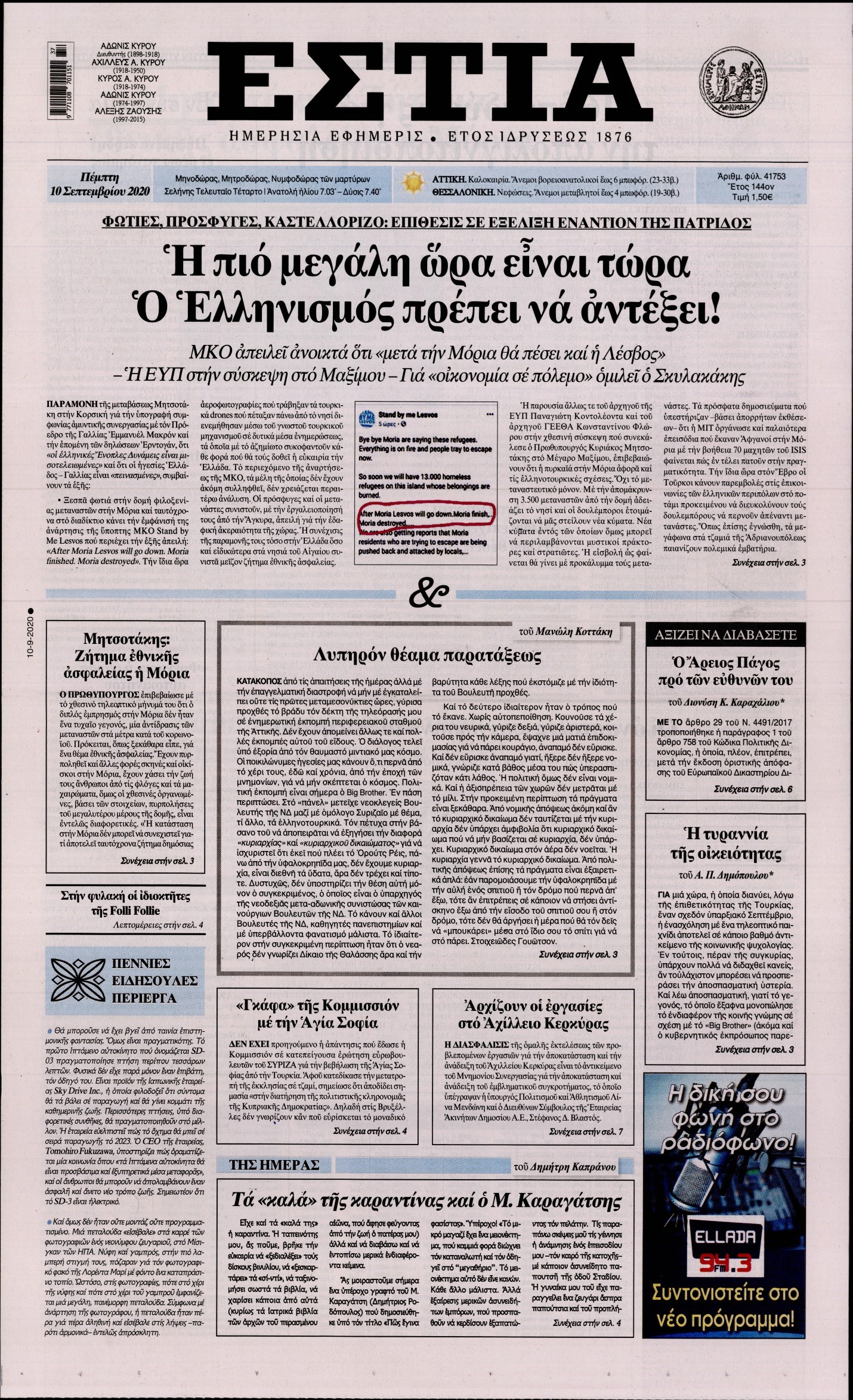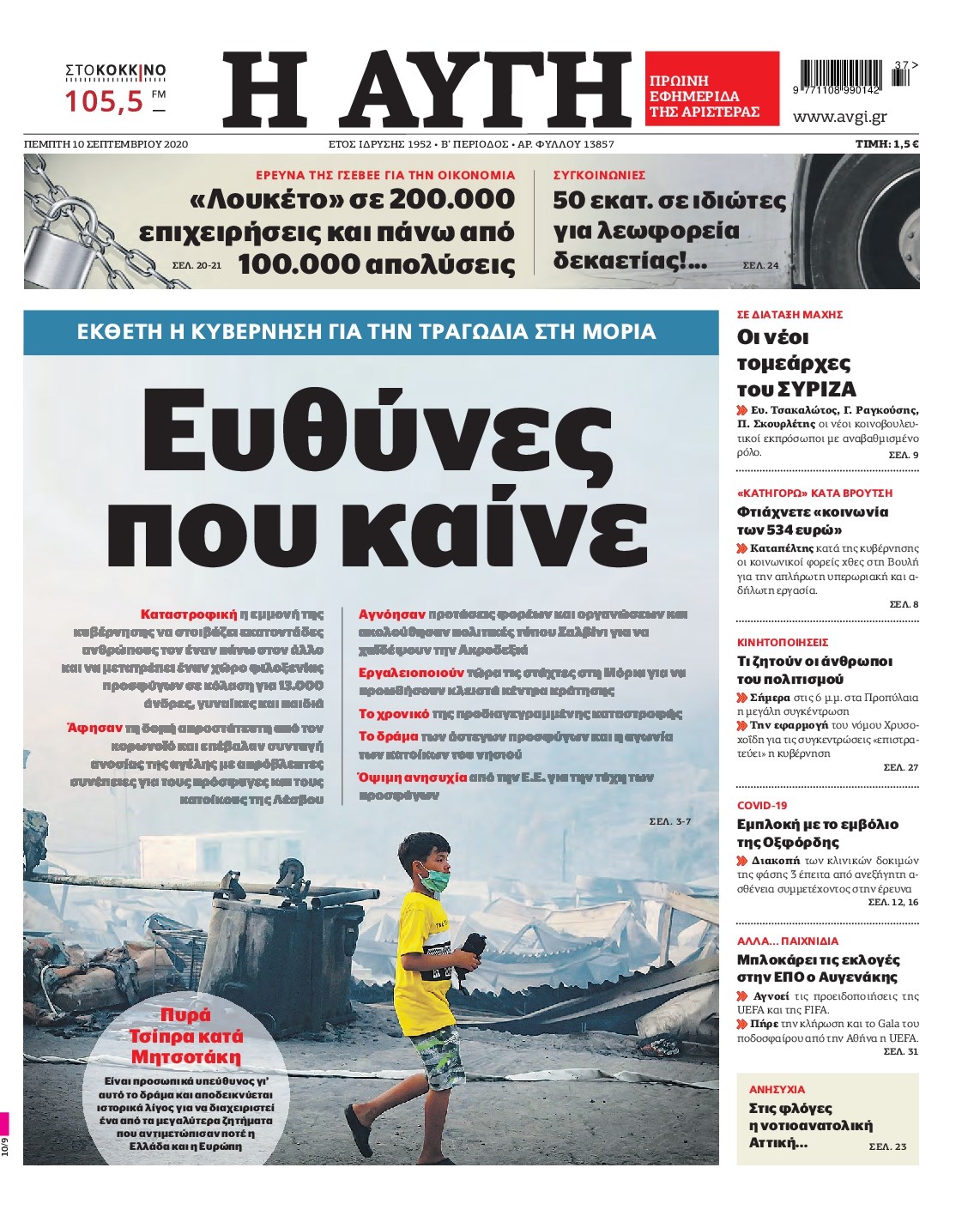 Οι πολιτικές εφημερίδες 10/9/2020 Διονύσης Νίκκας 06:08, Πέμπτη 10 Σεπτεμβρίου 2020 Media Διαβάστε τα πρωτοσέλιδα των πολιτικών εφημερίδων… ΠΟΛΙΤΙΚΕΣ ΕΦΗΜΕΡΙΔΕΣ ΠΡΩΤΟΣΕΛΙΔΑ Μοιράσου το: σχολίασε κι εσύ (0 σχόλια) Ακολουθήστε το enikos.gr στο Google News και μάθετε πρώτοι όλες τις ειδήσεις Δείτε όλες τις τελευταίες ειδήσεις από την Ελλάδα και τον Κόσμο στο enikos.gr Ειδήσεις Ροή Ειδήσεων 23 λεπτά πριν Υπόθεση Έπσταϊν: Το Υπουργείο Δικαιοσύνης δημοσιοποίησε μια σειρά από εξαιρετικά επεξεργασμένα αρχεία – «Λείπουν τα πιο σημαντικά έγγραφα», λένε οι Δημοκρατικοί 2 ώρες πριν Σαρωτικοί οι έλεγχοι στους δρόμους ενόψει εορτών – Μπλόκα της τροχαίας σε κεντρικές αρτηρίες της Αττικής 33 λεπτά πριν ΟΝΕΧ – MEGATUGS: Ξεκίνησε η ναυπήγηση ρυμουλκών στην Ελλάδα – Προθάλαμος πολεμικών πλοίων – Δείτε φωτογραφίες και βίντεο 10 ώρες πριν Χριστούγεννα στα μπλόκα: Επιμένουν στις κινητοποιήσεις τους οι αγρότες – Ανοίγουν τα διόδια το Σαββατοκύριακο 9 ώρες πριν Πούτιν: Τα μηνύματα σε Ευρώπη και ΝΑΤΟ από το μαραθώνιο «σόου» του – Η απαίτηση για «σεβασμό» και η ειρήνη «με τους όρους» της Μόσχας 2 ώρες πριν Αυγά: Πόσα μπορείτε να τρώτε την ημέρα με ασφάλεια για μέγιστη πρόσληψη πρωτεΐνης 3 ώρες πριν Τα ζώδια σήμερα, Σάββατο 20 Δεκεμβρίου: Παρθένοι, το σύμπαν σας δίνει το κλειδί 9 ώρες πριν Ανακαλύφθηκαν αρχαία χρυσά νομίσματα 2.200 ετών που απεικονίζουν τον θεό Απόλλωνα – Η άγνωστη σύνδεση με τον Φίλιππο Β΄ της Μακεδονίας 2 ώρες πριν Οπτική ψευδαίσθηση: Μόνο αν είσαι ο Σέρλοκ Χολμς θα βρεις τον αριθμό «87» σε 7 δευτερόλεπτα 2 λεπτά πριν Αρχαιολόγοι ανακάλυψαν σε χωράφι απεικόνιση 600 ετών ενός Αγίου – Τα στοιχεία που δείχνουν ότι μαρτύρησε 10 λεπτά πριν Mega χριστουγεννιάτικη φορολοταρία: «Κλείδωσε» η ημερομηνία για την κλήρωση – Ερωτήσεις και απαντήσεις 17 λεπτά πριν ΗΠΑ: Τέσσερις μετανάστες πέθαναν σε κέντρα κράτησης – Αύξηση θανάτων σε επίπεδο ρεκόρ το 2025 23 λεπτά πριν Υπόθεση Έπσταϊν: Το Υπουργείο Δικαιοσύνης δημοσιοποίησε μια σειρά από εξαιρετικά επεξεργασμένα αρχεία – «Λείπουν τα πιο σημαντικά έγγραφα», λένε οι Δημοκρατικοί 25 λεπτά πριν Καιρός: Αλλαγή σκηνικού σήμερα με βροχές και πτώση της θερμοκρασίας – Οι προβλέψεις των μετεωρολόγων για τα Χριστούγεννα ENIKOS NETWORK Το τεστ των 10 δευτερολέπτων που μπορεί να προβλέψει το προσδόκιμο ζωής σας – Τι λέει ειδικός του Cleveland Επιλέξτε καρέκλα για να μάθετε ποια είναι τα κρυφά χαρακτηριστικά σας – Τι αποκάλυψε για εσάς αυτό το τεστ προσωπικότητας; Mega χριστουγεννιάτικη φορολοταρία: «Κλείδωσε» η ημερομηνία για την κλήρωση – Ερωτήσεις και απαντήσεις Αναστολή μέτρων αναγκαστικής εκτέλεσης για κτηνοτρόφους που πλήττονται από την ευλογιά των αιγοπροβάτων Χαρτογραφώντας το «σημείο χωρίς επιστροφή»: Για πρώτη φορά αποκαλύπτεται με λεπτομέρεια το ακανθώδες όριο της ατμόσφαιρας τ... Η Google καταργεί τη λειτουργία «dark web report» – Πώς θα μπορούν οι χρήστες να διαγράφουν τα δεδομένα τους περισσότερα 05:48 , Σάββατο 20 Δεκεμβρίου 2025 Οι οικονομικές εφημερίδες 20/12/2025 Διαβάστε τα πρωτοσέλιδα από τις οικονομικές εφημερίδες, σήμερα 20/12/2025. 05:43 , Σάββατο 20 Δεκεμβρίου 2025 Οι αθλητικές εφημερίδες 20/12/2025 Διαβάστε τα πρωτοσέλιδα από τις αθλητικές εφημερίδες, σήμερα 20/12/2025. 05:38 , Σάββατο 20 Δεκεμβρίου 2025 Οι πολιτικές εφημερίδες 20/12/2025 Διαβάστε τα πρωτοσέλιδα από τις πολιτικές εφημερίδες, σήμερα 20/12/2025. 04:20 , Σάββατο 20 Δεκεμβρίου 2025 Αγγελική Νικολούλη: Τα συλλυπητήρια για την απώ